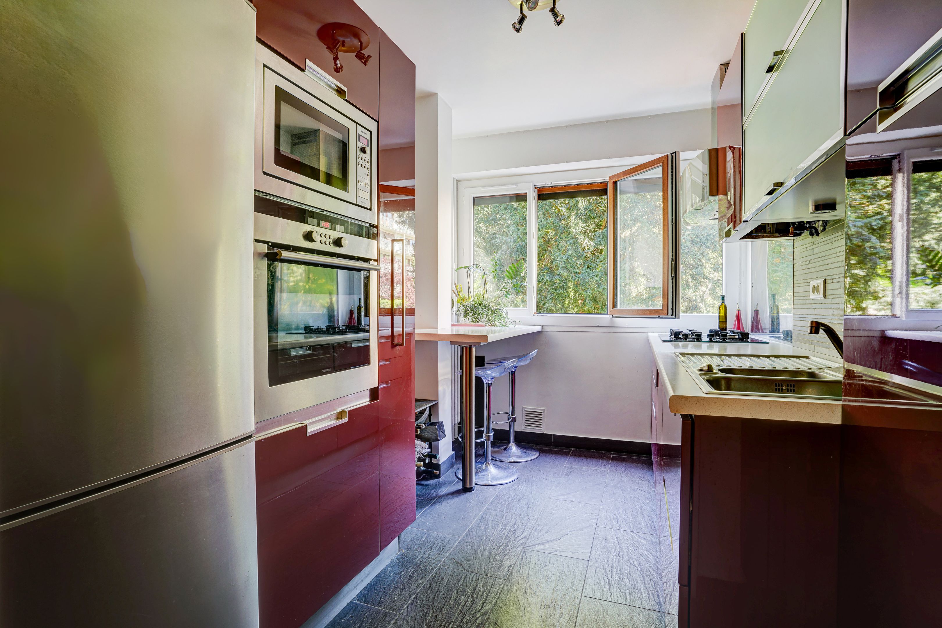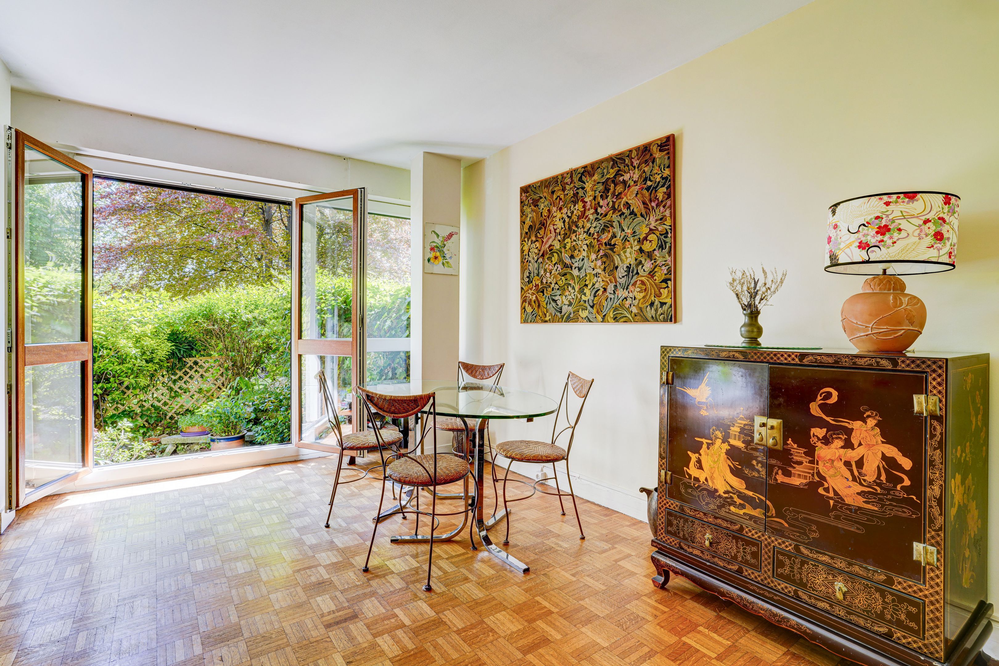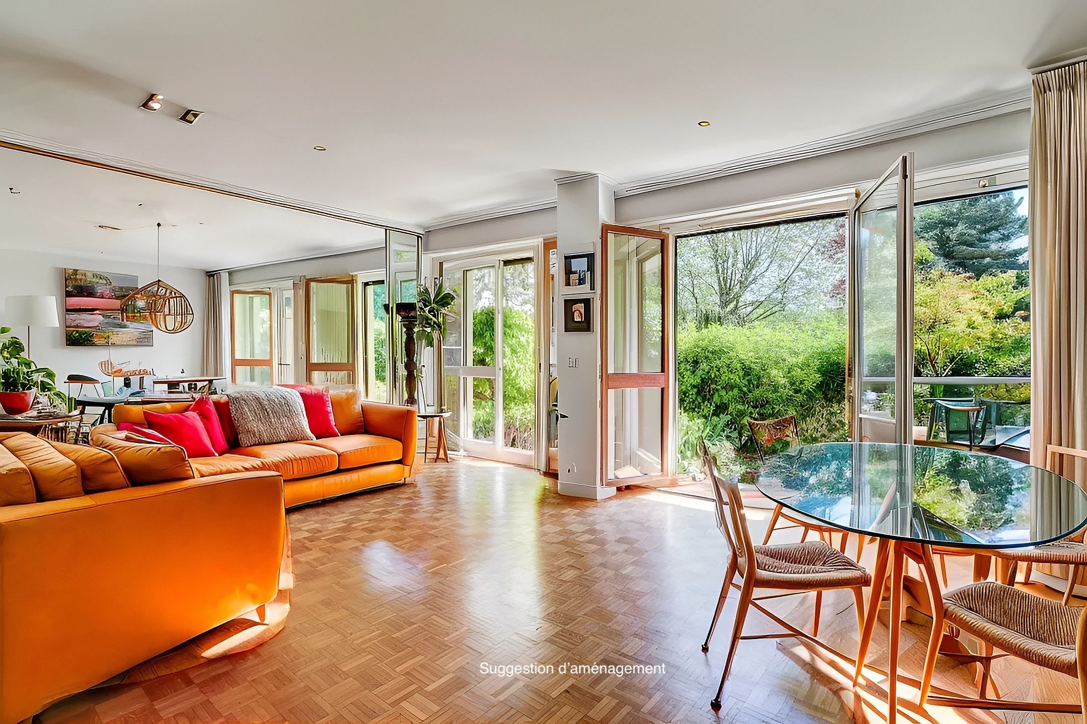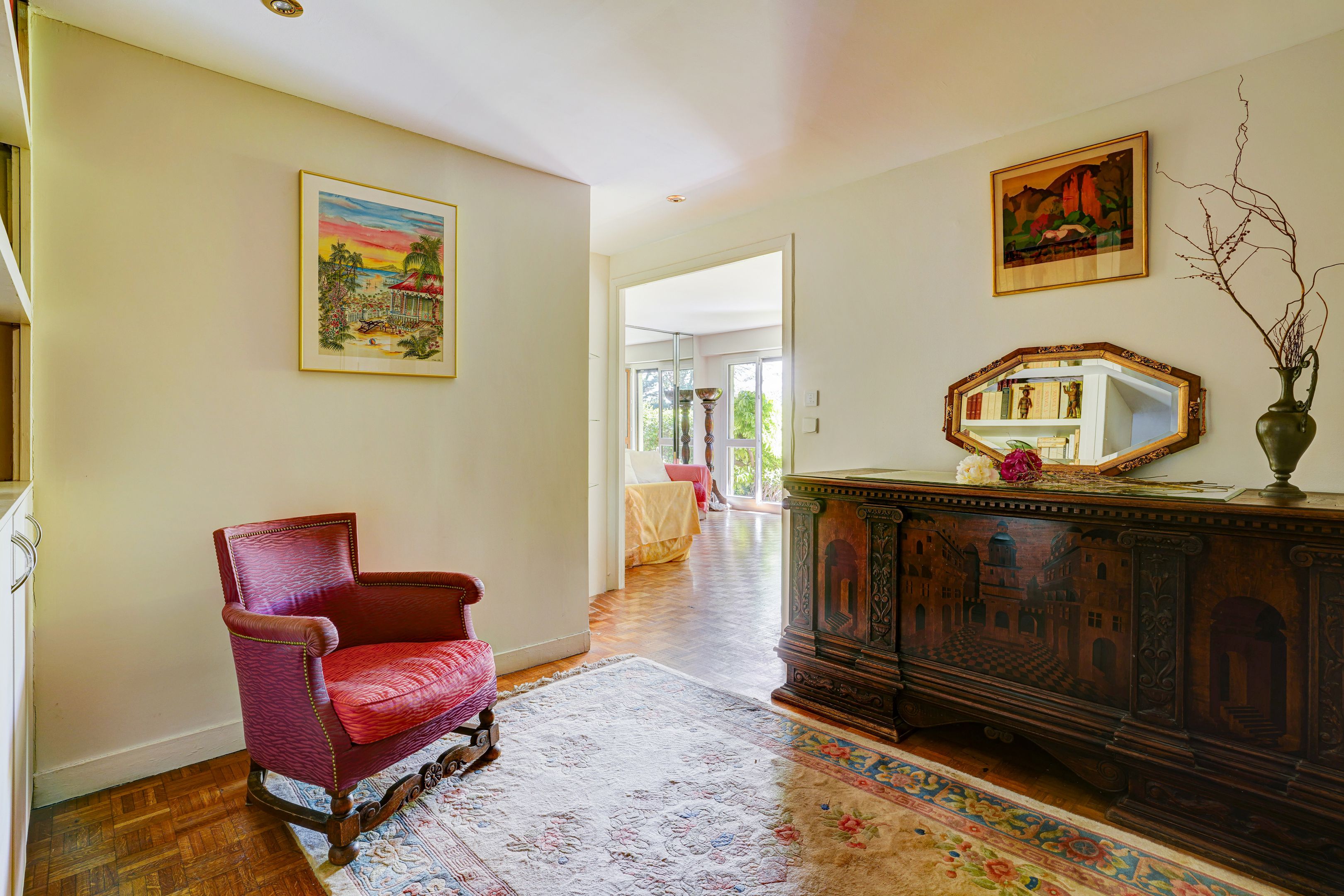On the banks of the Seine in the heart of a tree-lined, welcoming, secure residence close to the tramway, St Cloud station, shops in the Parc de Saint-Cloud and the Bois de Boulogne, 92m² walk-through family apartment with private 25m² terrace garden. Entrance hall, living room opening onto an east-facing terrace planted with trees, west-facing fitted kitchen overlooking a flower-filled garden planted with trees, three bedrooms, one with double-exposure terrace access, a second with convertible shower room and a large bathroom, plenty of storage space. Cellar. A parking space is available in the residence, with the possibility of renting additional parking. Contact Nathalie Faes 06 22 85 50 46