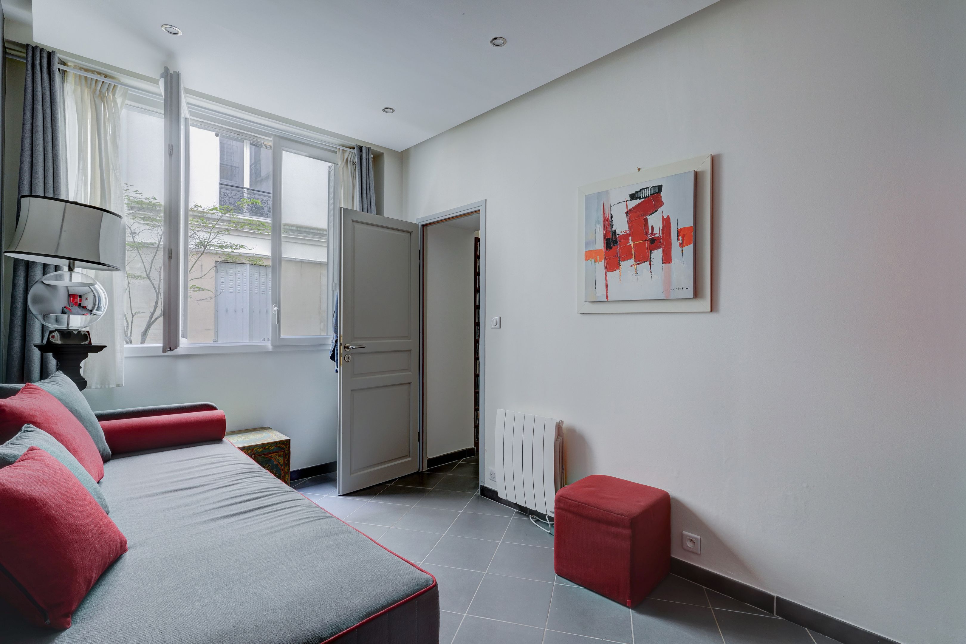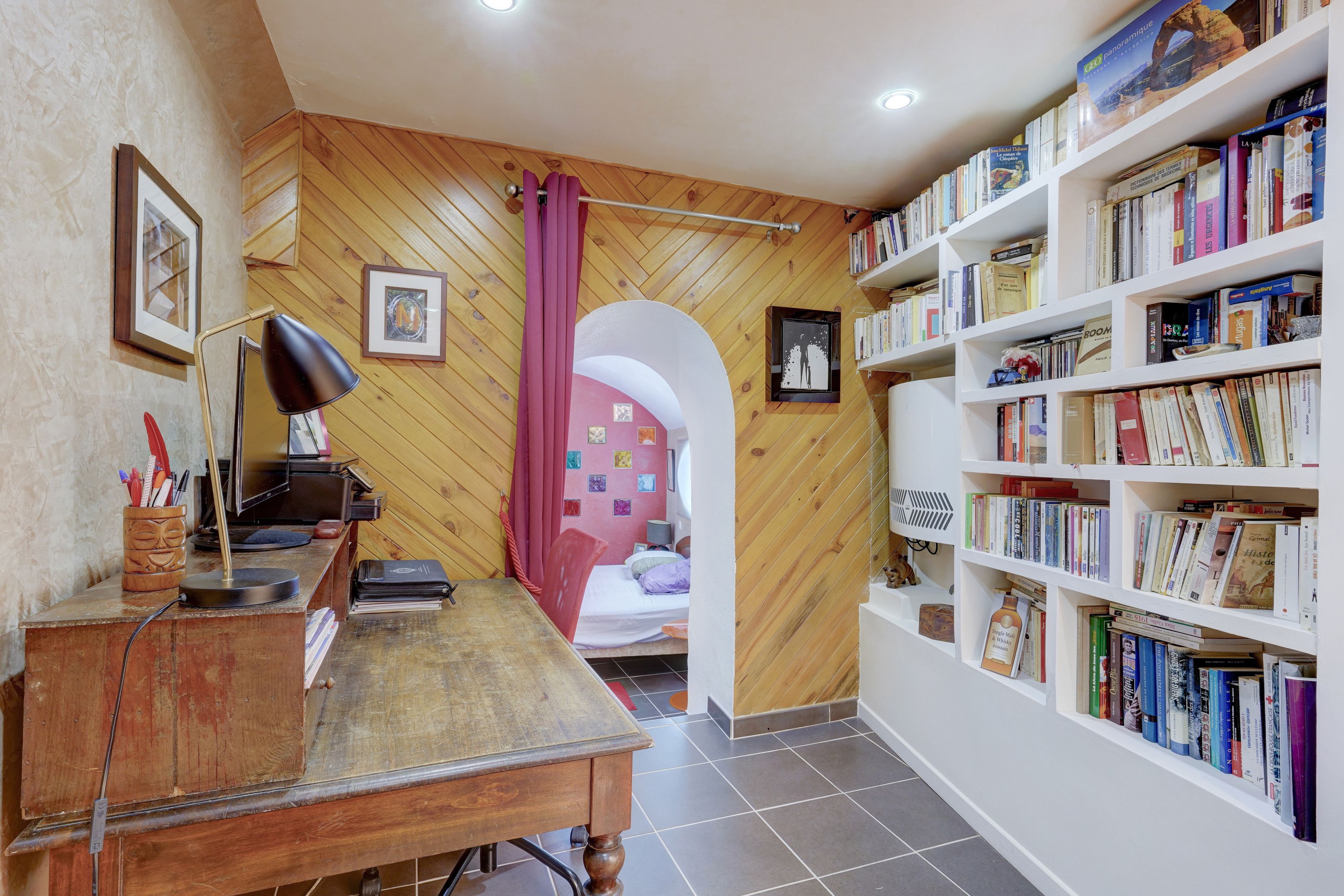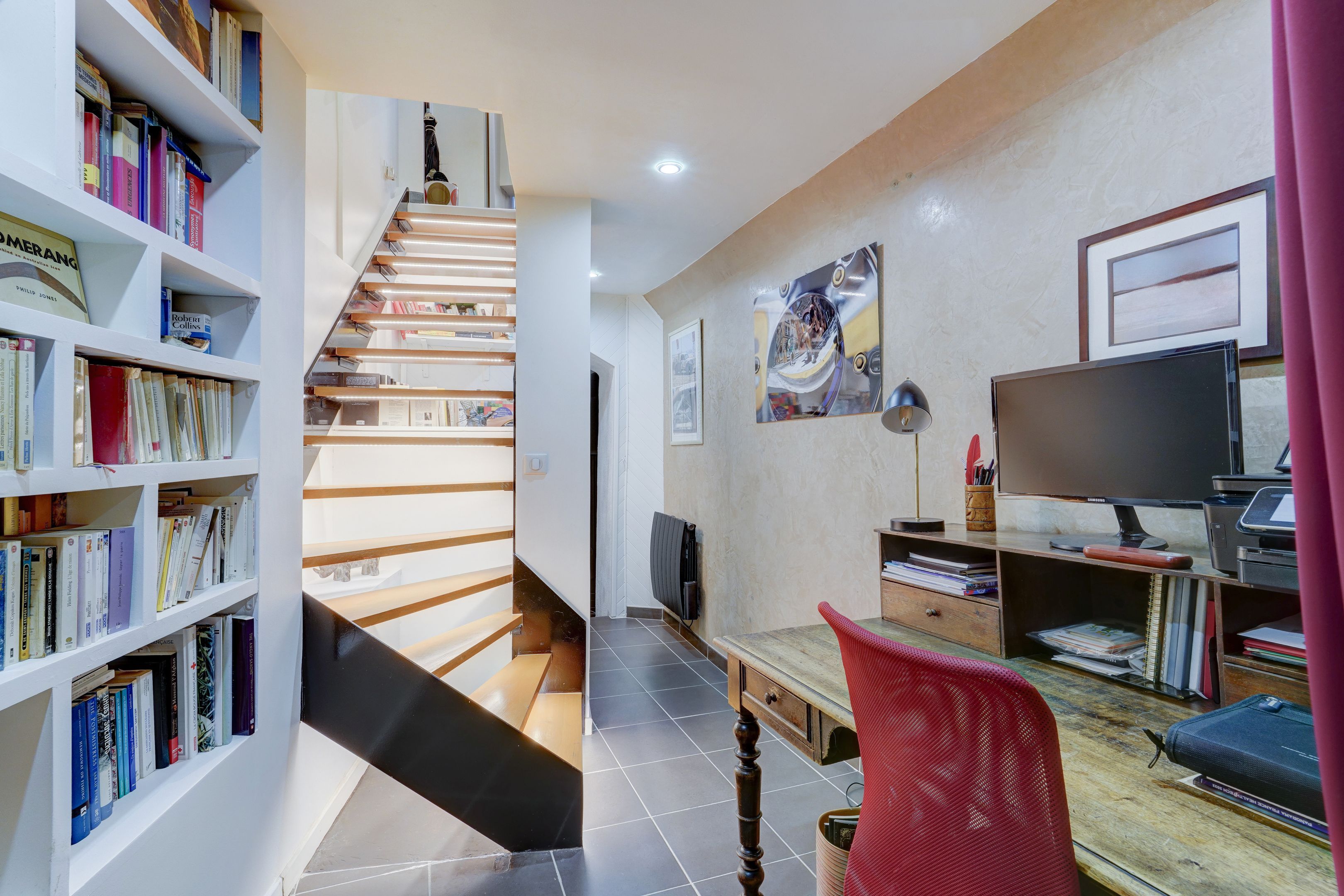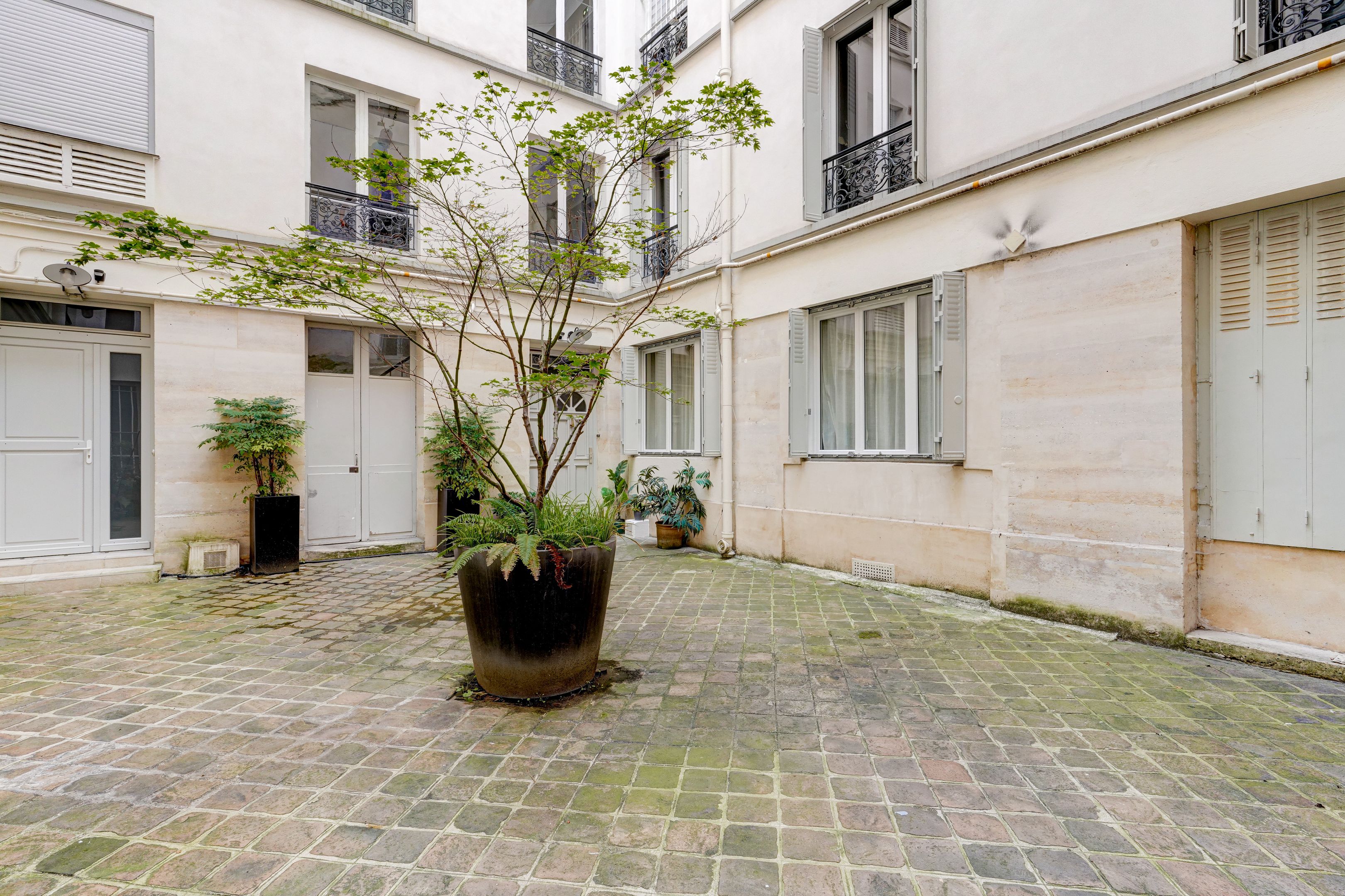Saint-Georges, sought-after neighborhood, old building, 86.12 m² ground-floor apartment set in a quiet, paved courtyard. Entrance hall, living room, open kitchen, bedroom, bathroom, separate toilet. Basement: office, 2 bedrooms, shower room, toilet. Ideal for musician, studio.