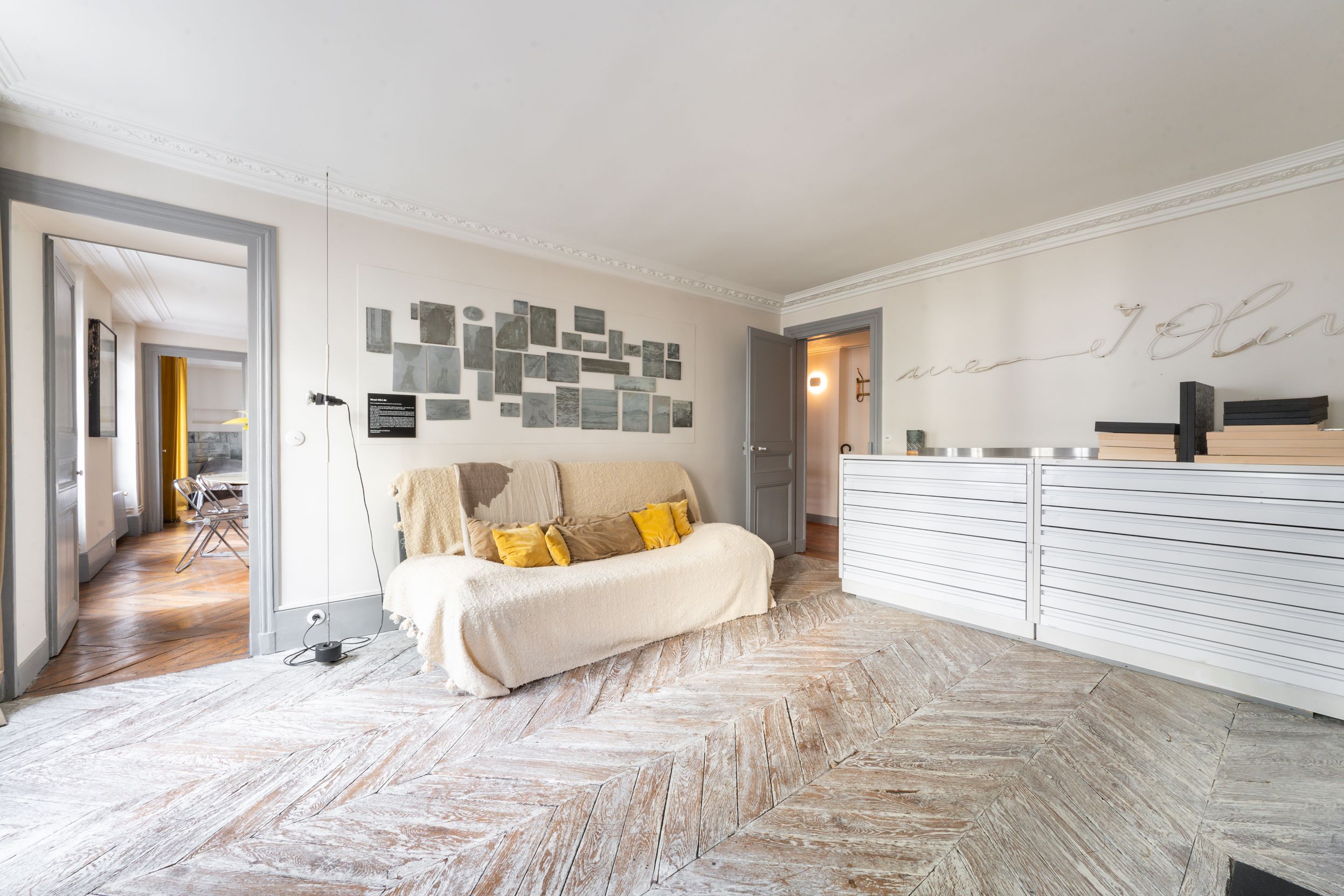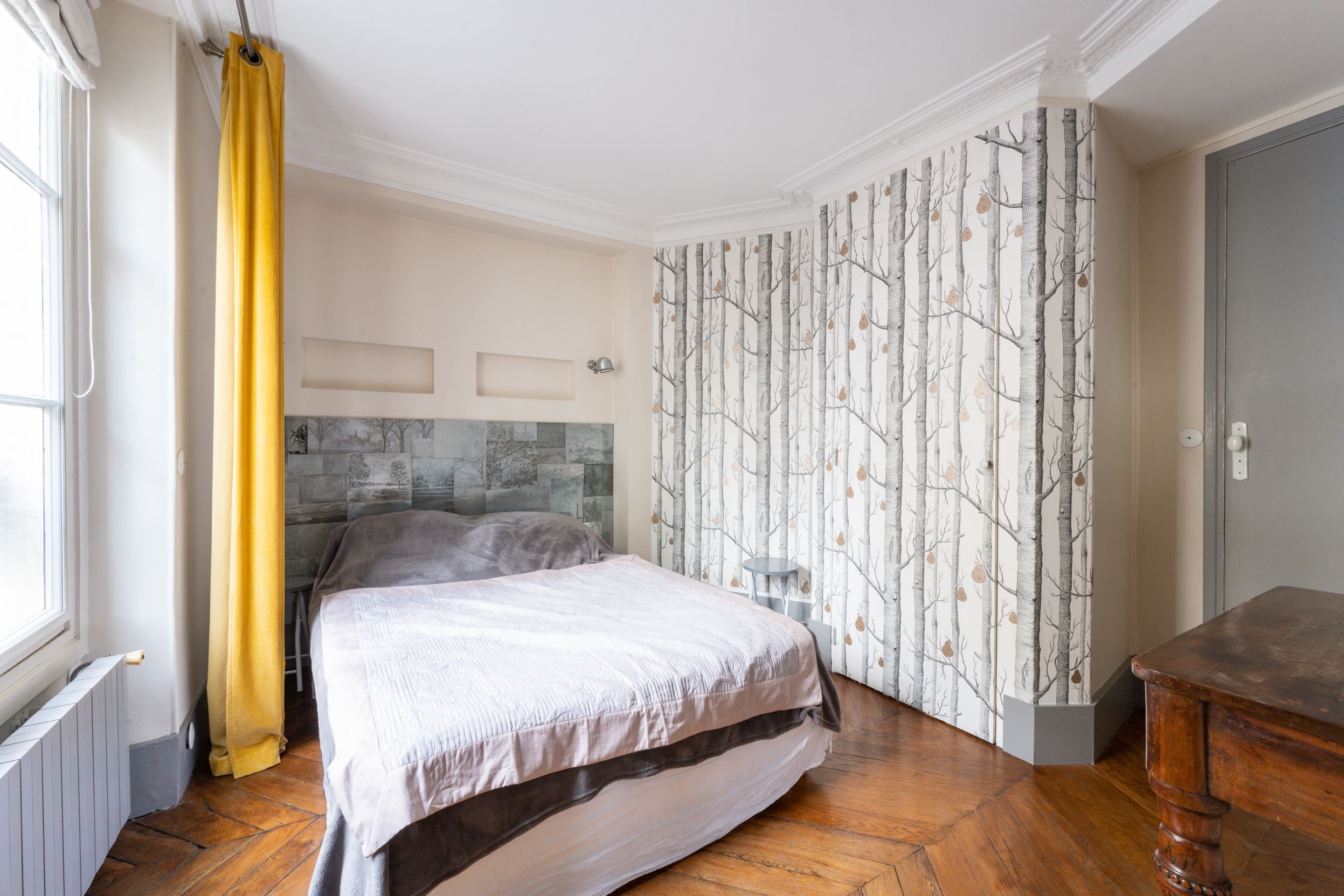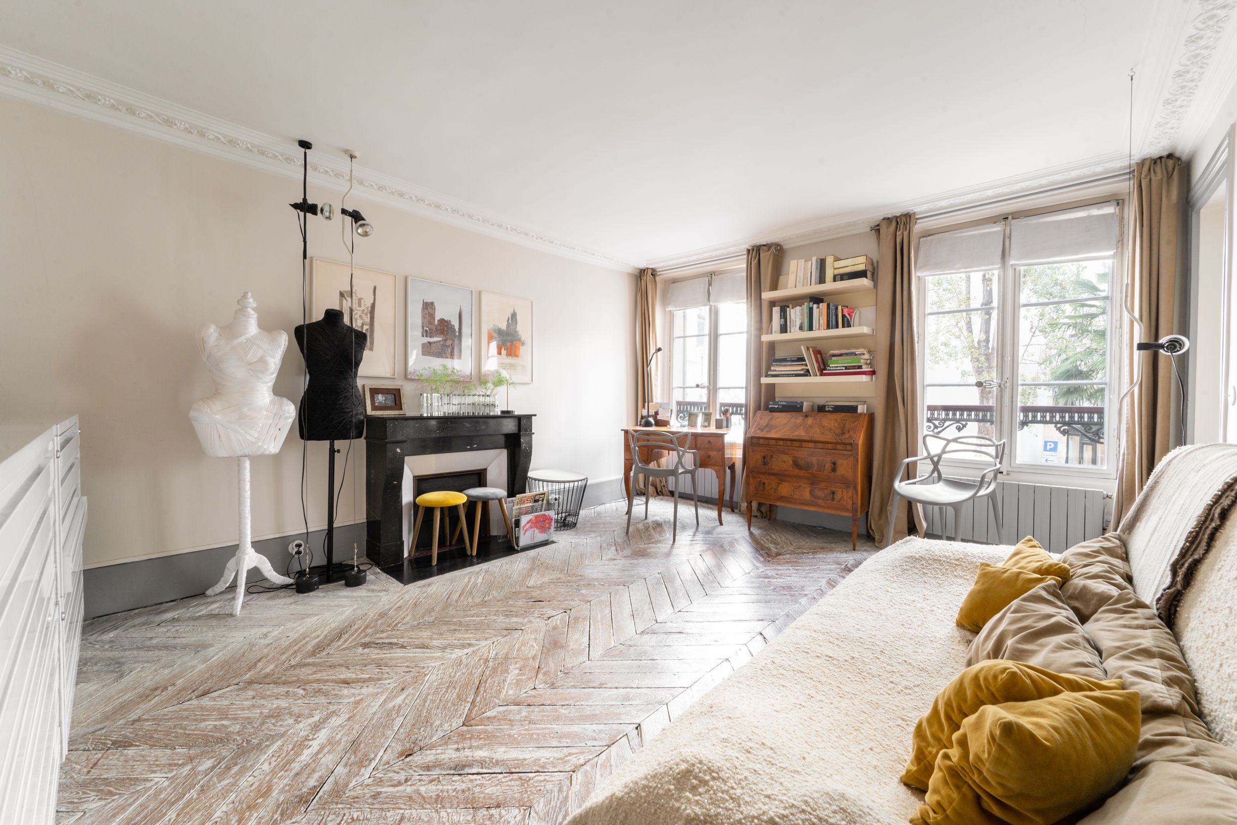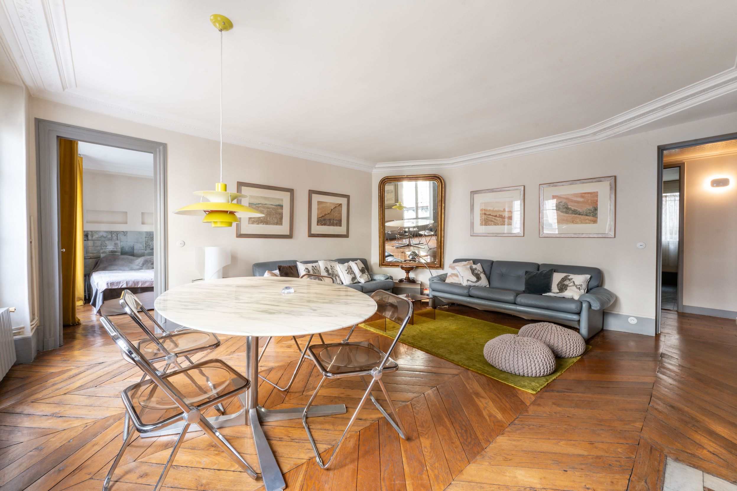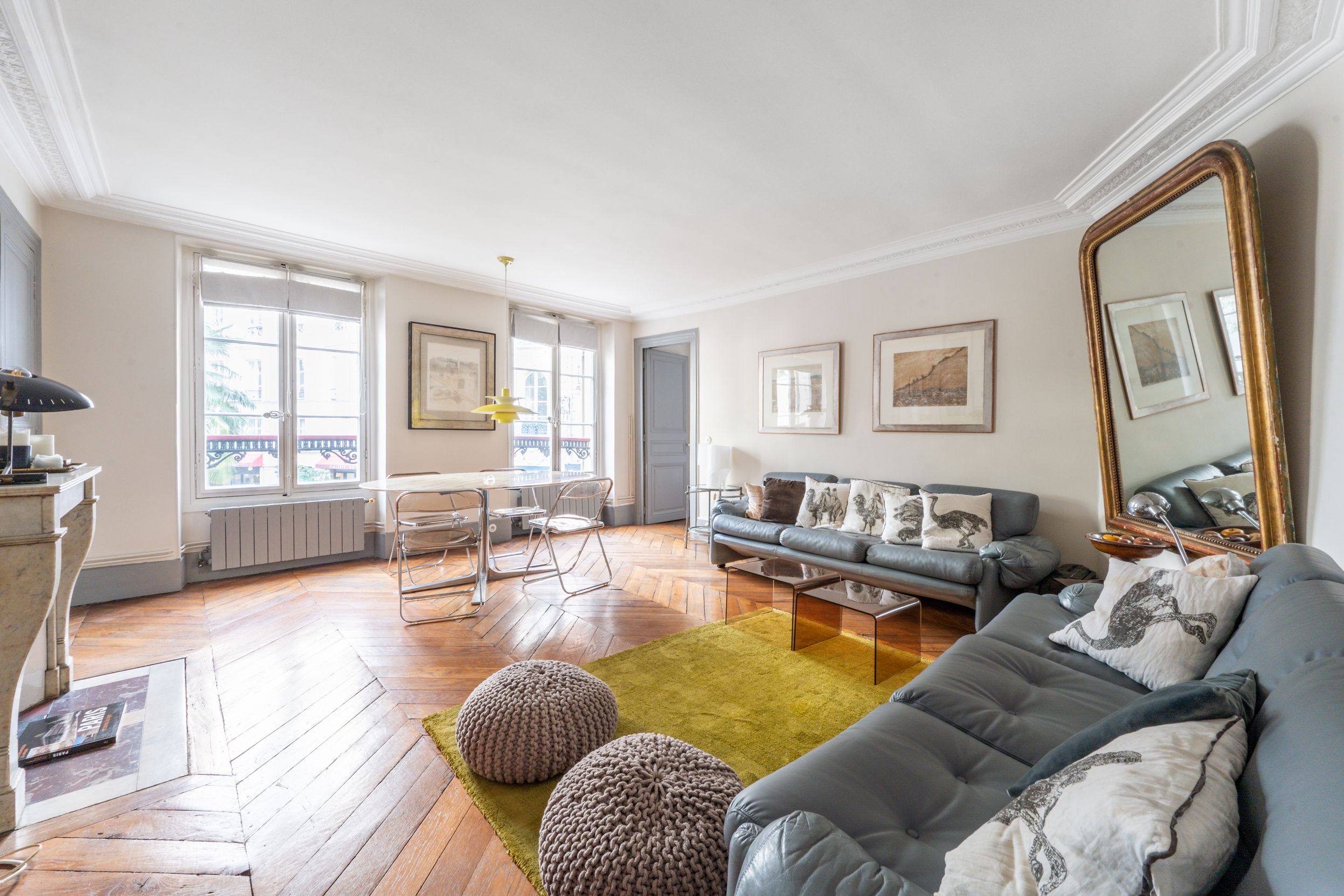 In a luxurious old building ideally located near Place Furstemberg, apartment on the 1st floor with a lift, offering lovely period features (parquet flooring, mouldings and fireplaces), an efficient layout maximising the space and lovely views over green spaces. Entrance hall, living room, dining room, separate fully equipped kitchen, 2 bedrooms (each with en-suite shower room), separate toilet, extensive storage space. Cellar. Small maid’s room.