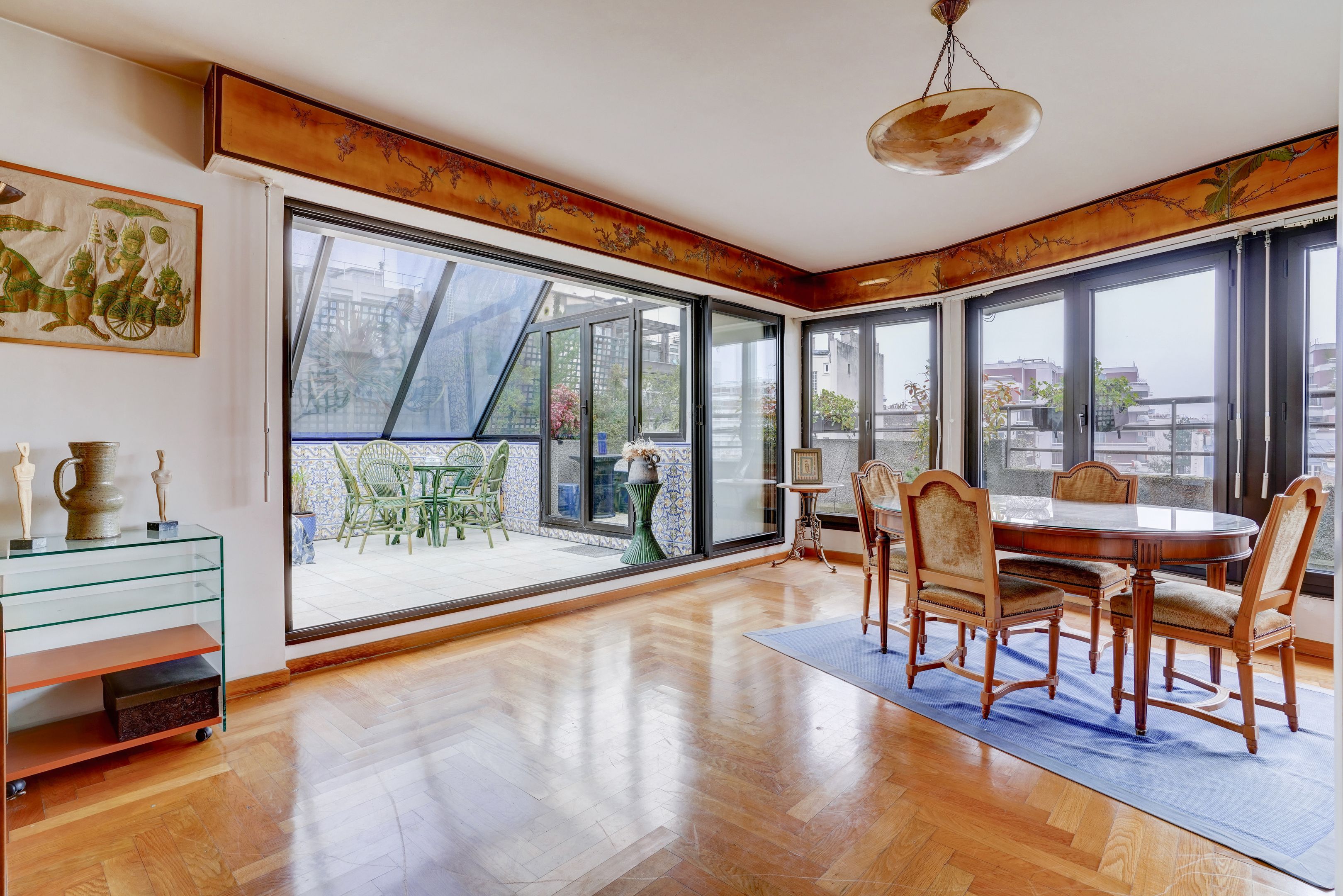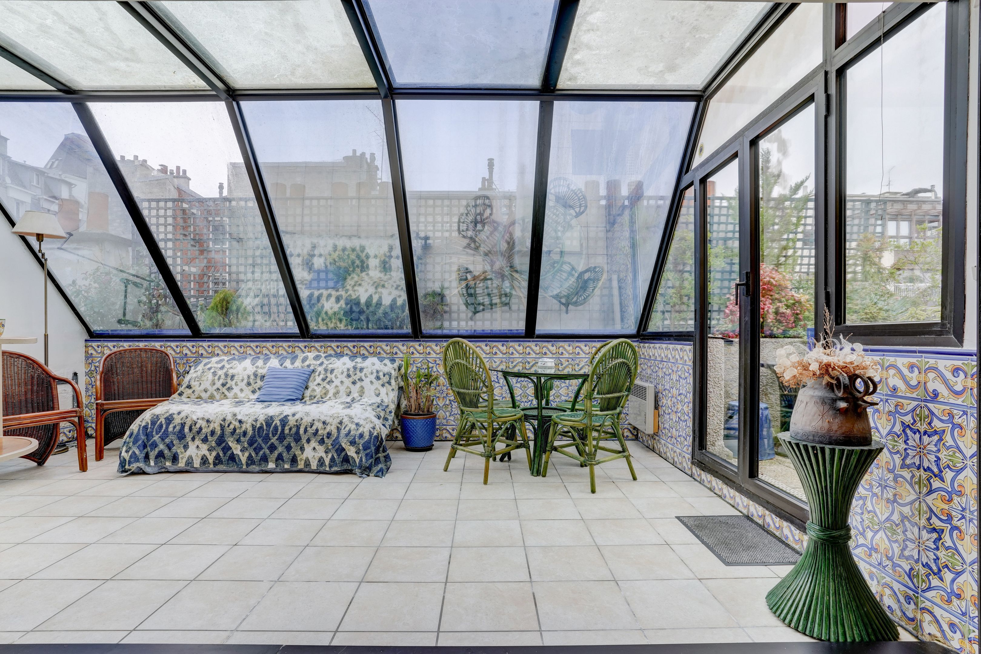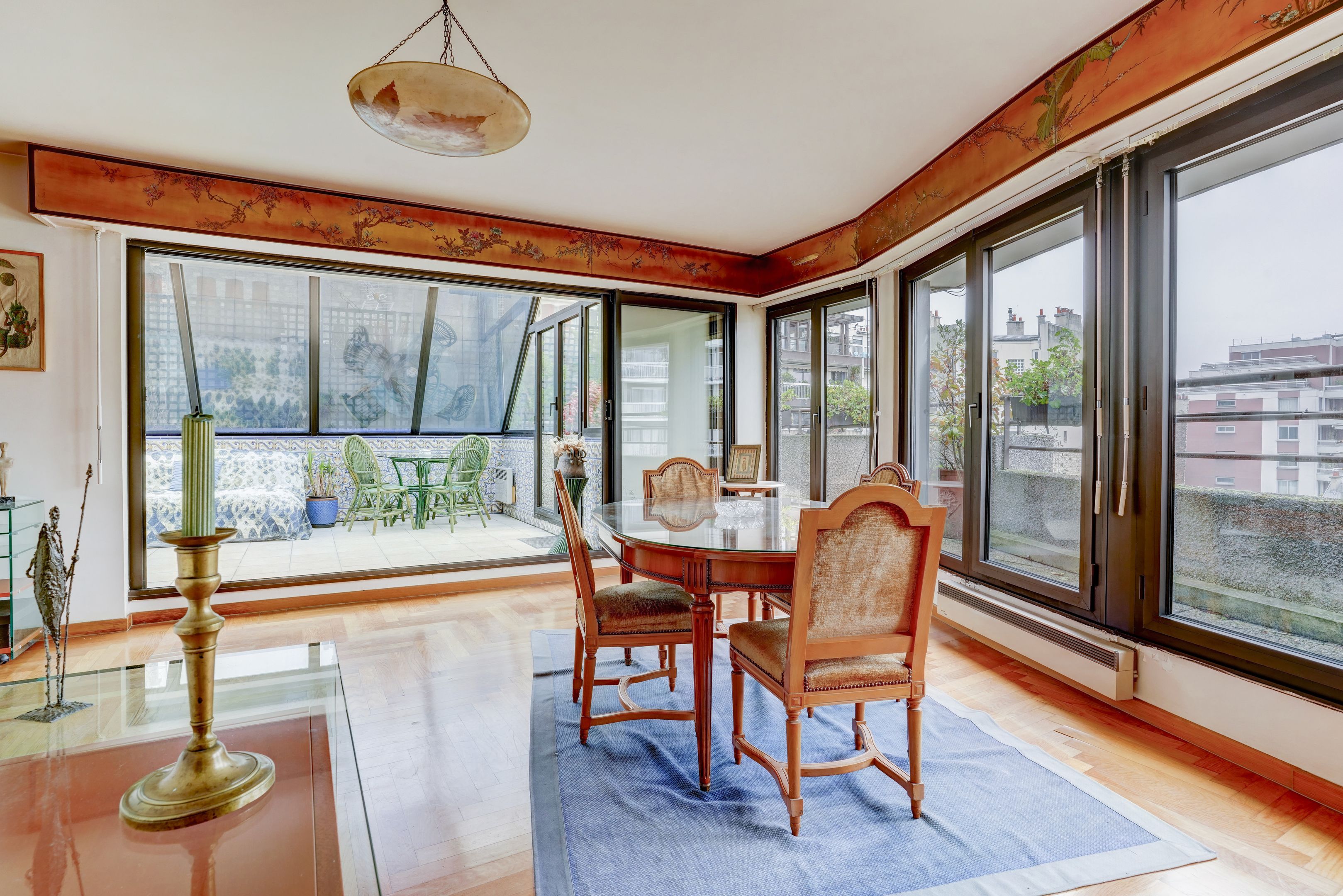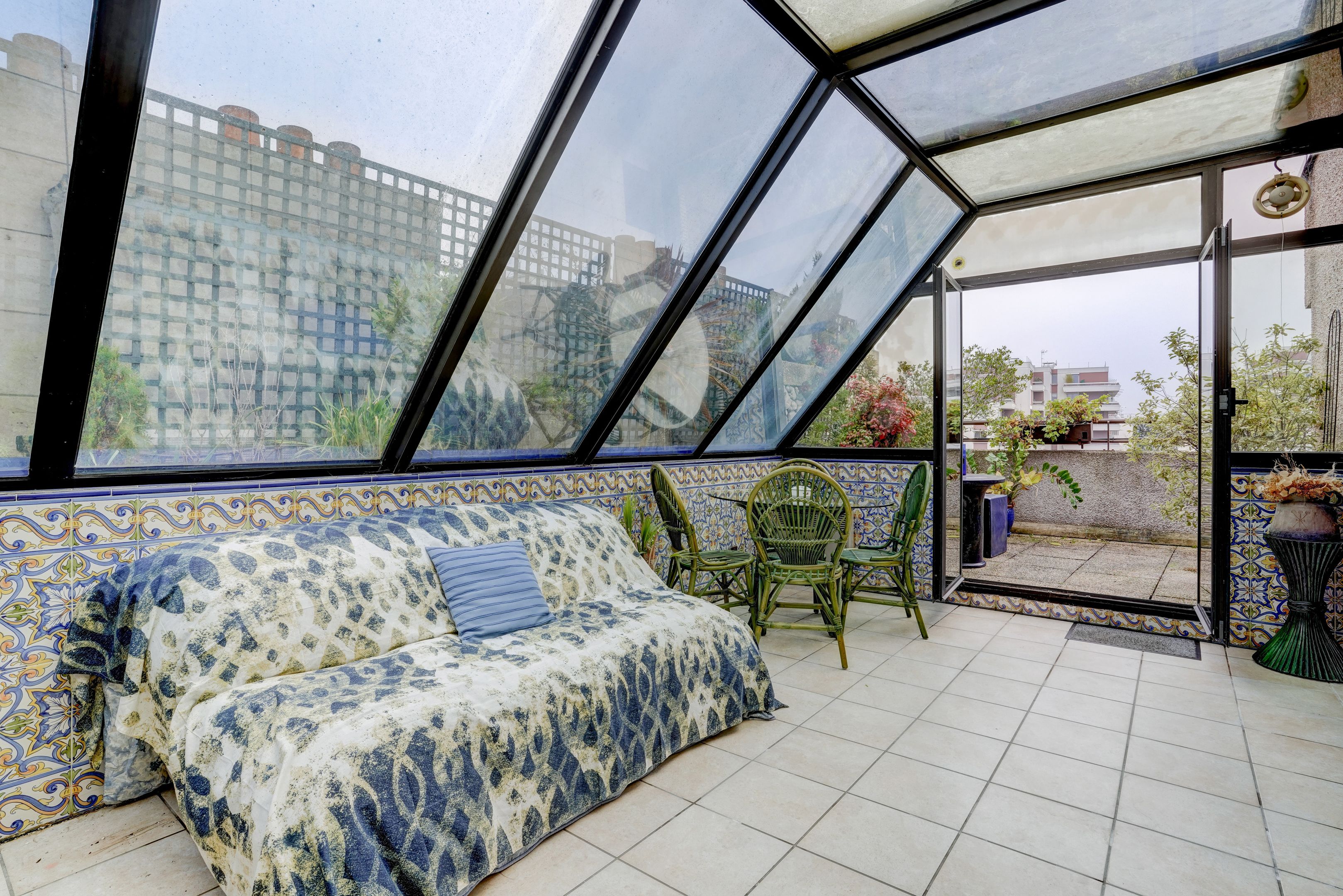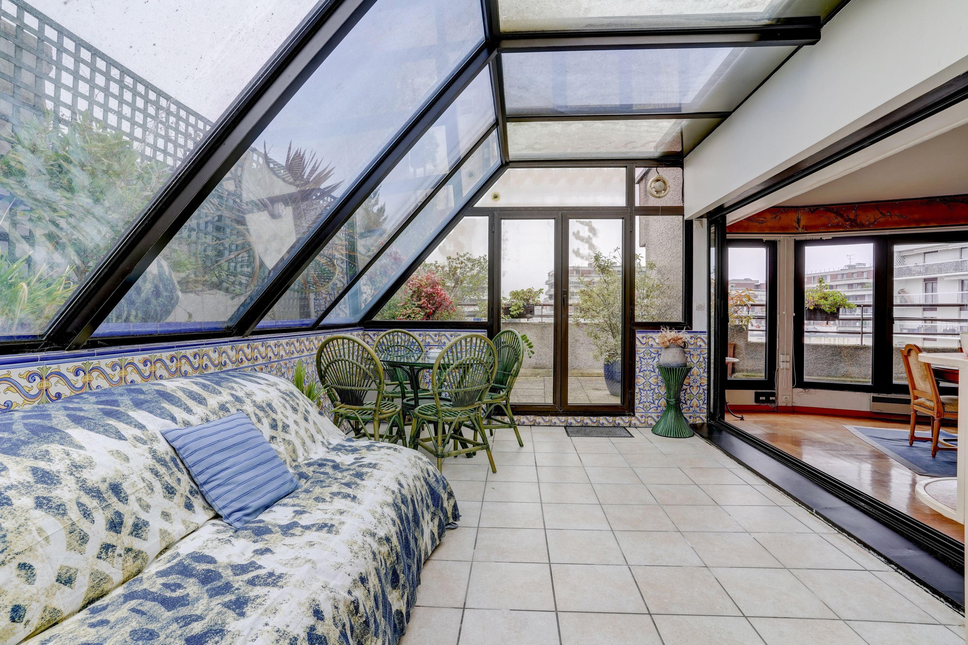 Entrance hall, living room and winter garden, open-plan kitchen, 2 bedrooms (possibility 3), 2 shower rooms, 2 toilets. 2 terraces extended by balconies, the first overlooking the south-east-facing garden, the second the north.
