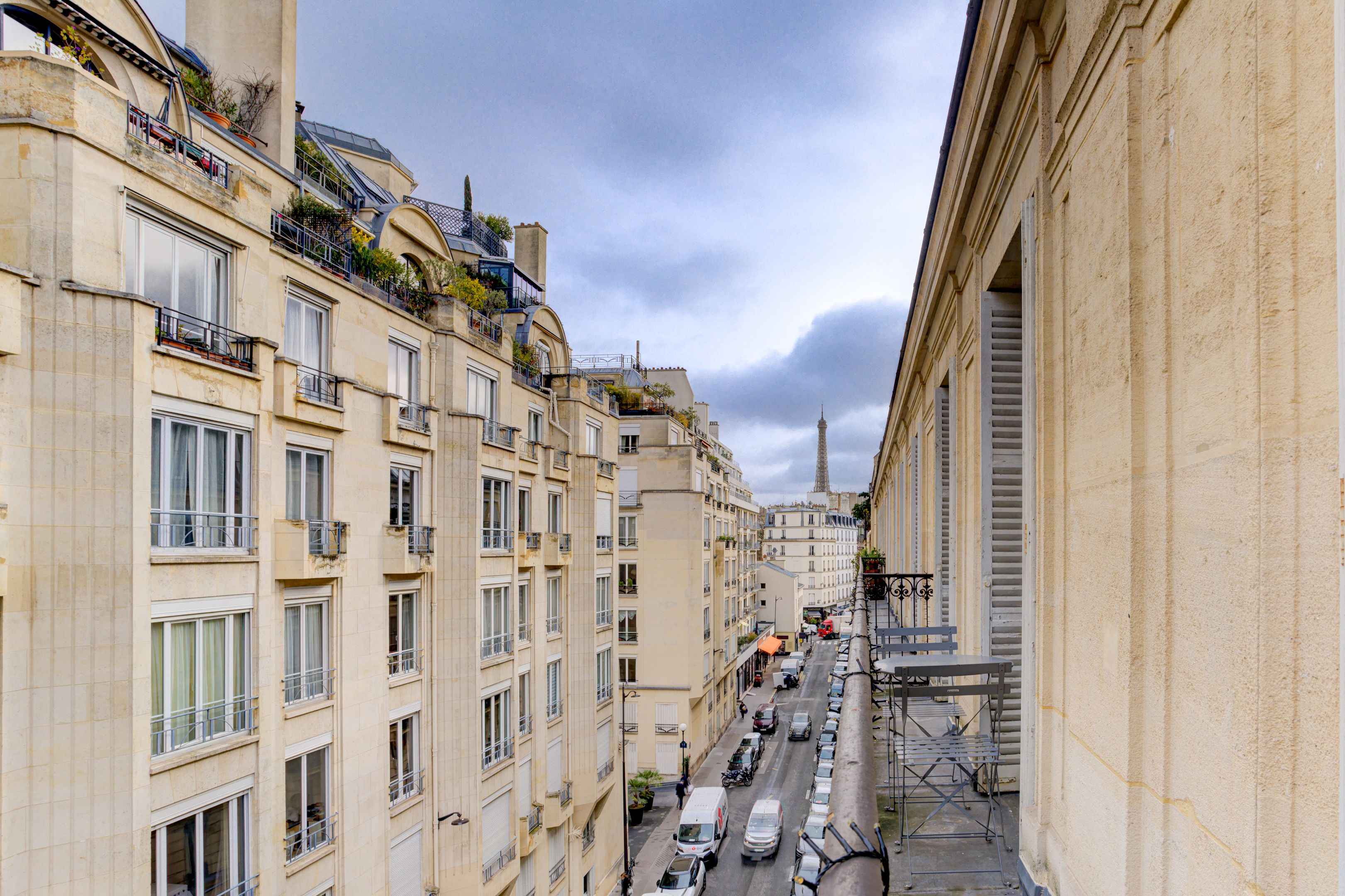 Ideally located a stone's throw from the shops on rue de la Pompe, renowned schools and transport links, in a luxury Haussmann-style building with well-kept communal areas, on the 4th floor, this 93m² apartment features parquet flooring, moldings and fireplaces, sunlight, a balcony with a view of the Eiffel Tower and a perfect floor plan. Entrance hall, vast double reception room, fitted and equipped kitchen, two bedrooms (possible 3rd bedroom) with built-in storage and unobstructed view of the garden, bathroom and separate toilet. On the 5th floor, accessible by the main elevator, 8m² service room, fitted and equipped. Cellar in basement.