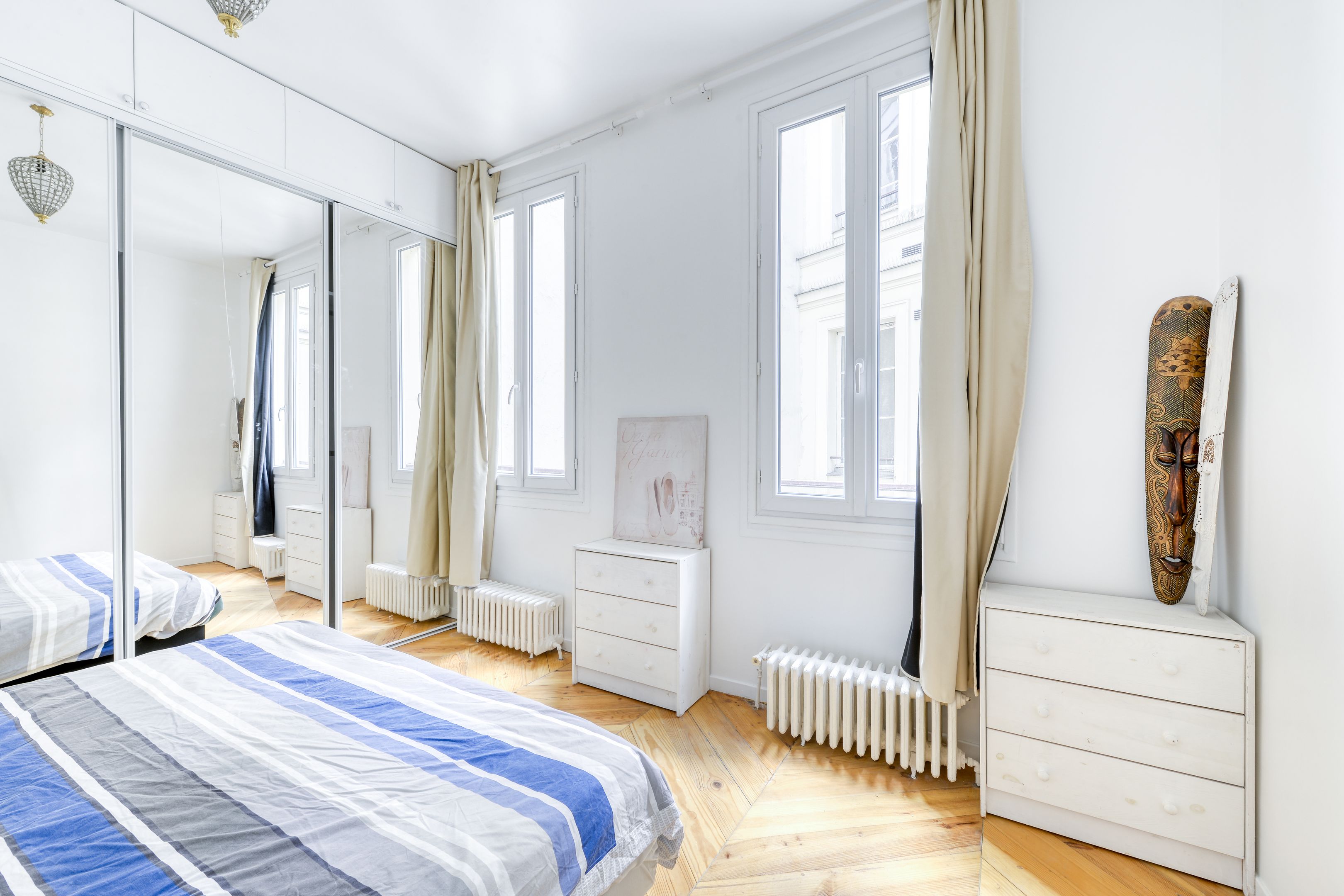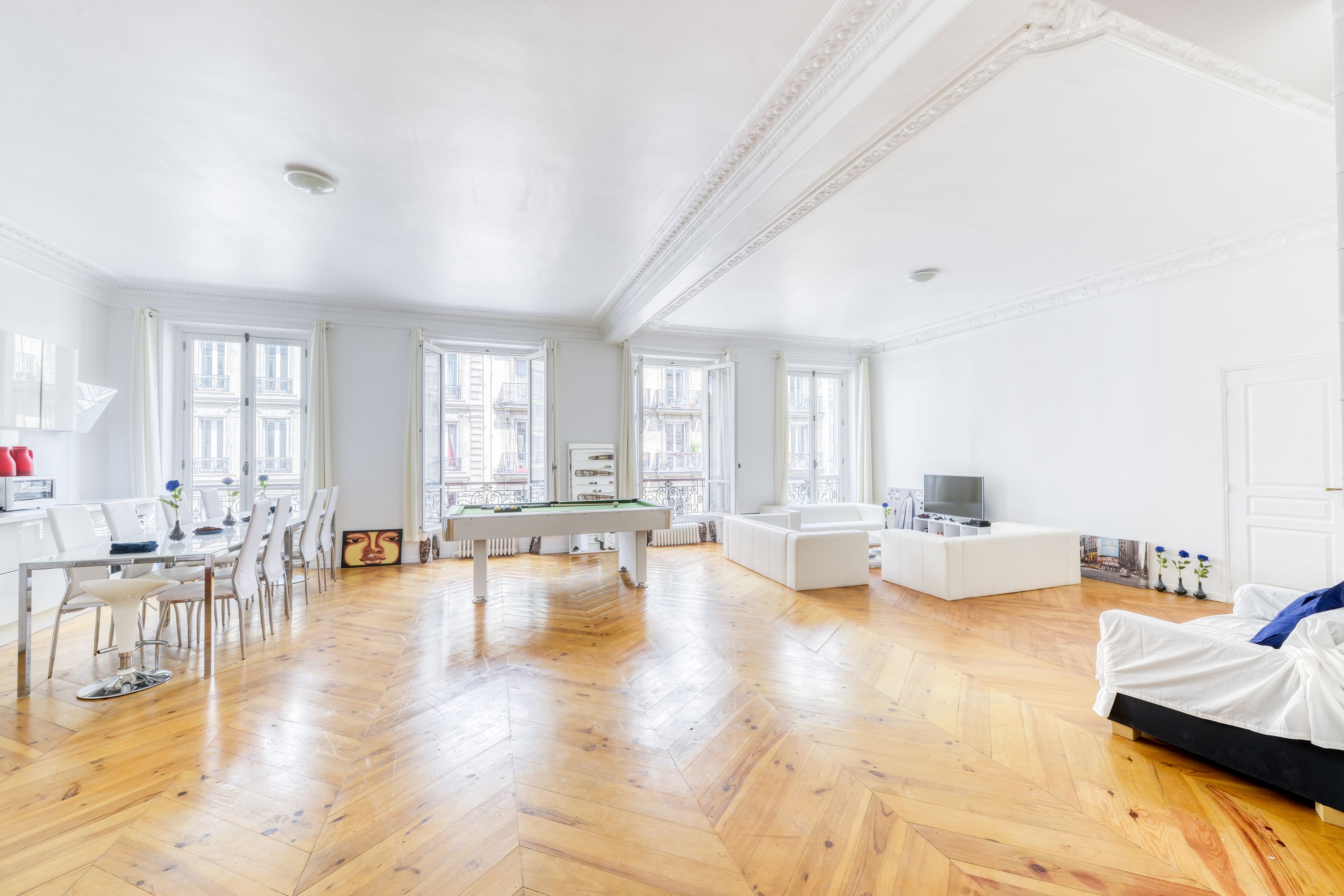 In the heart of the Trévise district, 125 m² apartment on the 3rd floor of a Haussmann building with elevator access. It features a large reception room with 4 windows and an open kitchen, three bedrooms, a bathroom and a shower room. Cellar.