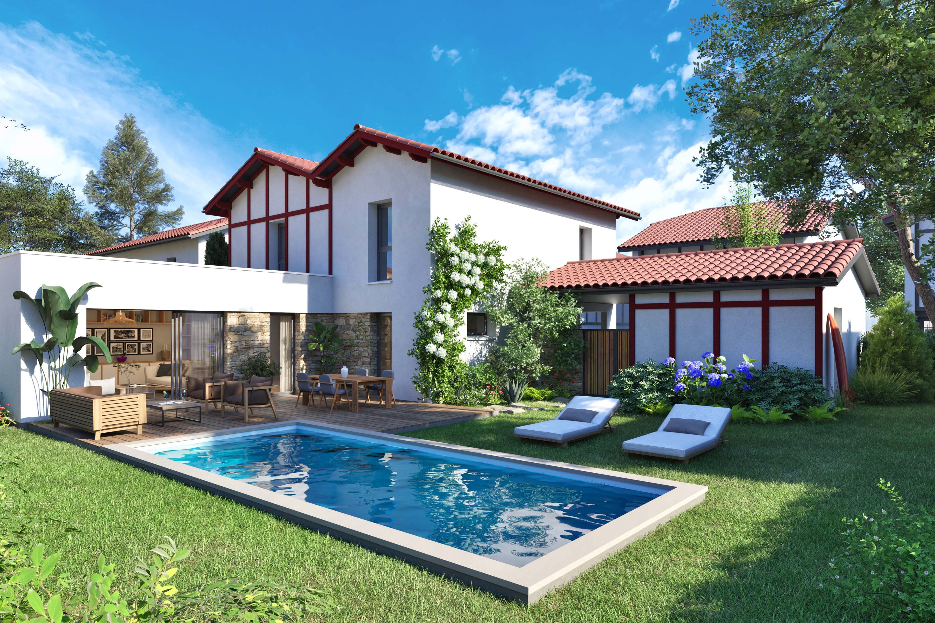 Just a few minutes from the beaches, in a private, secure estate in the heart of greenery and the "Cinq Cantons, Montbrun, Chiberta" golden triangle, a 154 m² house with high-quality, well-appointed features, available in the last quarter of 2027.