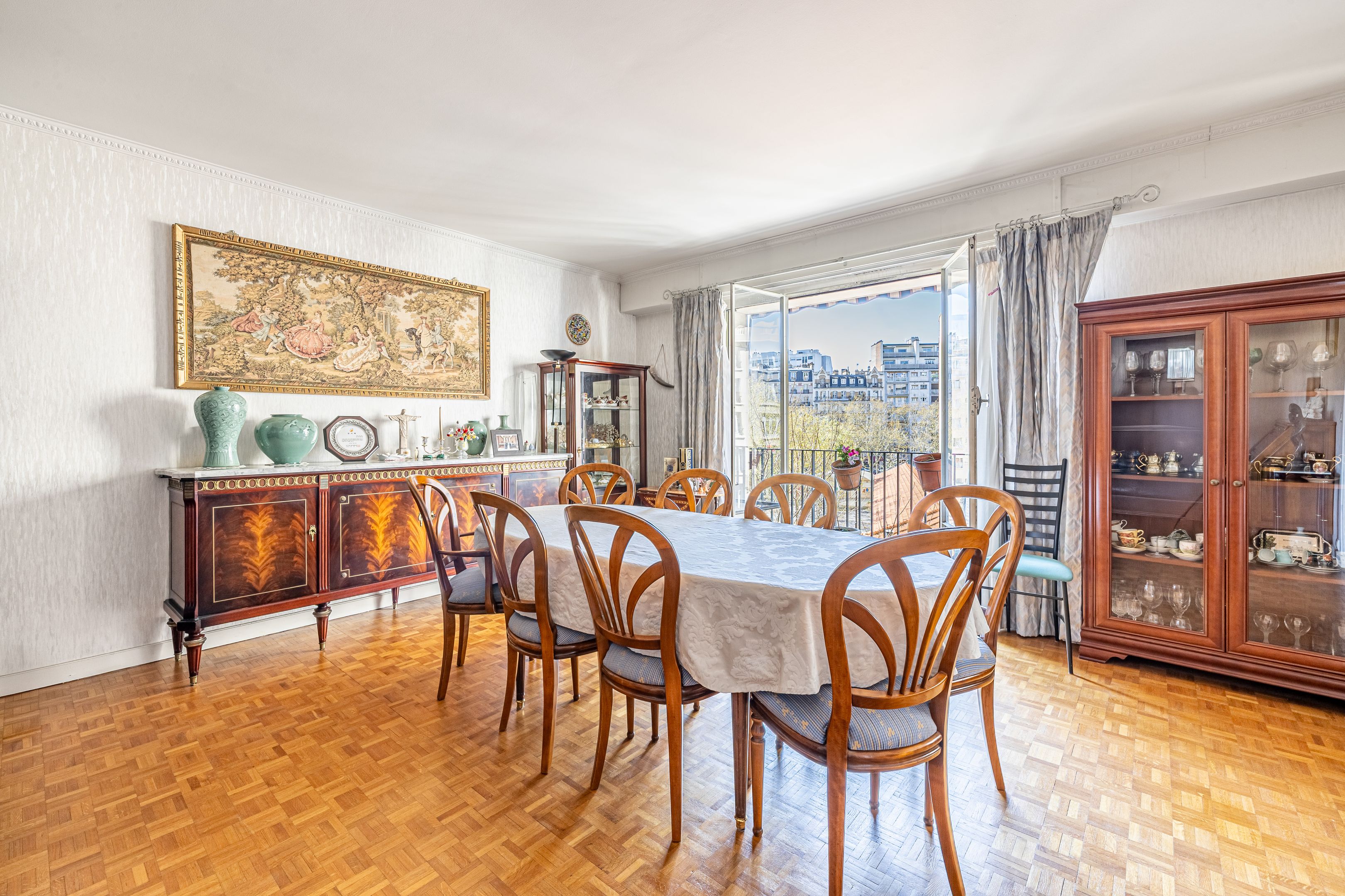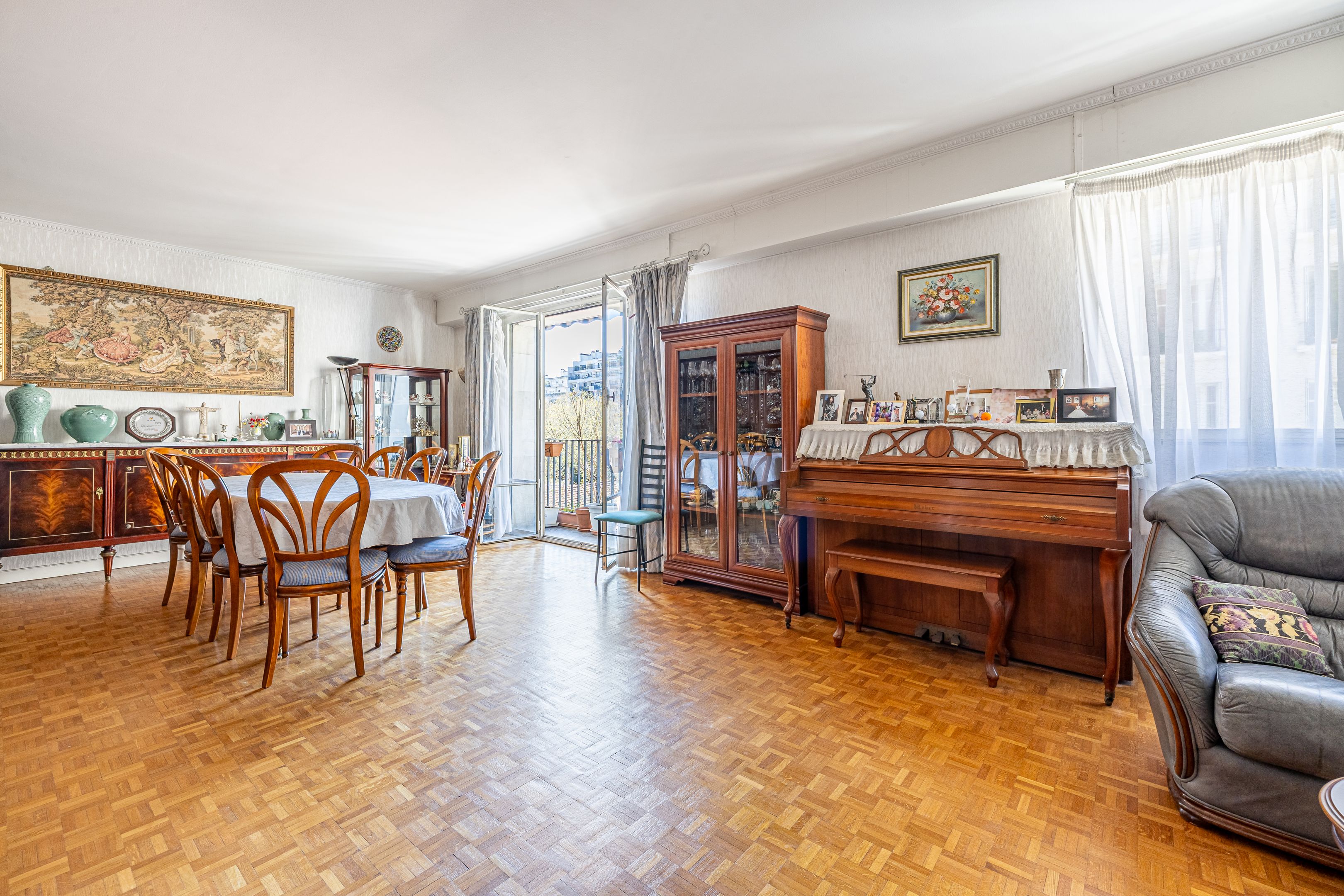 Just a stone's throw from rue d'Auteuil shops, Exelmans metro station and renowned schools, in a luxury building on the 3rd floor, bright, well-distributed 110m² apartment. Entrance hall, double living room, balcony, separate fitted and equipped kitchen, three good-sized bedrooms in quiet garden area, plenty of storage space, shower room with toilet, bathroom, guest toilet. Cellar.