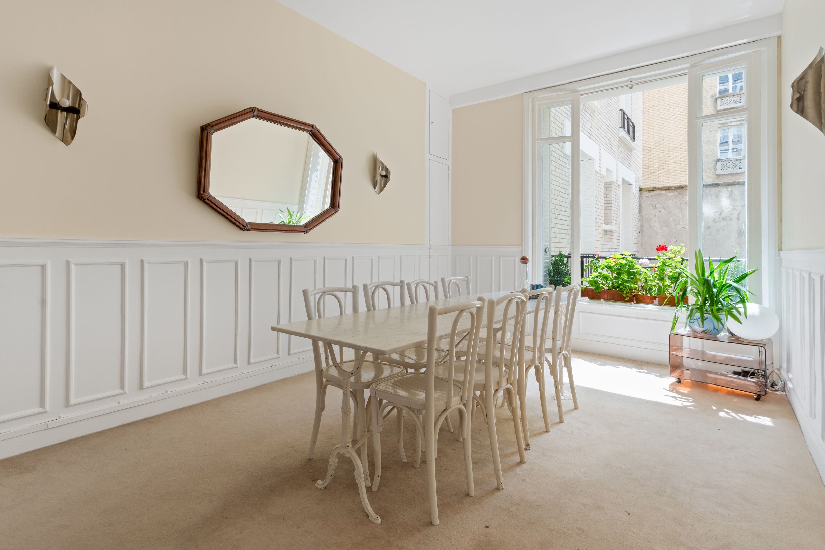 147m² first-floor apartment with elevator access, entrance hall, street-facing living room, courtyard dining room that could be converted into a fourth bedroom, kitchen/dining room, three good-sized bedrooms with ample storage space, as well as two bathrooms and two toilets. Cellar.