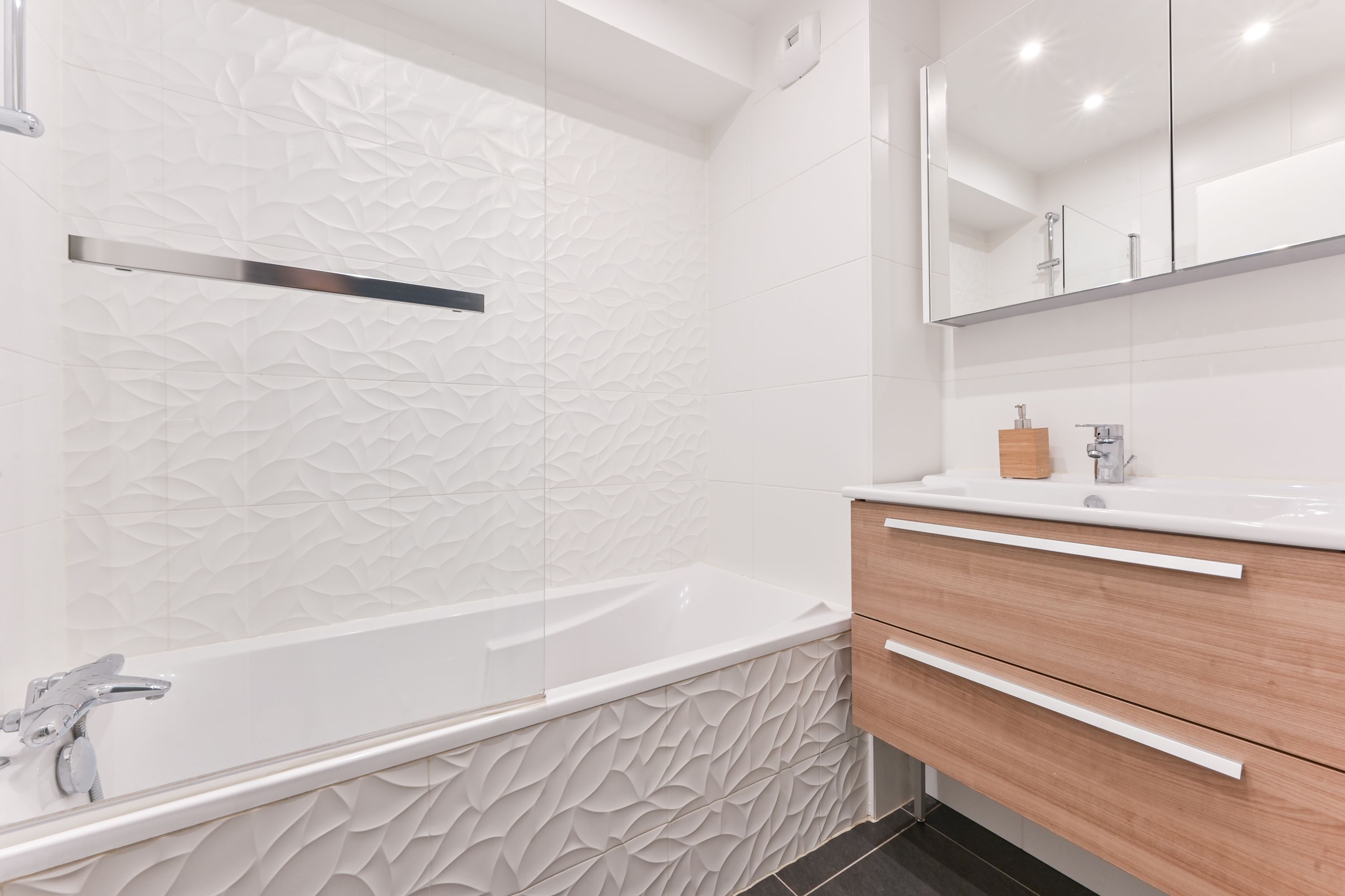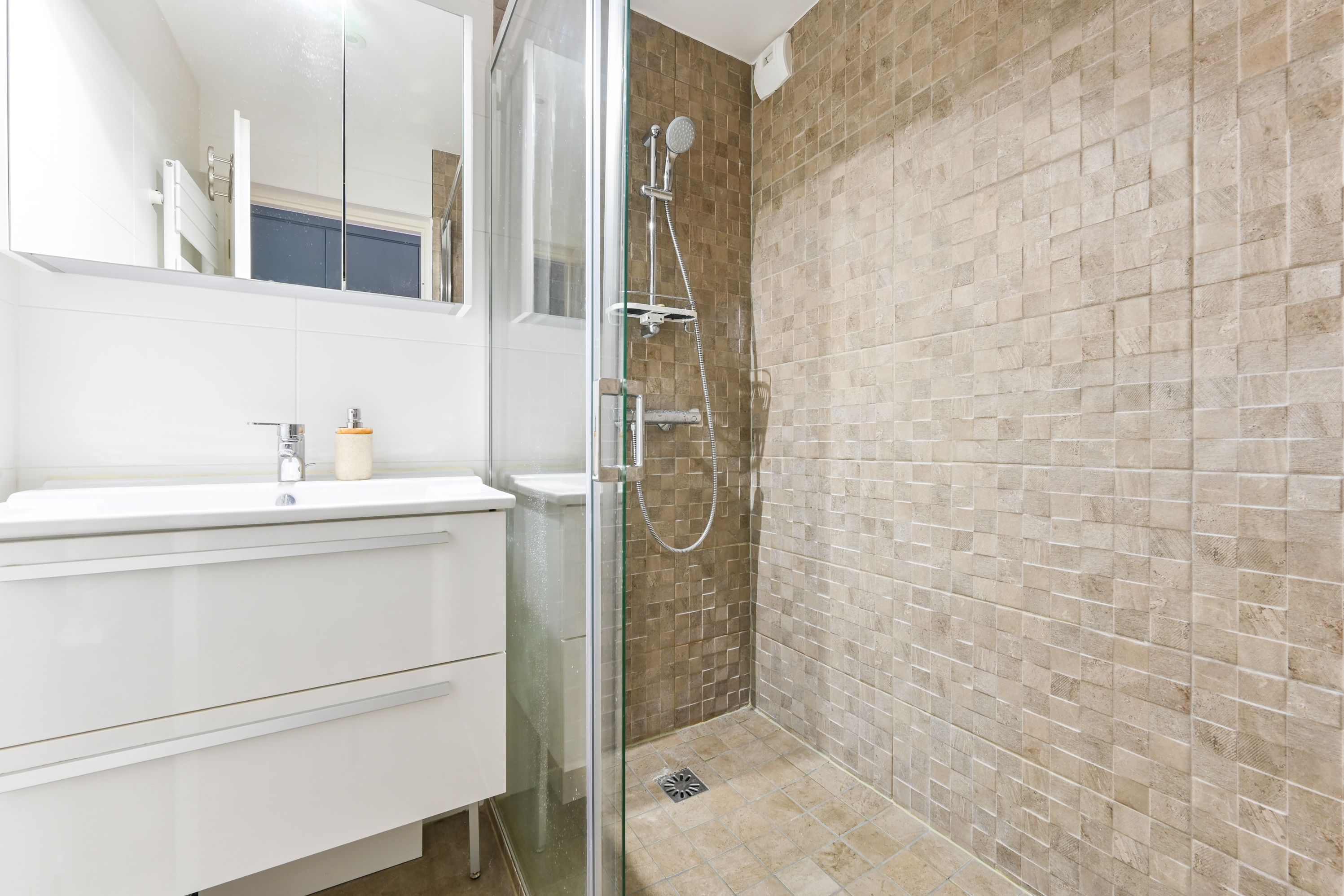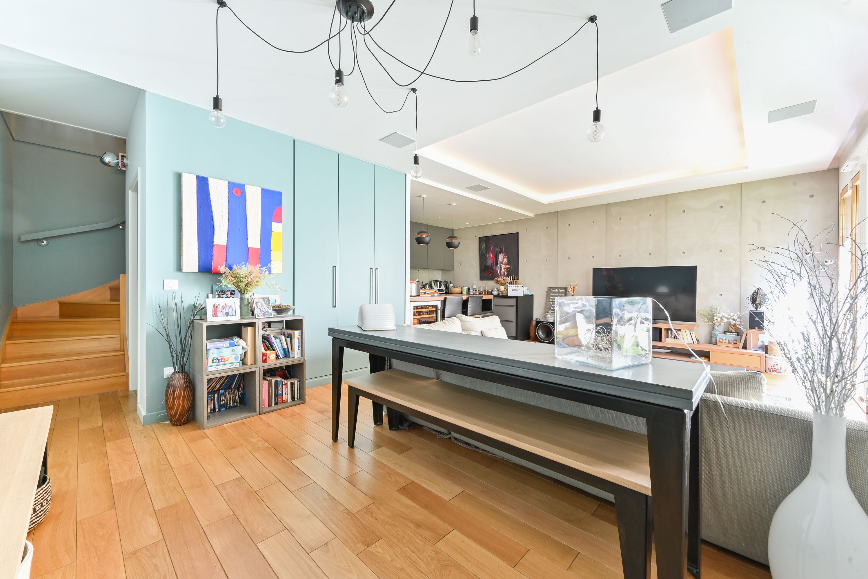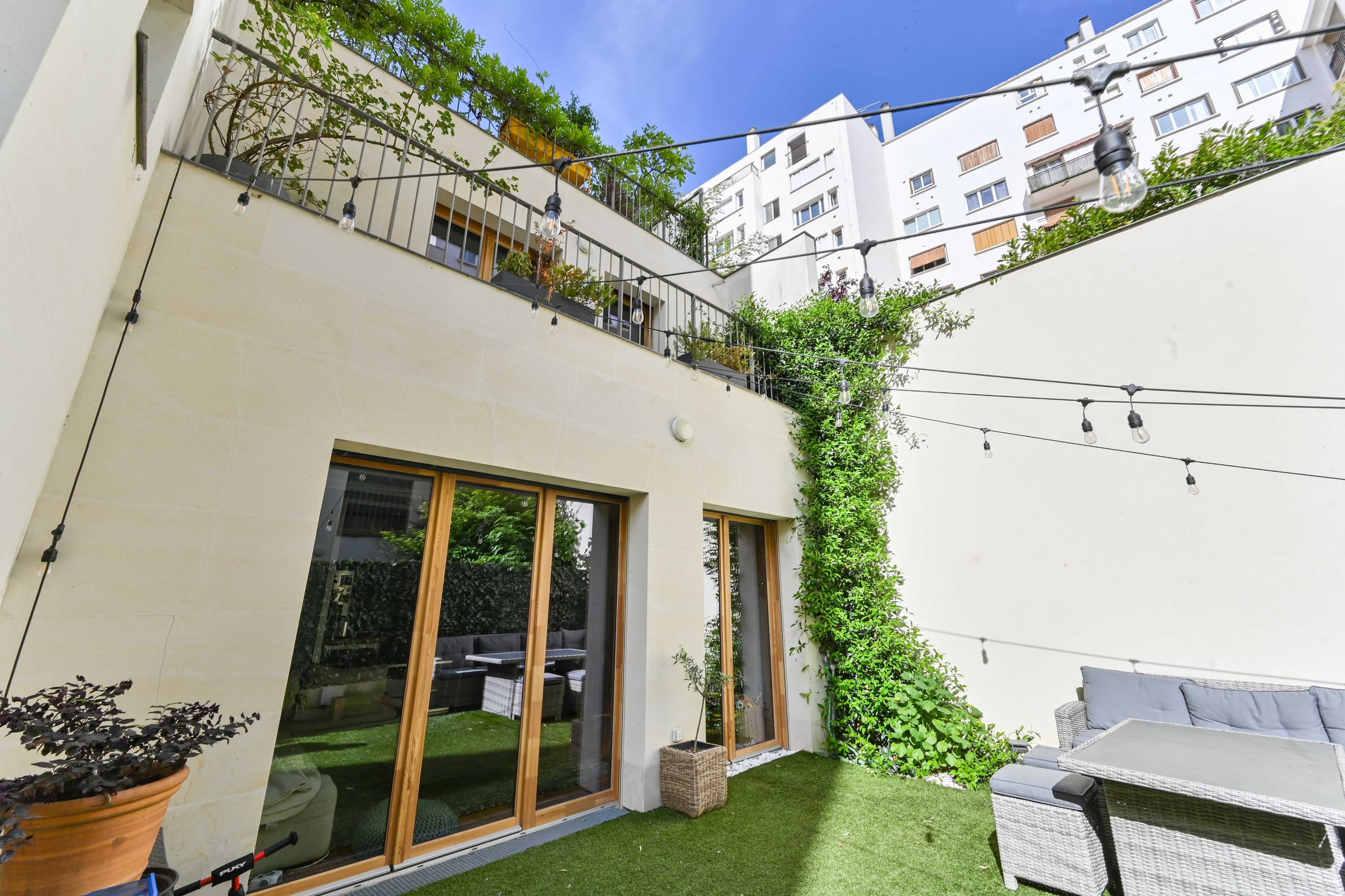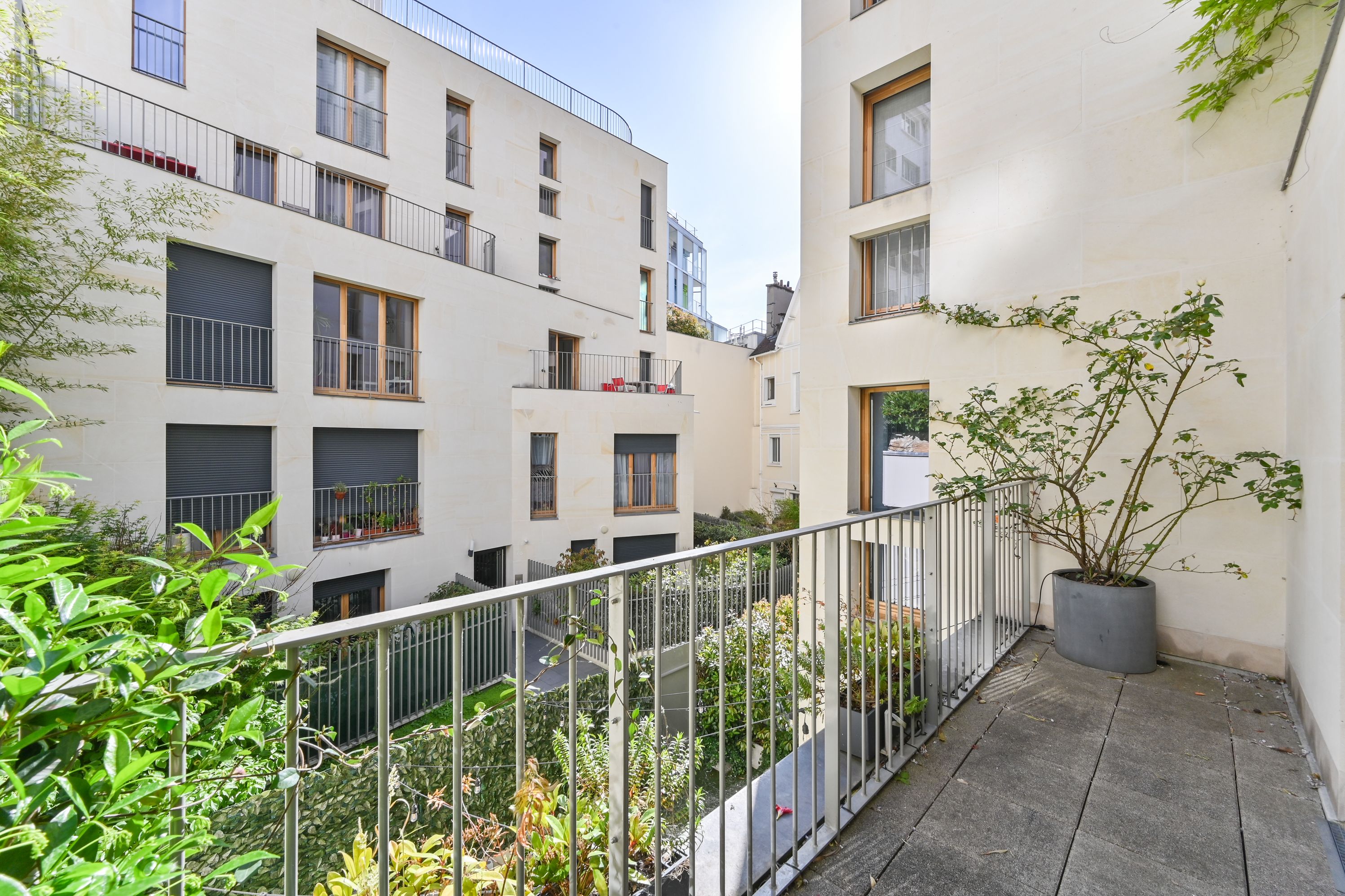 High-quality 2017 building with well-kept communal areas, benefiting from good sectorization (Claude Debussy). Elegant duplex apartment in excellent condition, 116.07m² (111.12m² Carrez), in a quiet courtyard setting, with several outdoor areas.