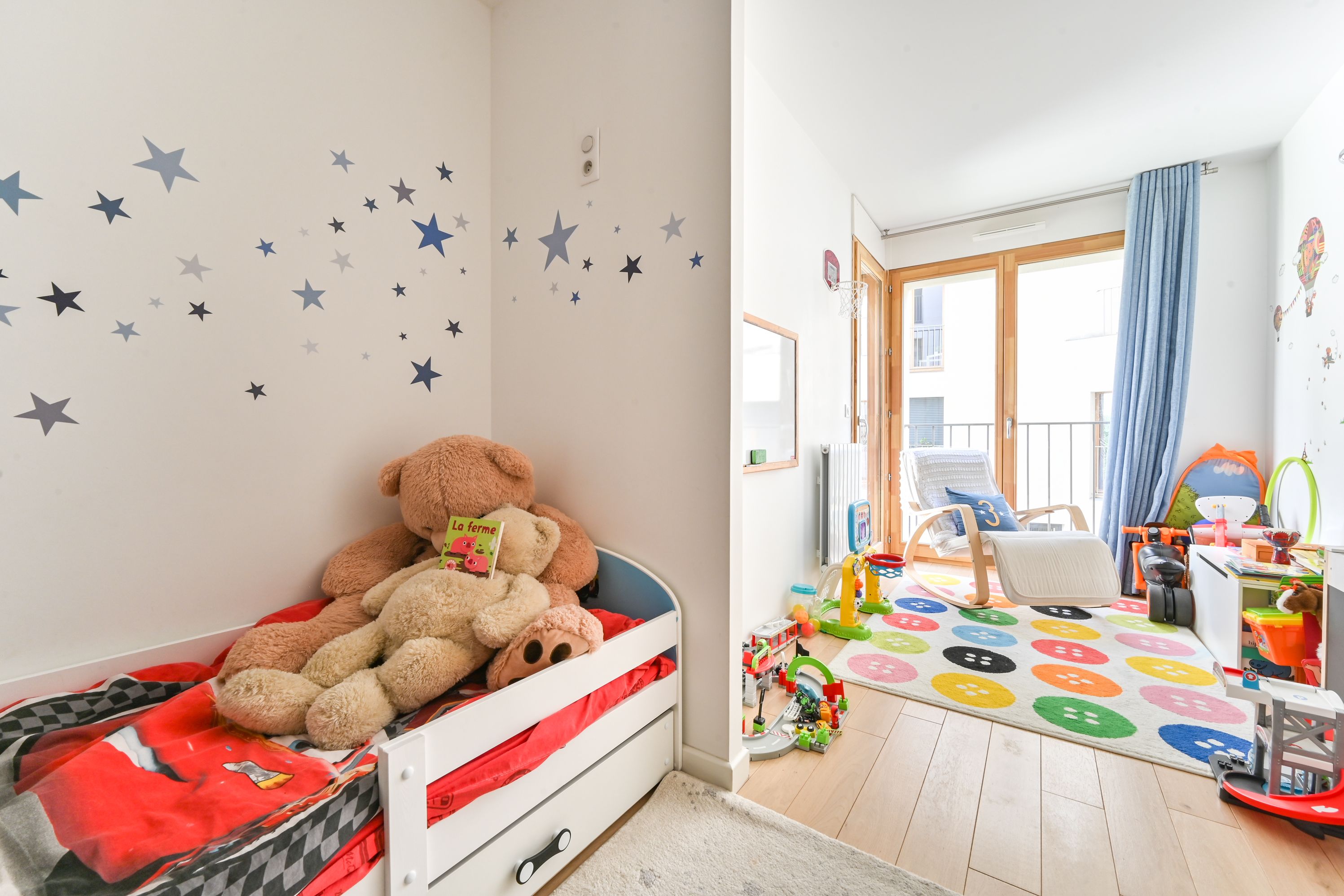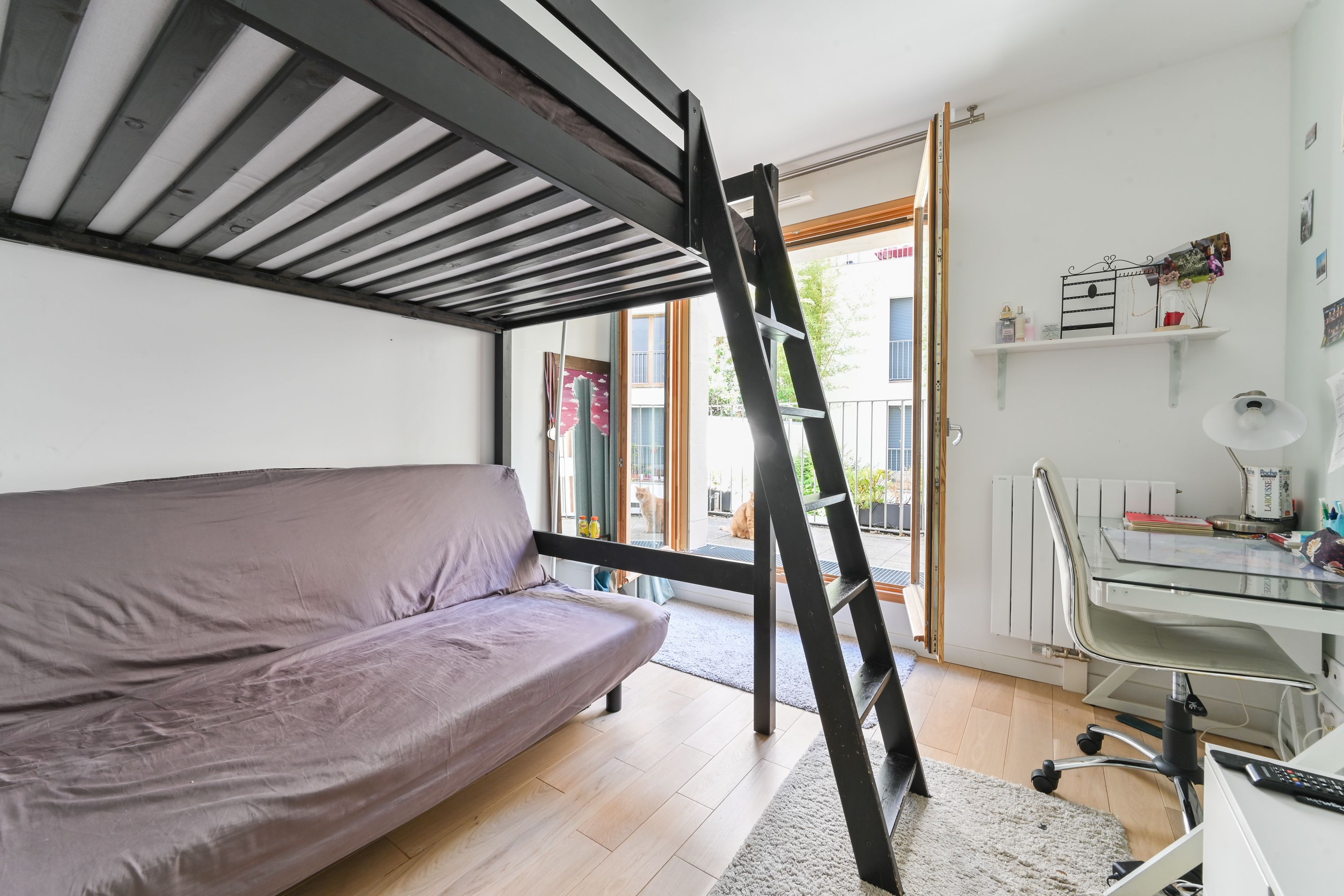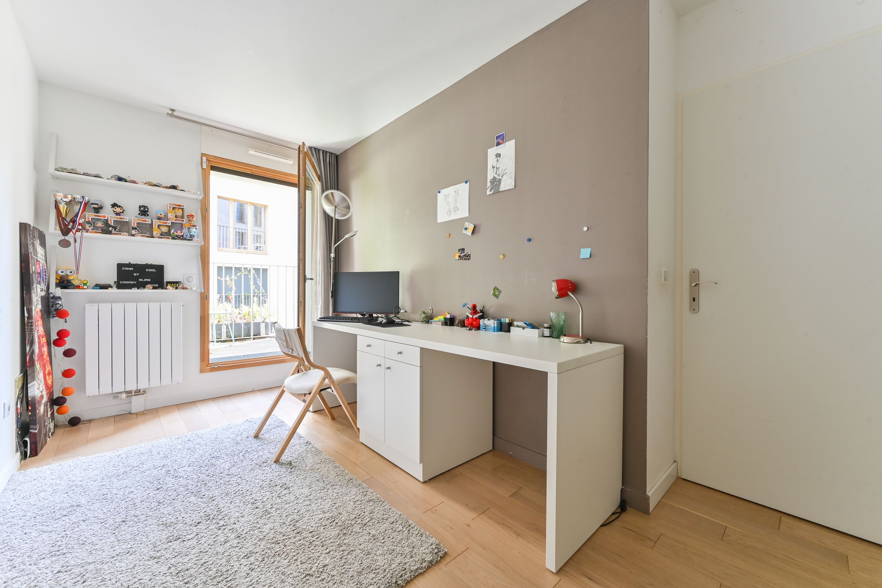 Second floor: three bedrooms, two of which open onto a large 7m² balcony, a master suite with study area and shower room, bathroom, separate toilet. Home automation system available in the apartment.