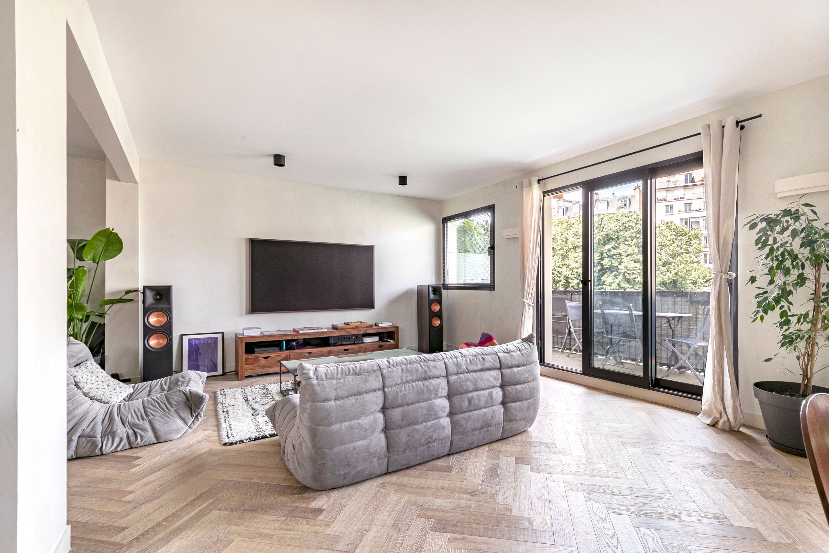 Commerce-Félix Faure. Close to shops, transport and schools. On the third floor, accessible by elevator, of a beautiful, secure and well-maintained recent building, superb family apartment entirely renovated with care and benefiting from an exemplary floor plan and plenty of sunlight. Entrance hall, vast 50m² west-facing living room opening onto a large 8.20m² balcony/terrace with unobstructed views, open-plan fitted and equipped kitchen, three bedrooms, one bathroom, two shower rooms, two toilets, plenty of storage space. (Possibility of separating into two apartments as originally). Cellar of 4.50m². Exclusive to Breteuil.