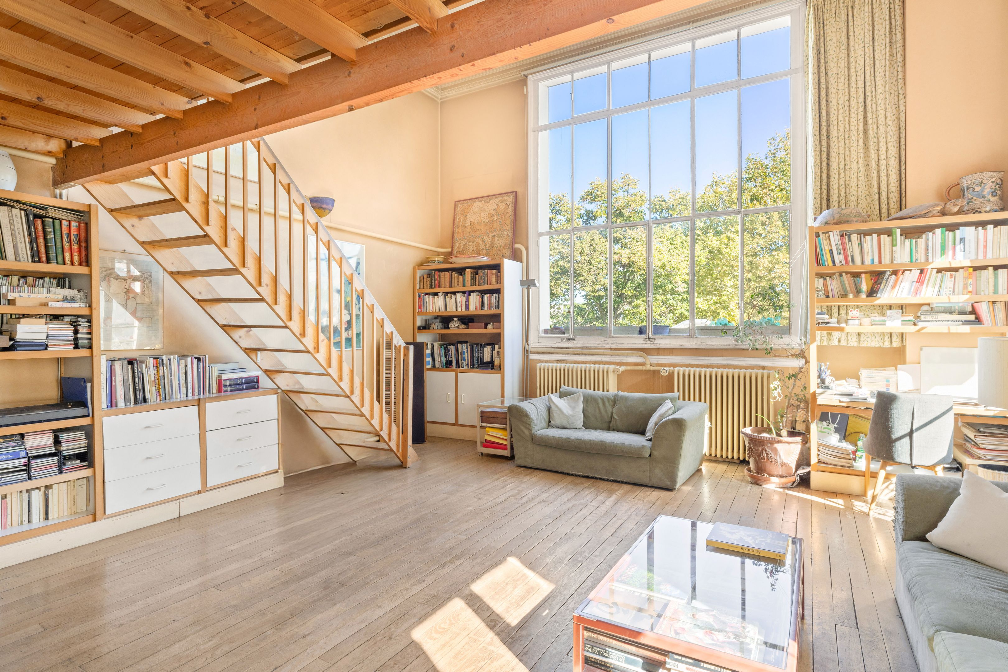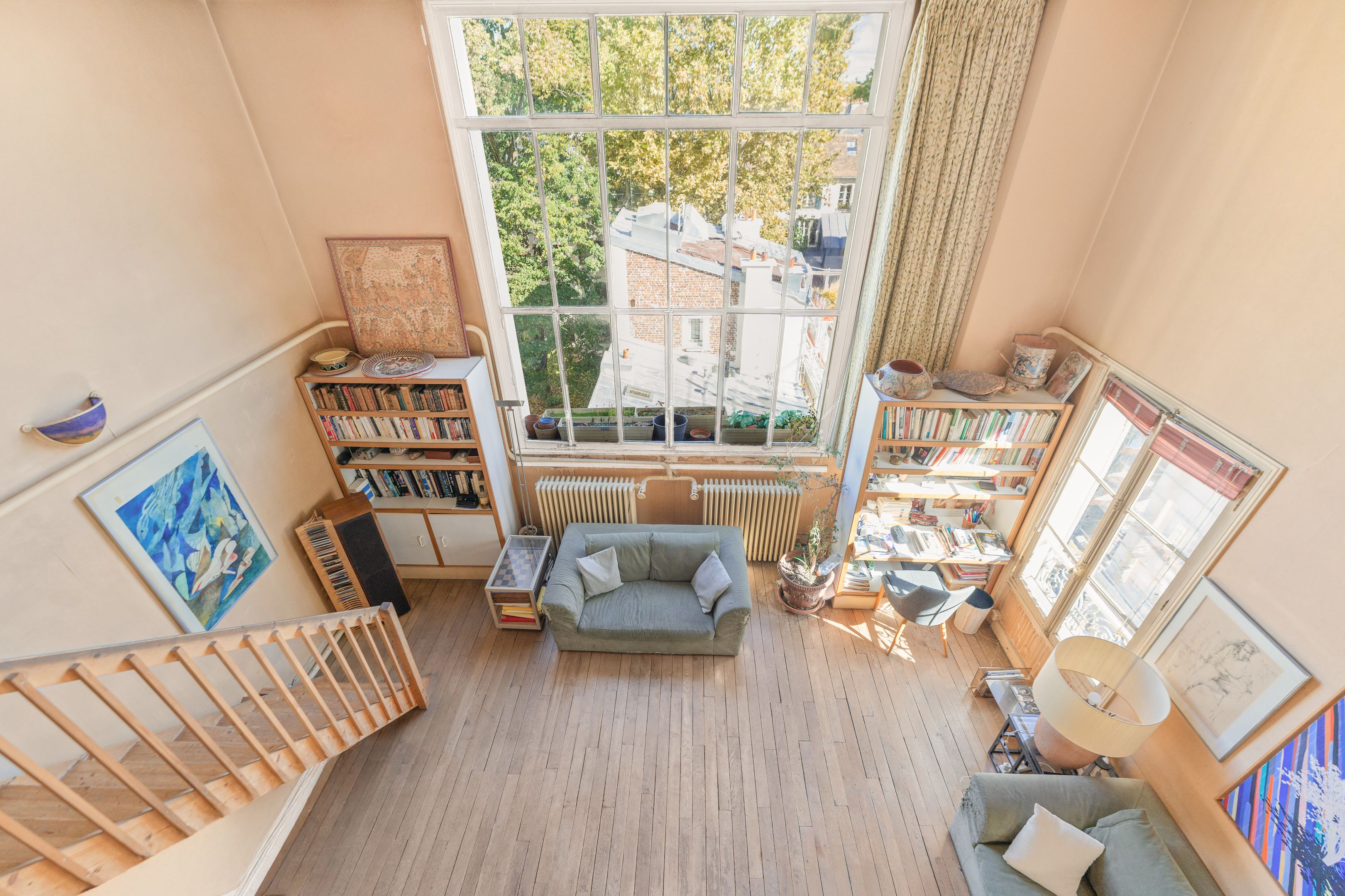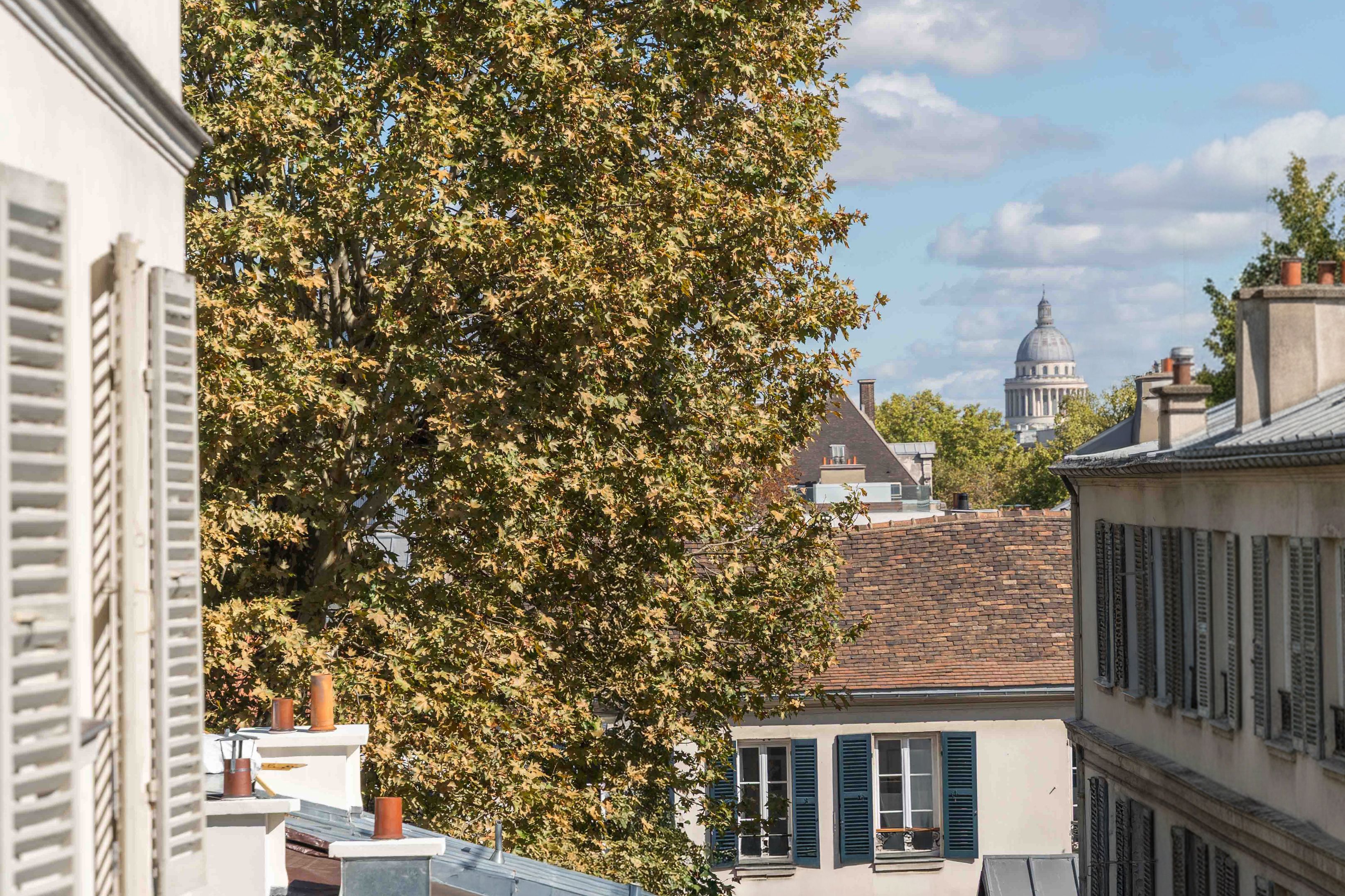 This former artist's studio on the 3rd floor, served by a staircase, is quiet, luminous and has a unique cachet. Entrance hall, vast living room with 4.6 m high ceilings, mezzanine and large glass roof overlooking the Pantheon dome, dining room, separate kitchen, 3 bedrooms (1 on mezzanine), shower room and toilet, plenty of storage space. Cellar.