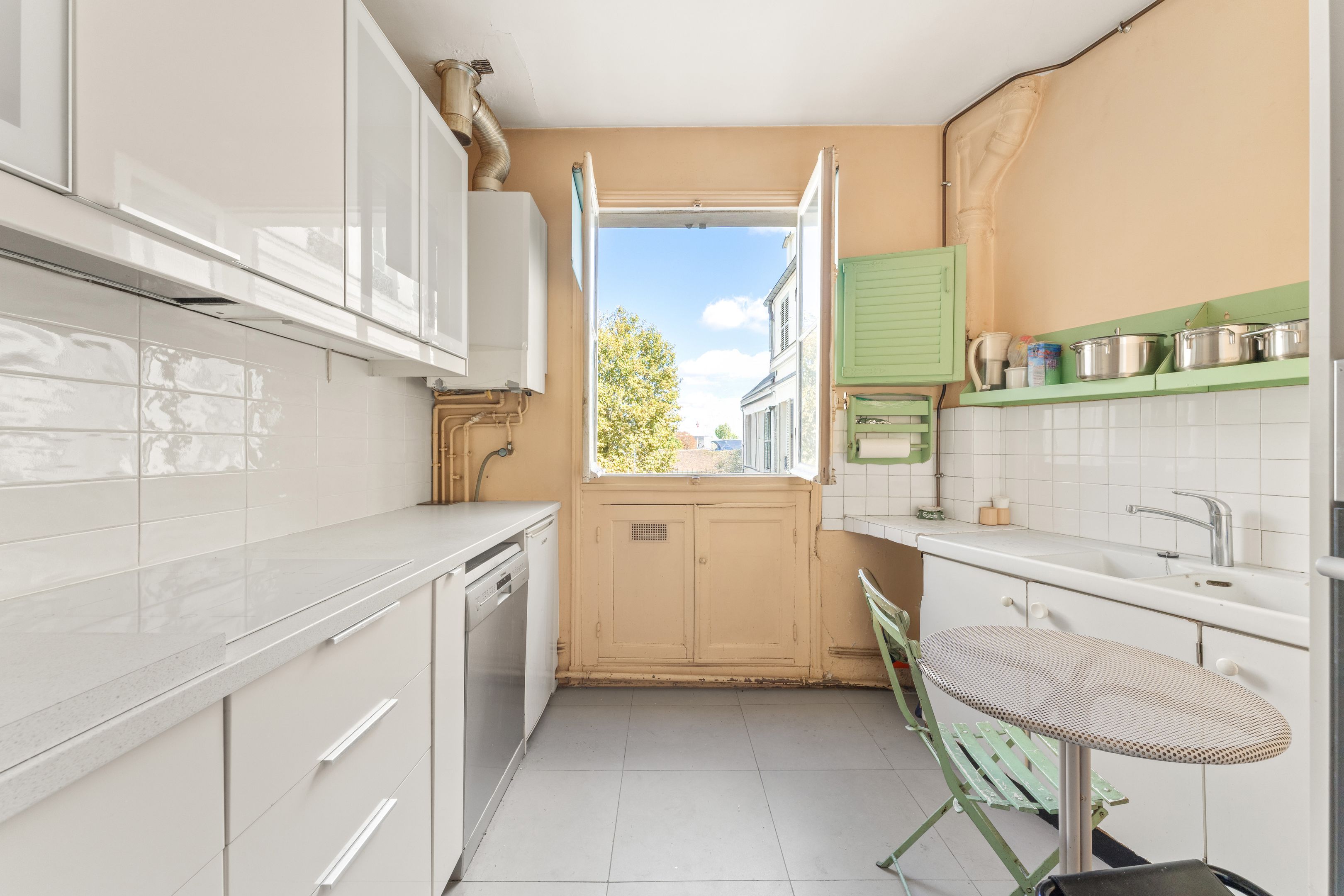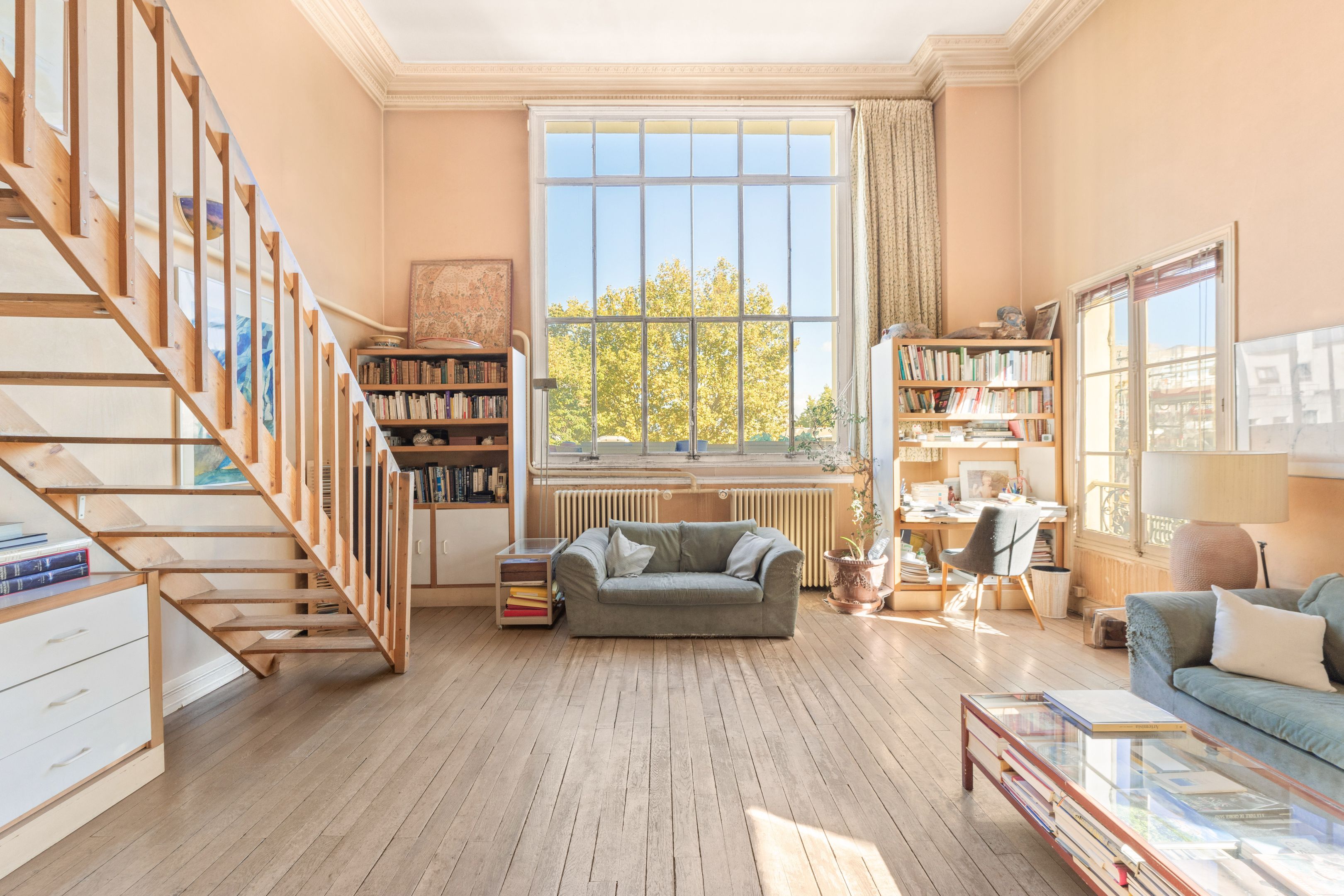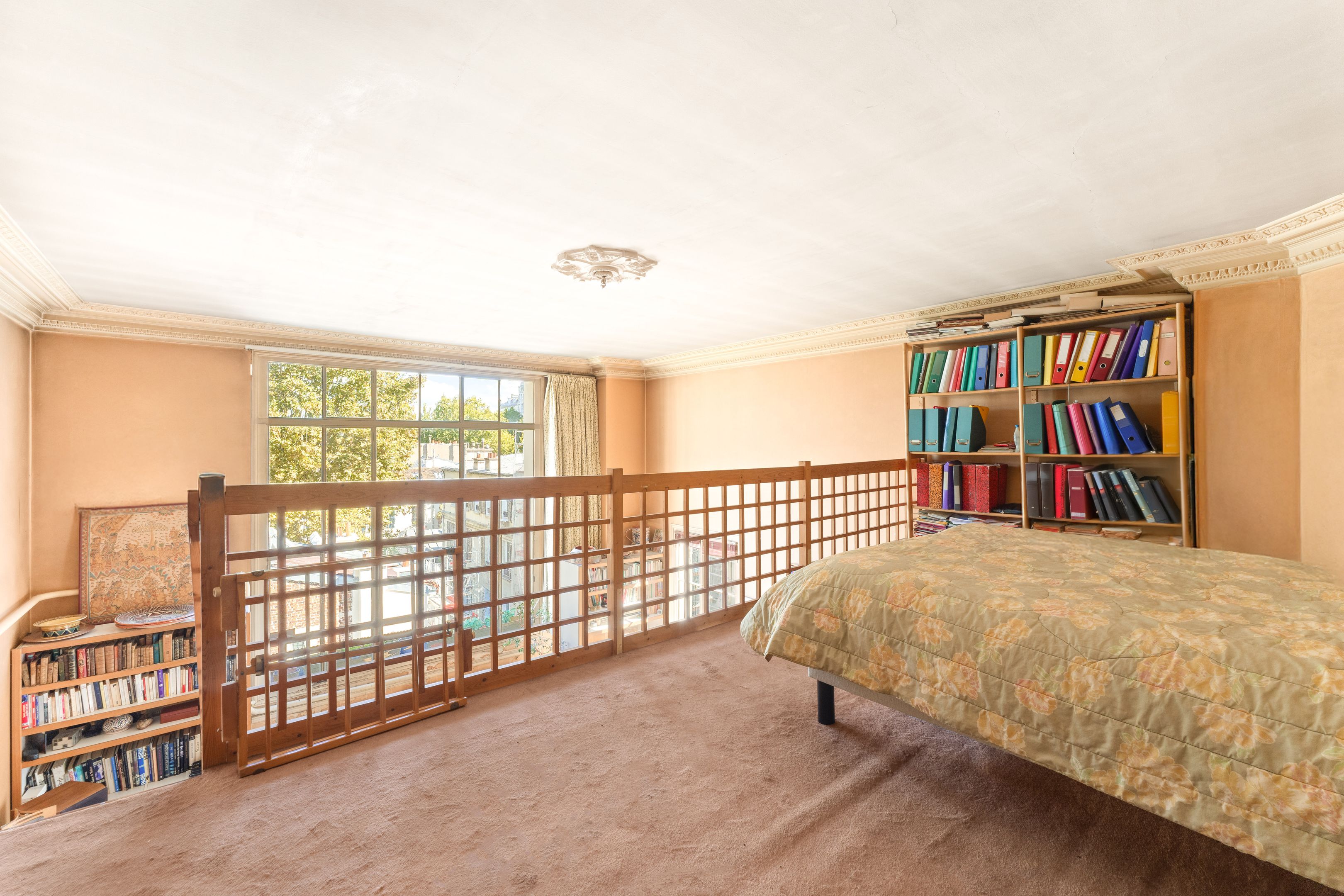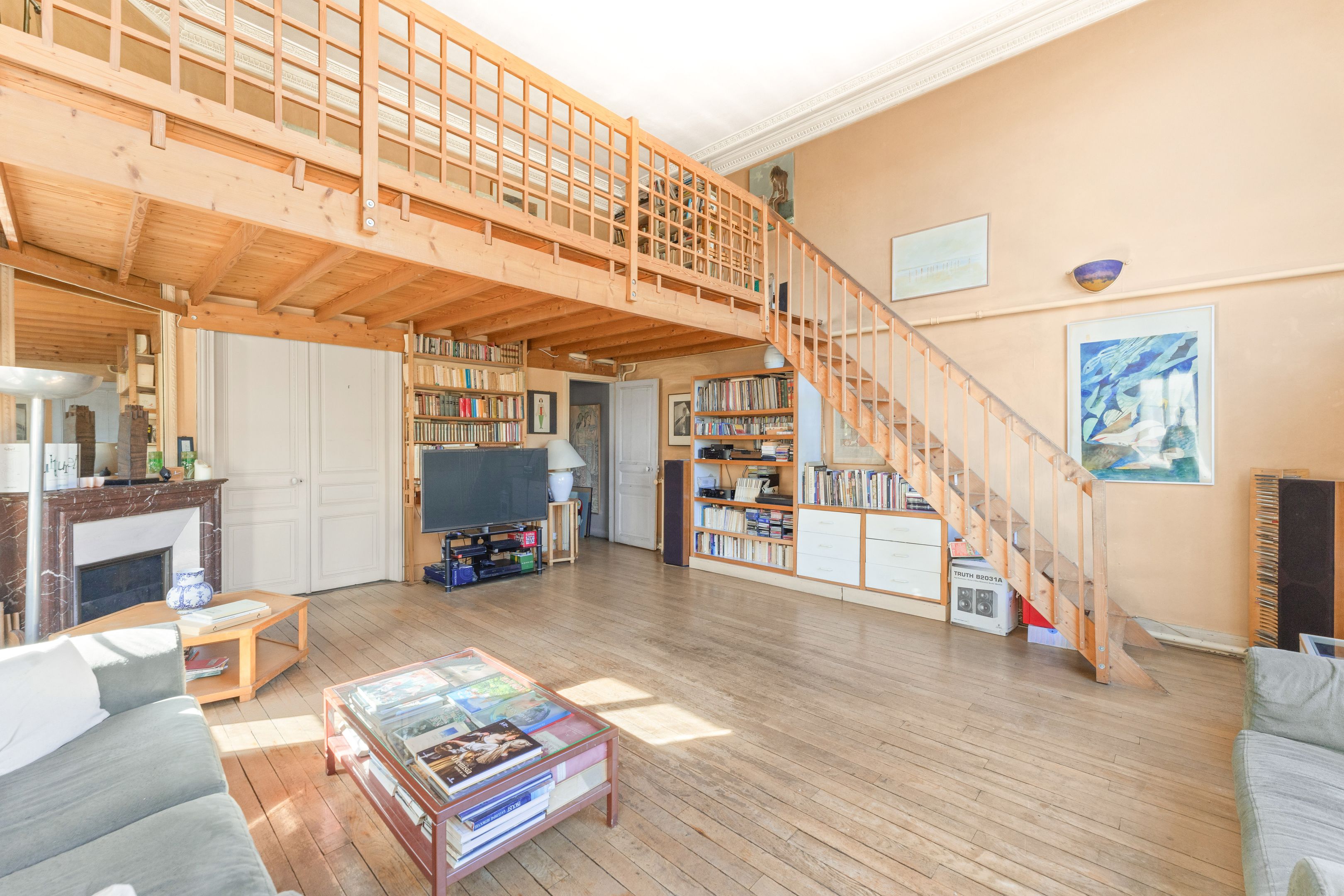 This former artist's studio on the 3rd floor, served by a staircase, is quiet, luminous and has a unique cachet. Entrance hall, vast living room with 4.6 m high ceilings, mezzanine and large glass roof overlooking the Pantheon dome, dining room, separate kitchen, 3 bedrooms (1 on mezzanine), shower room and toilet, plenty of storage space. Cellar.