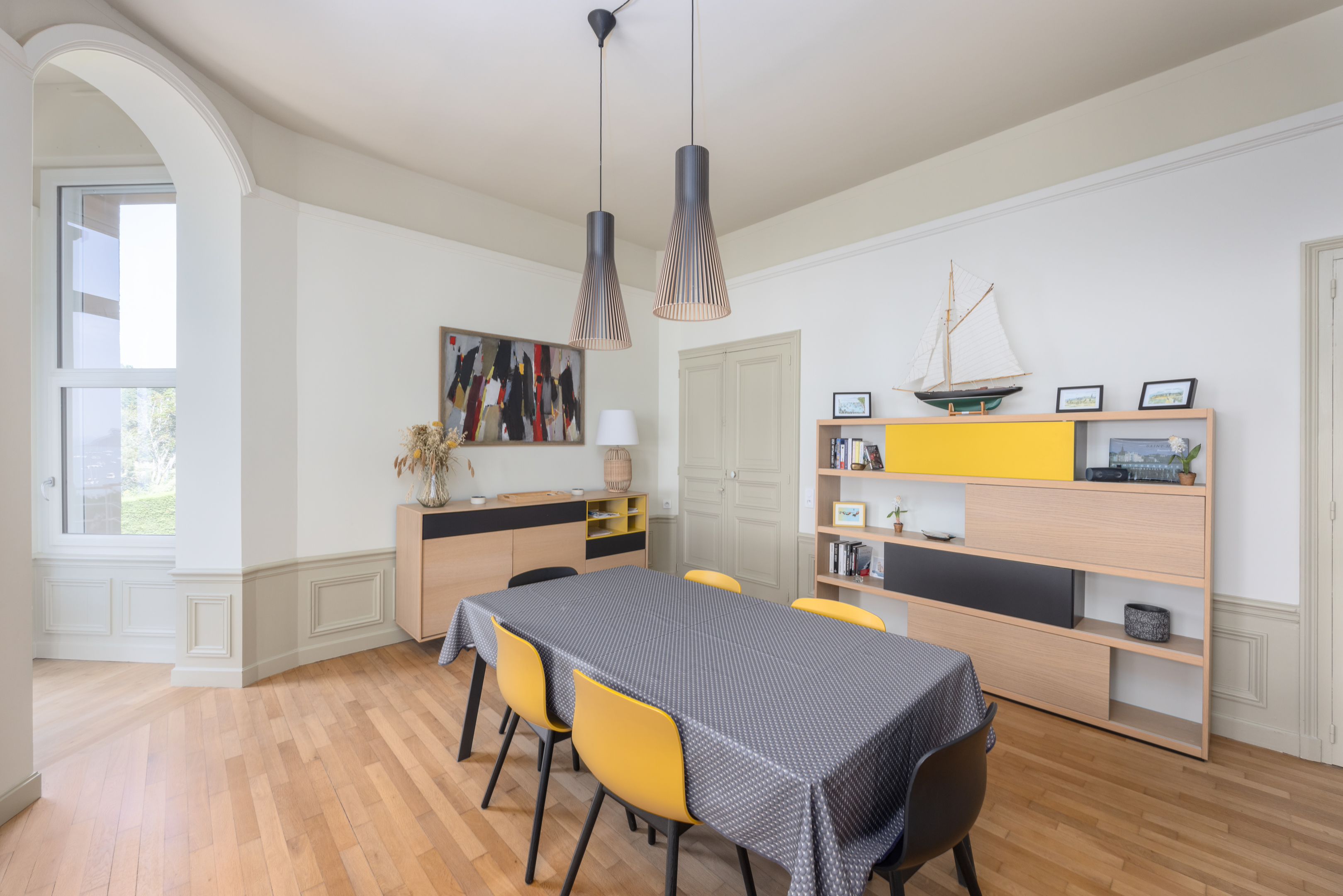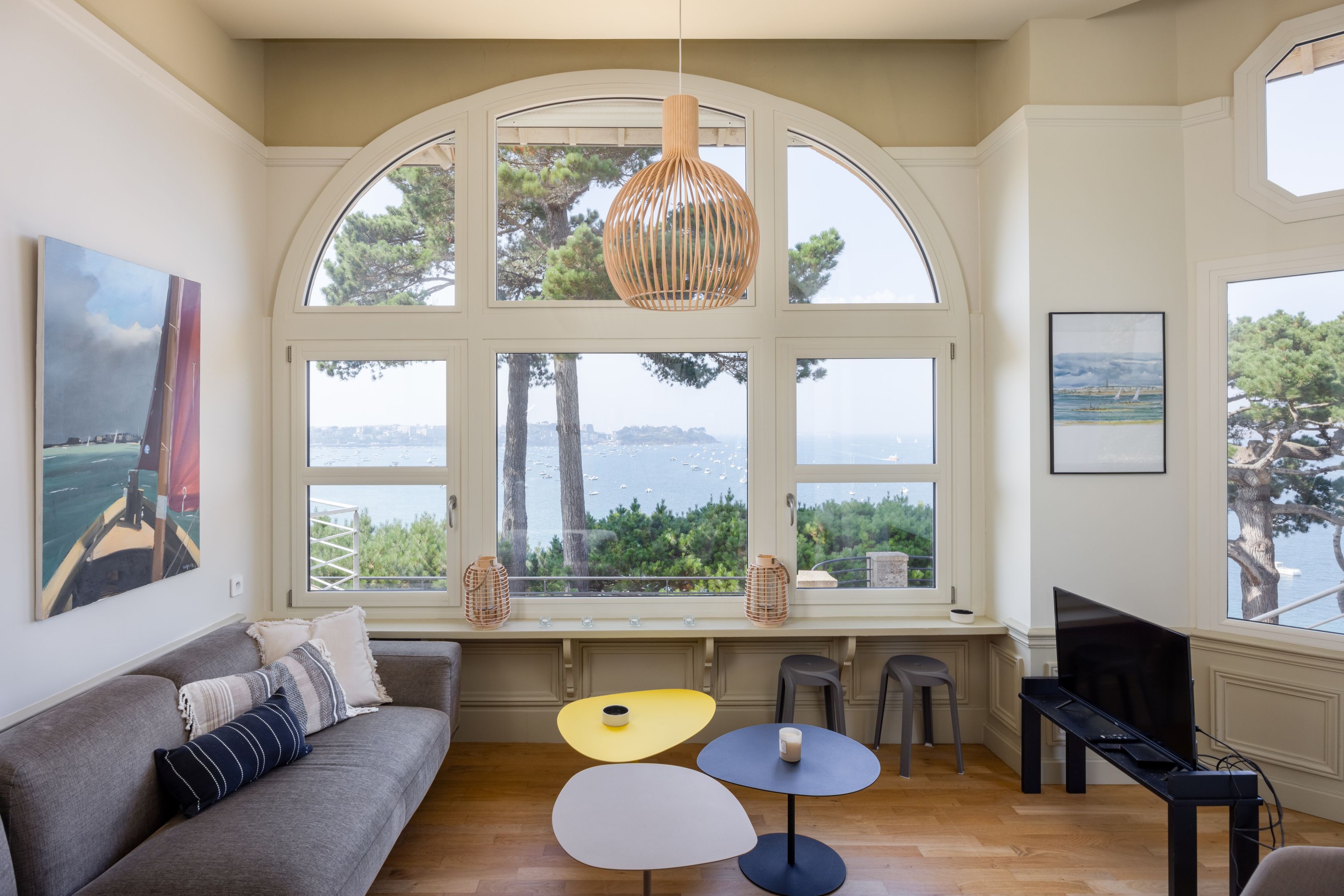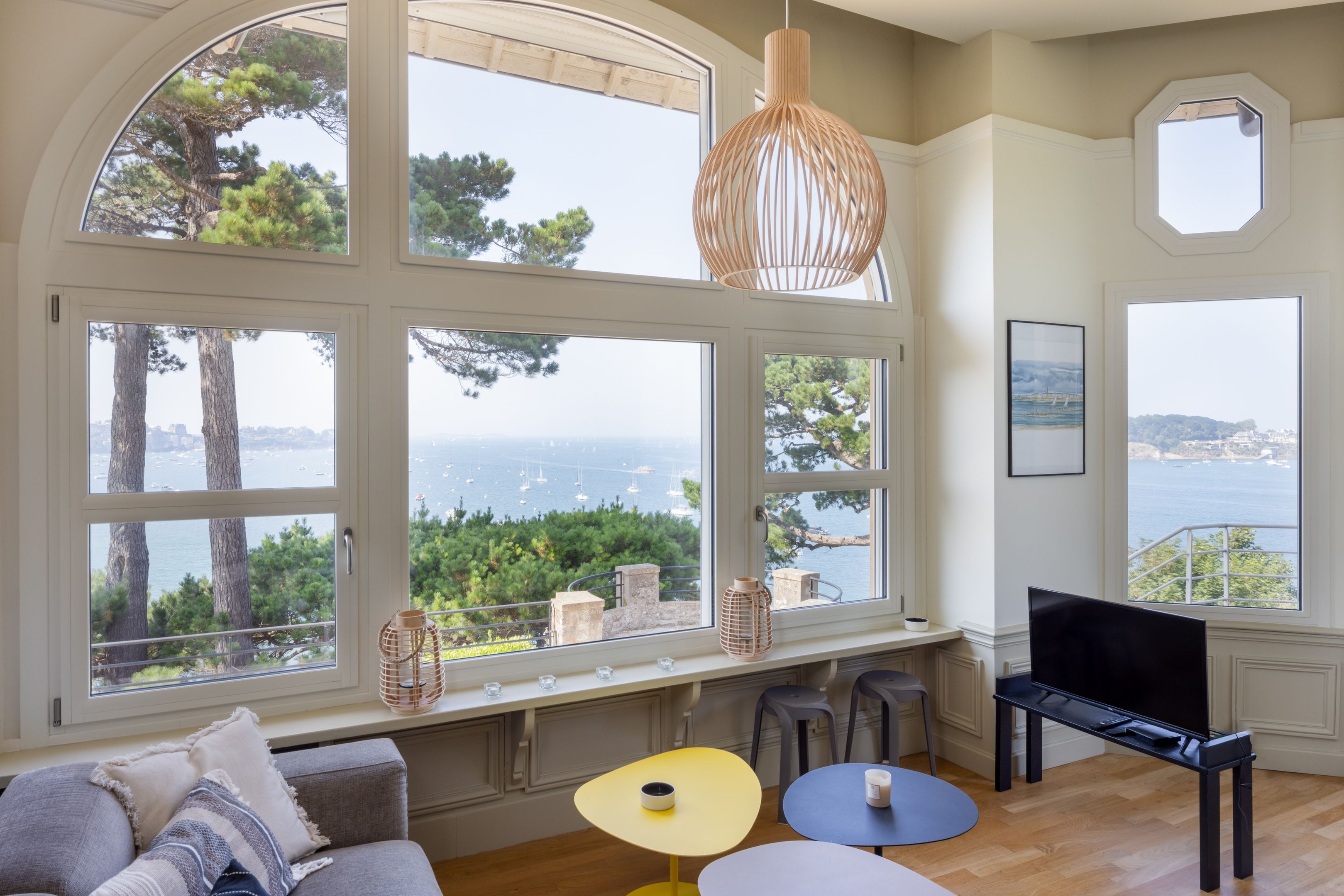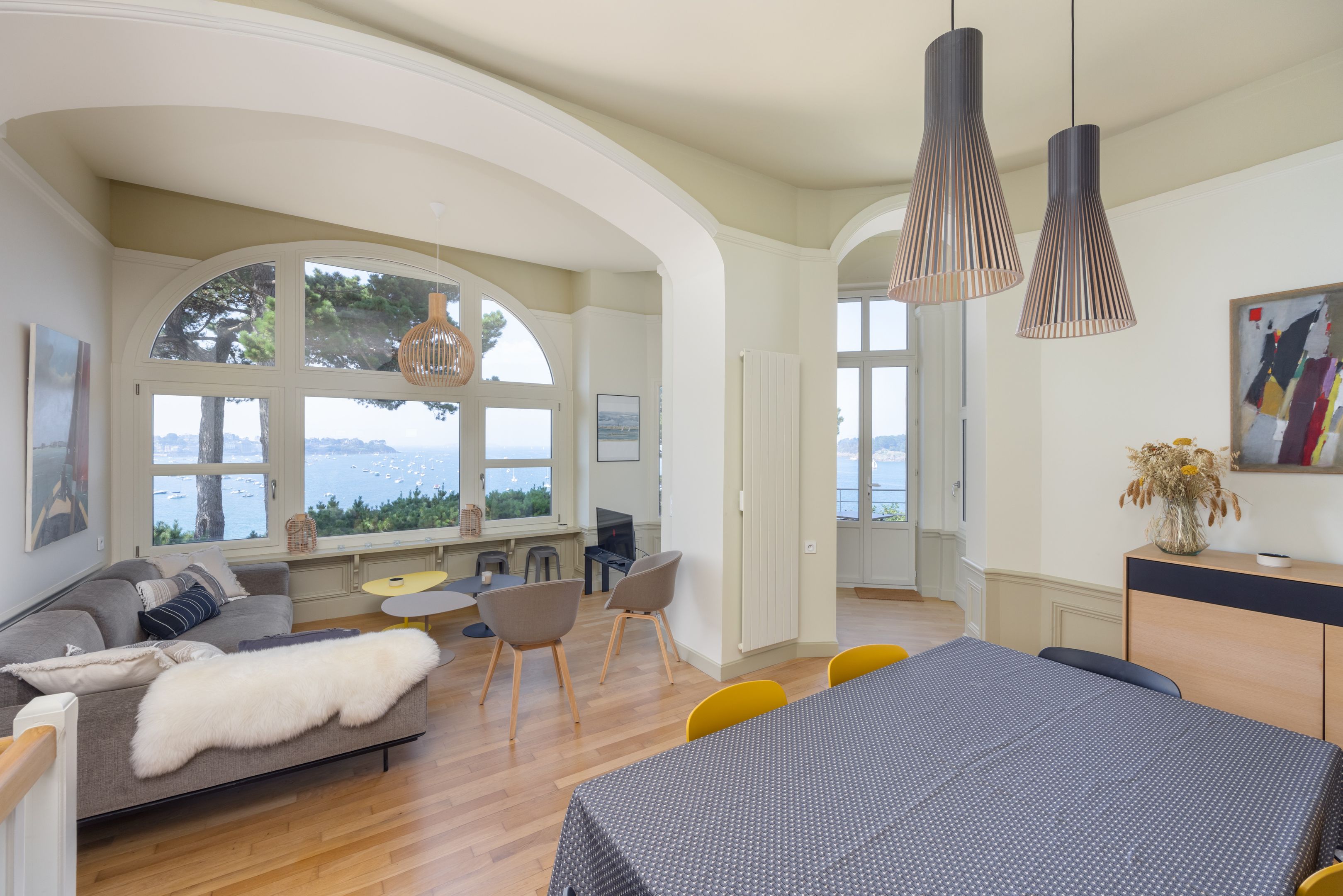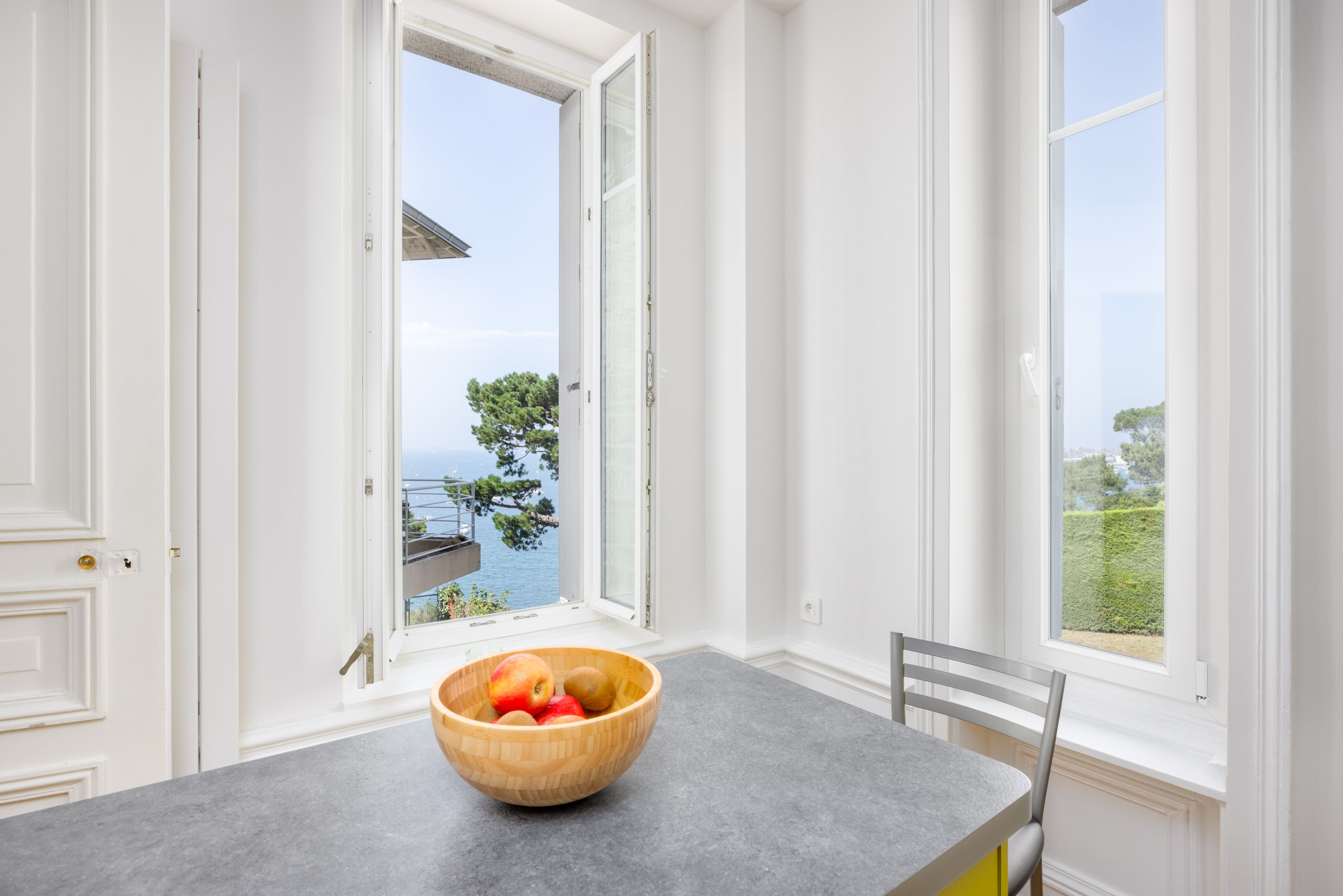 In a privileged, tree-lined and extremely peaceful residential environment. On the garden level of a prestigious villa overlooking the Bay of Le Prieuré, 130 m² luxury apartment with fabulous sea views, spacious and well-distributed rooms and lots of charm. Entrance hall, vast living-dining room opening onto the sea, separate fitted kitchen, 4 bedrooms, 2 shower rooms, separate toilet. Laundry room and plenty of storage space. Outdoor parking space and cellar. Shared garden with direct access to chemin des douaniers and beach. Apartment sold fully furnished.