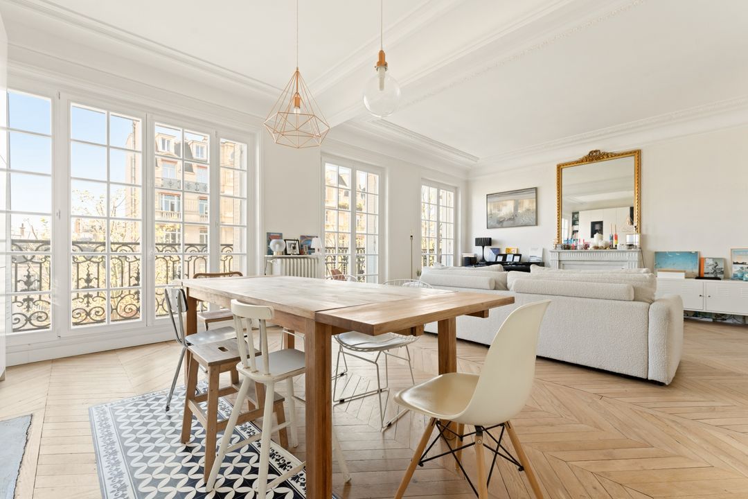Just a stone's throw from the Vavin metro station, Stanislas school and Edgar Quinet market, well-maintained semi-recent condominium with janitor. On the 4th floor with elevator access, this 117 m² apartment boasts 9.1 m² of outdoor space, a through-plan layout and plenty of natural light. Entrance hall, large double living room with direct access to the outdoor space, independent kitchen (possibility of opening onto the living room for a 50 m² living room). Three bedrooms overlooking the garden with storage space, a shower room and a bathroom. Plenty of storage space. Toilets. Two cellars. Parking space available at extra cost.