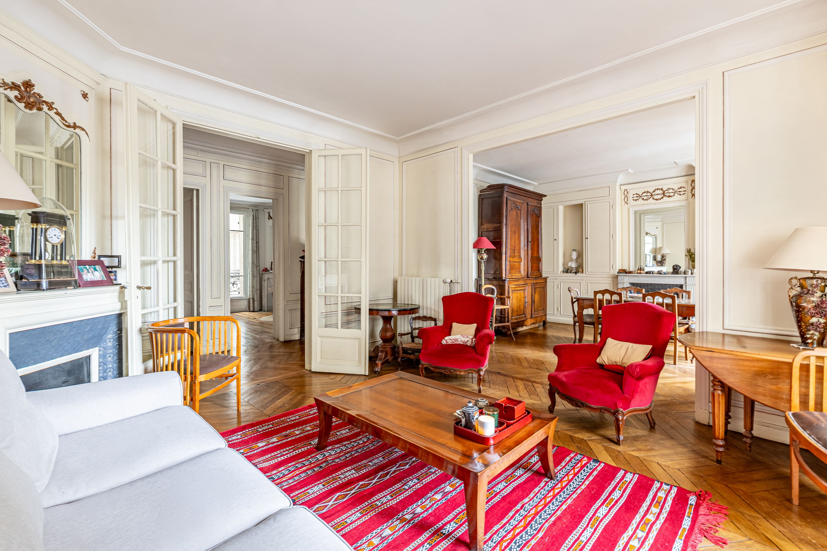 Just a stone's throw from the shops in the village of Auteuil and its renowned schools, this beautifully-constructed old building is a family apartment with parquet flooring, moldings and fireplaces. On 1st floor, only on landing, 124 m² family apartment with parquet flooring, mouldings and fireplaces. Entrance gallery, double reception room, separate kitchen, 3 bedrooms, plenty of storage space, bathroom, shower room, separate toilet. Cellar. Sectorization Jean-Baptiste Say.