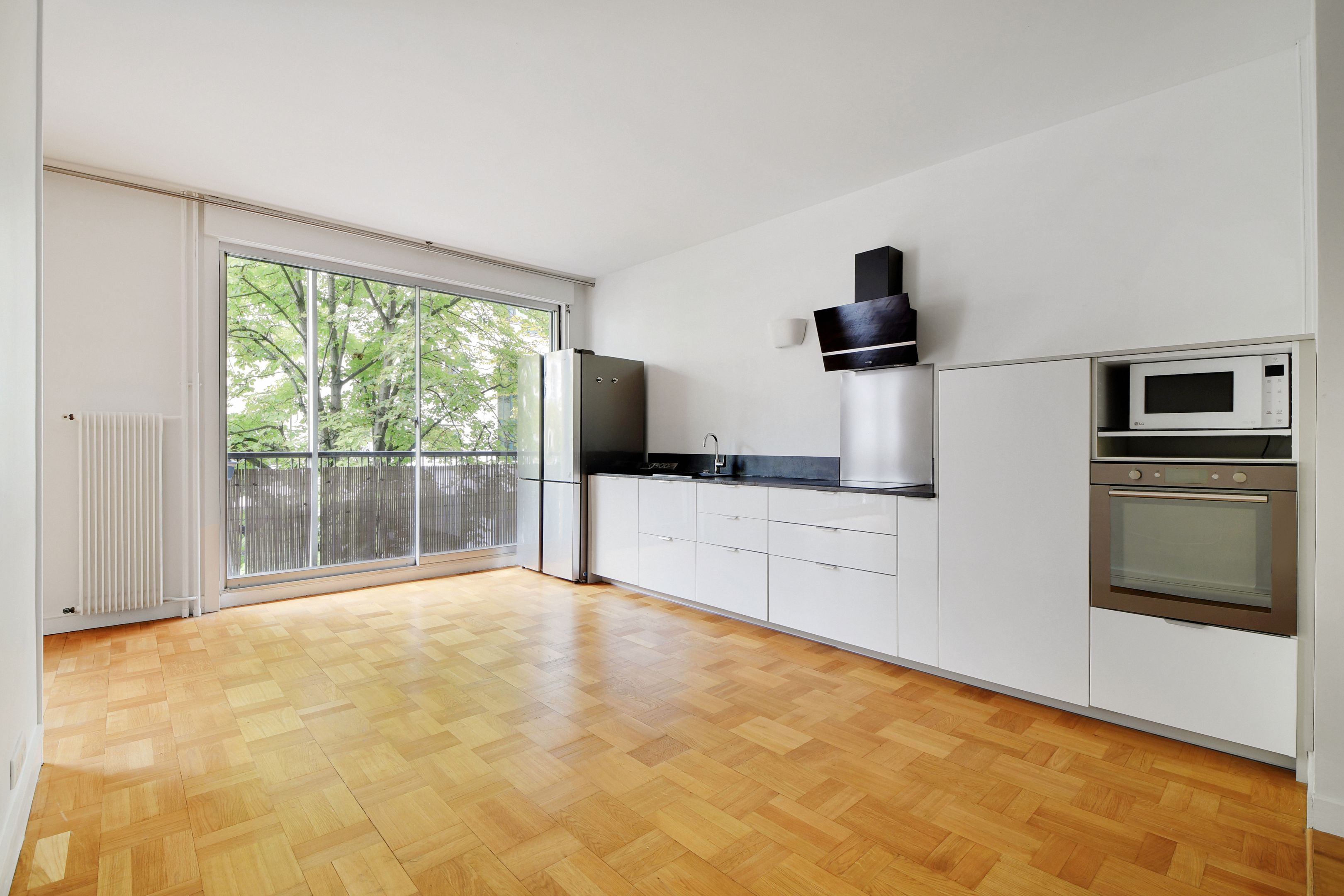 Recently renovated family apartment, ideally located just a stone's throw from La Muette and the Ranelagh gardens, on the 3ᵉ floor of a recent building of good, secure standing, elegant 128 m² apartment offering generous volumes, excellent distribution and pleasant brightness thanks to its large openings and through-view exposure.