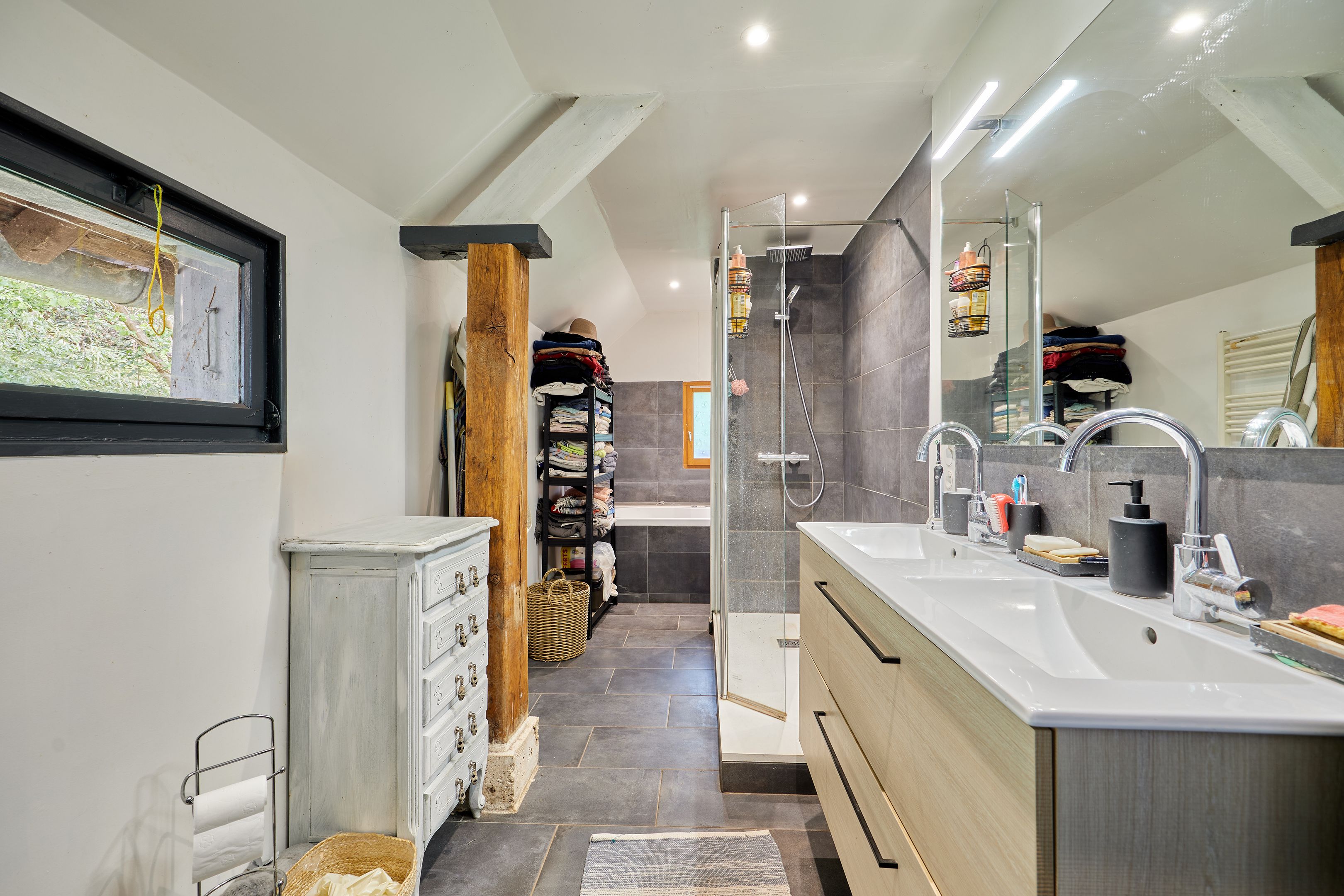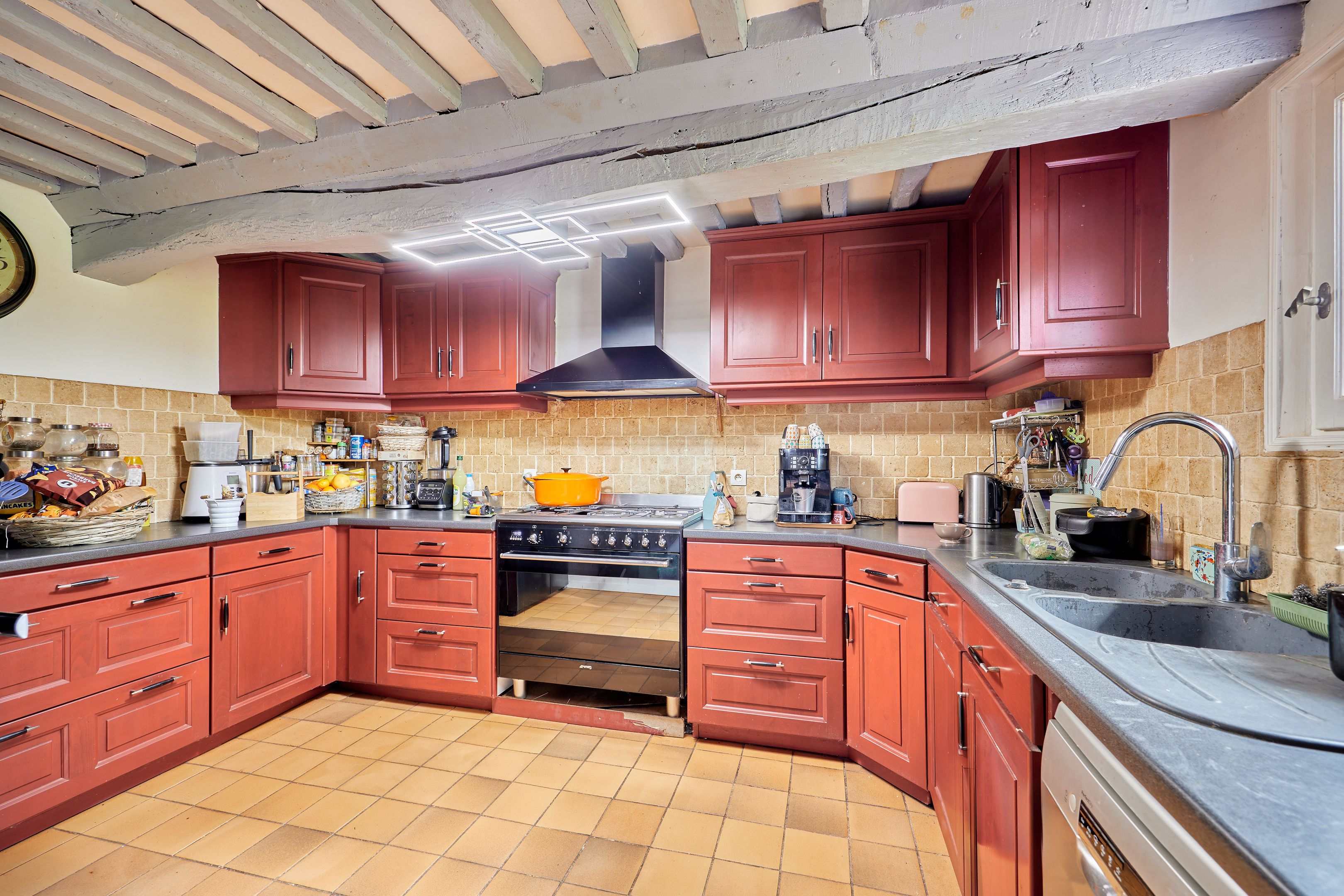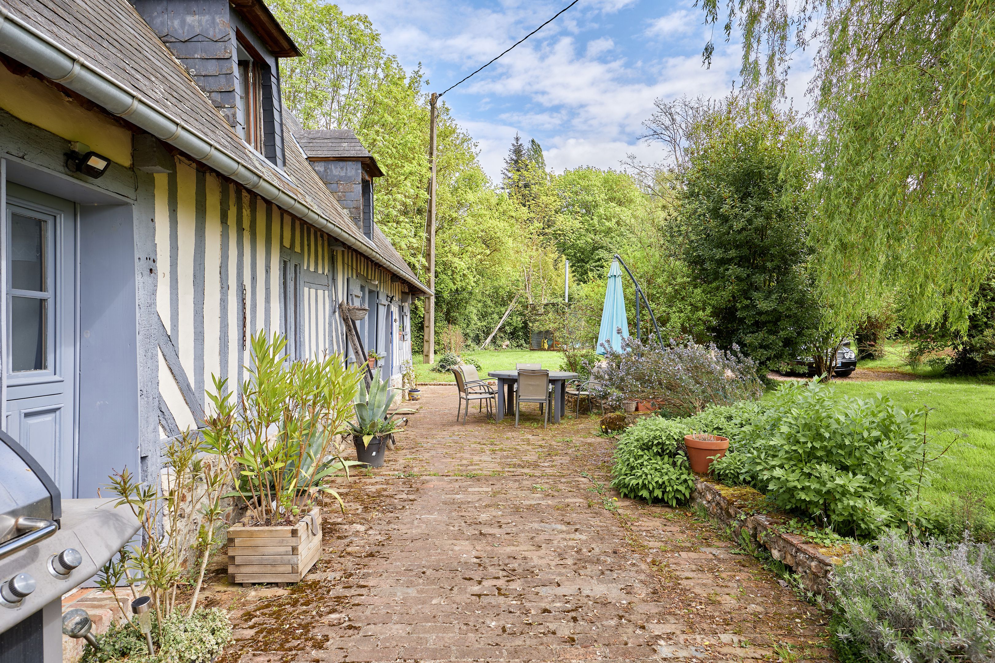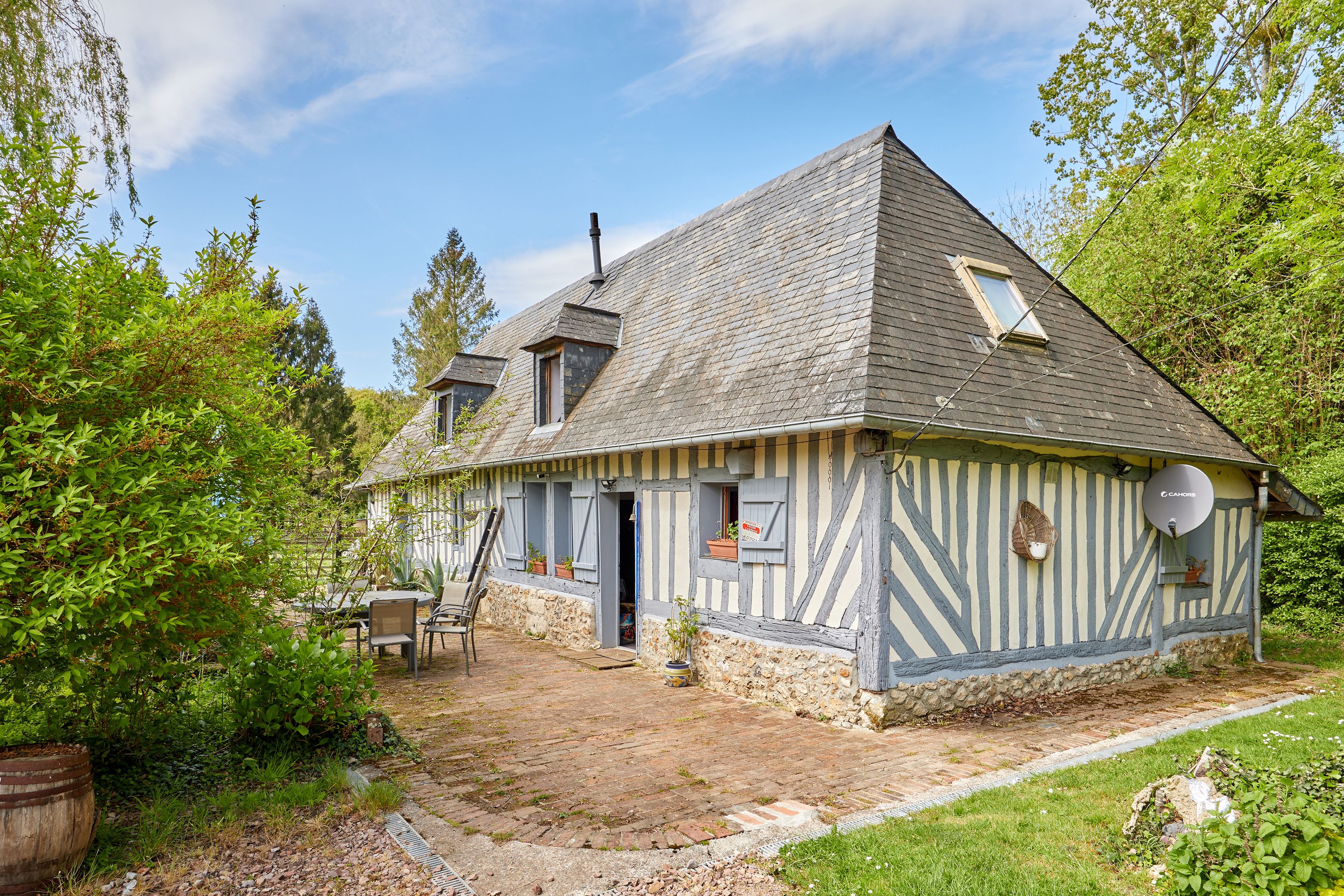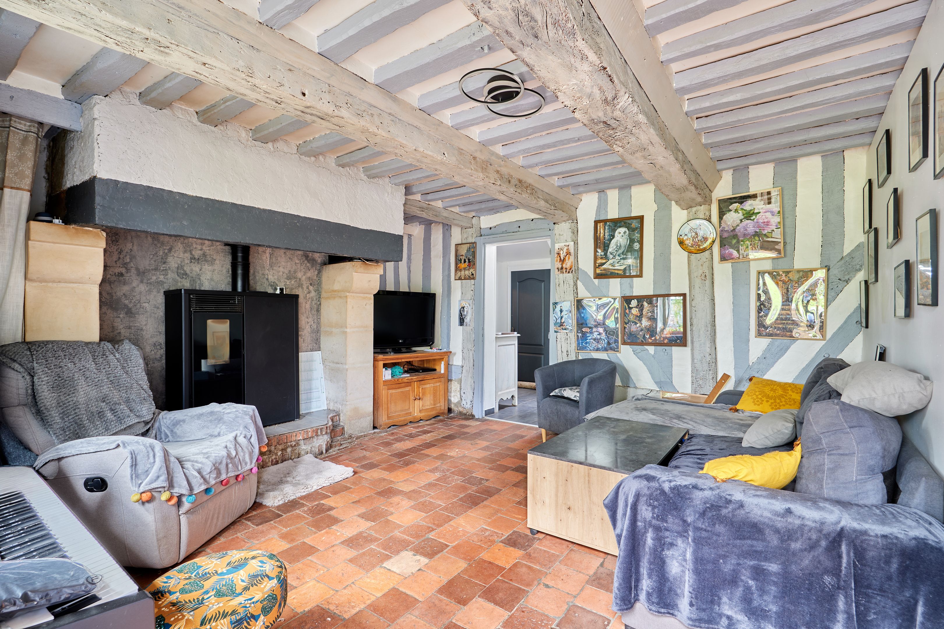 10 min from Pont-l'Évêque and 25 min from beaches, in quiet surroundings, charming 132 m² Normandy house set in 7402 m² of flat, enclosed grounds. First floor: living room with pellet stove, independent fitted kitchen, spacious living room with wood-burning stove, storeroom, shower room. First floor: three bedrooms and bathroom. Part of the land is fenced in for pasture. Outbuildings of approx. 300 m².