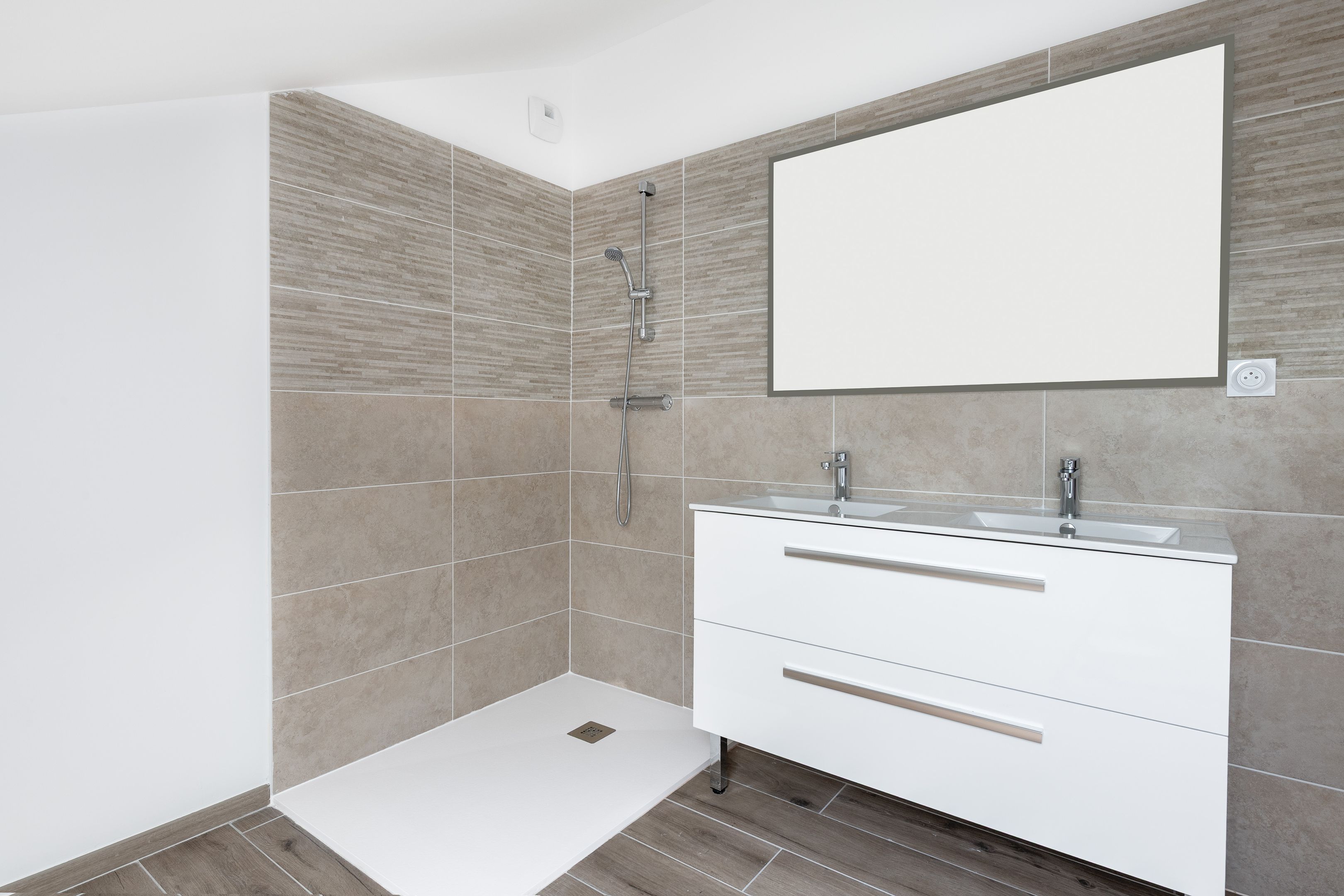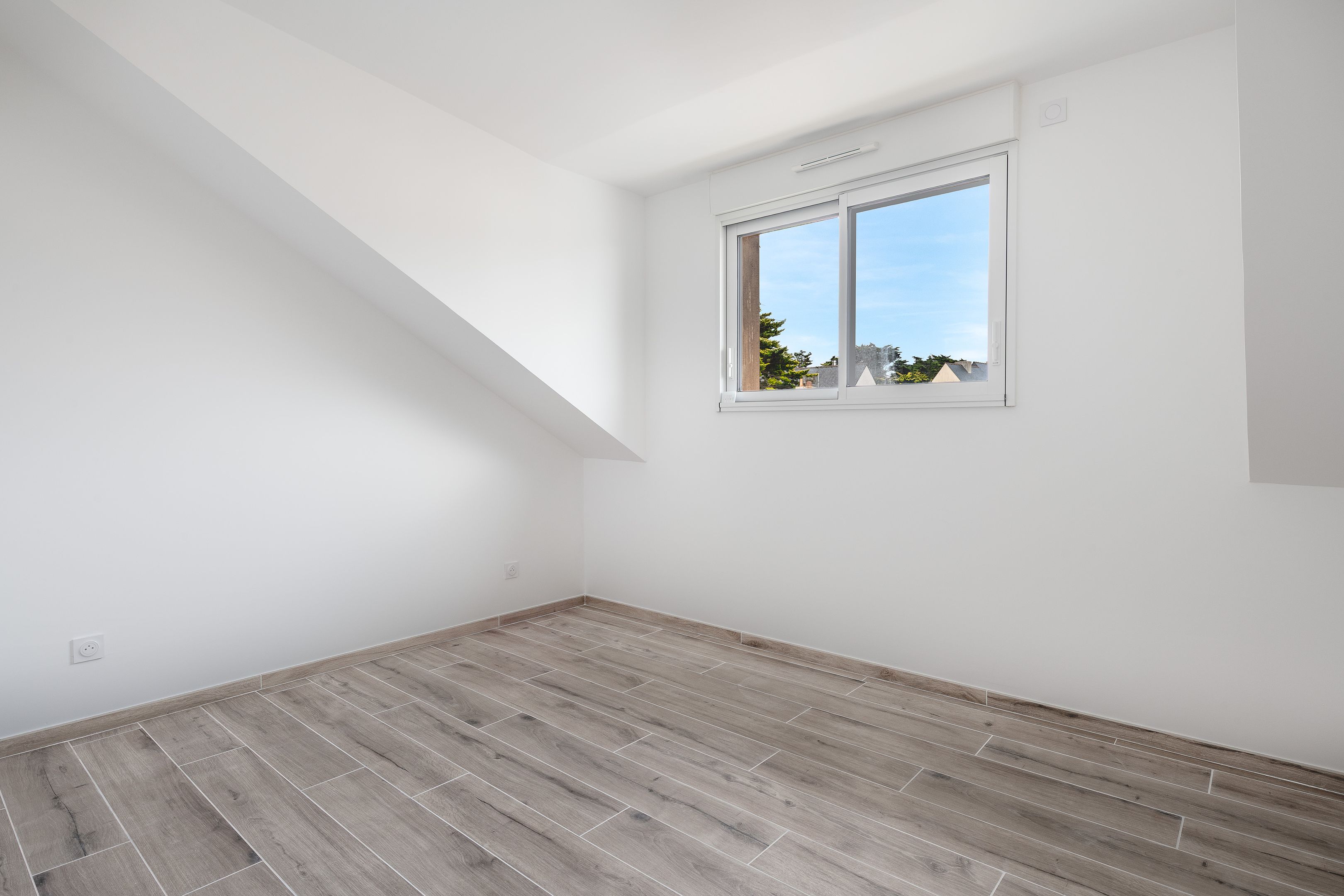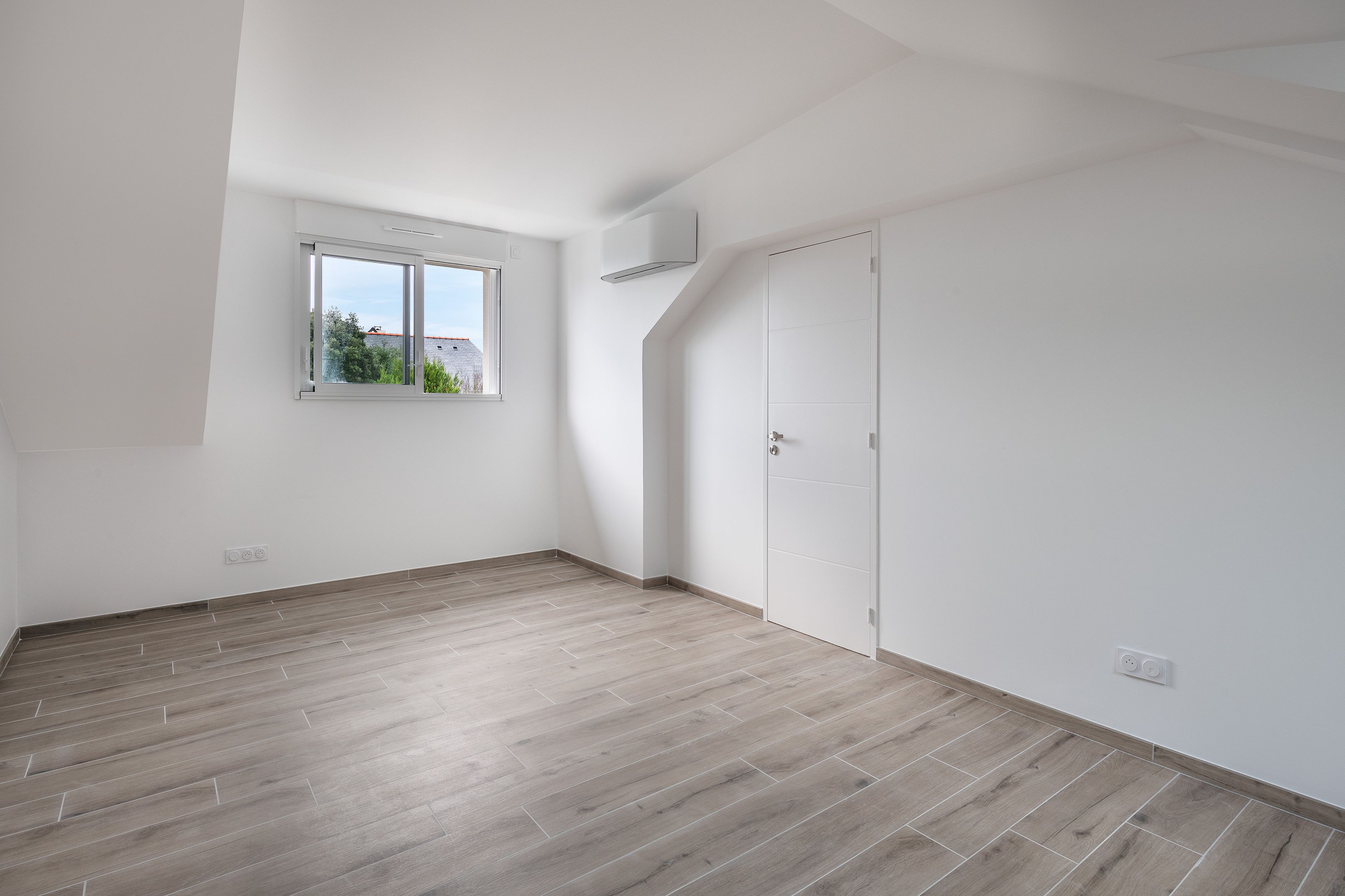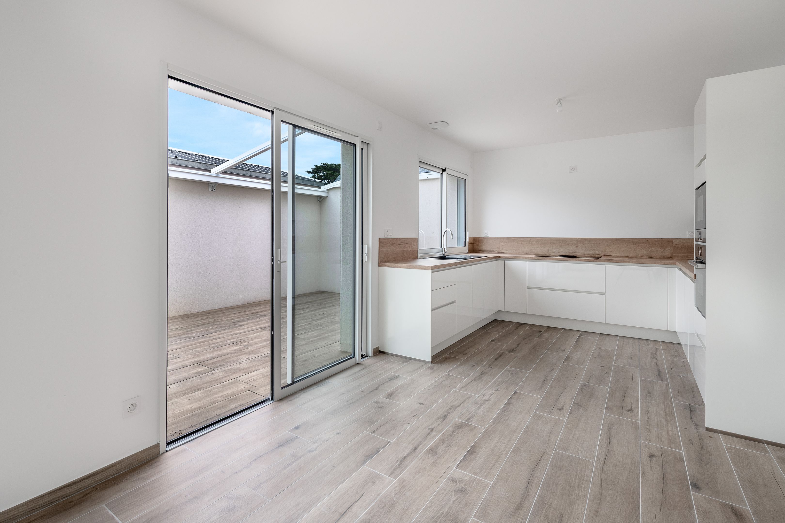 In Le Pouliguen, Pointe de Pen Château, a few meters from the wild coast and 10 minutes by bike from shops, 100m² house totally renovated in 2024 with reversible heat pump and home automation on a plot of 255 m². First floor: large, bright living room with open-plan fitted and equipped kitchen opening onto a patio that can be completely enclosed, master bedroom with shower room, separate toilet. First floor: 2 bedrooms, shower room and separate toilet. A converted