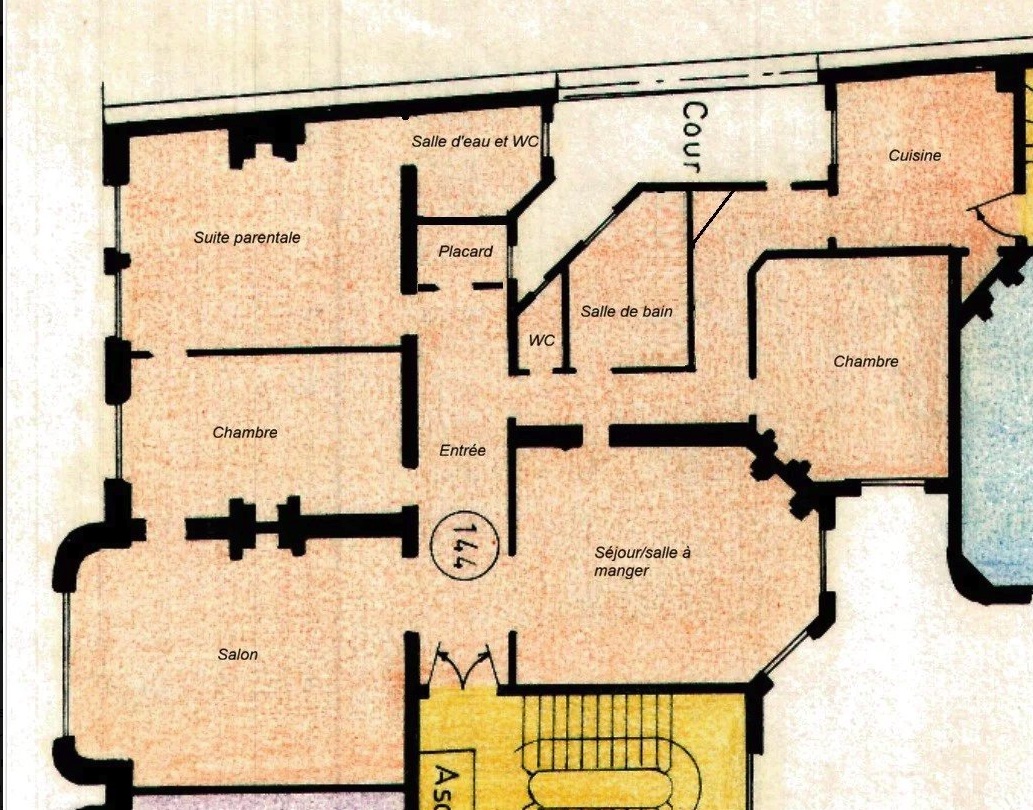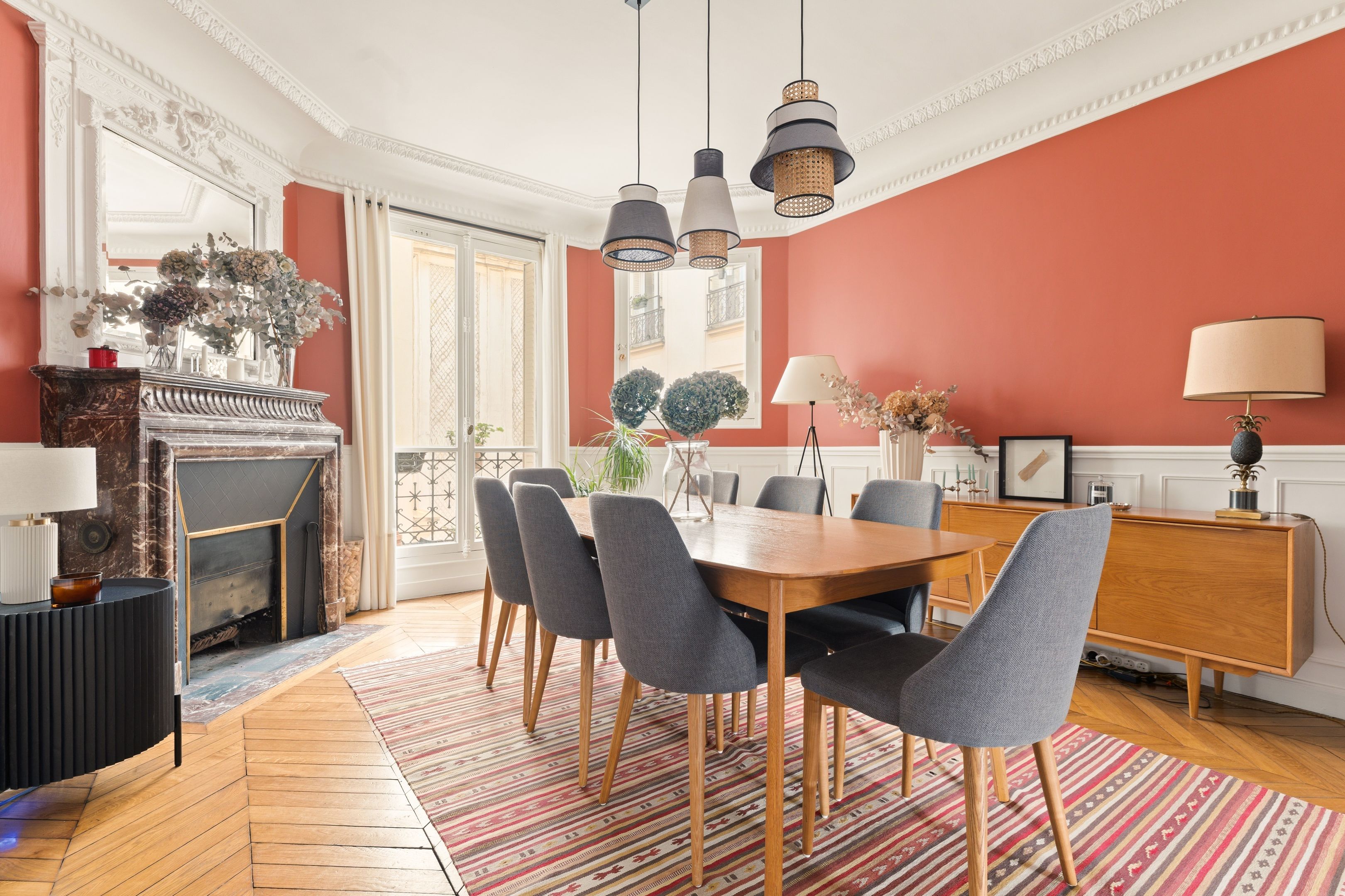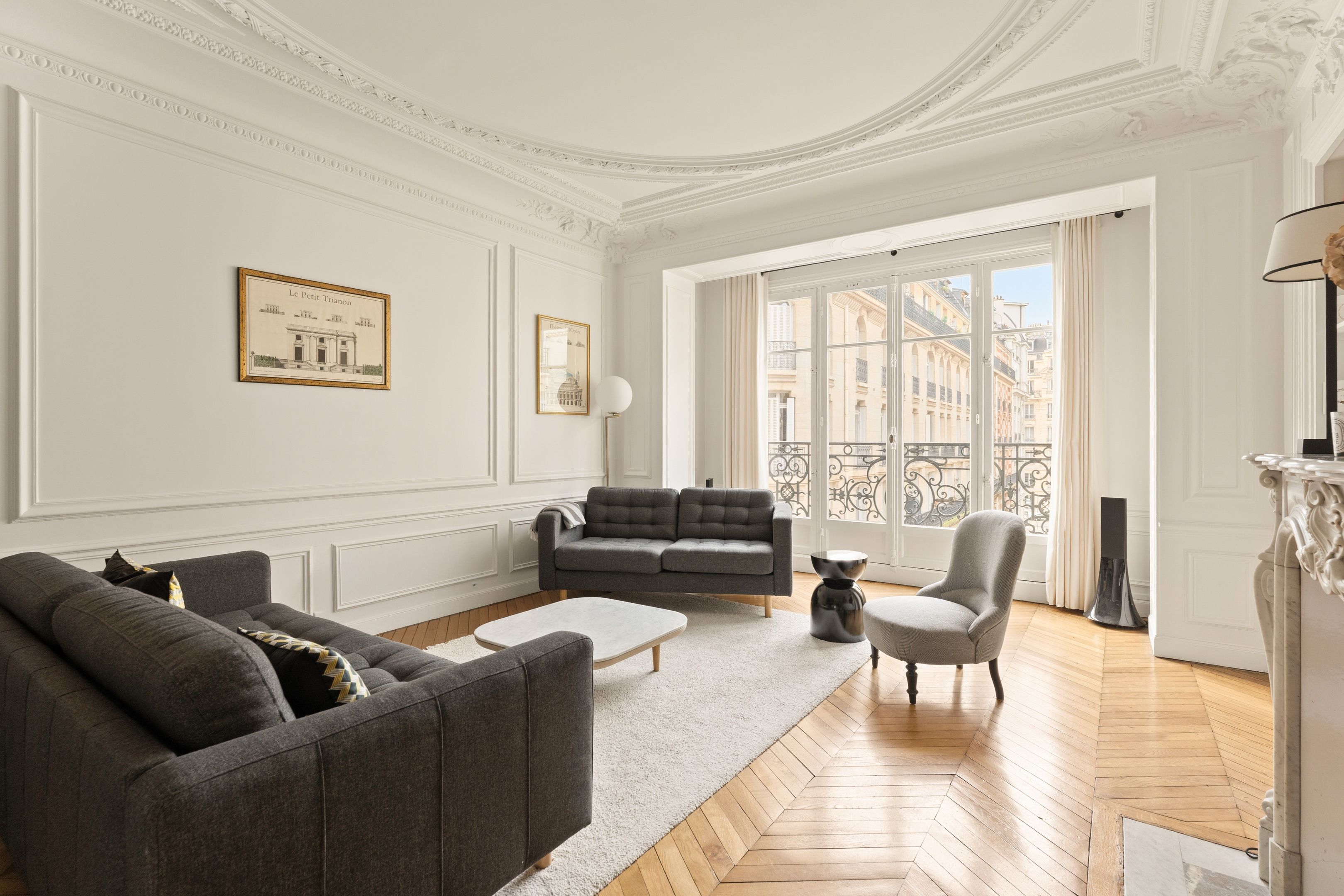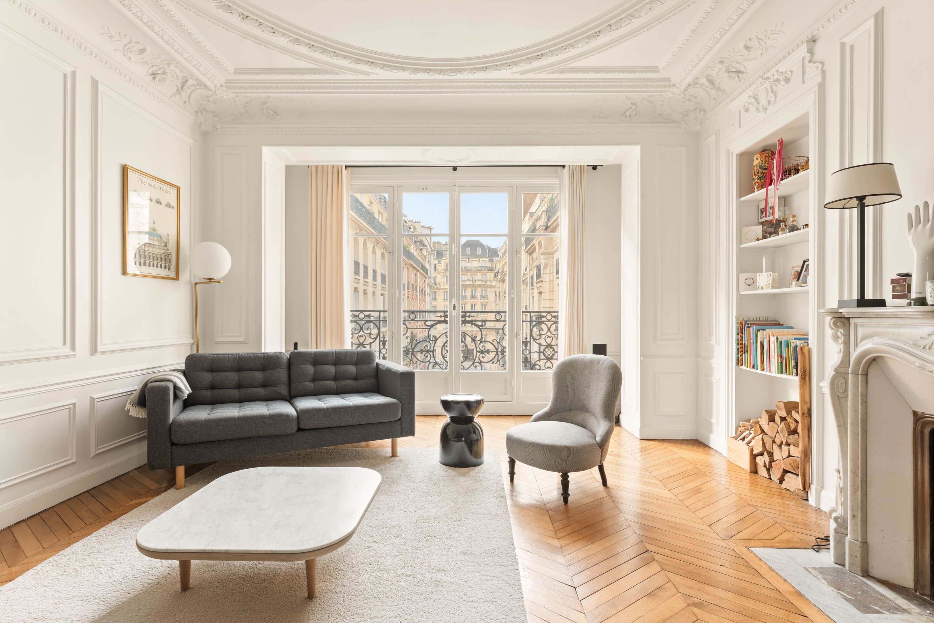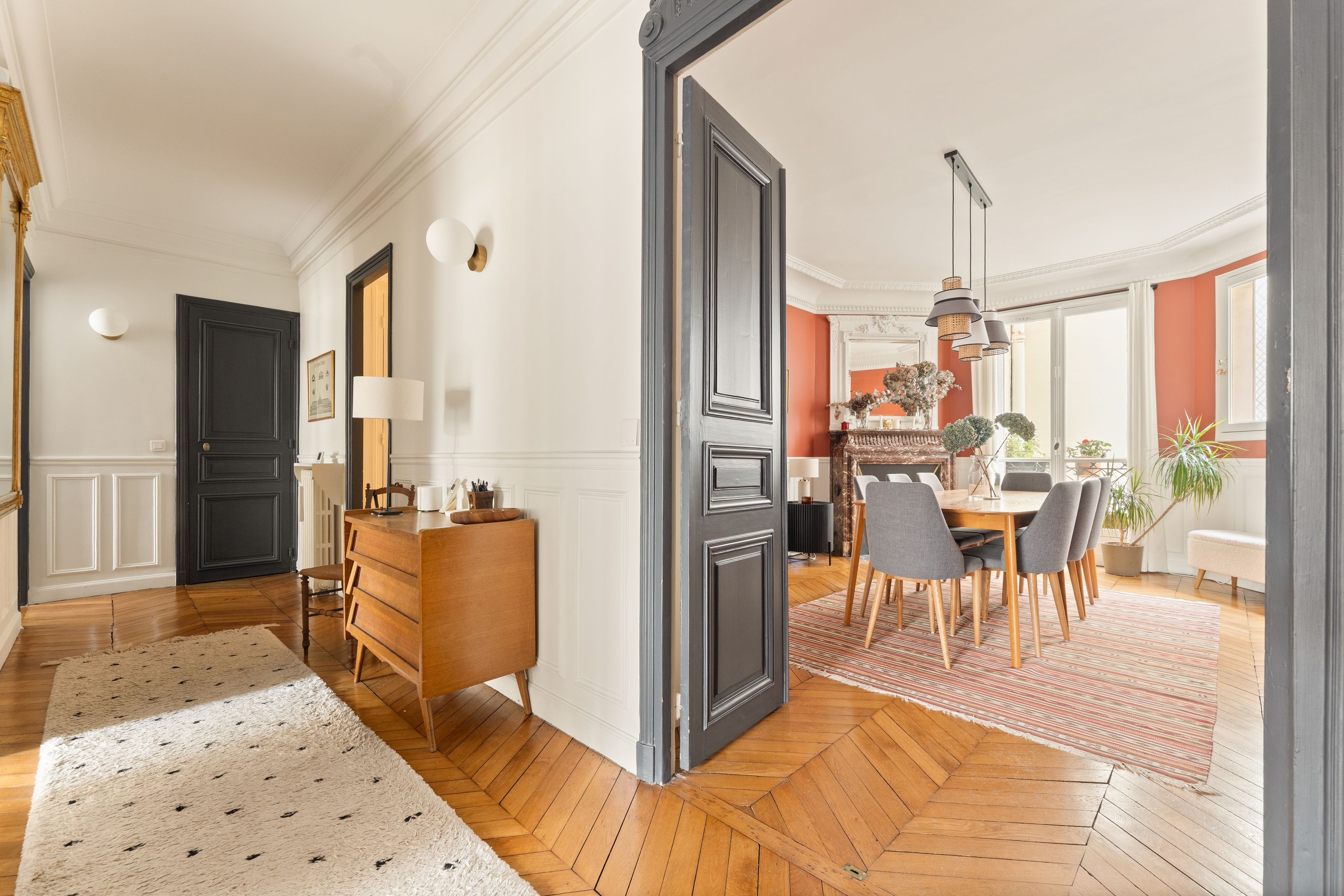 Ideally located in the highly sought-after Ternes district, in a luxury Haussmann-style building, on the 3rd floor, through-plan 123 m² Loi Carrez apartment in perfect condition, featuring parquet flooring, moldings and fireplaces, with double exposure. Entrance hall, beautiful reception room with unobstructed view, dining room, separate fully-equipped kitchen, three good-sized bedrooms including a master suite with en-suite shower room and toilet, bathroom including laundry room, guest toilet, dressing room. Walk-in closet. Cellar. Exclusive to Breteuil.