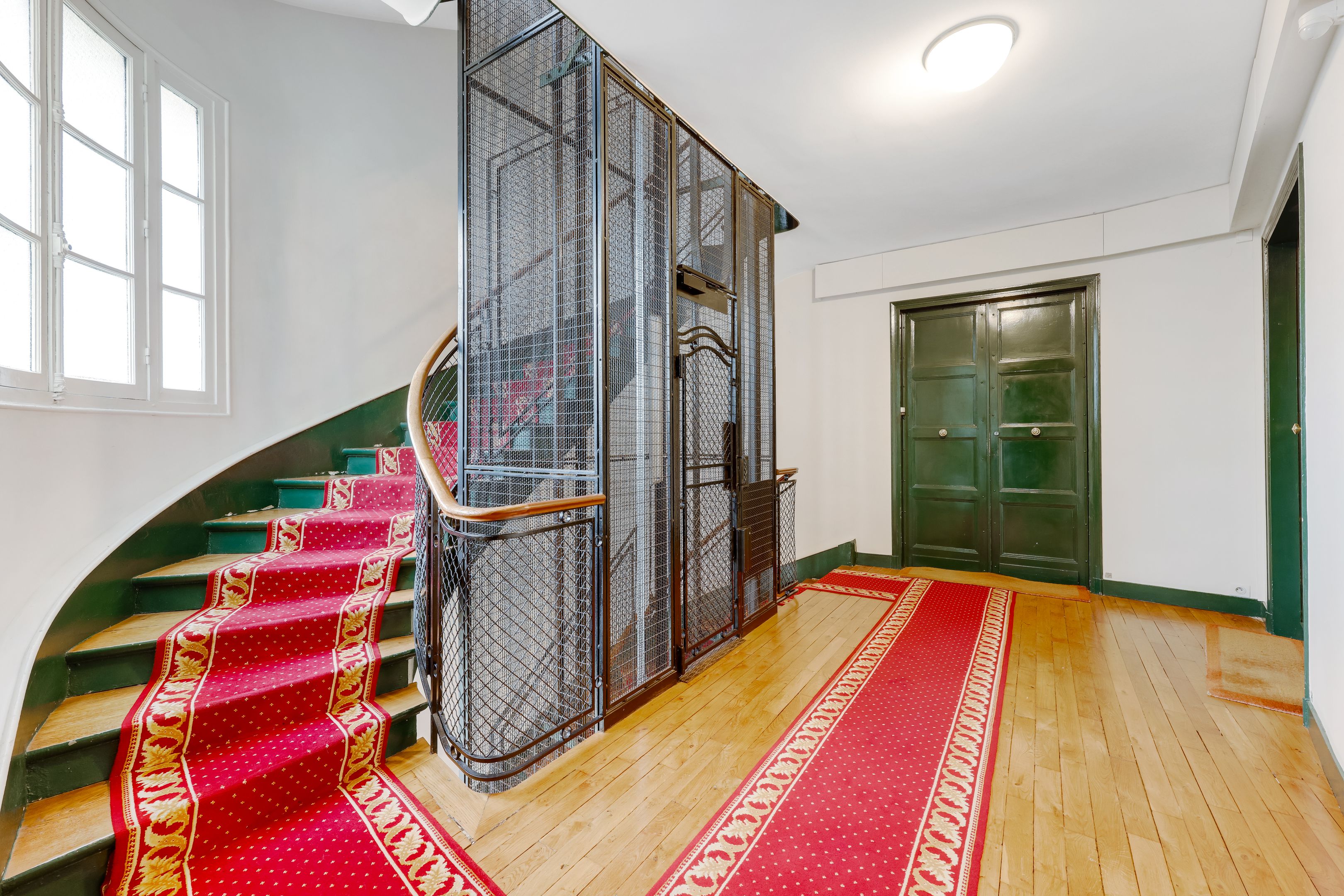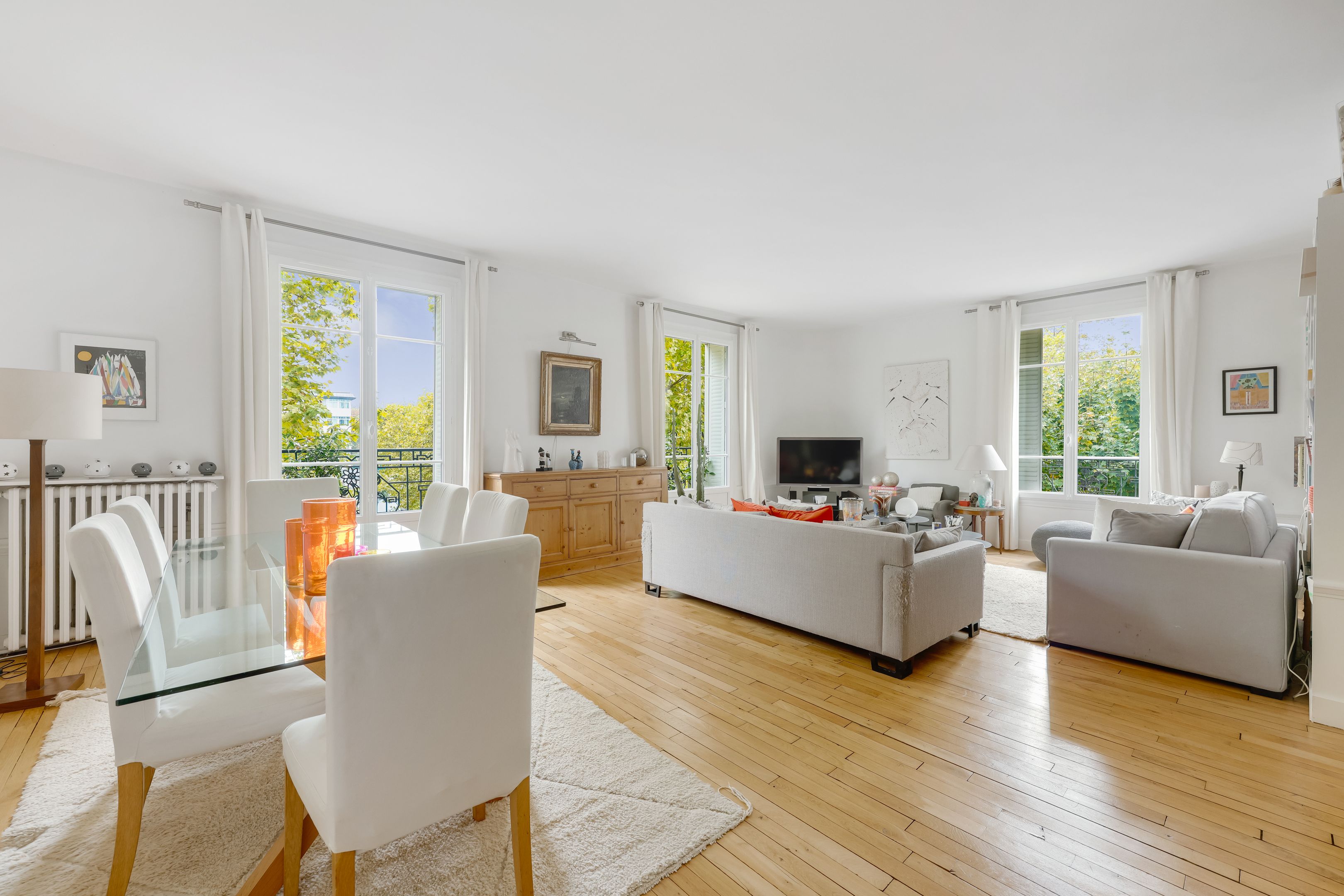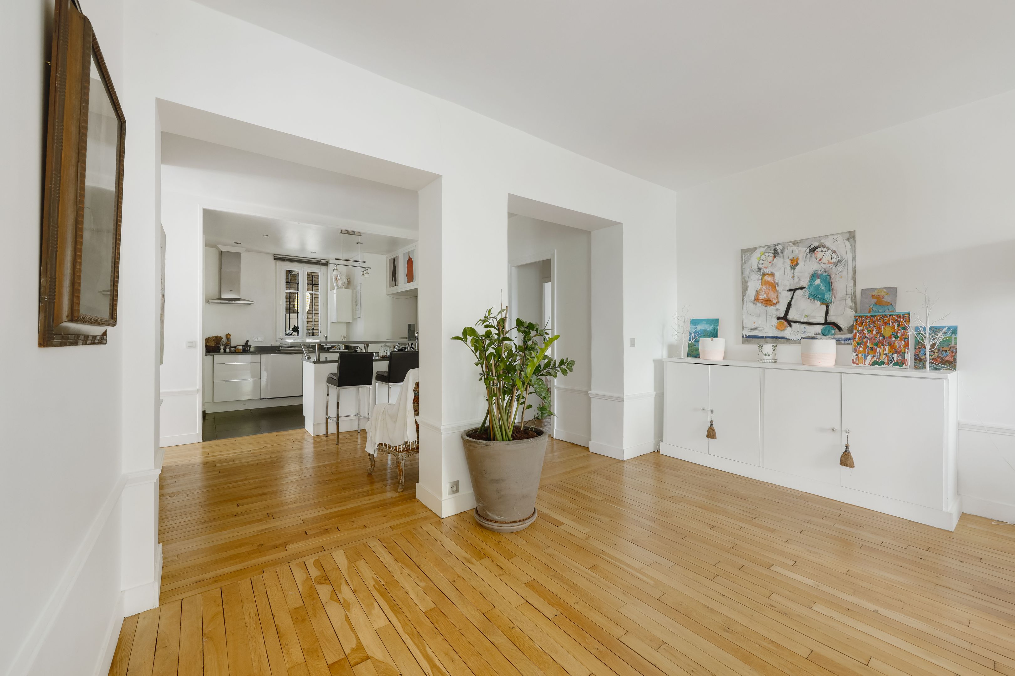 Center of Neuilly. Sectorized by école Bleue, collège and lycée Pasteur. Close to shops, transport and schools. In a luxury 1930s building, 135 m² five-room family apartment in good condition, on 2nd floor with elevator and janitor service. Entrance hall, 46 m² double living room with unobstructed views of Avenue du Roule, open-plan fitted kitchen, three spacious bedrooms, shower room with toilet, dressing room, bathroom, plenty of storage space and separate toilet. High ceilings and solid oak parquet flooring. Cellar. Nice common areas. Nearby parking not included: €35,000.