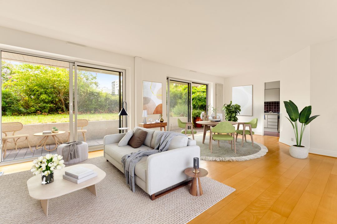 Located in the Saint James district, close to shops, transport and the forest, in a well-kept bourgeois building with a janitor, this family apartment benefits from double exposure on the ground floor. Entrance gallery, large living room with fireplace, dining room, separate kitchen not overlooked, four bedrooms, shower room, bathroom, toilet, plenty of storage space. Cellar