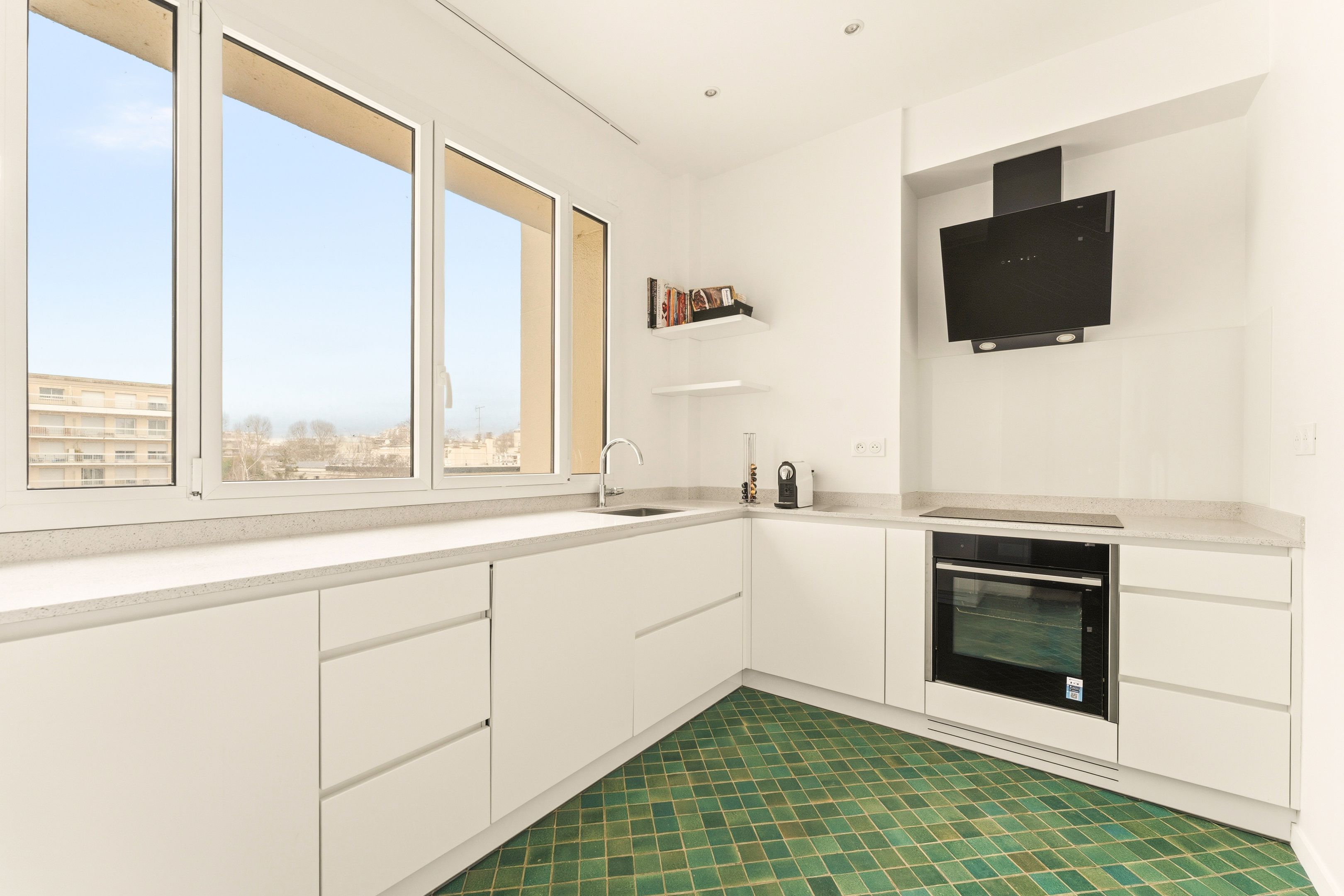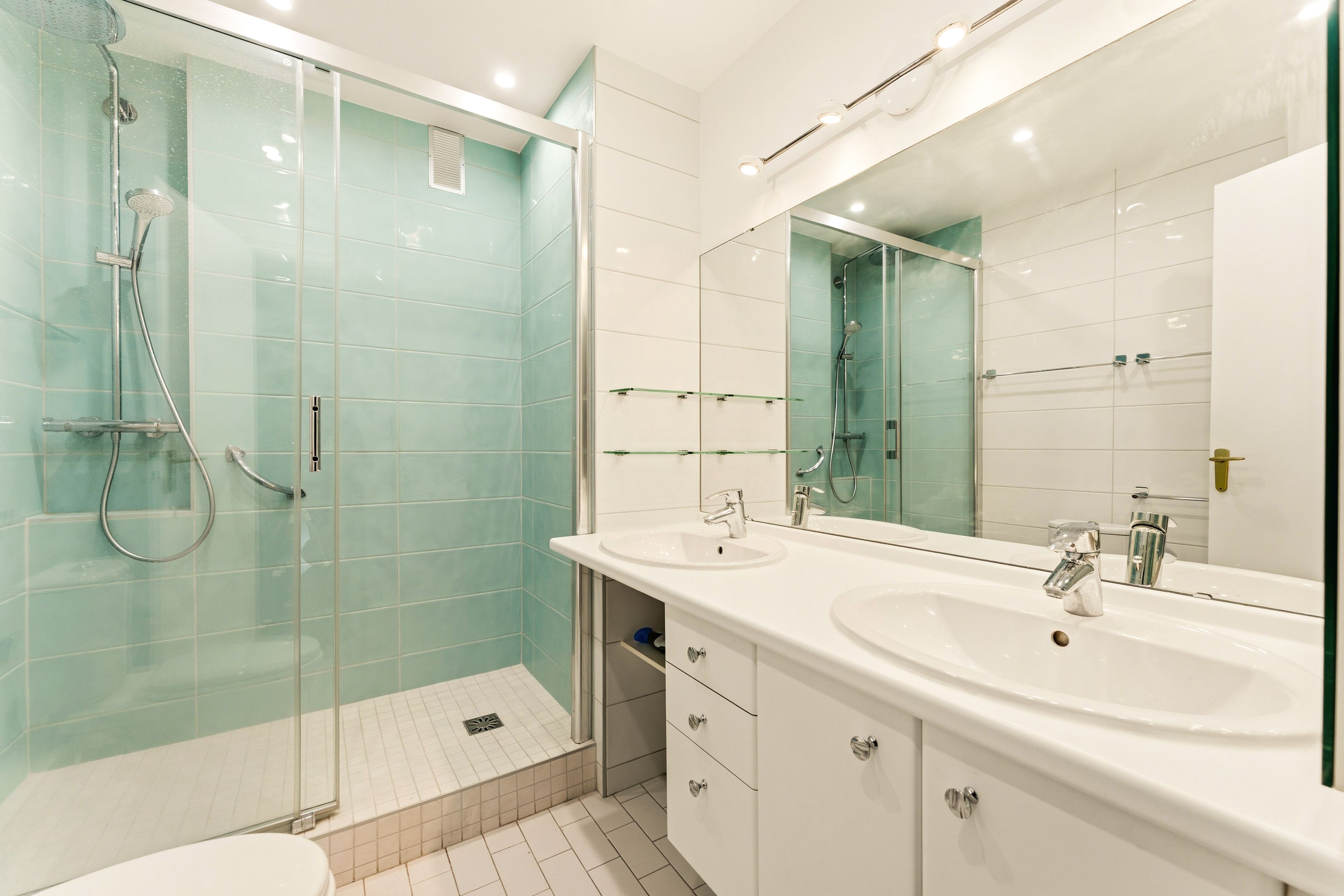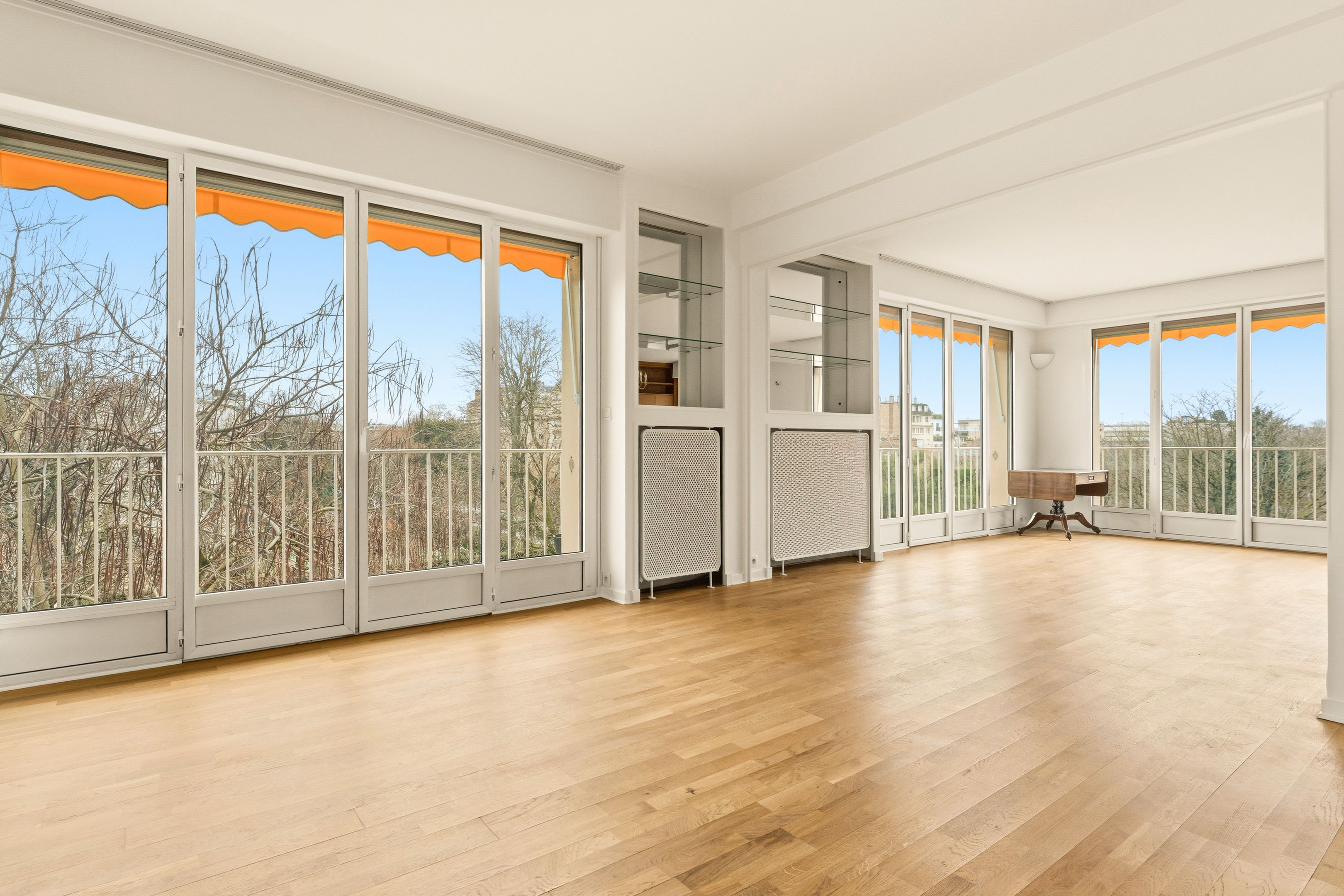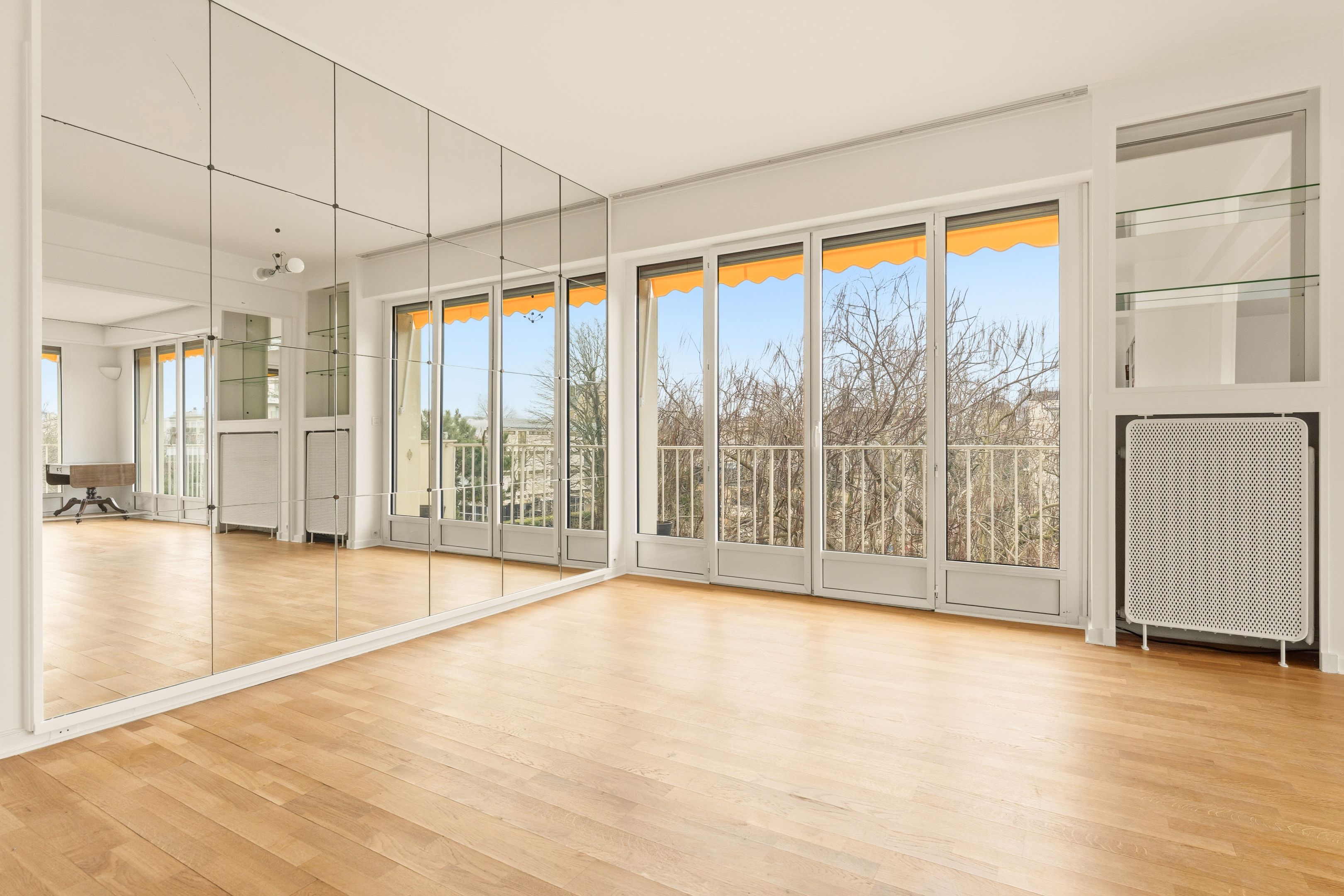 Bineau/ Saussaye. In a recent, well-maintained residence, four-room 120 m² apartment in perfect condition, on the 4th floor served by elevator, benefiting from the services of a janitor. Entrance hall, vast 35 m² south-facing living room with unobstructed views and opening onto a balcony, dining room (possibility of a third bedroom), independent fitted kitchen, two bedrooms, one of which has its own shower room, laundry room, shower room with toilet, plenty of storage space and separate toilet. Cellar. Parking nearby extra: €30,000.