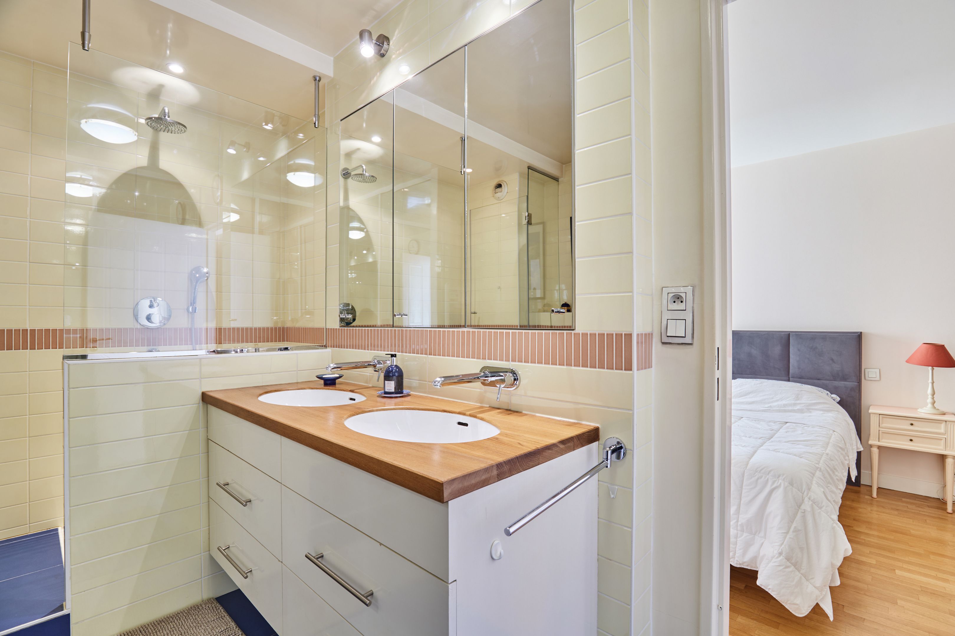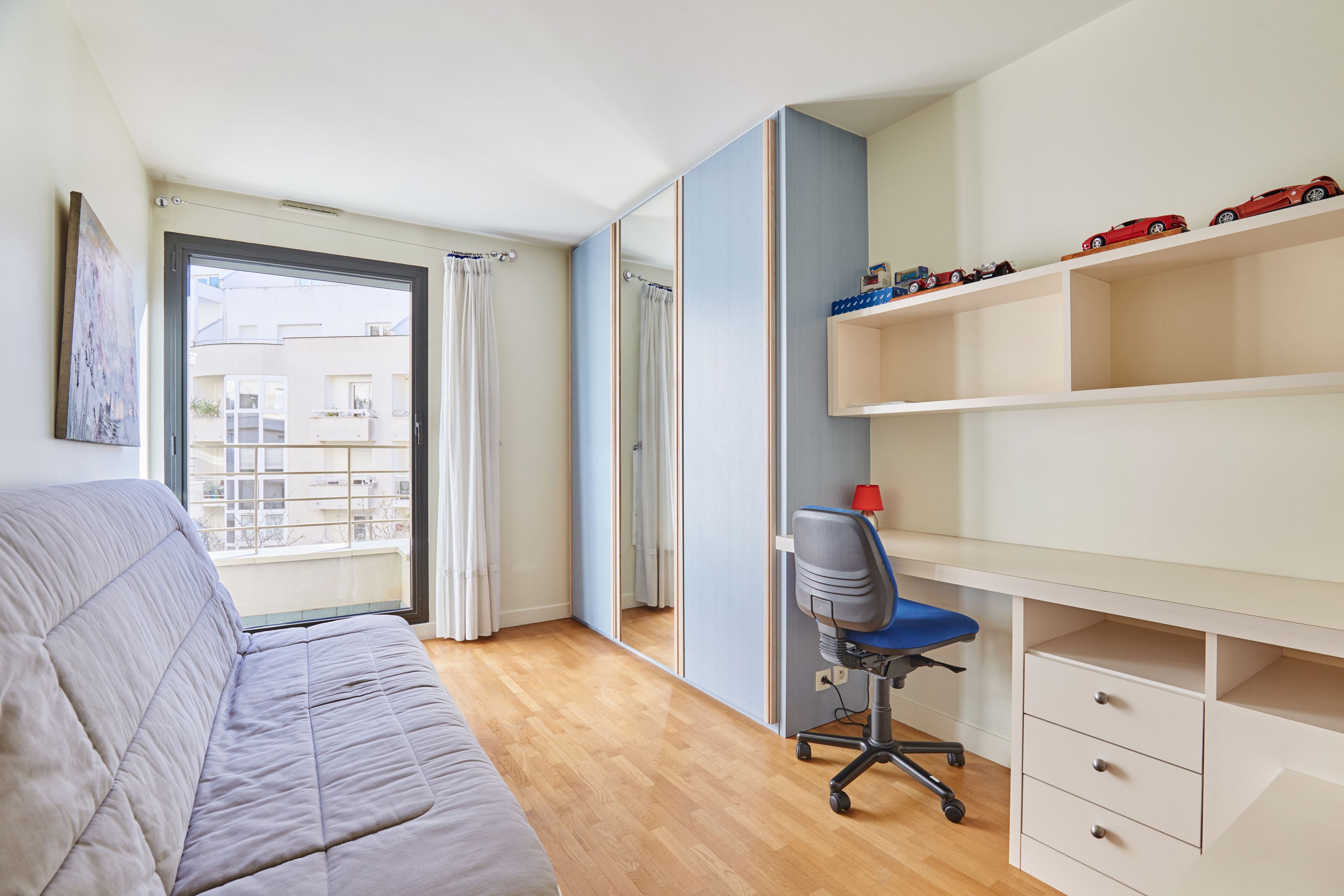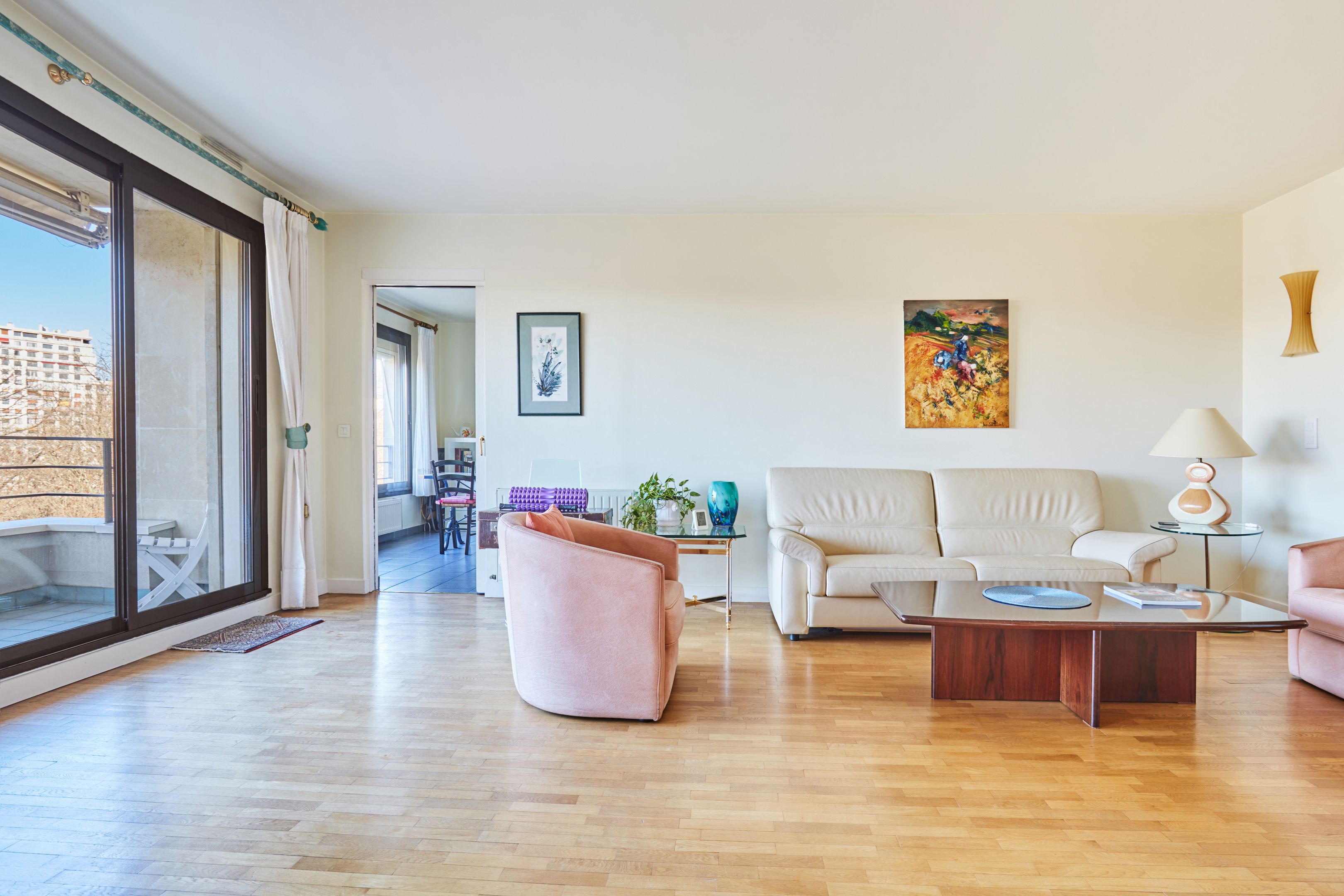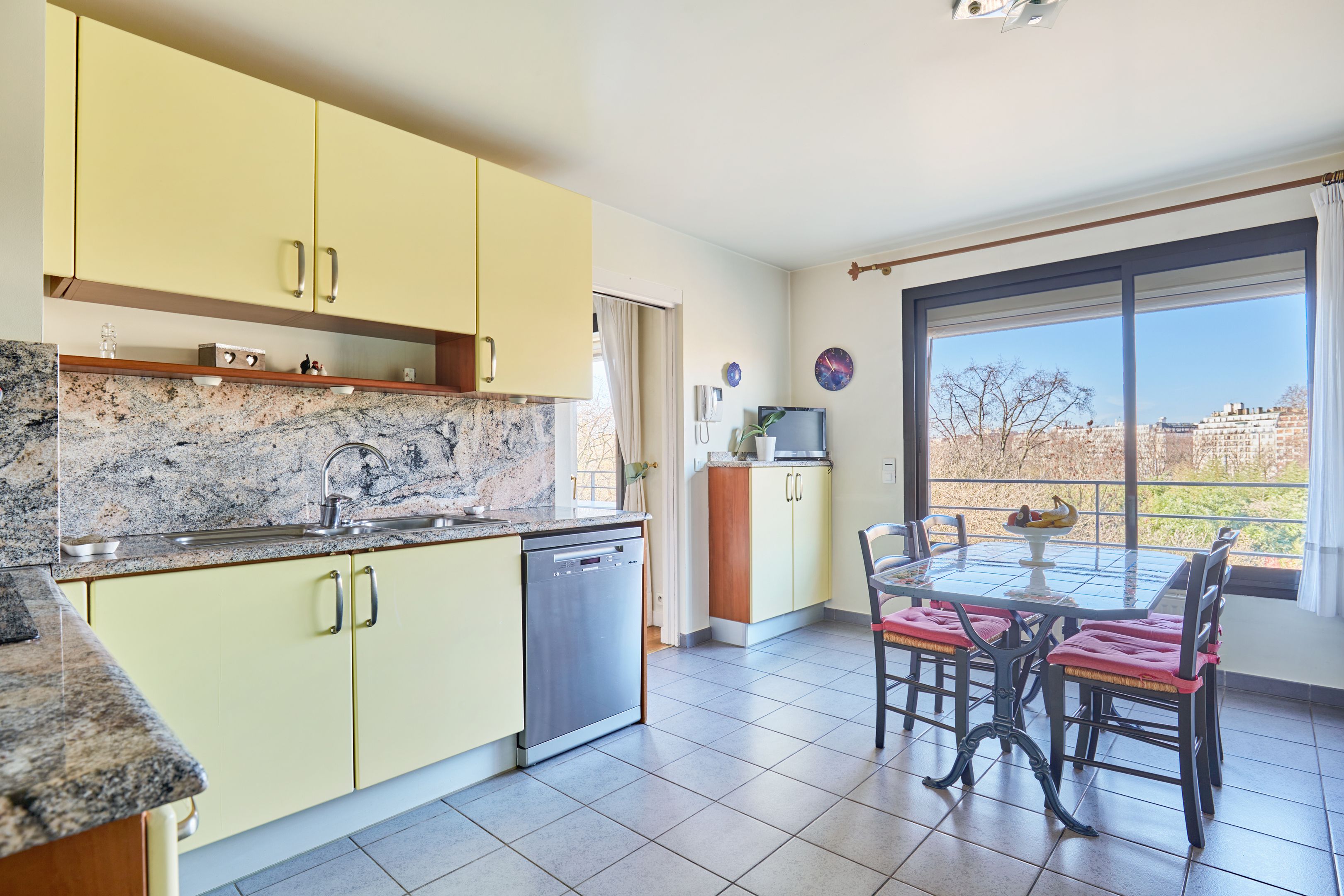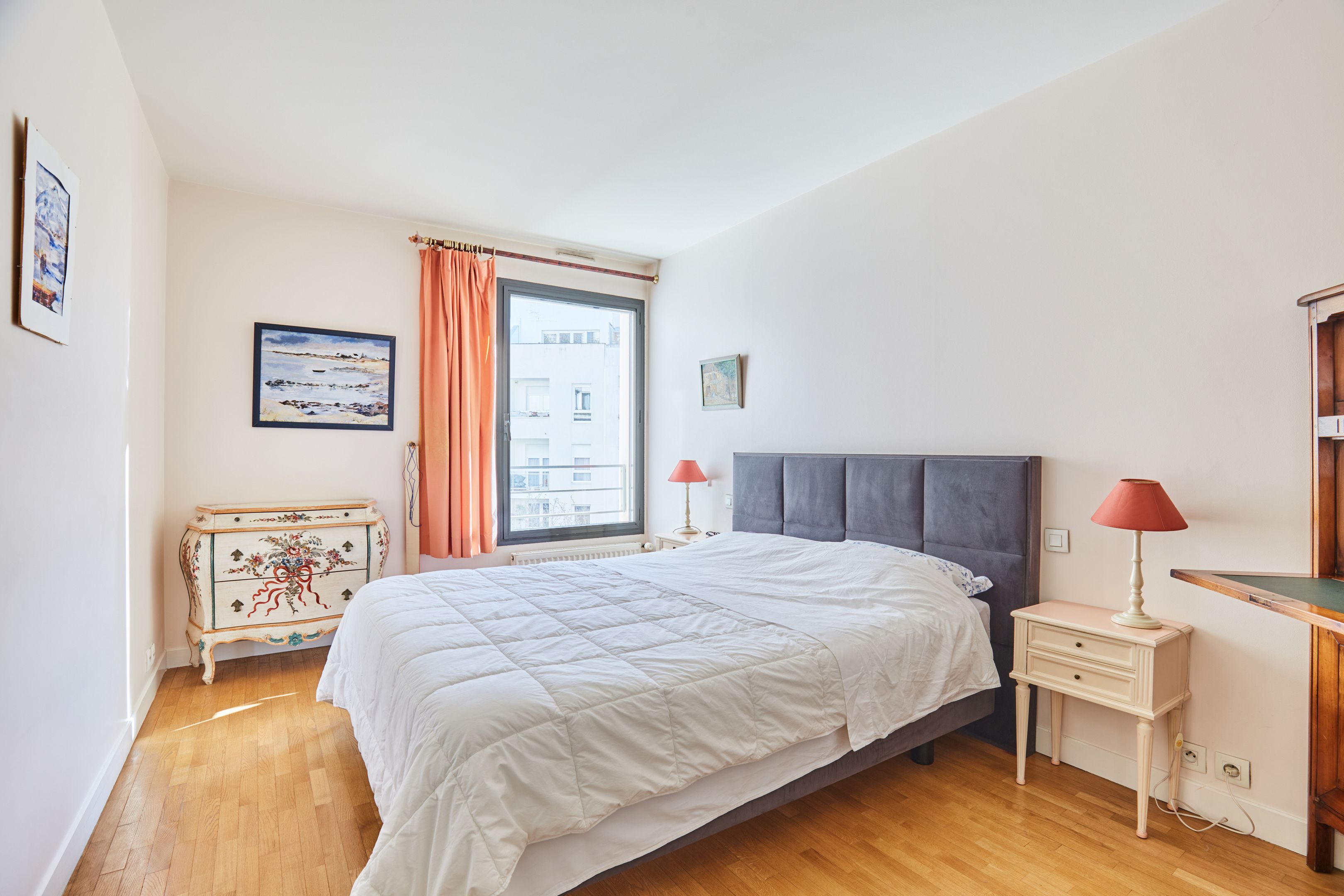 High-quality, modern building close to the Javel metro station and shops. On the 4th floor, served by elevator, beautiful 118 m², 5-room apartment in good condition, with balcony overlooking the Parc André Citroën. Entrance hall, bright and unoverlooked double living room with large windows, fitted and equipped kitchen, 3 bedrooms, one with access to a balcony, shower room with toilet, bathroom with toilet, plenty of storage space. Large cellar. Possibility of purchasing a double garage at extra cost.