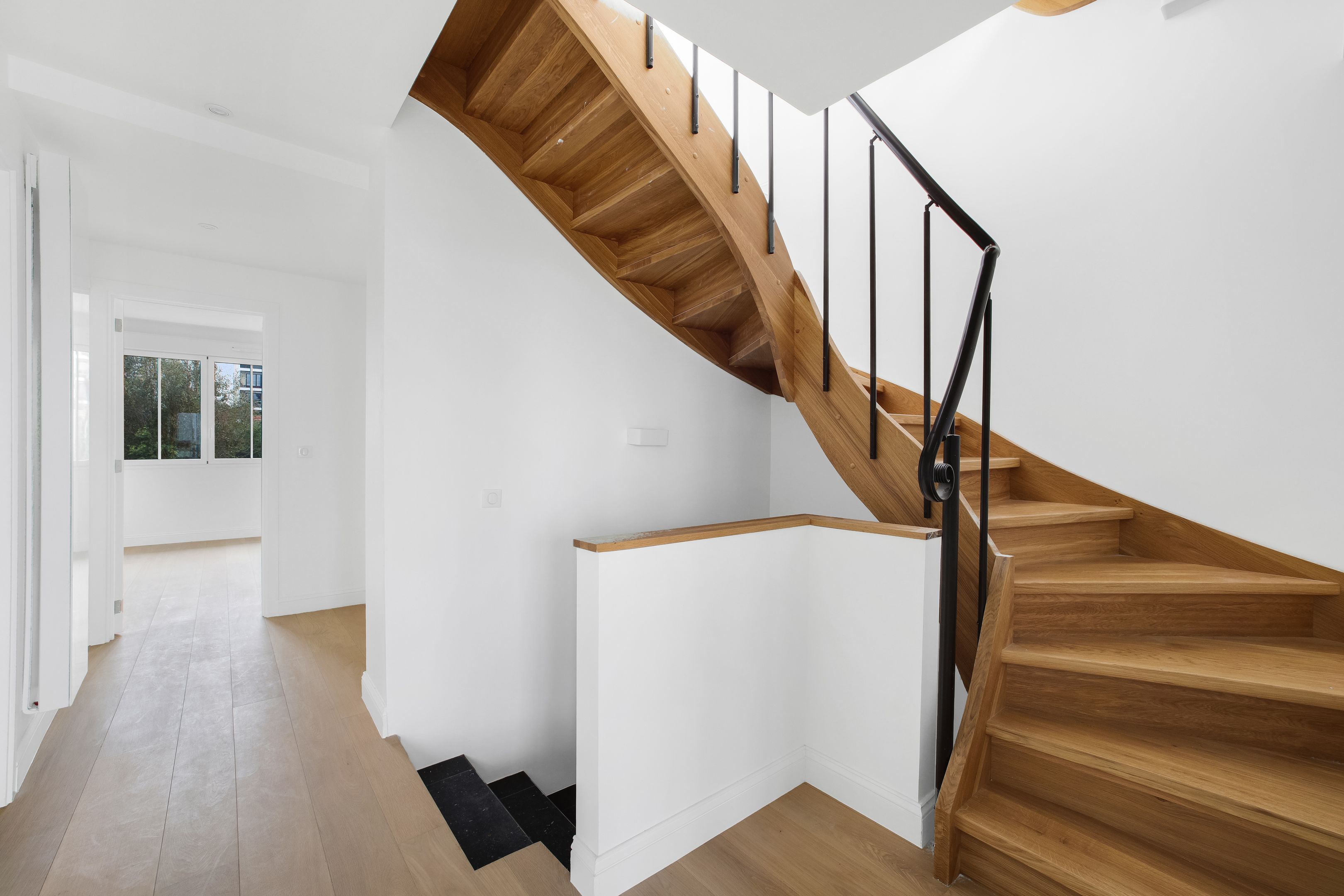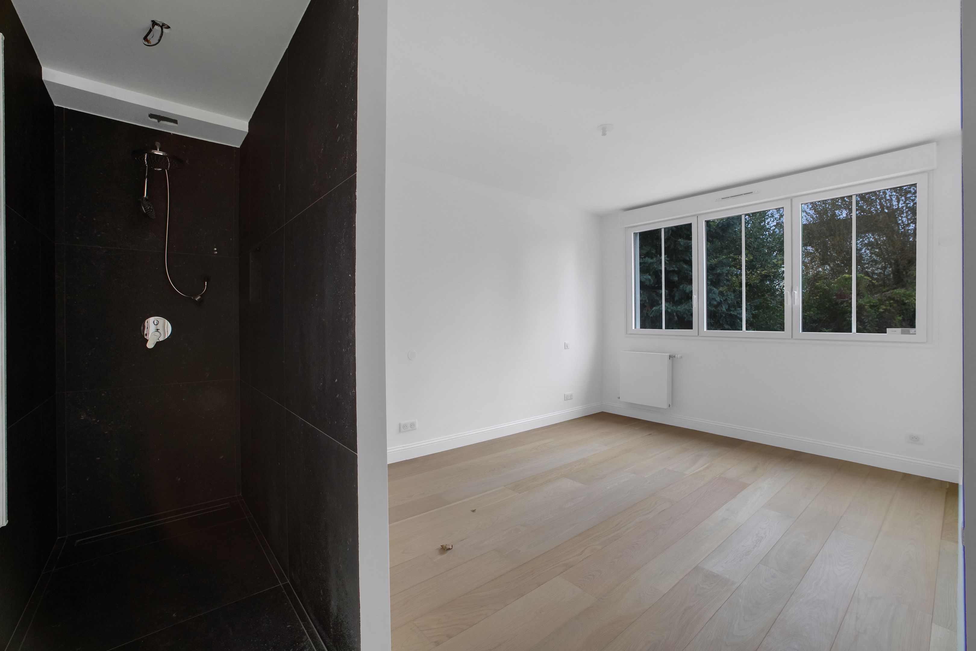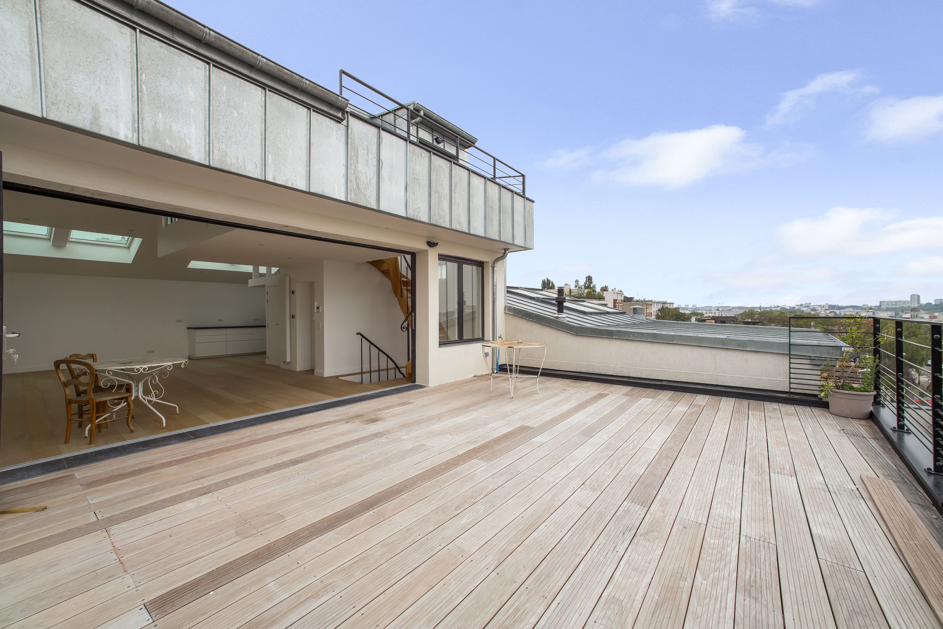 Quiet, sought-after neighborhood, close to shops and transport, 50 m from Parc des Guilands (26 hectares, Natura 2000), new 158 m² Loi Carrez duplex apartment "like a house on the roof", quiet, bright, benefiting from 3 terraces and a breathtaking panoramic view. 1st level: entrance, 53 m² living room, open kitchen, unoverlooked terrace (37m²). Upstairs: 4 bedrooms, 3 bathrooms, separate toilet, laundry room, terrace. On the roof: small belvedere office with terrace. Elevator. Garage.