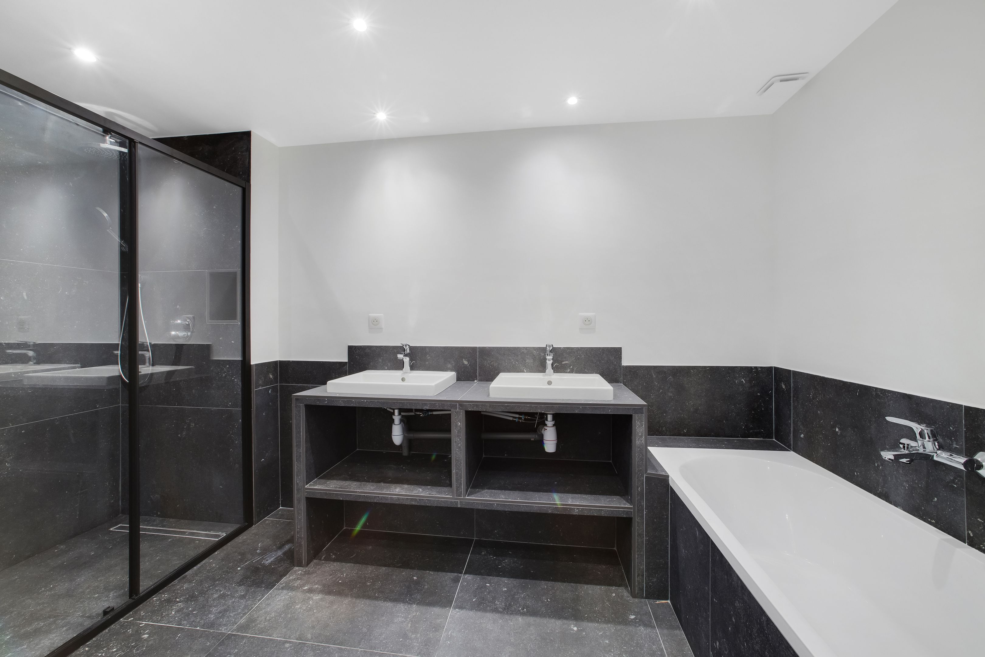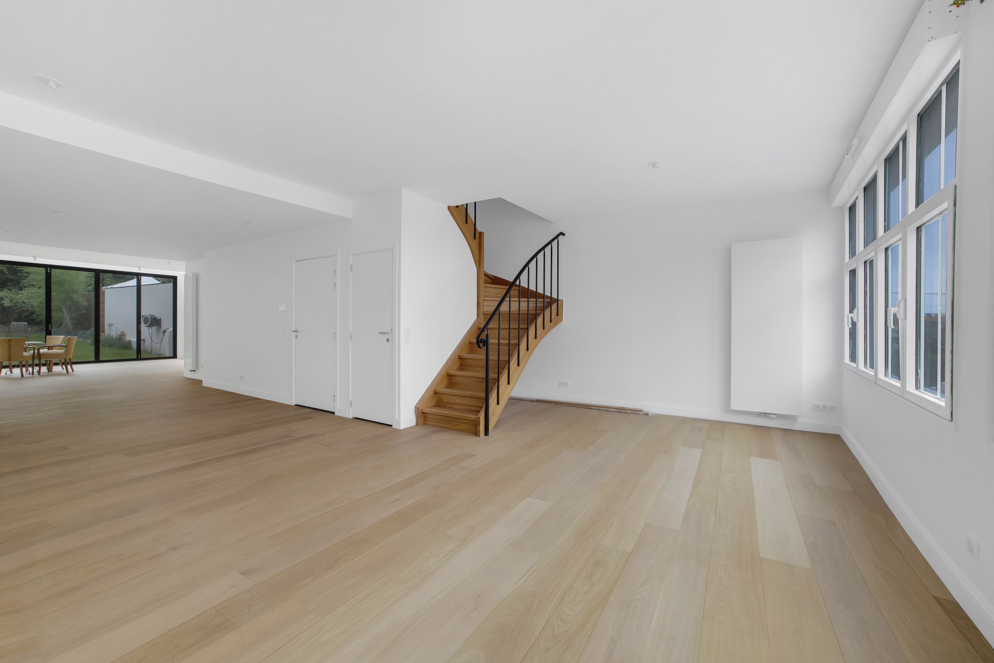 Quiet, sought-after neighborhood, close to shops and transport, 50 m from Parc des Guilands (26 hectares, Natura 2000), new 191 m² Loi Carrez duplex apartment "like a house", quiet, bright, benefiting from a large, unoverlooked garden (150 m²). 1st level: entrance, 92 m² living room, open kitchen, ground-level garden. Upstairs: 4 bedrooms, bathroom, 3 shower rooms, 3 separate toilets, laundry room. Garage for 2 cars.