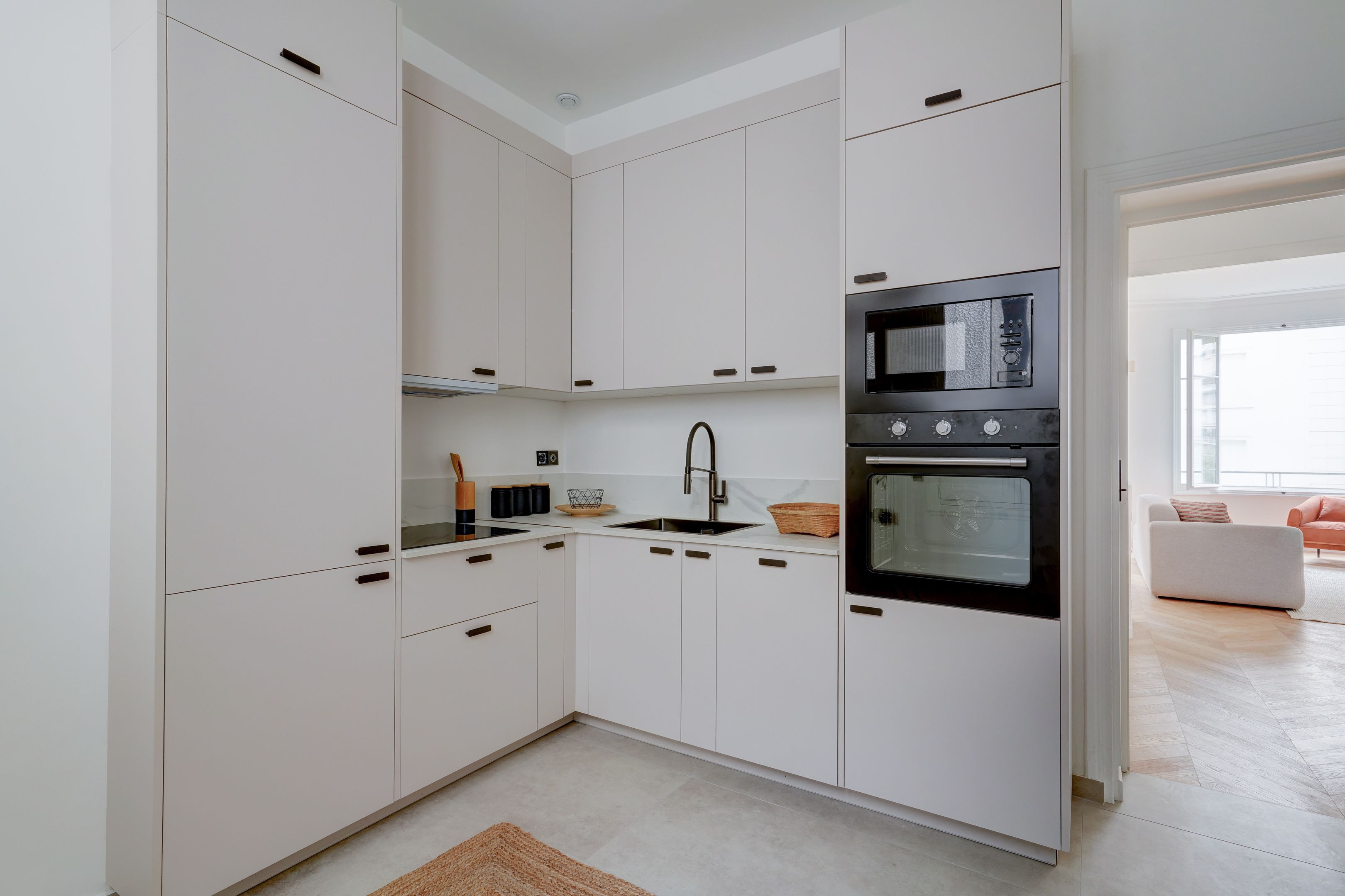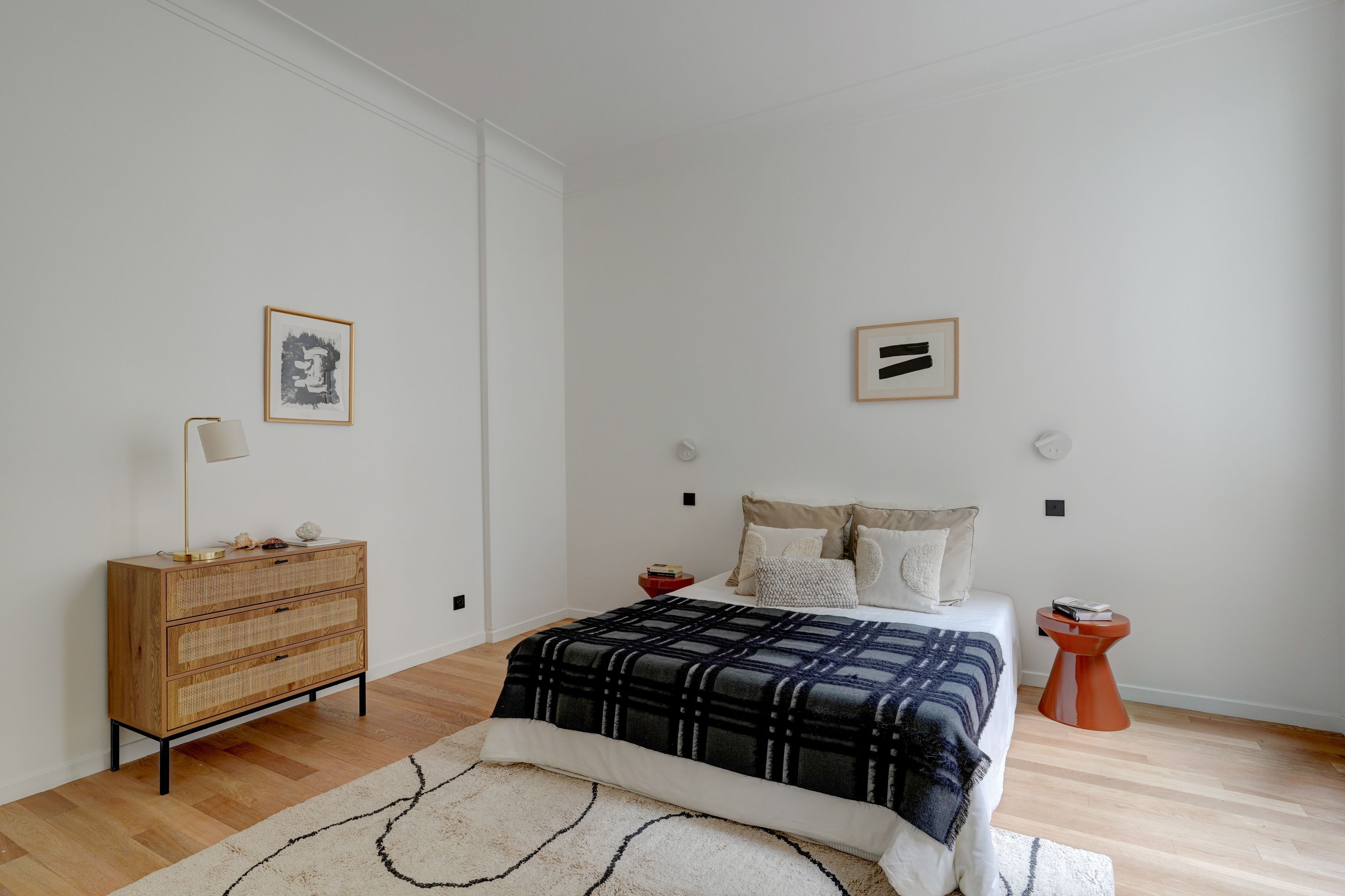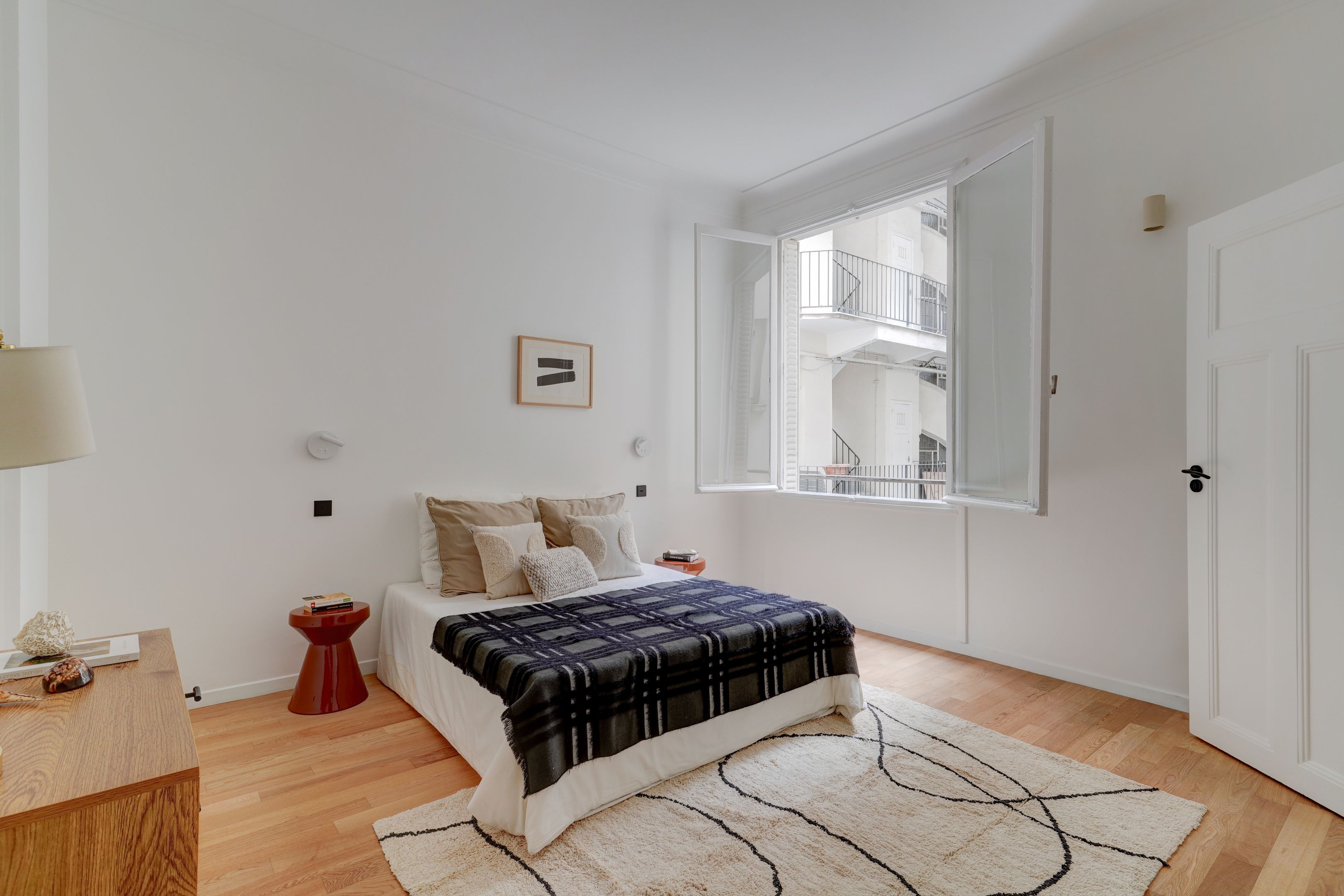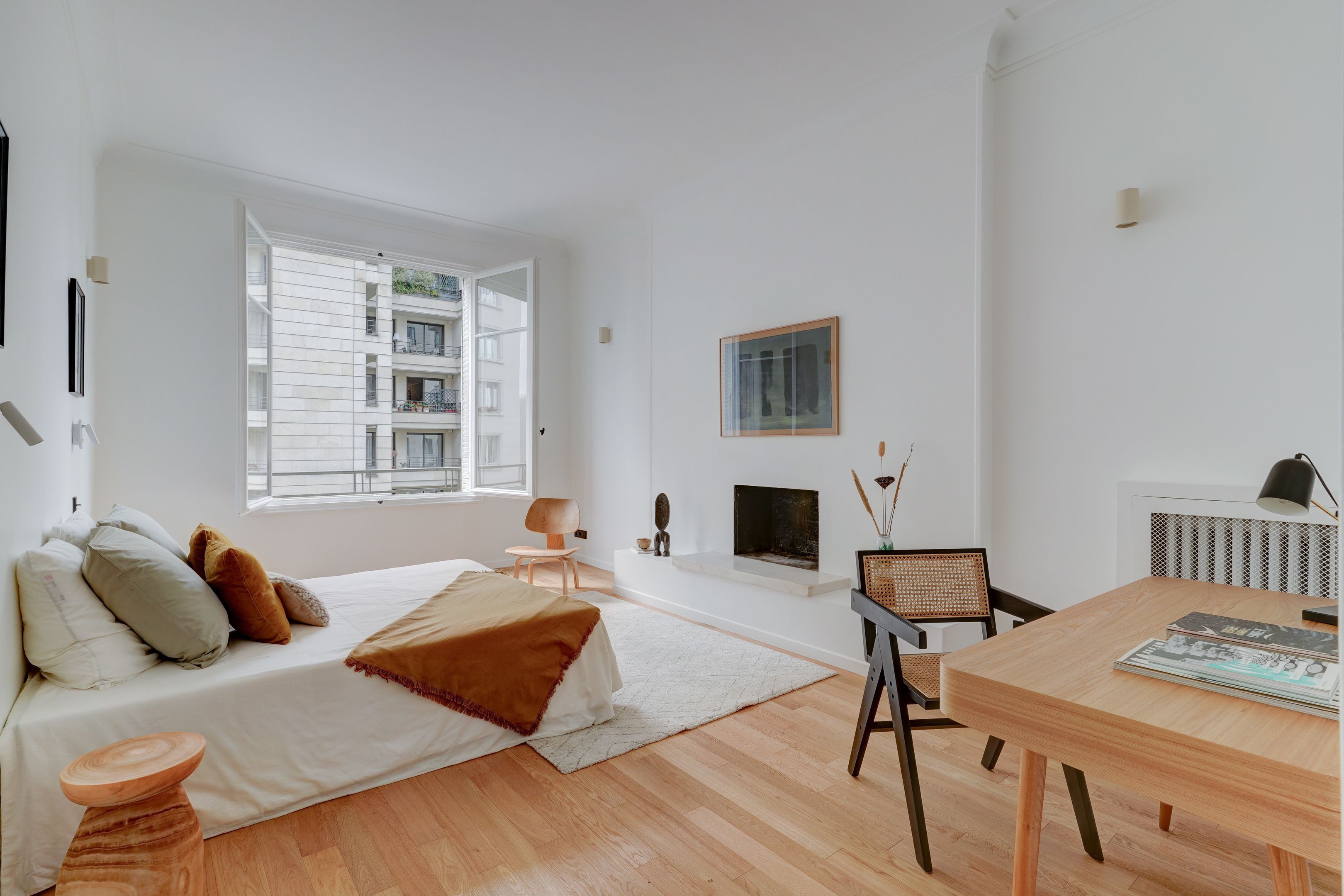 Parc de Passy, well-constructed 30's stone building, high-standard communal areas, 3rd floor, apartment entirely renovated with quality materials, spacious and sunny thanks to its southern exposure. Good layout. Entrance hall, double reception room, nearby separate kitchen, three bedrooms, two bathrooms, two toilets. Cellar.