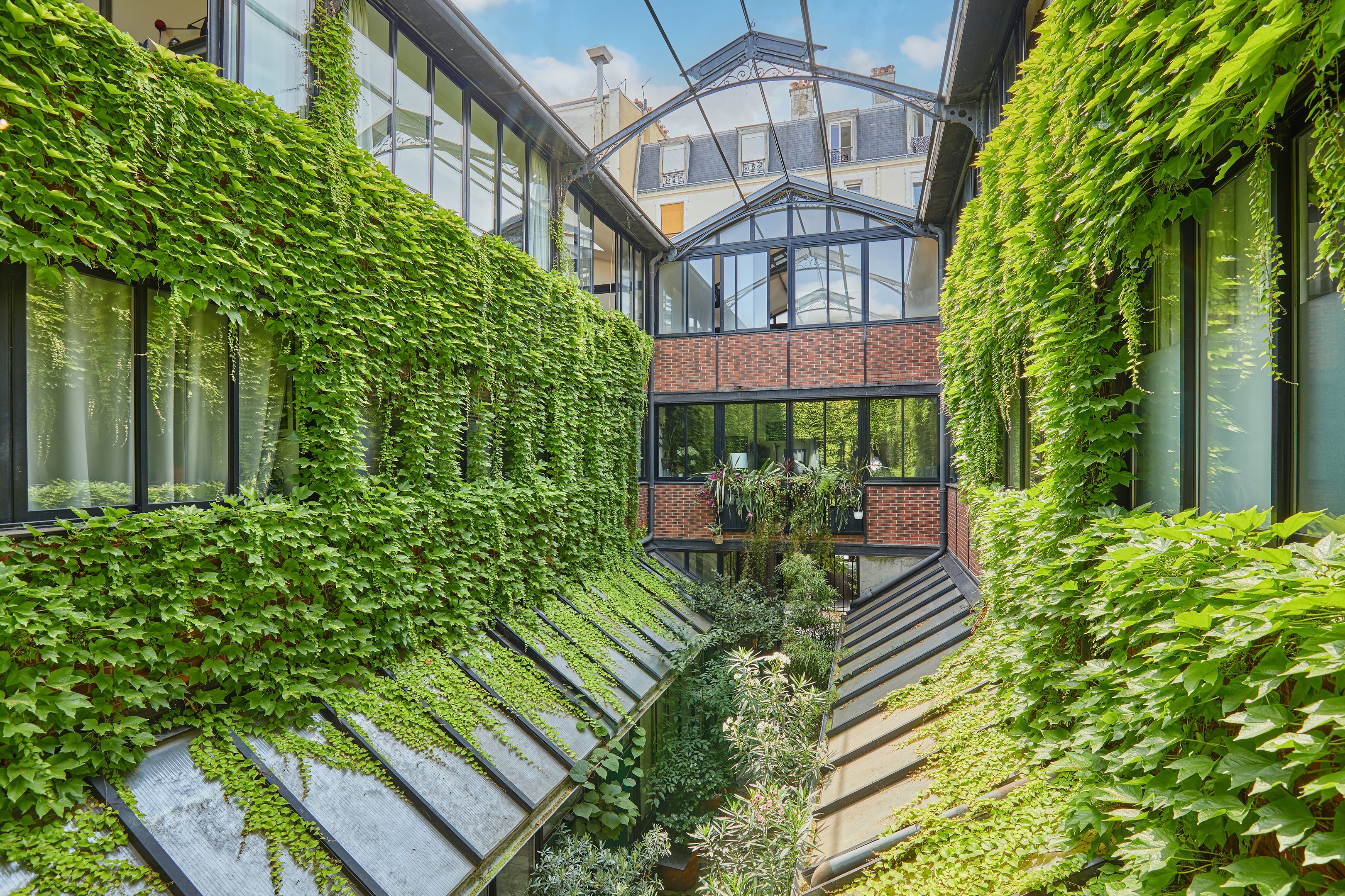 Second and top floor by staircase, industrial building rehabilitated in 1996, brickwork and ironwork, green facade. 2-in-1 apartment: entrance, living room, dining area, open kitchen, bedroom, bathroom, separate toilet. Mezzanine: office opening onto the living room, bedroom or roof terrace.