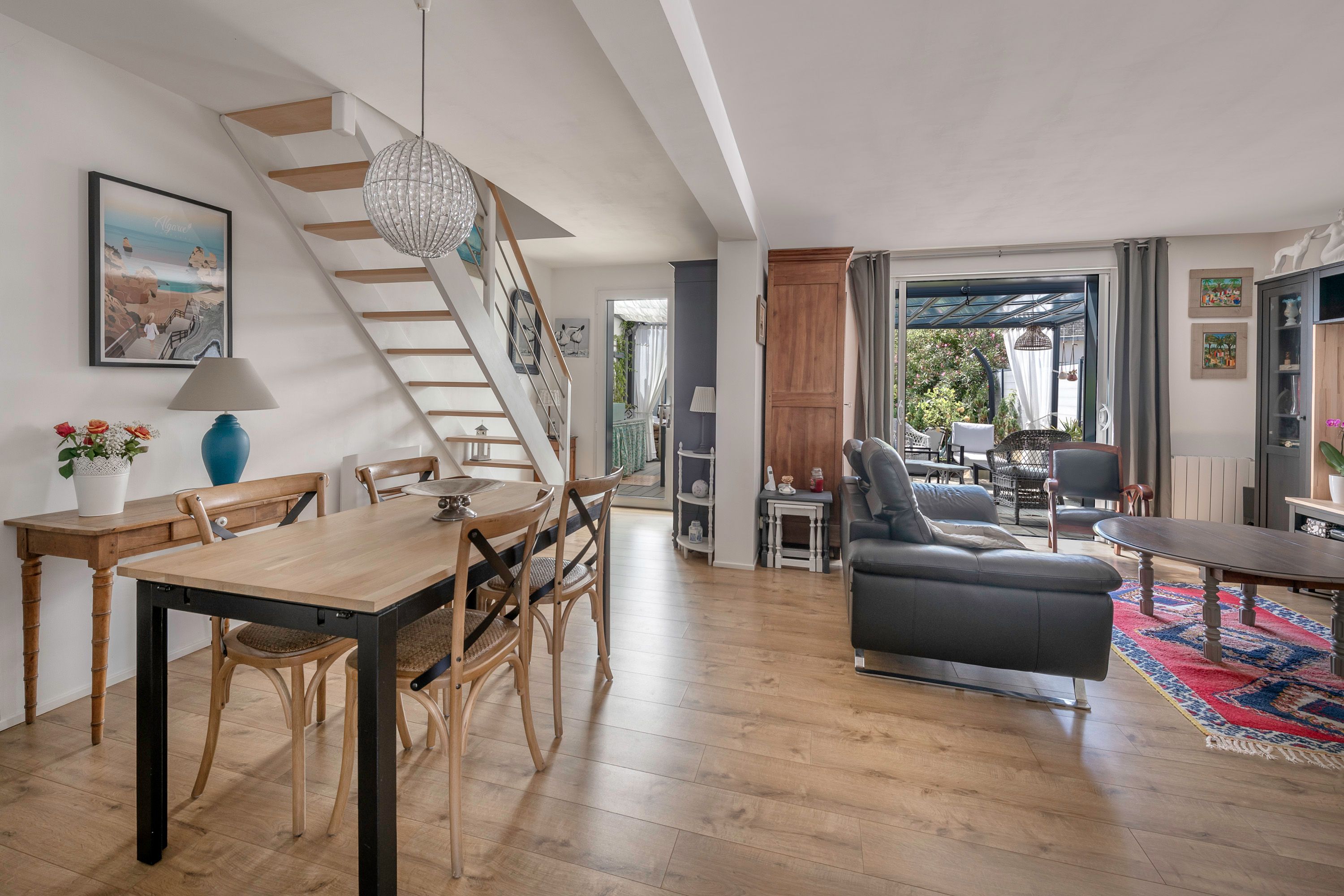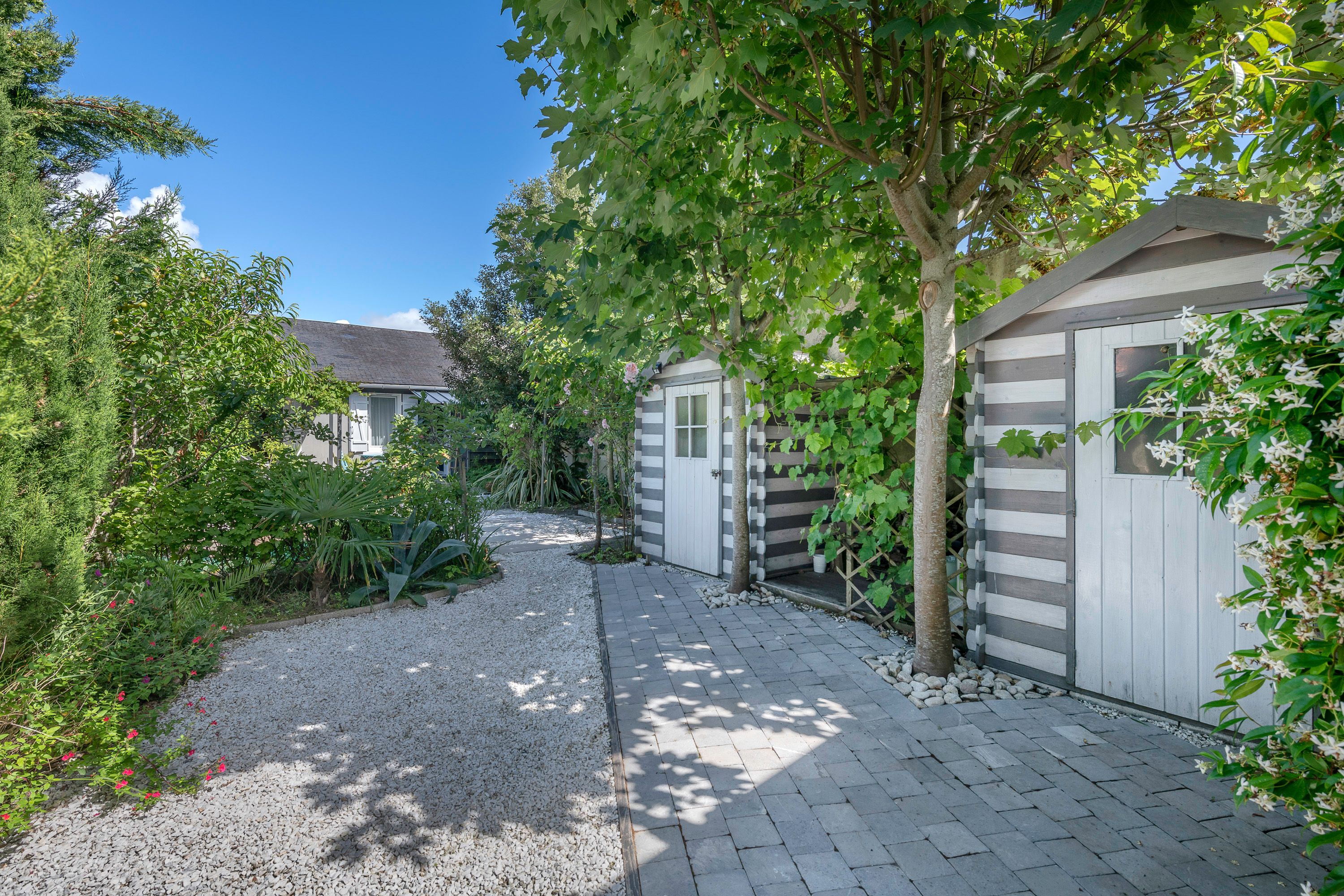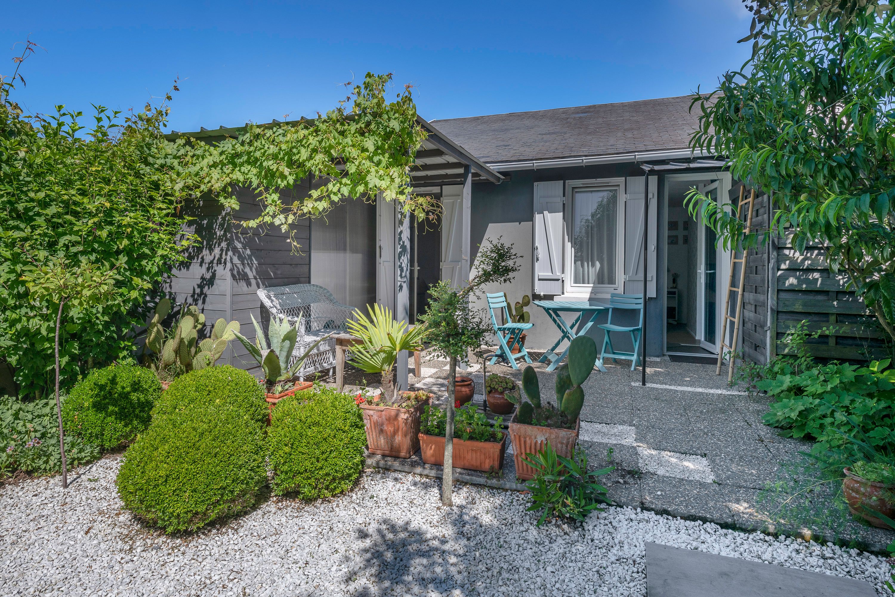 Exceptional location just 5 minutes' walk from the beach, shops and port, in a quiet, secluded setting on a 350m² plot, charming single-storey house entirely renovated with quality materials. Entrance hall, bright reception room (wood-burning stove) opening onto a vast west-facing terrace (pergola), separate fitted and equipped kitchen opening onto the exterior, utility room, lovely master suite (bedroom, dressing room, shower room, toilet), separate toilet. Upstairs: study or bedroom. Outbuilding converted into 2 bedrooms, each with its own shower room and toilet. Parking space.