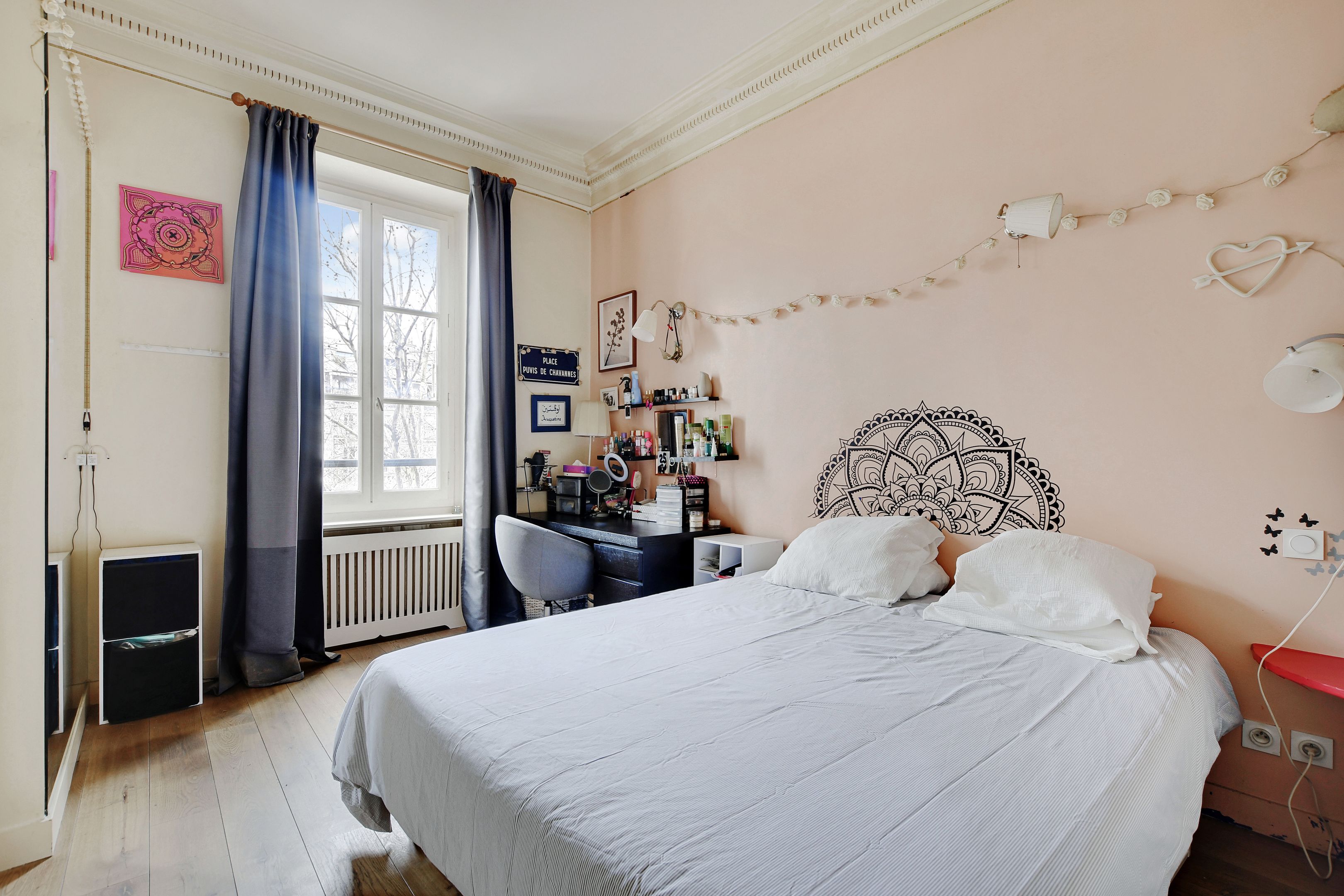 In a luxurious co-ownership property, spacious family apartment on the 3rd floor (with a lift), with high ceilings (over 3m/9.84ft) and 2 separate entrances offering a possibility of dividing the property into 2 apartments. Entrance hall, large 45m²/484ft² living room with a fully equipped open-plan kitchen, 4 bedrooms, bathroom, separate toilet, shower room and storeroom. Cellar.
