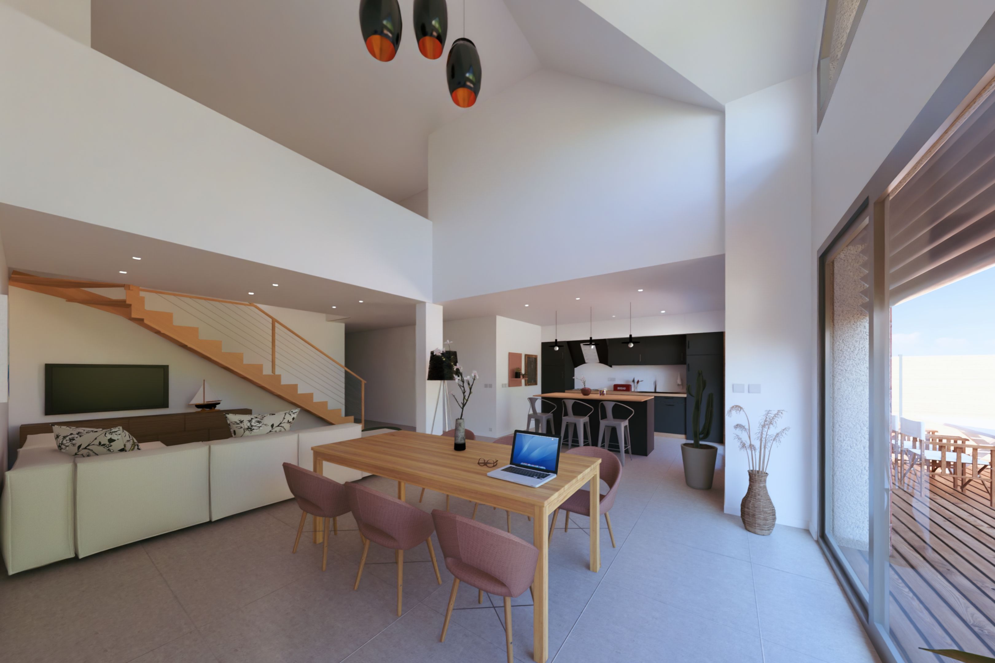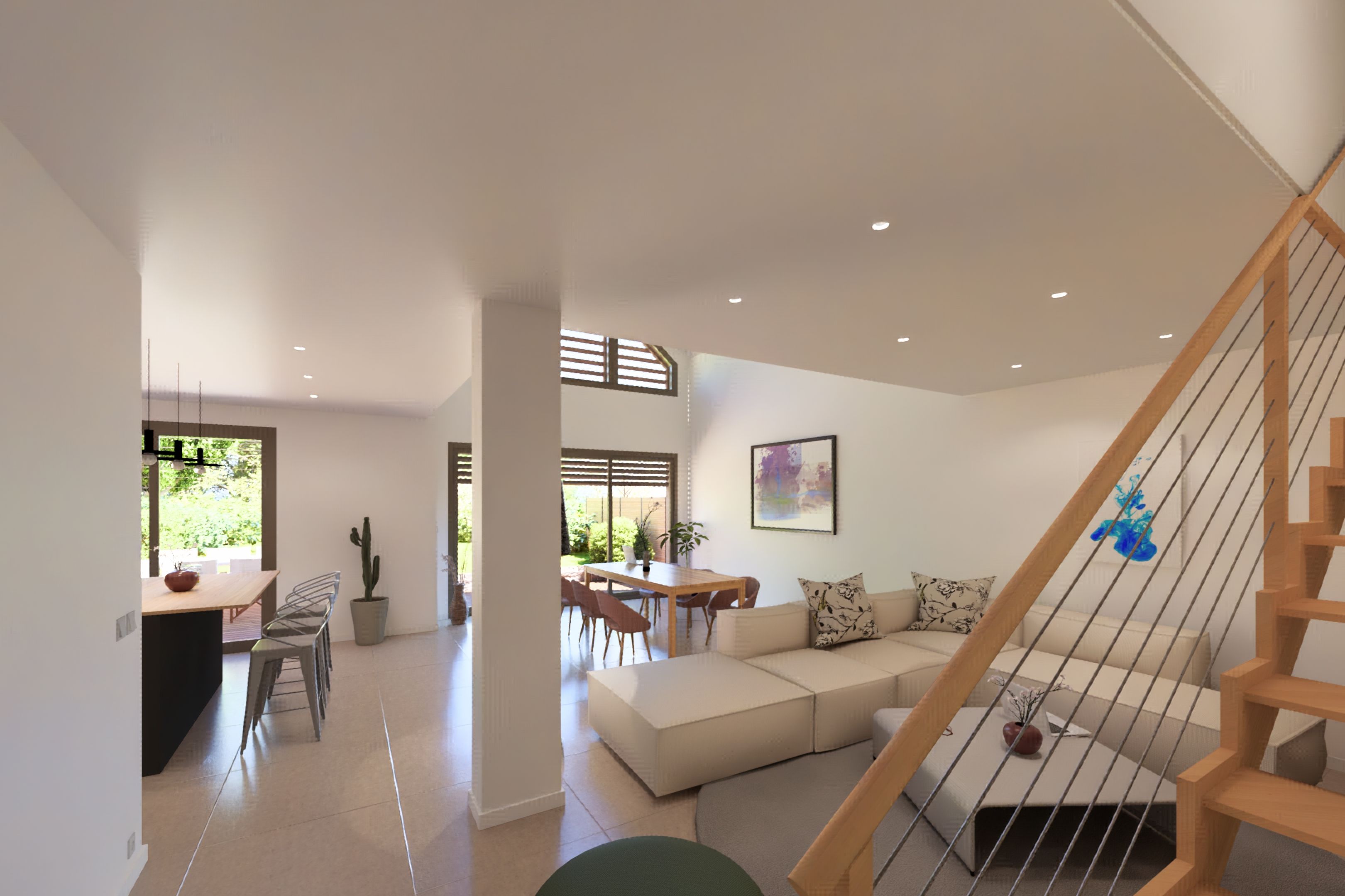 New 150m² house delivered in 2026, located 600m from shops and approx. 2km from beaches. This comfortable house benefits from beautiful new fittings, a very good floor plan and pleasant light thanks to its south-facing aspect. First floor: living room with cathedral ceiling extended by a wooden terrace, fully-equipped open kitchen, master suite, storeroom, garage. First floor: mezzanine landing, bedroom with shower room, two further bedrooms, bathroom. Sunny lawned garden with trees. Excellent energy performance.