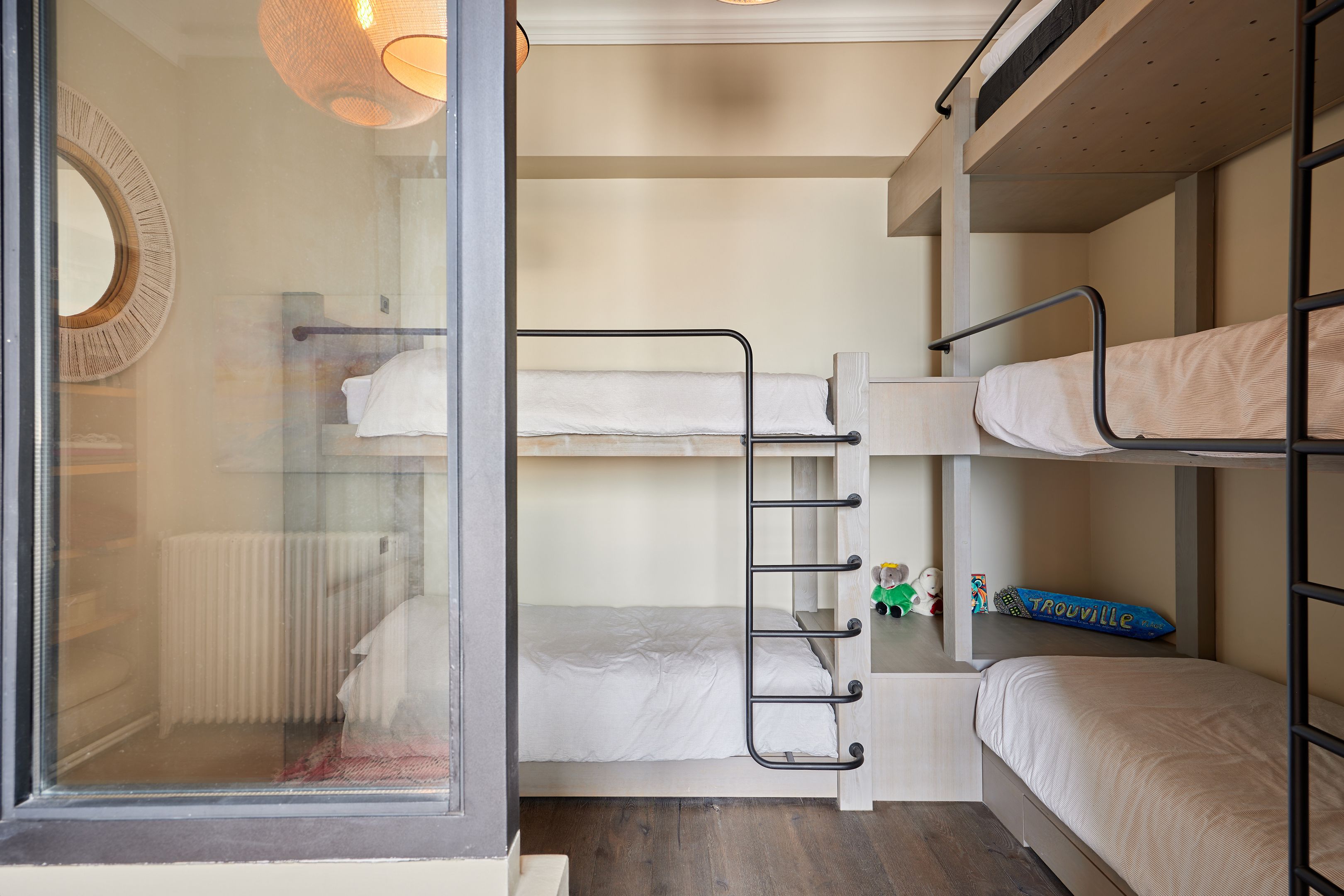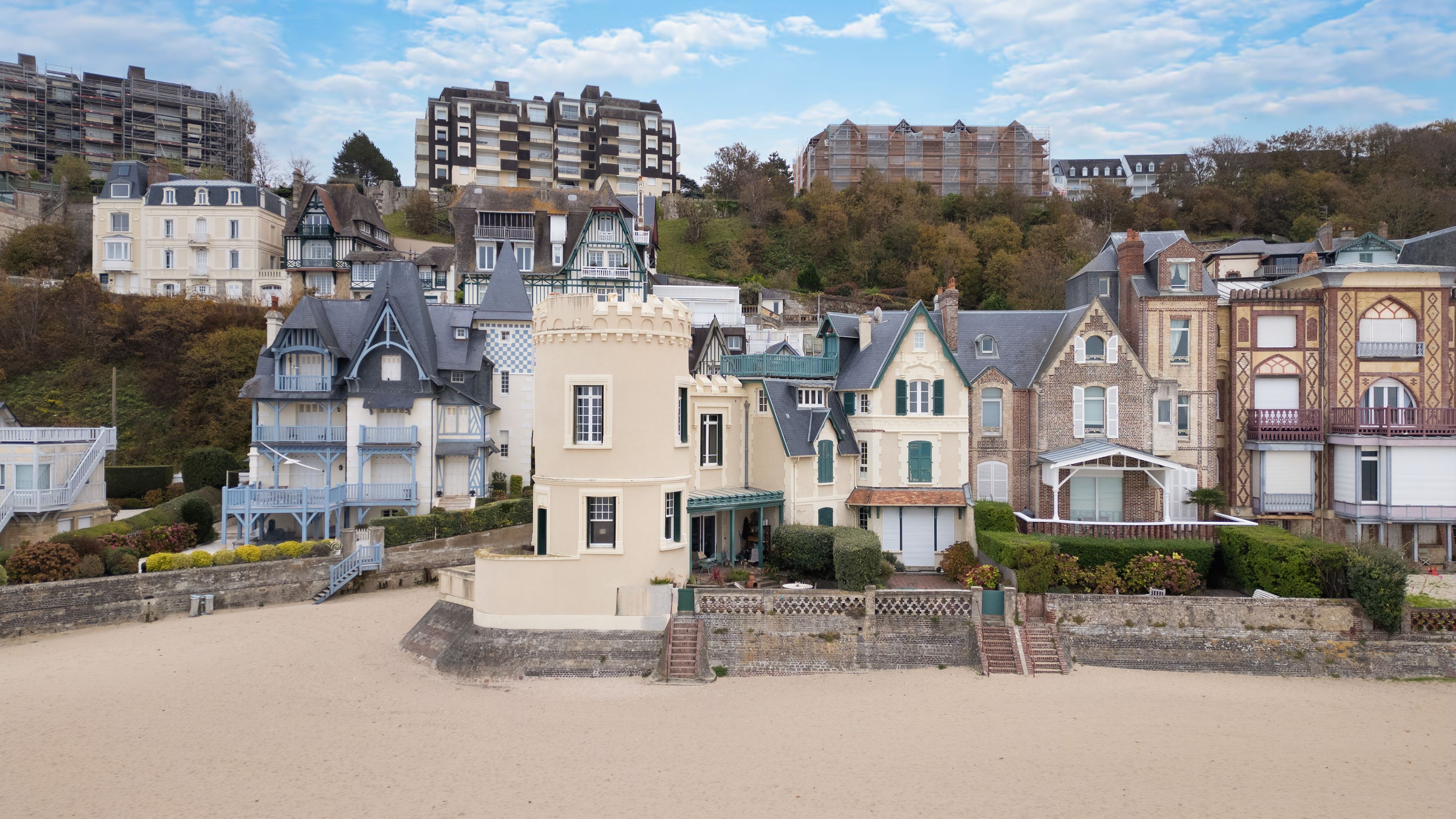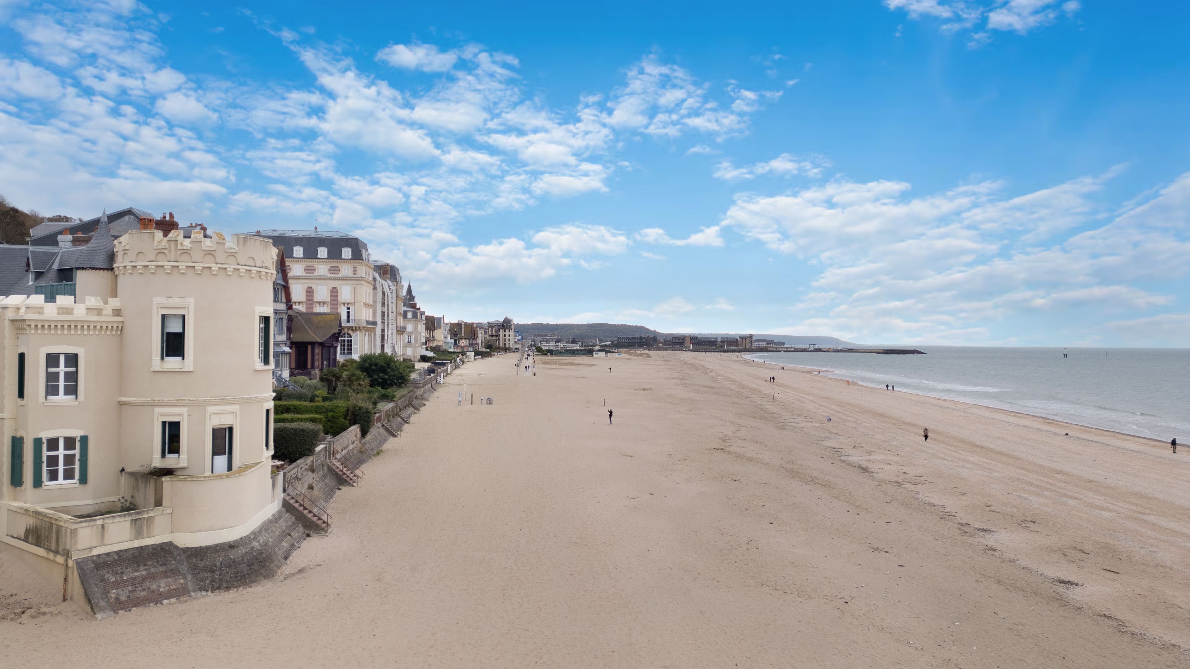 Exclusive Breteuil - In one of the most emblematic locations on the coast, facing Trouville beach, 127 m² duplex apartment entirely renovated with noble materials. Located in the Tour Malakoff, this unique address offers an exceptional seafront setting and direct access to the beach. First floor: dining room opening onto a private west-facing terrace, independent fitted kitchen, living room in the heart of the tower with views from every window and opening onto a second terrace. First floor: master bedroom in the tower with en-suite shower room, bedroom, children's dormitory, shower room, spacious bathroom and laundry area.
