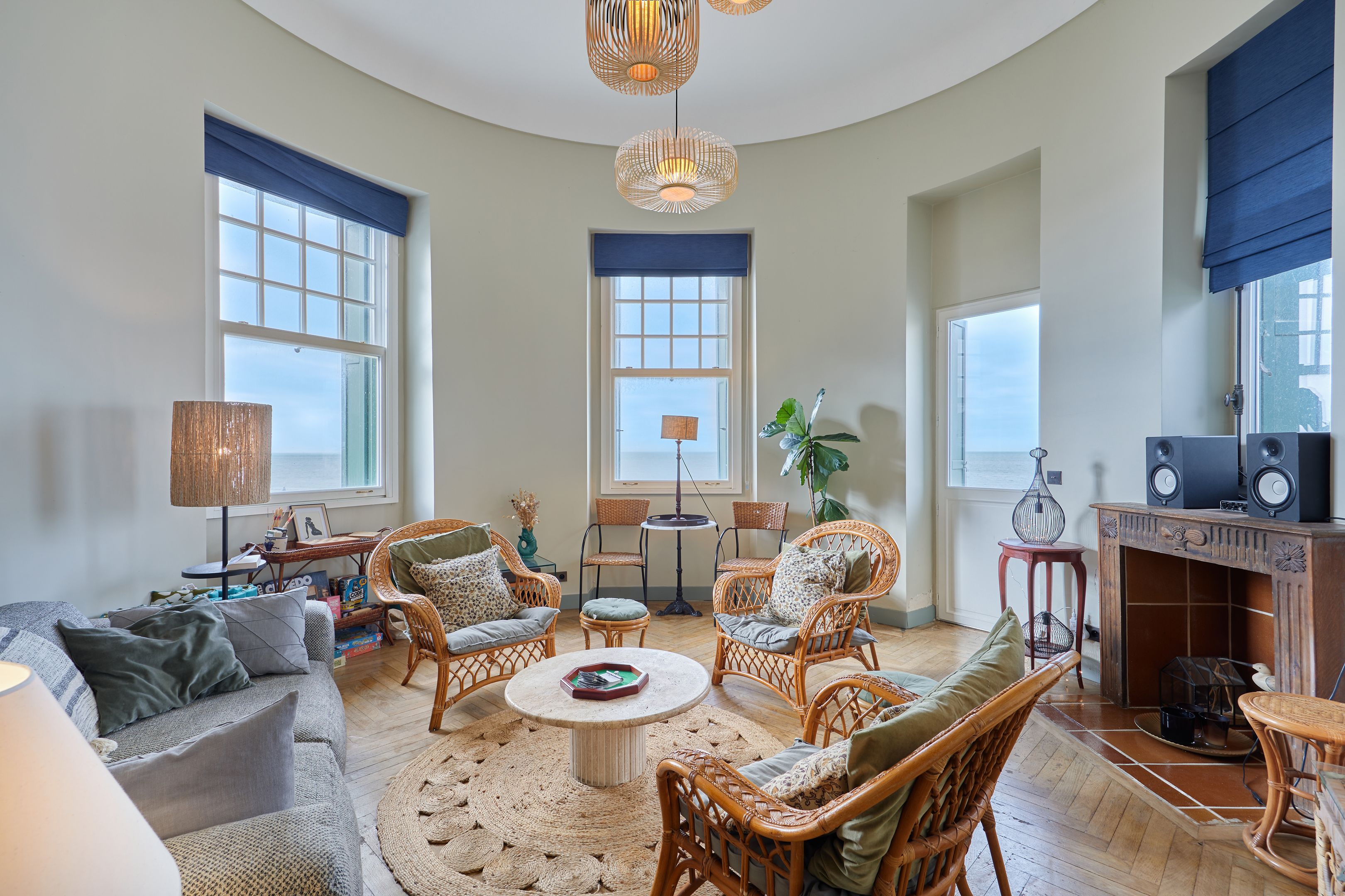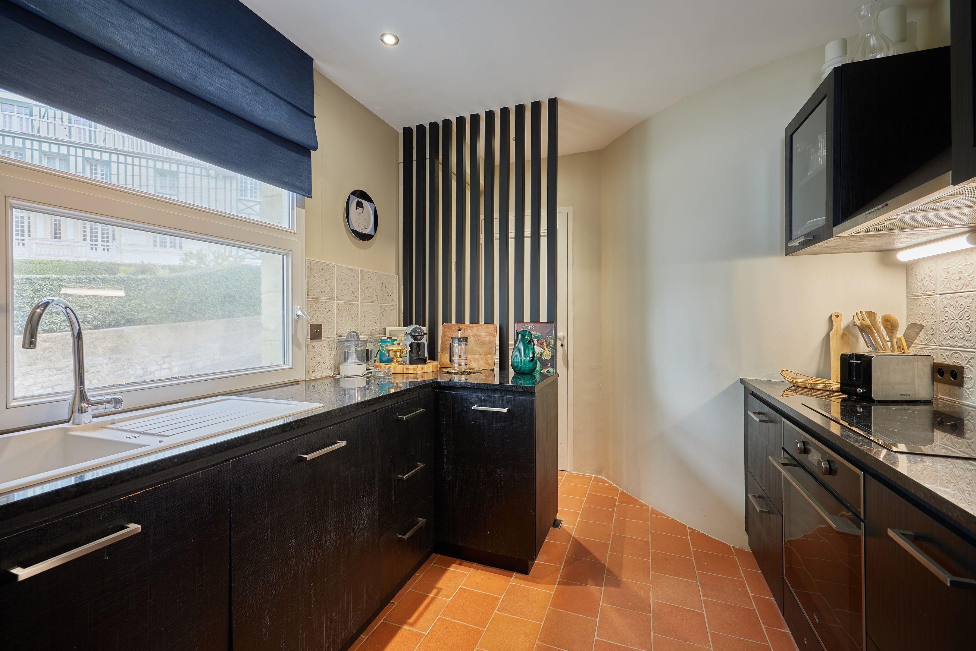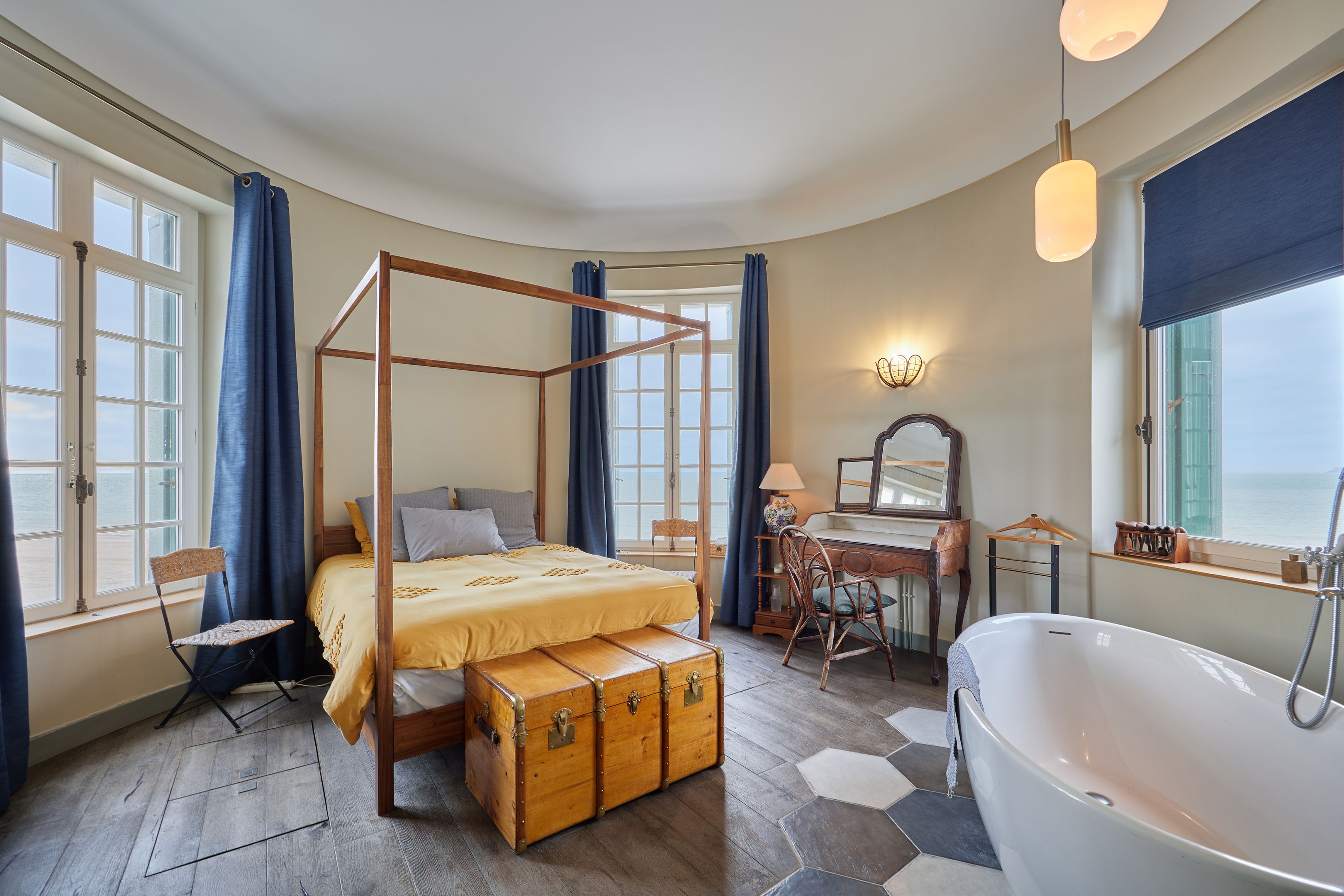 Exclusive Breteuil - In one of the most emblematic locations on the coast, facing Trouville beach, 127 m² duplex apartment entirely renovated with noble materials. Located in the Tour Malakoff, this unique address offers an exceptional seafront setting and direct access to the beach. First floor: dining room opening onto a private west-facing terrace, independent fitted kitchen, living room in the heart of the tower with views from every window and opening onto a second terrace. First floor: master bedroom in the tower with en-suite shower room, bedroom, children's dormitory, shower room, spacious bathroom and laundry area.