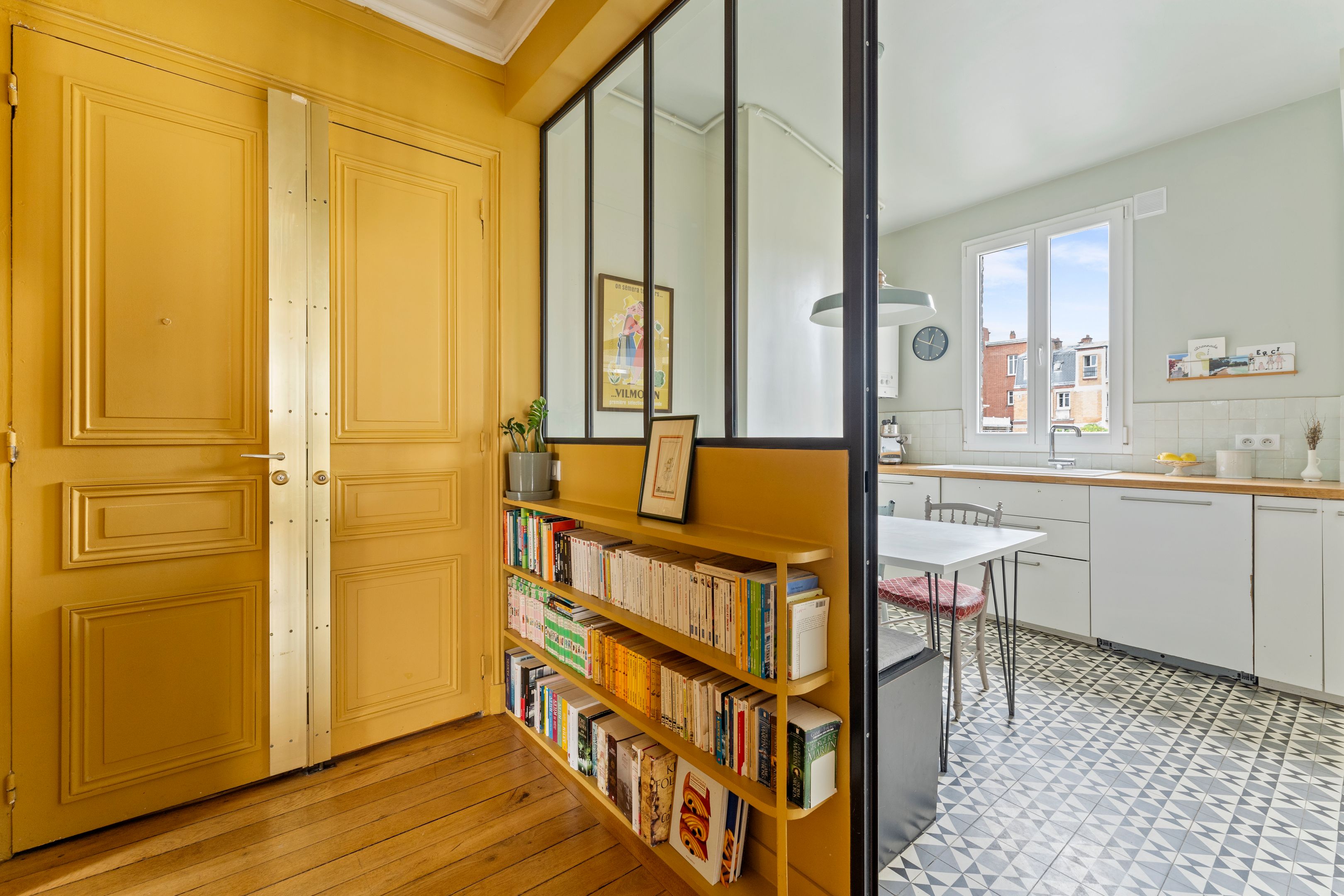 Ideally located close to shops and transport on Rue Lecourbe, in a quiet, sought-after cul-de-sac, an old building of very high quality. Nestled on the 5th and last floor, served by elevator, this beautiful family apartment has been renovated to a high standard and boasts the cachet of the past. Entrance hall, double corner living room, separate kitchen and dining area, four bedrooms, dressing room, bathroom with toilet, separate toilet. Plenty of storage space. Two cellars. Stroller room.