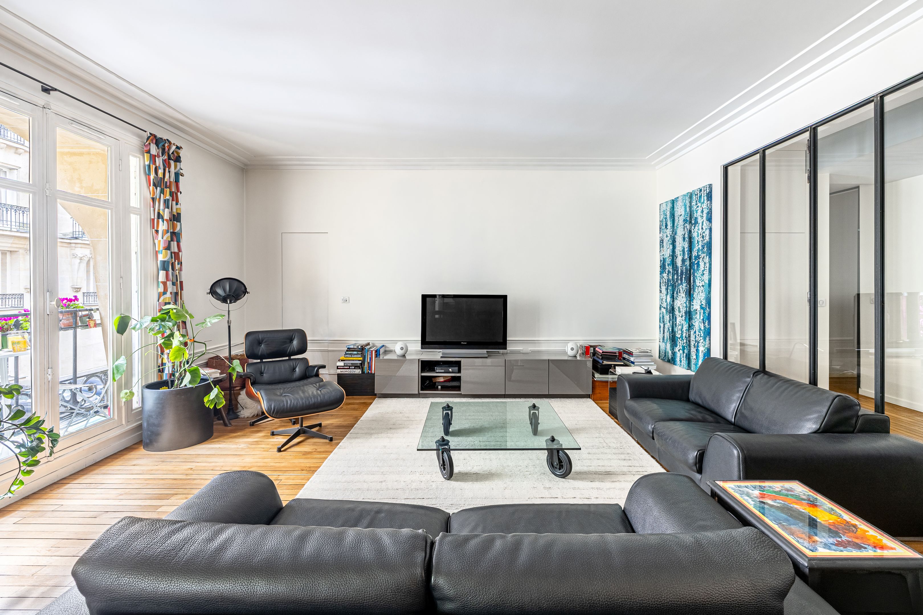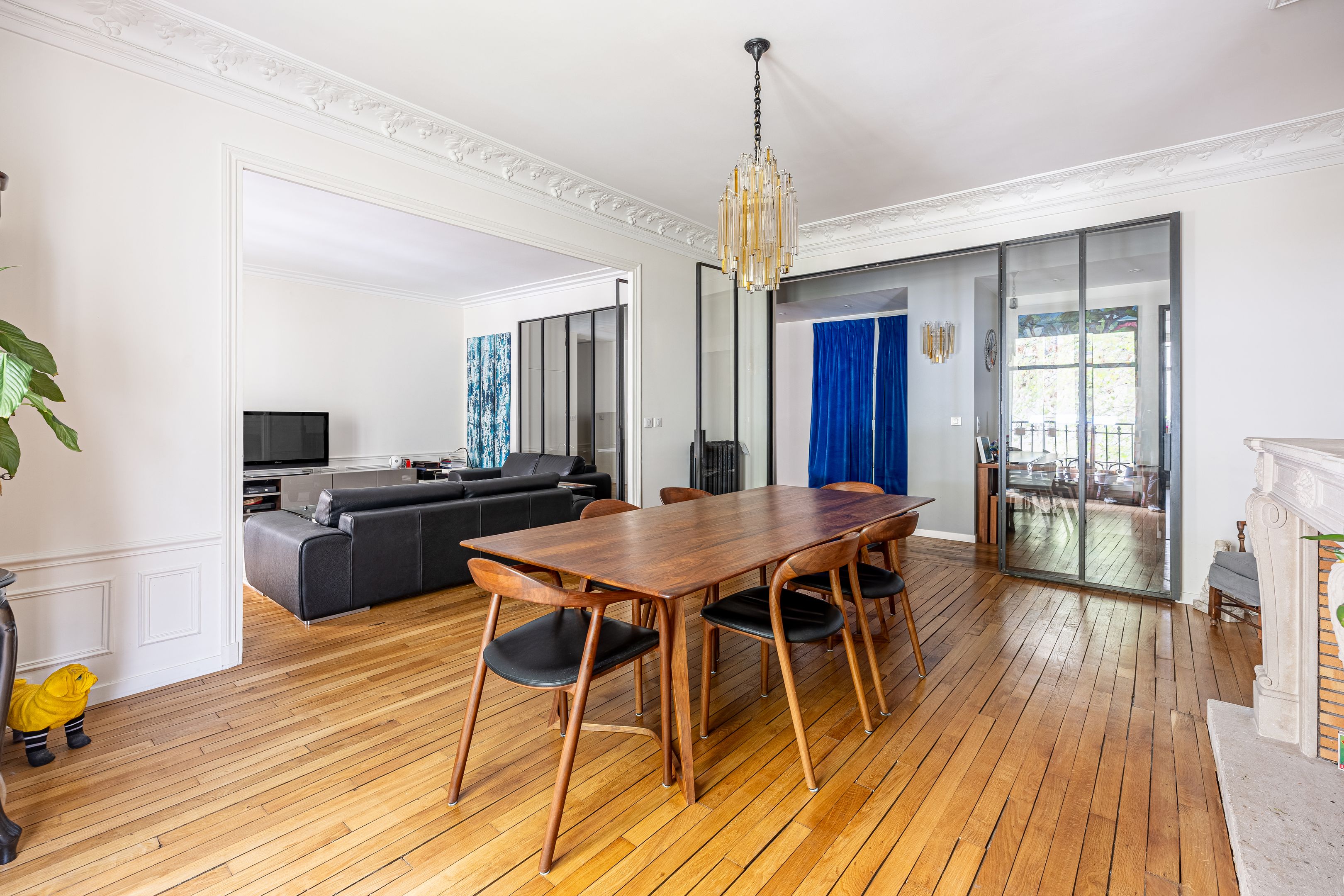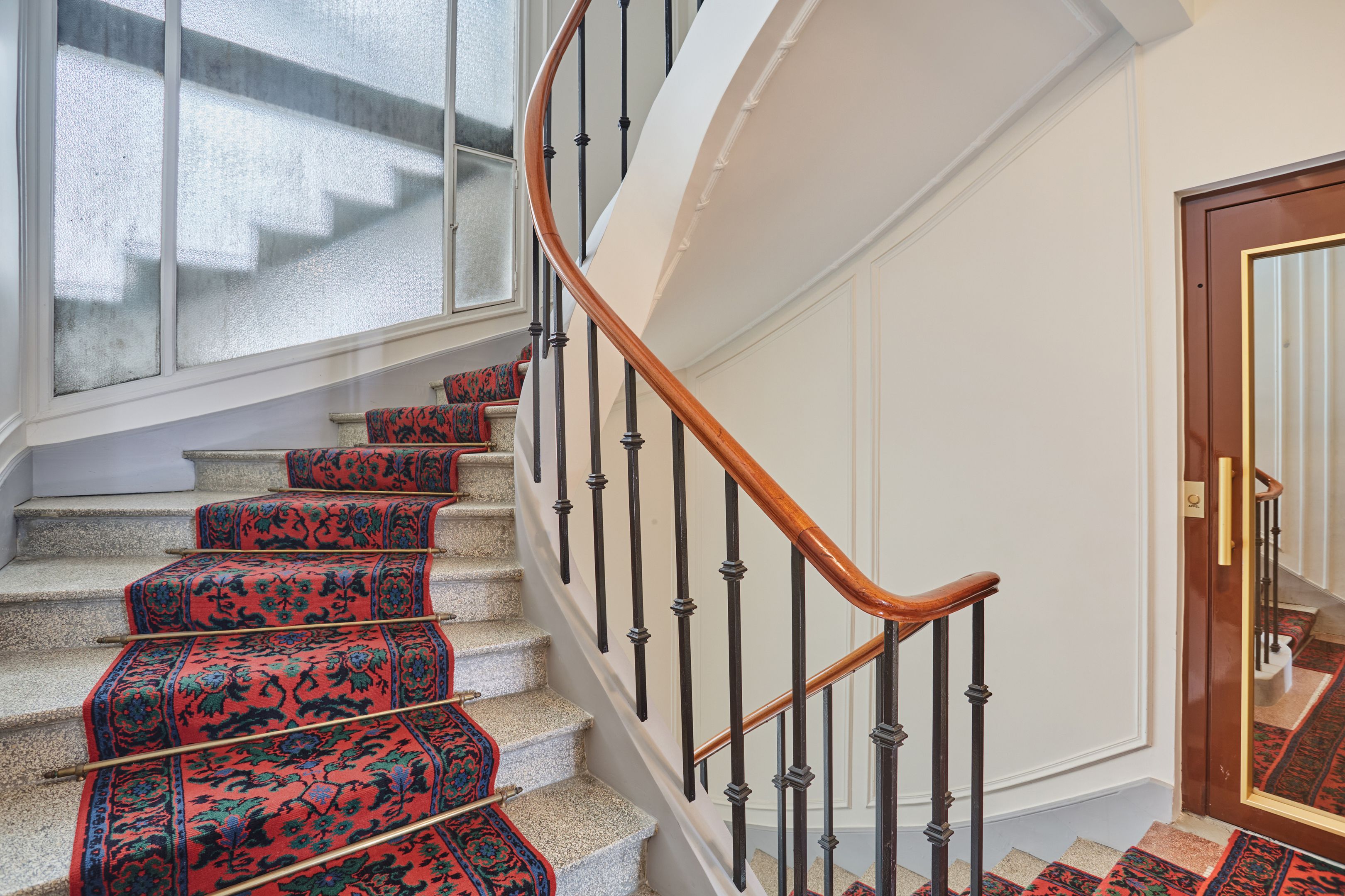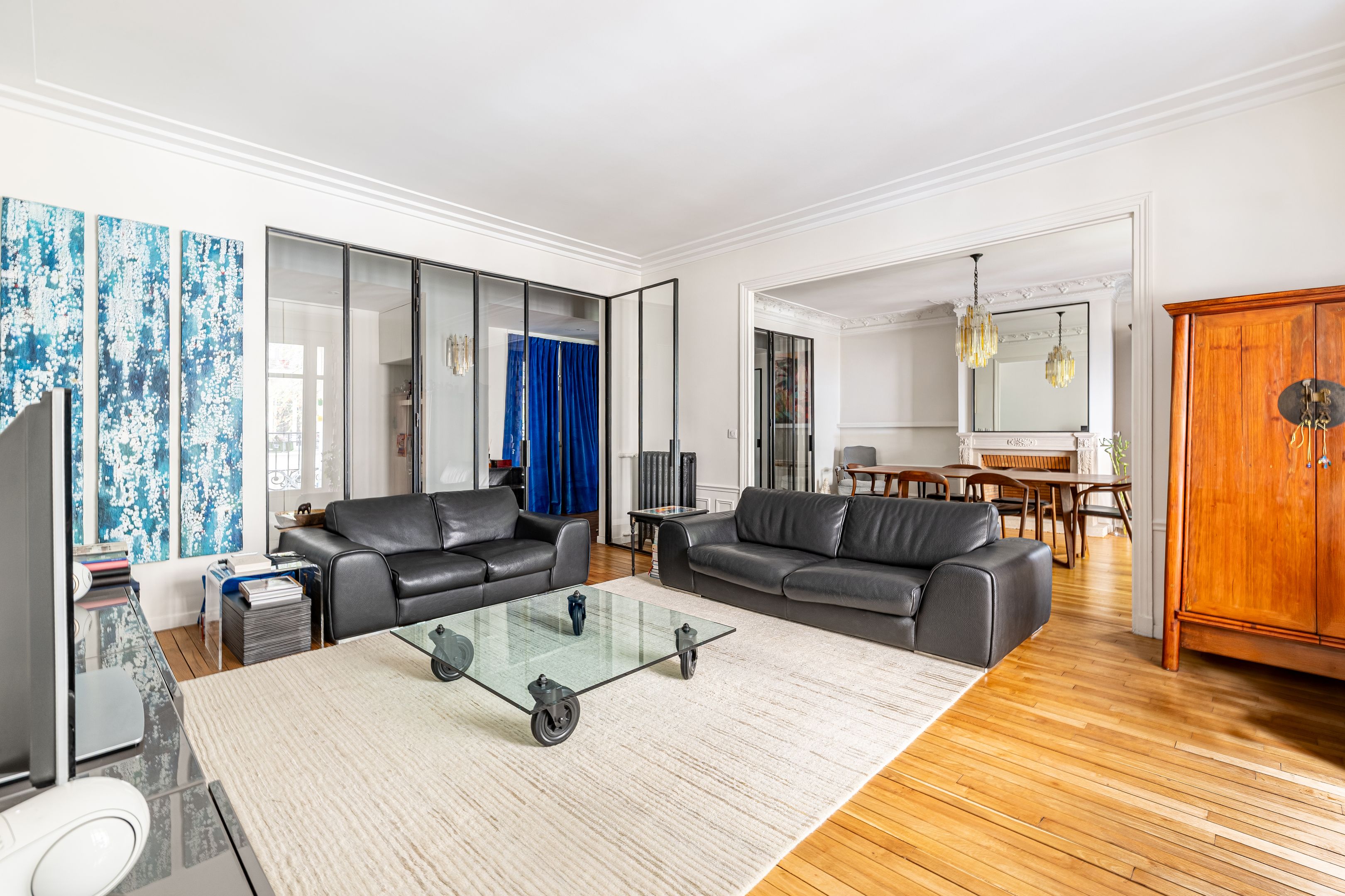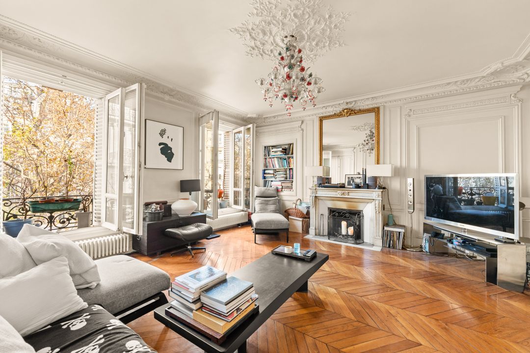 On the second floor, 145.41m² family apartment benefiting from high-quality contemporary renovation and spacious accommodation. Entrance gallery, double reception room, independent fitted and equipped kitchen with dining area, office space in the entrance hall, three bedrooms including a master suite with bathroom, shower and toilet, numerous custom-designed storage spaces, shower room, guest toilet. Storeroom/laundry room on the service landing in exclusive private use. Cellar. Possibility of acquiring a 9.14m² fitted service room on the seventh floor by staircase. Right to park on private driveway.
