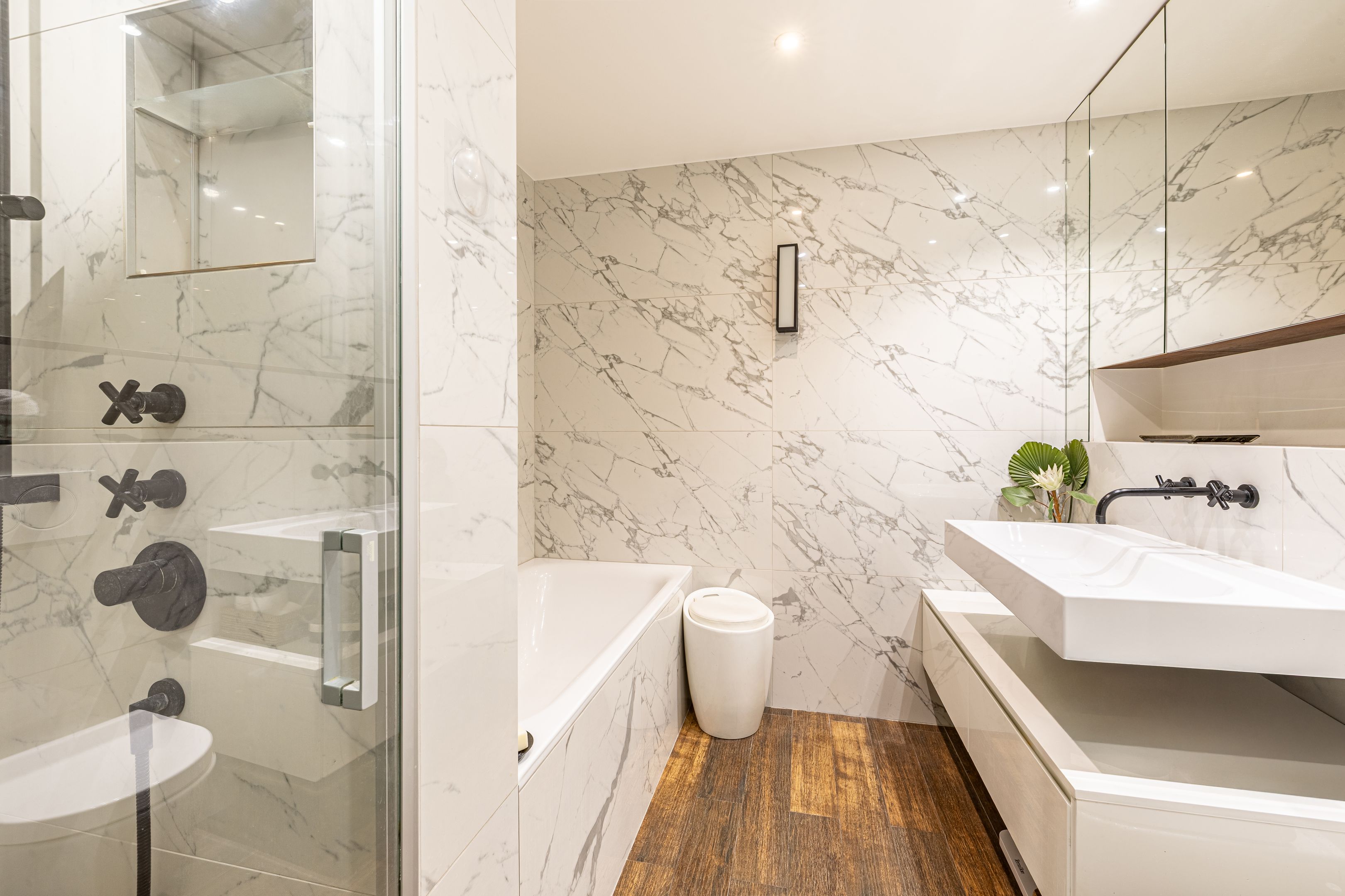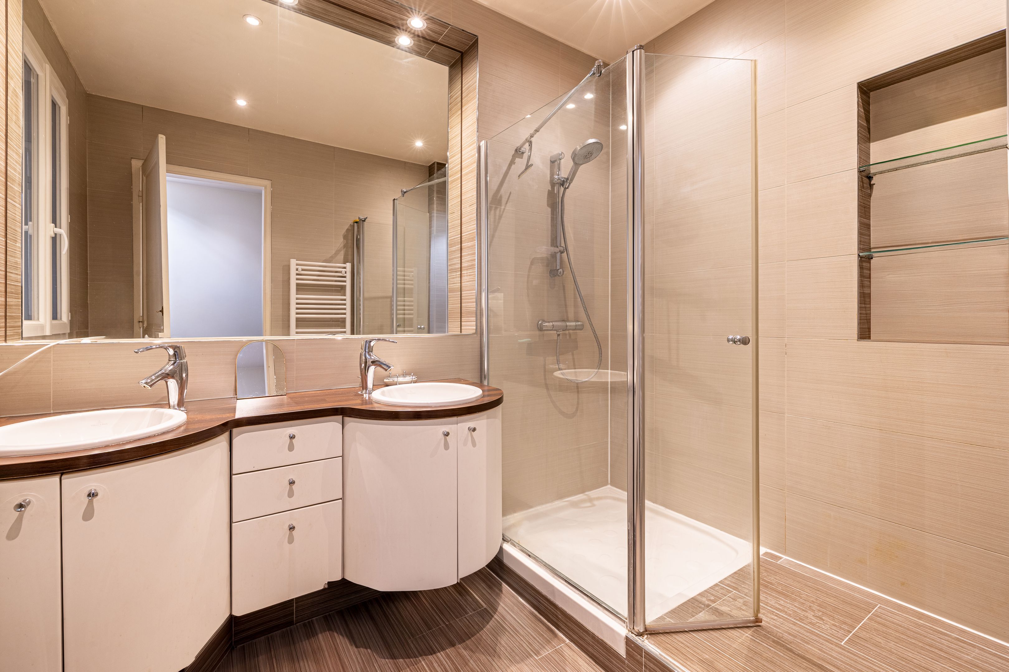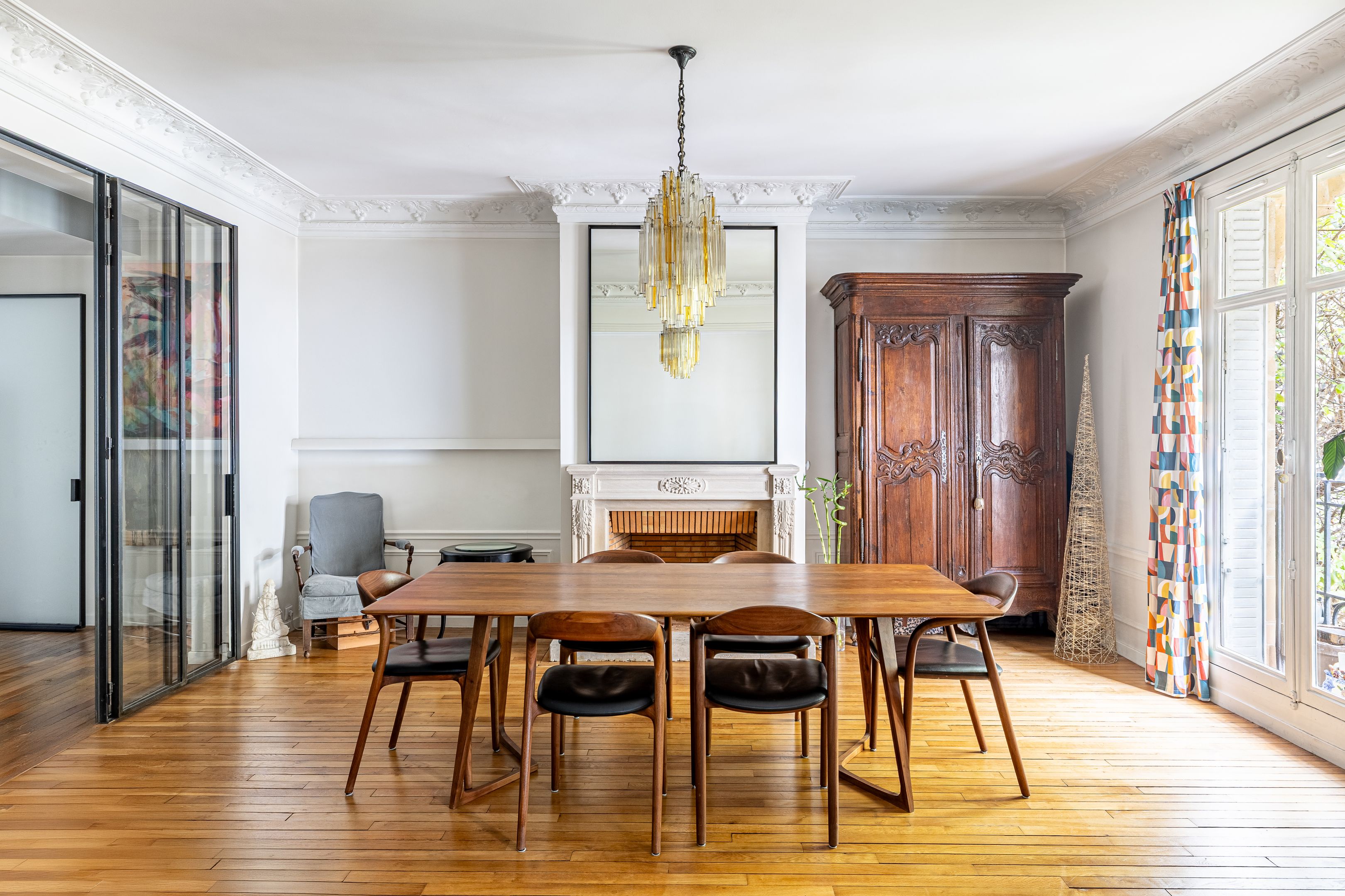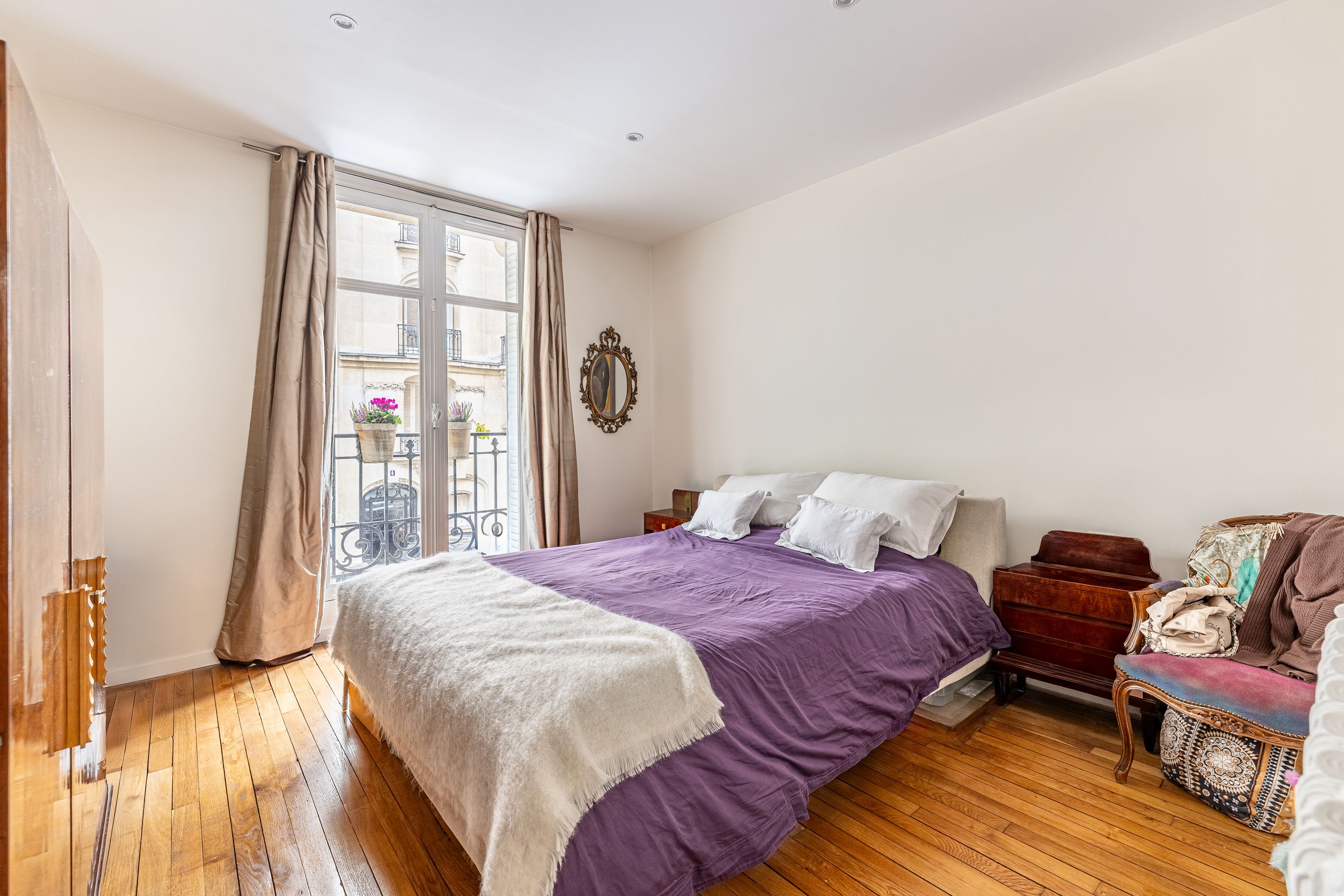 On the second floor, 145.41m² family apartment benefiting from high-quality contemporary renovation and spacious accommodation. Entrance gallery, double reception room, independent fitted and equipped kitchen with dining area, office space in the entrance hall, three bedrooms including a master suite with bathroom, shower and toilet, numerous custom-designed storage spaces, shower room, guest toilet. Storeroom/laundry room on the service landing in exclusive private use. Cellar. Possibility of acquiring a 9.14m² fitted service room on the seventh floor by staircase. Right to park on private driveway.