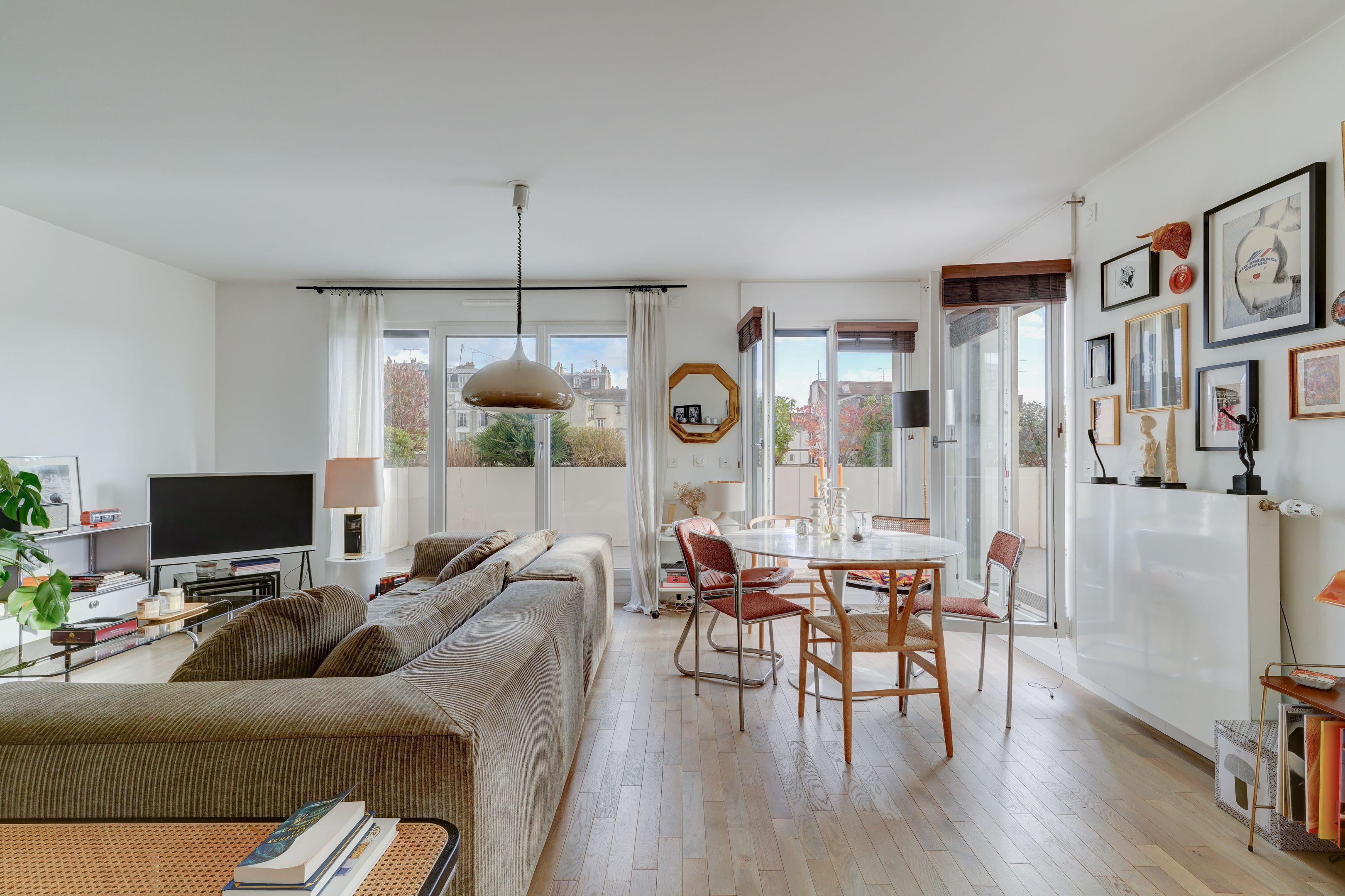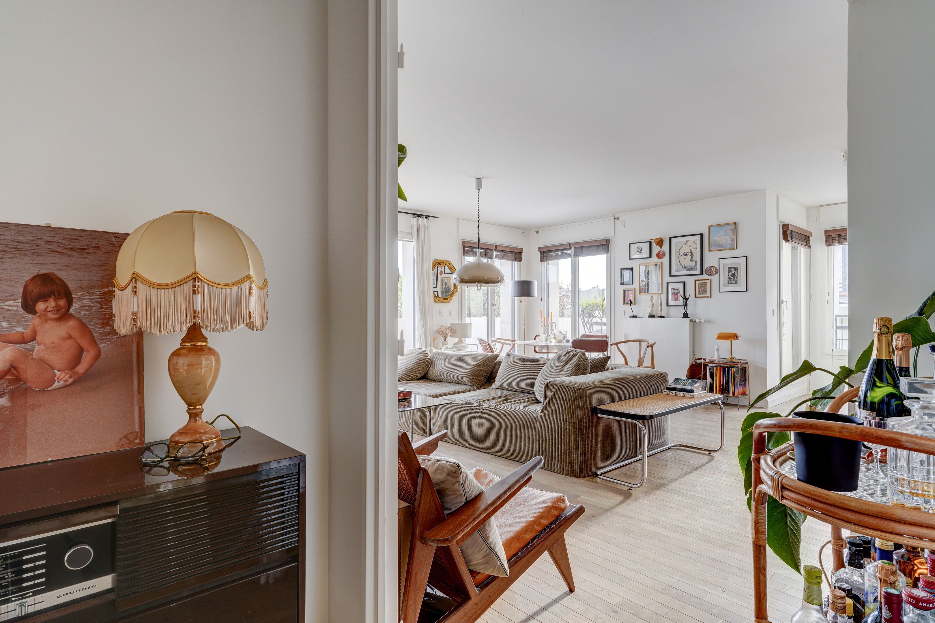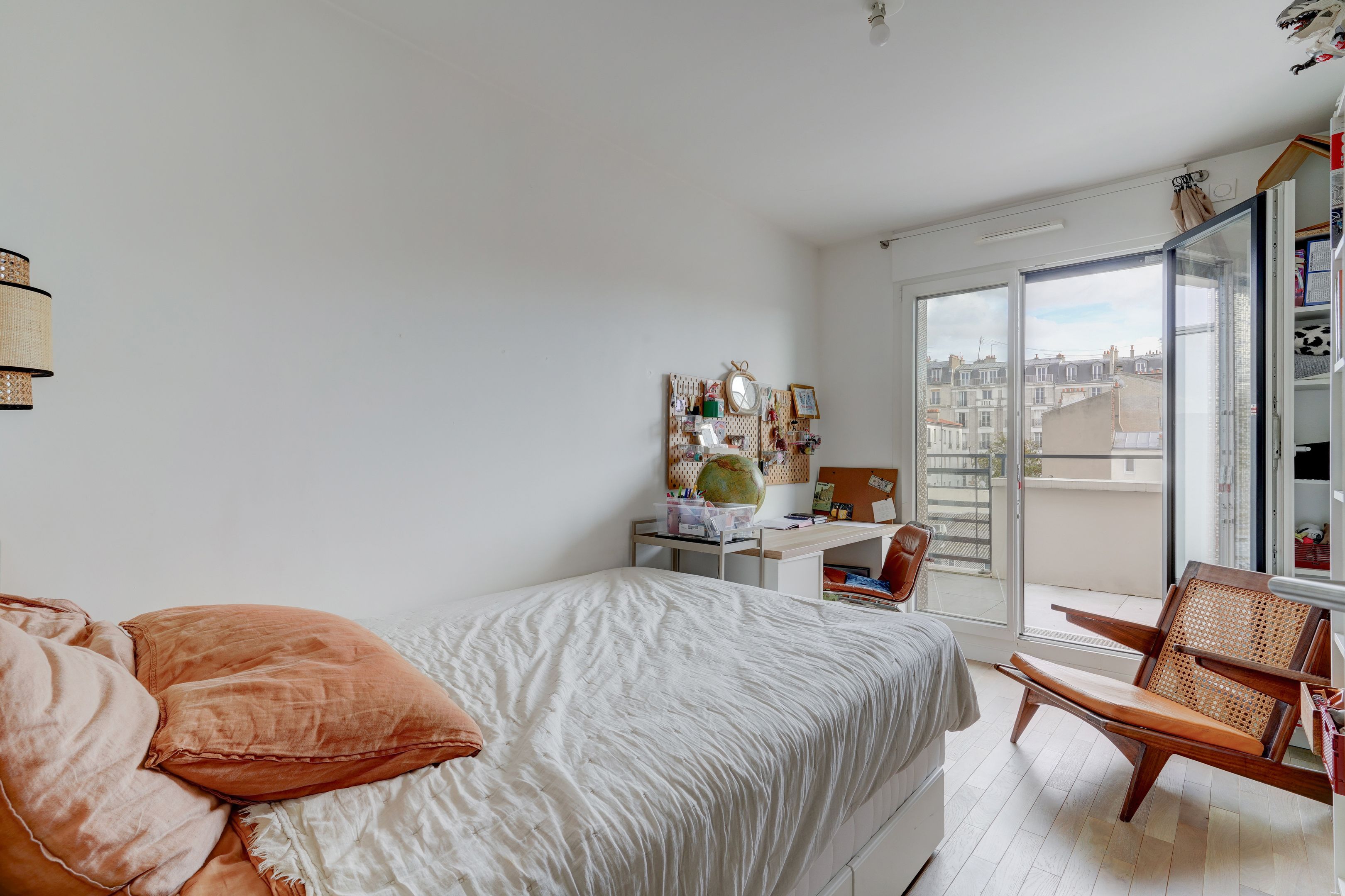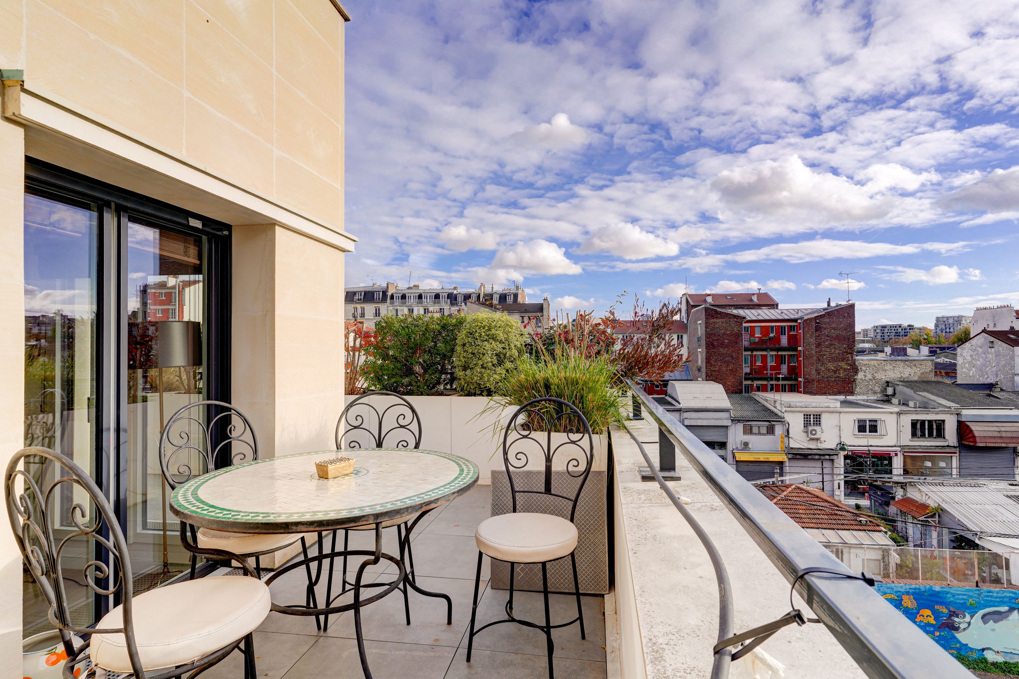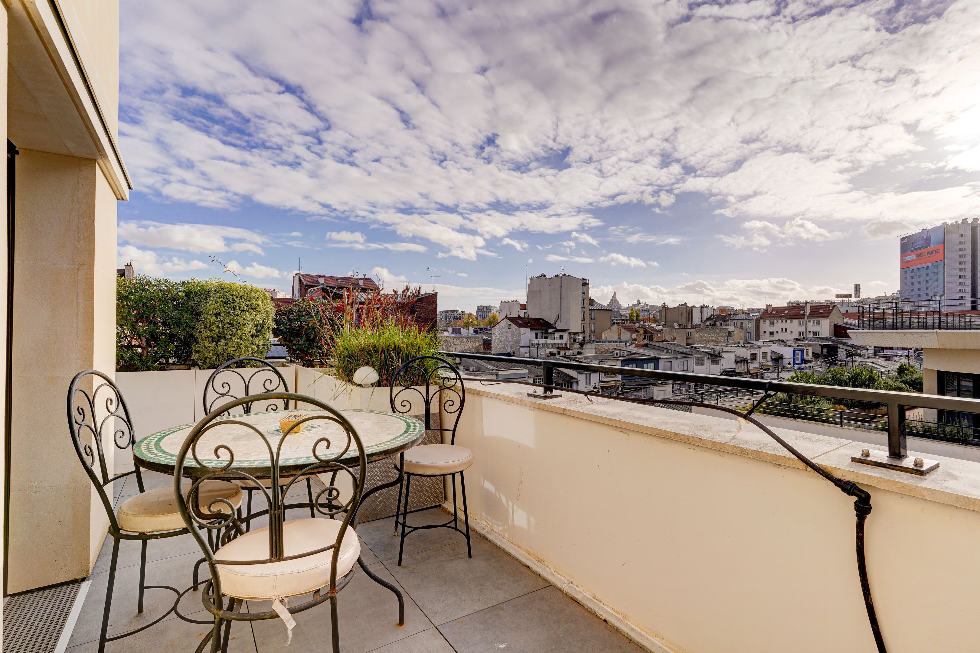 Village des Rosiers, on the 4th floor of a contemporary residence whose common areas have been decorated by Sarah Lavoine, this sunny 96 m² apartment, completely refurbished, offers a modern yet warm living environment. Entrance hall, south-facing living room opening onto a 12 m² terrace with unobstructed view of the Sacré-Cœur, fully fitted and equipped open kitchen, three good-sized bedrooms, dressing room, two carefully designed en suite bathrooms (shower and bath). Cellar and secure parking in building. Exclusive to Breteuil.