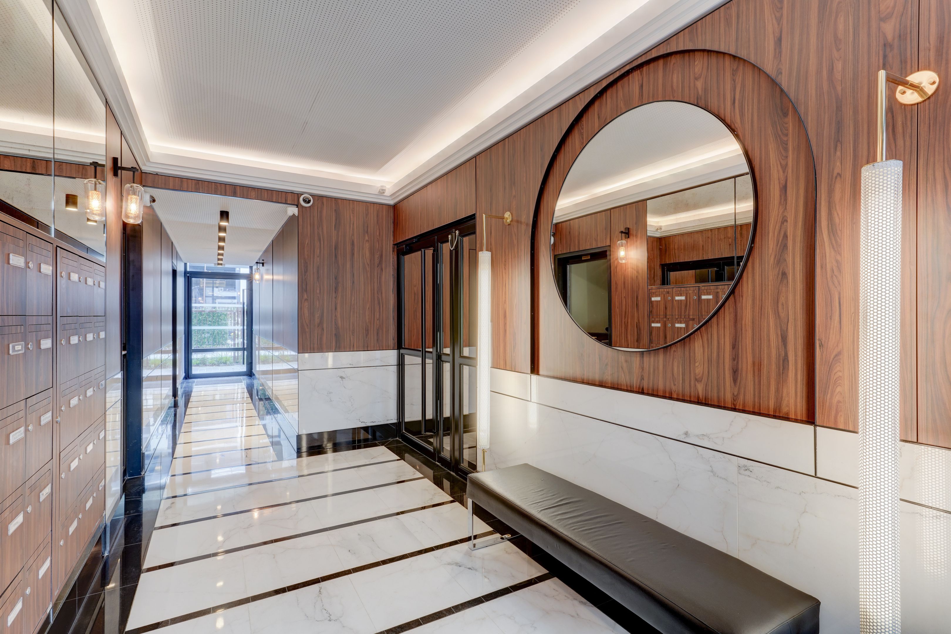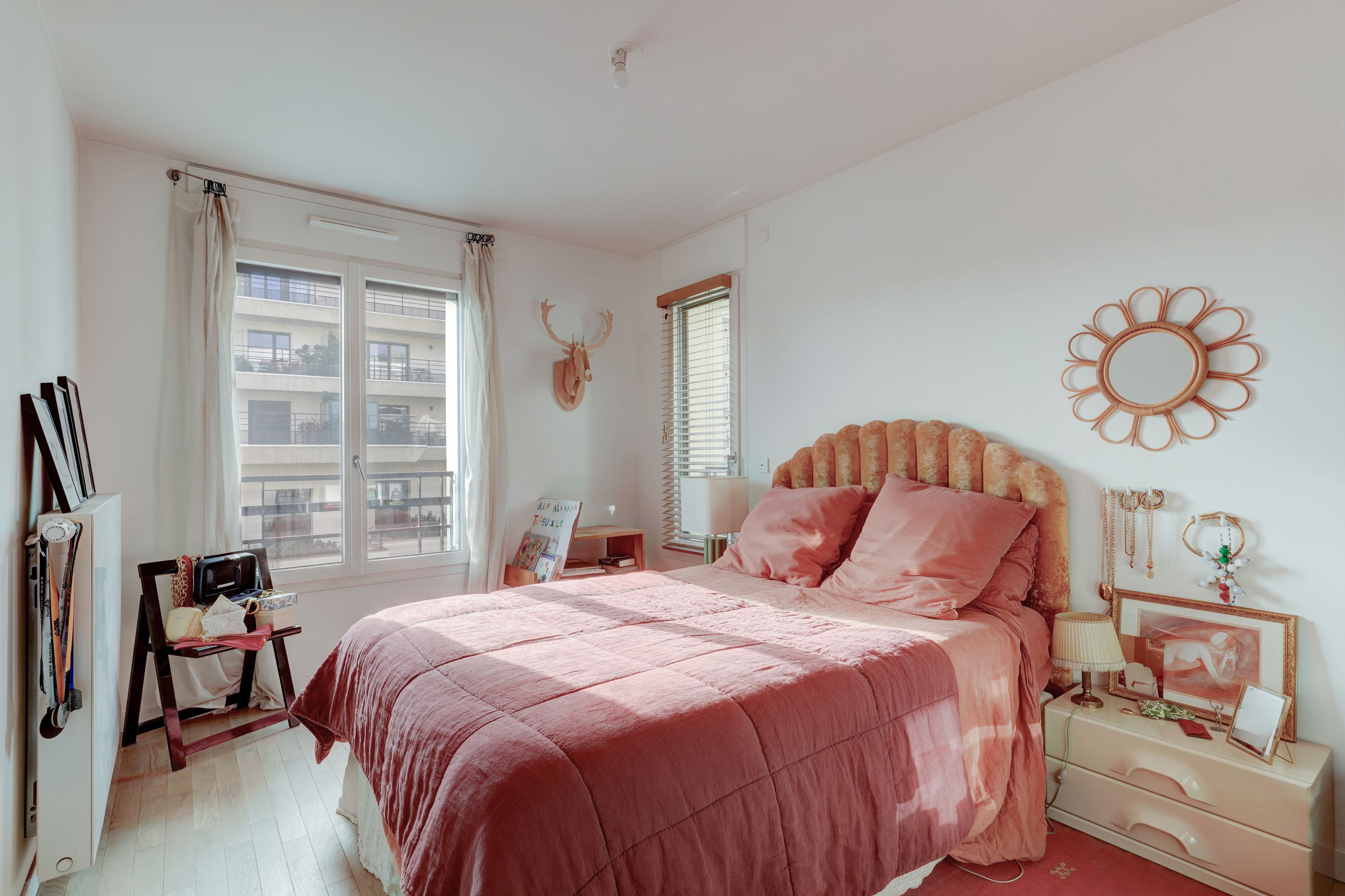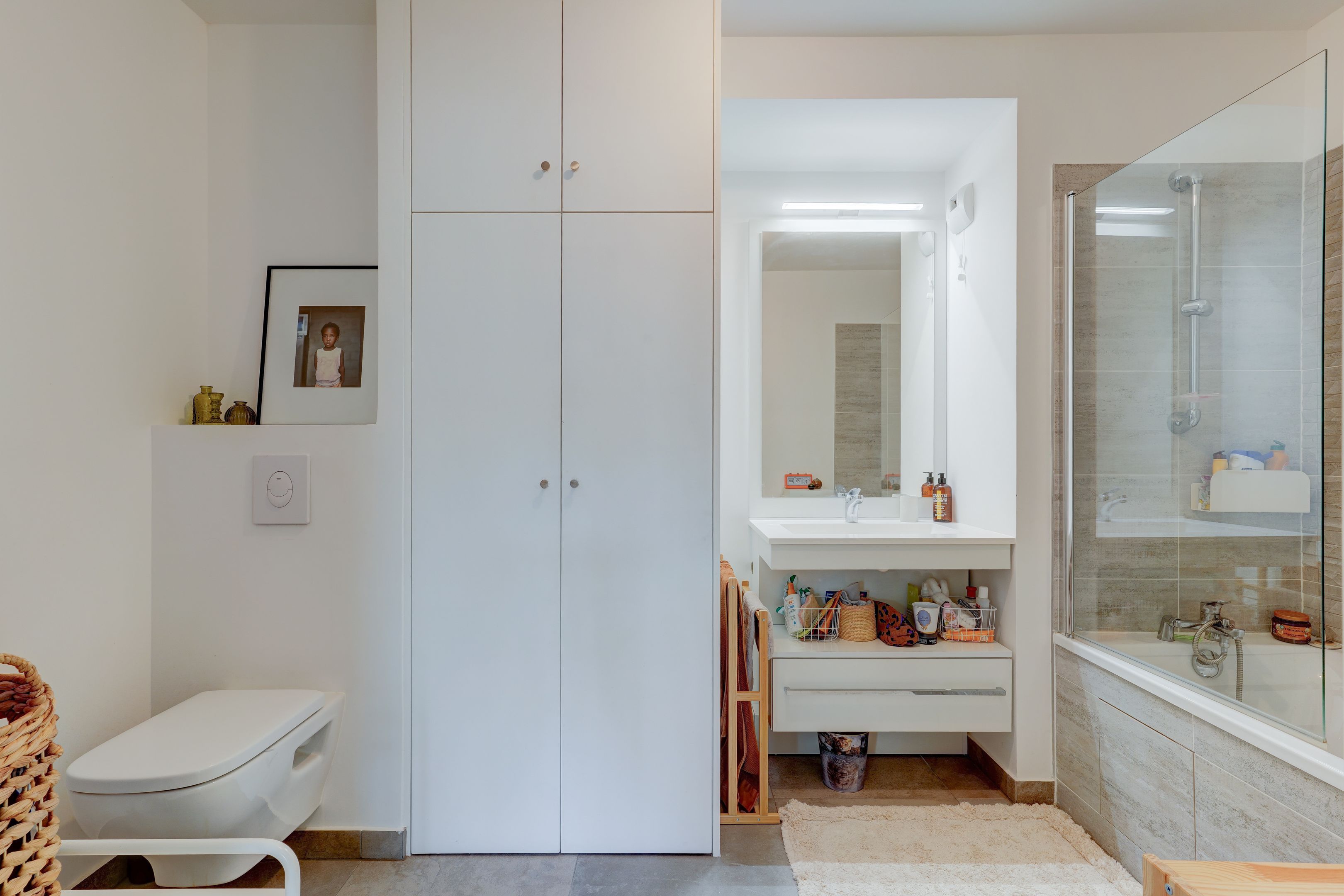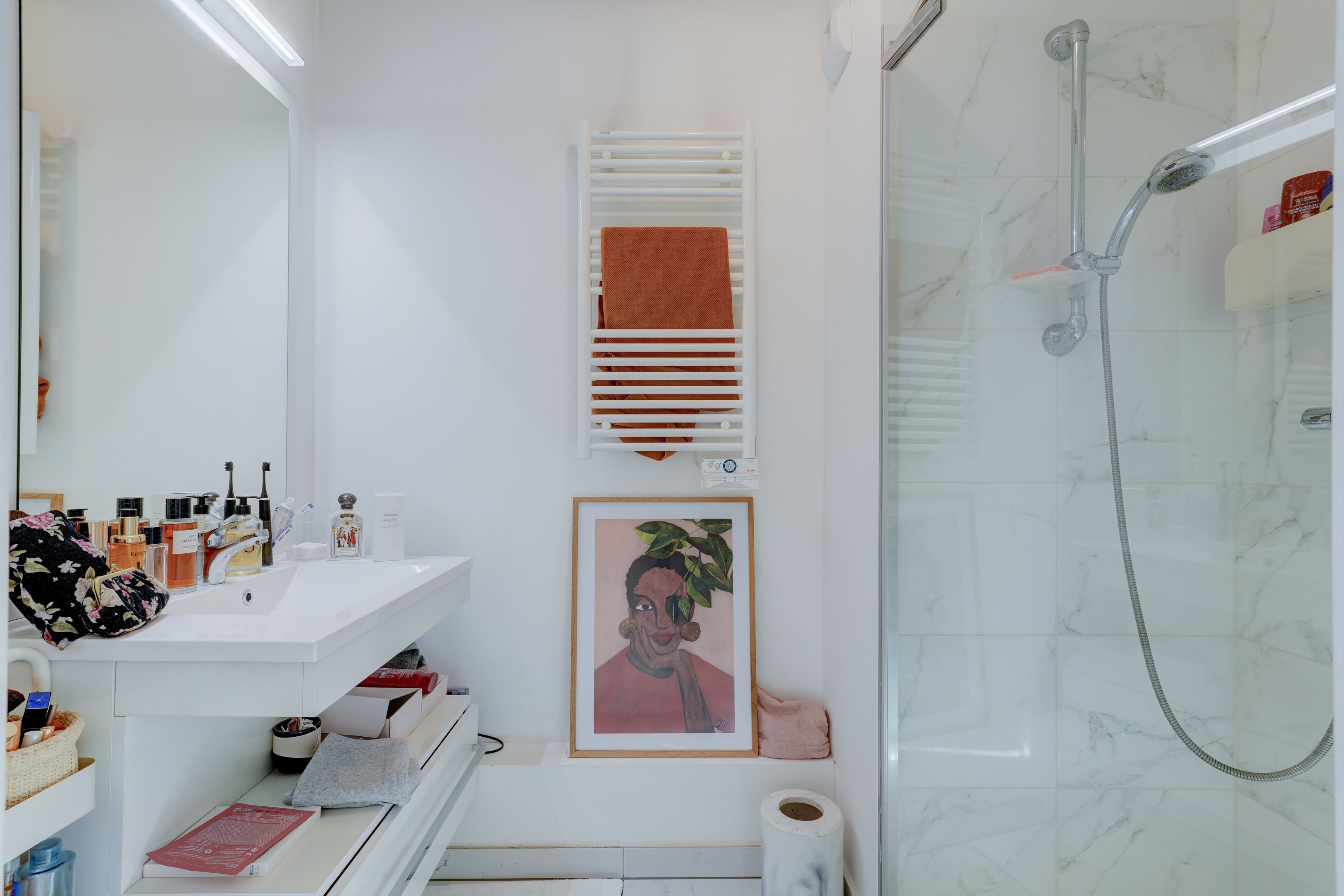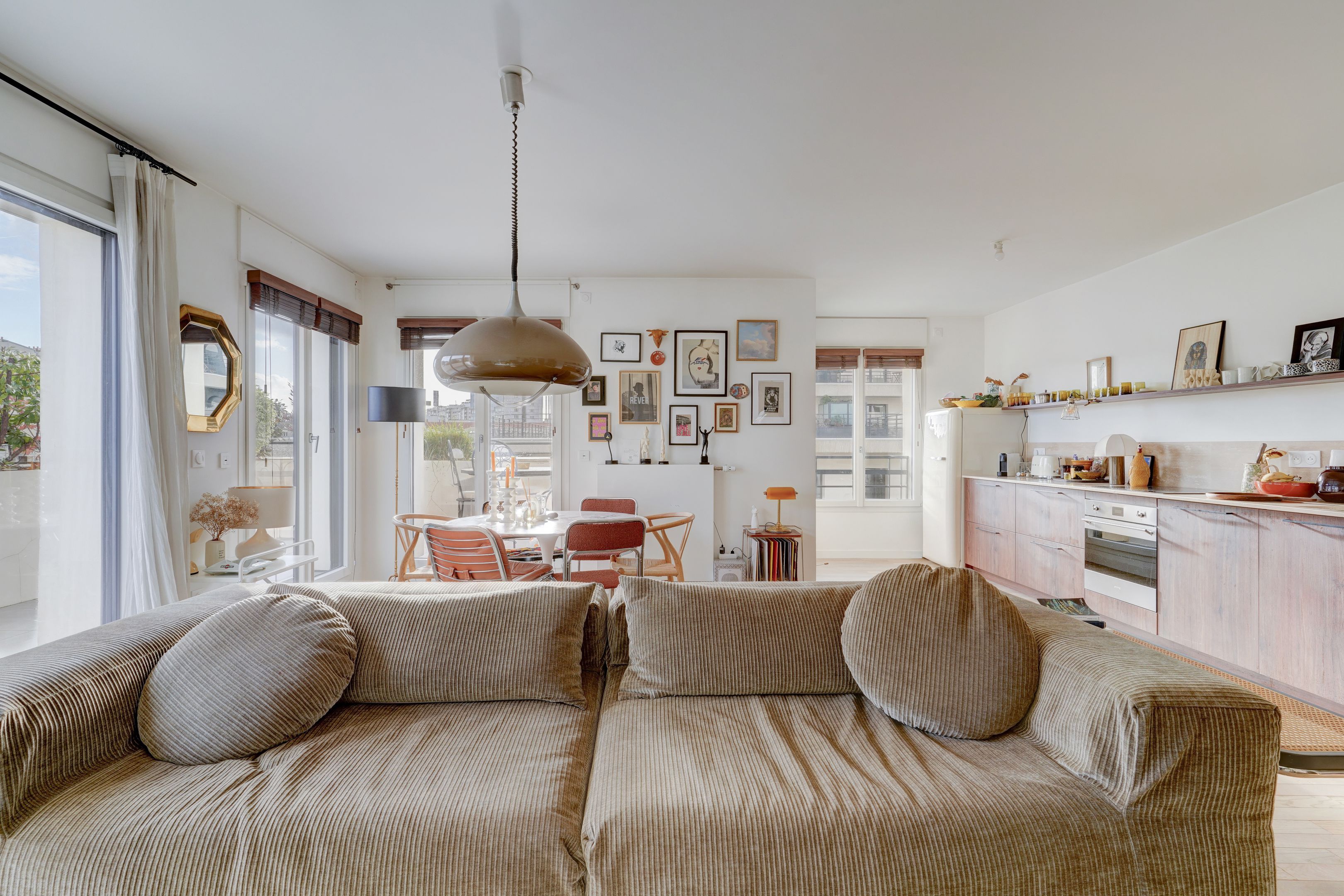 Village des Rosiers, on the 4th floor of a contemporary residence whose common areas have been decorated by Sarah Lavoine, this sunny 96 m² apartment, completely refurbished, offers a modern yet warm living environment. Entrance hall, south-facing living room opening onto a 12 m² terrace with unobstructed view of the Sacré-Cœur, fully fitted and equipped open kitchen, three good-sized bedrooms, dressing room, two carefully designed en suite bathrooms (shower and bath). Cellar and secure parking in building. Exclusive to Breteuil.