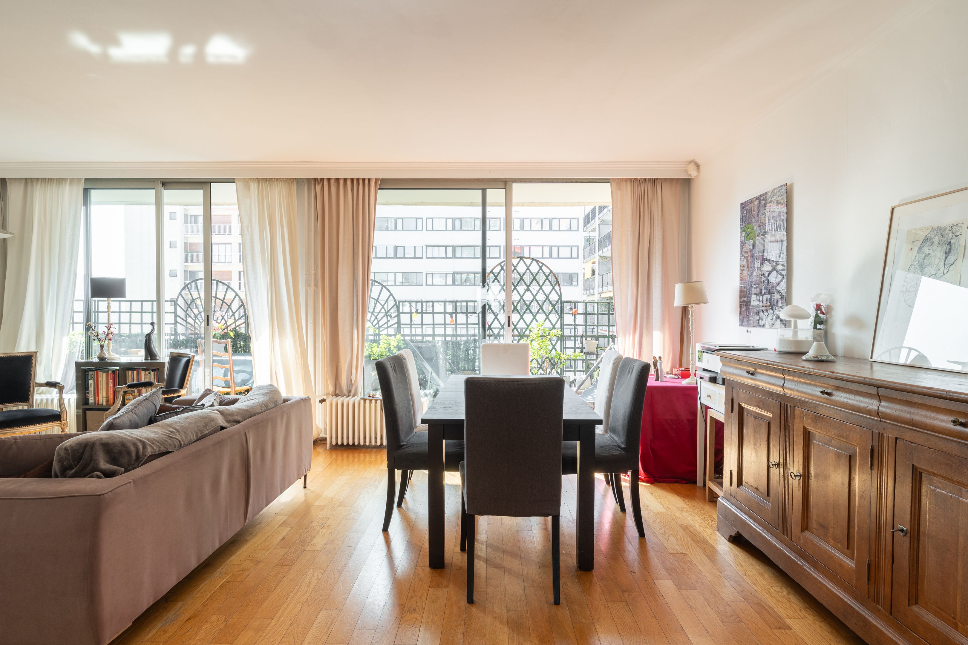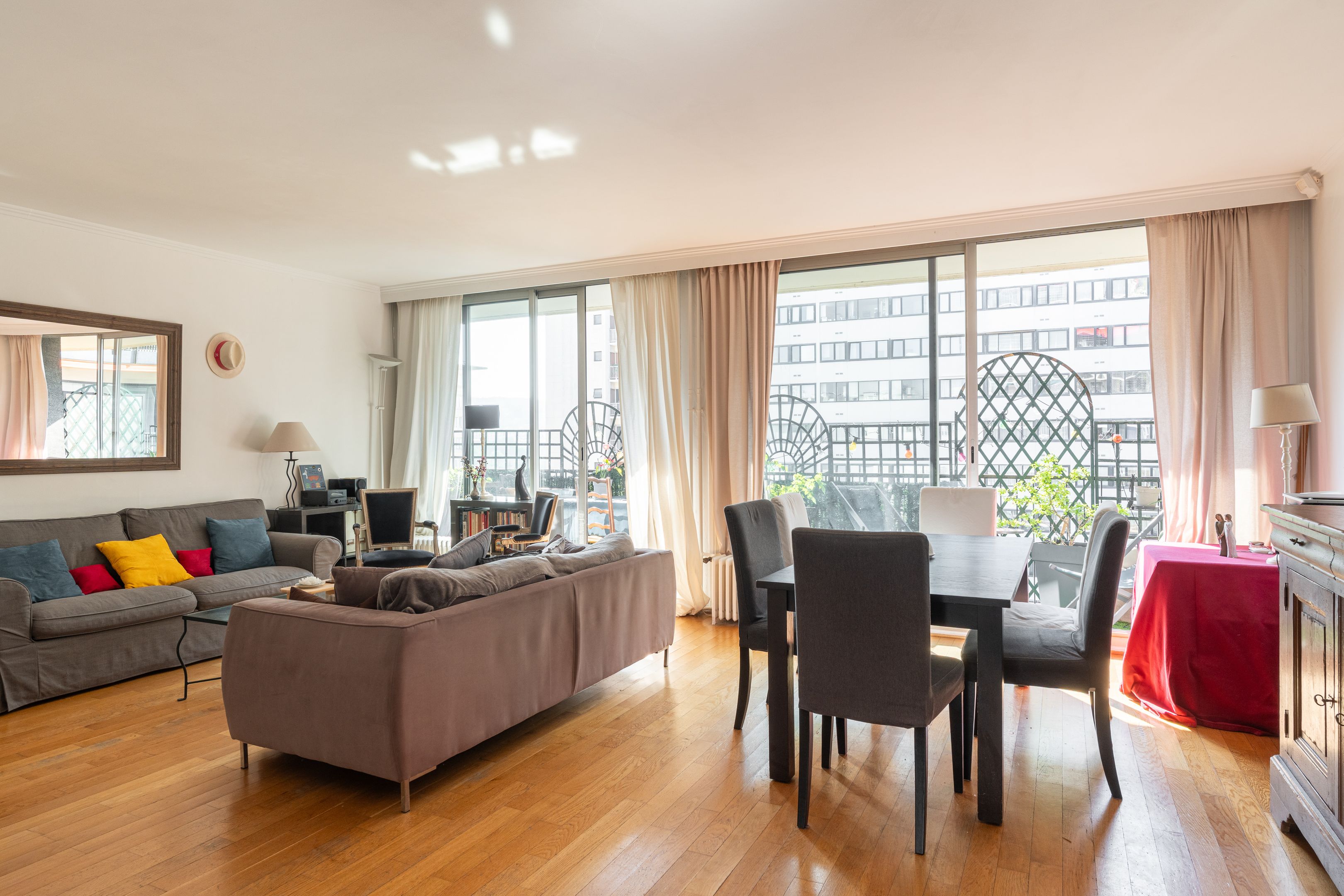Boulogne Centre. On the sixth floor of a semi-recent building, beautiful family apartment of 120.41 m² Loi Carrez, crossing south-west/north-east with balcony of 13 m². Entrance hall, double living room, large balcony, fitted kitchen, four bedrooms, bathroom with toilet, shower room, separate toilet. Plenty of storage space. Cellar. Parking space.