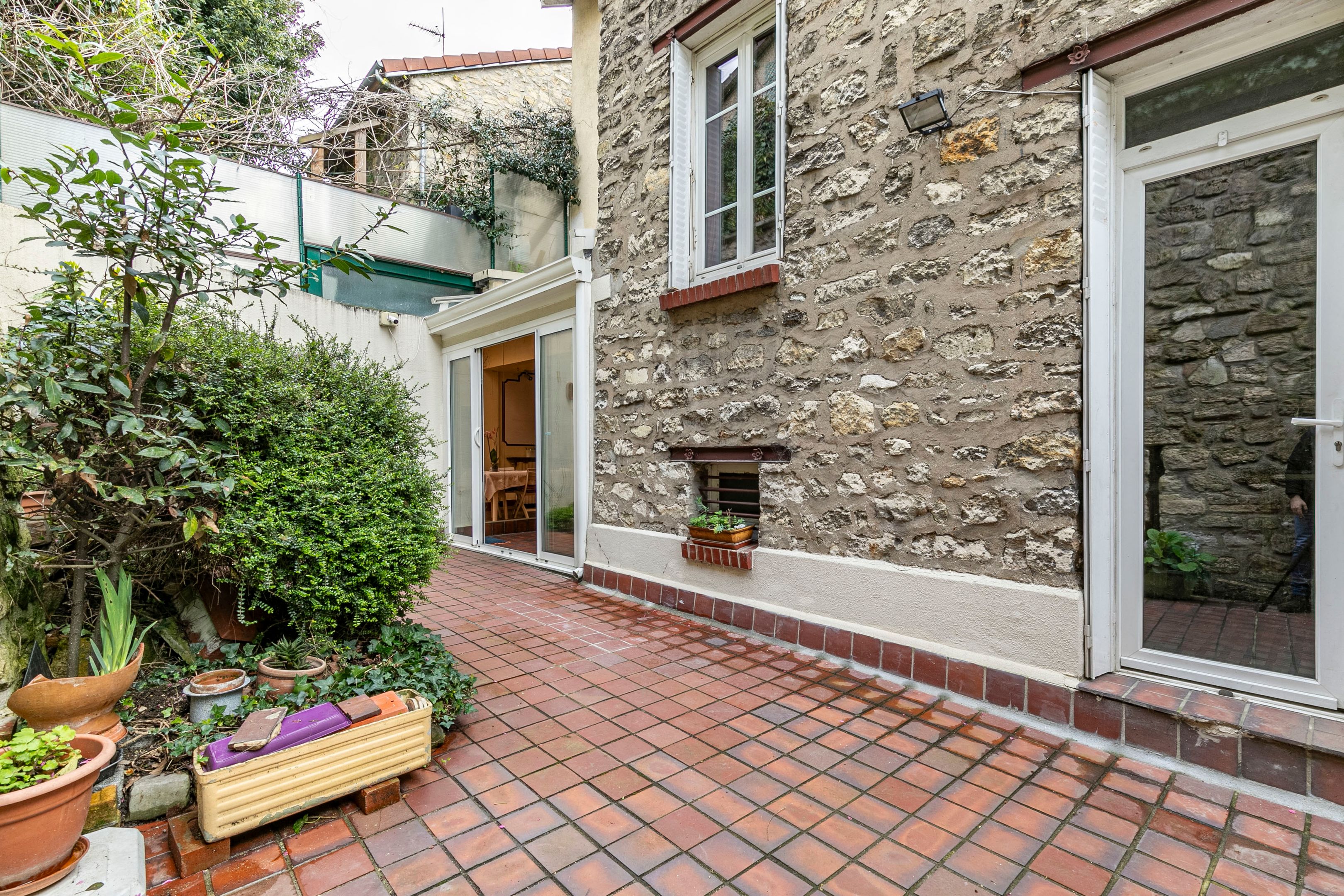 Close to Place Gambetta, shops and transport, "Campagne à Paris", family home on freehold land with pleasant outdoor spaces. Ground floor: garage, laundry room, workshop, small cellar, garden. 1st floor: entrance, living room, dining room, separate kitchen, conservatory, terrace. 2nd floor: bedroom, bathroom, dressing room, large office bedroom with shower room, separate toilet. 3rd floor: attic for conversion.