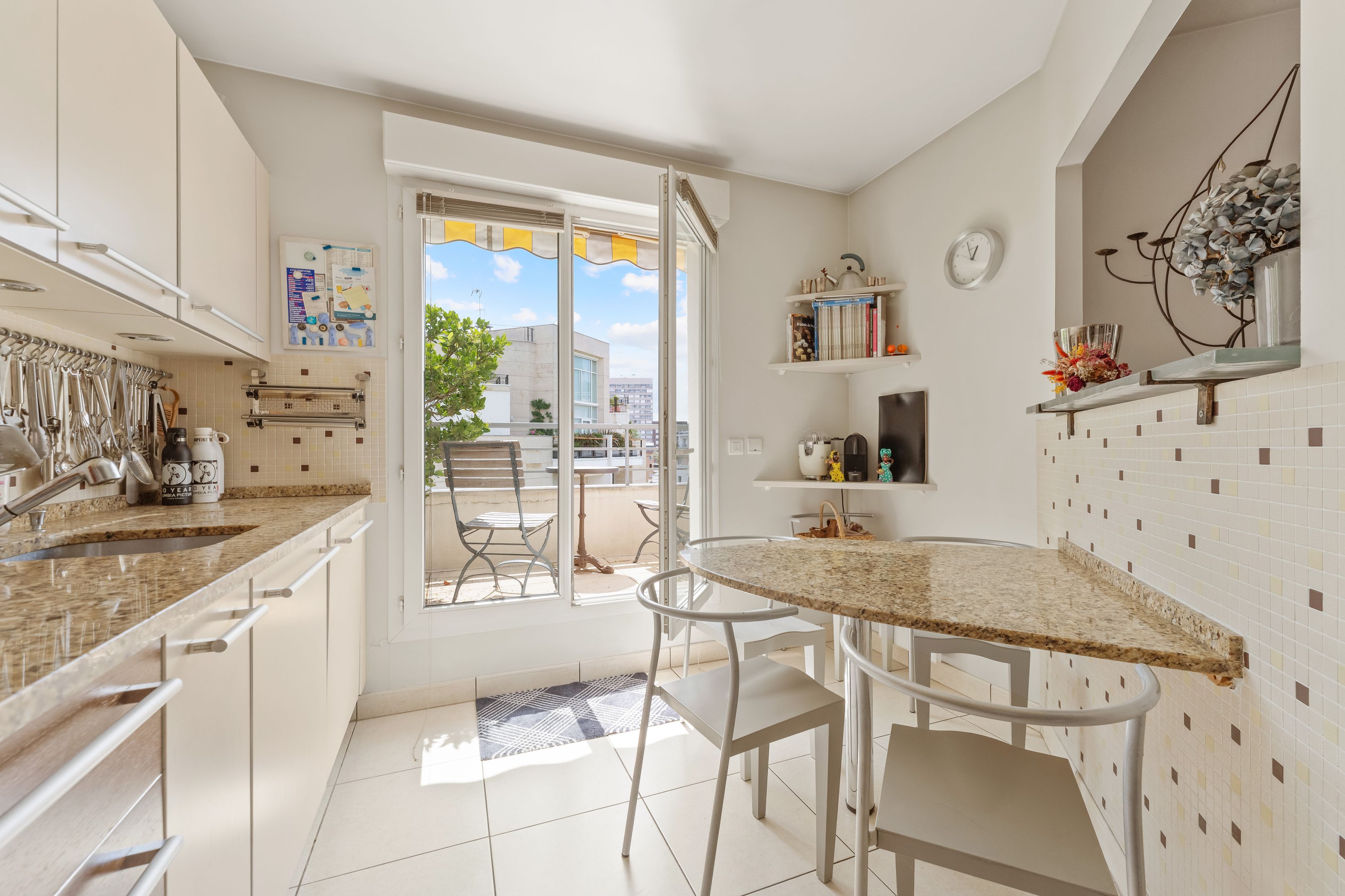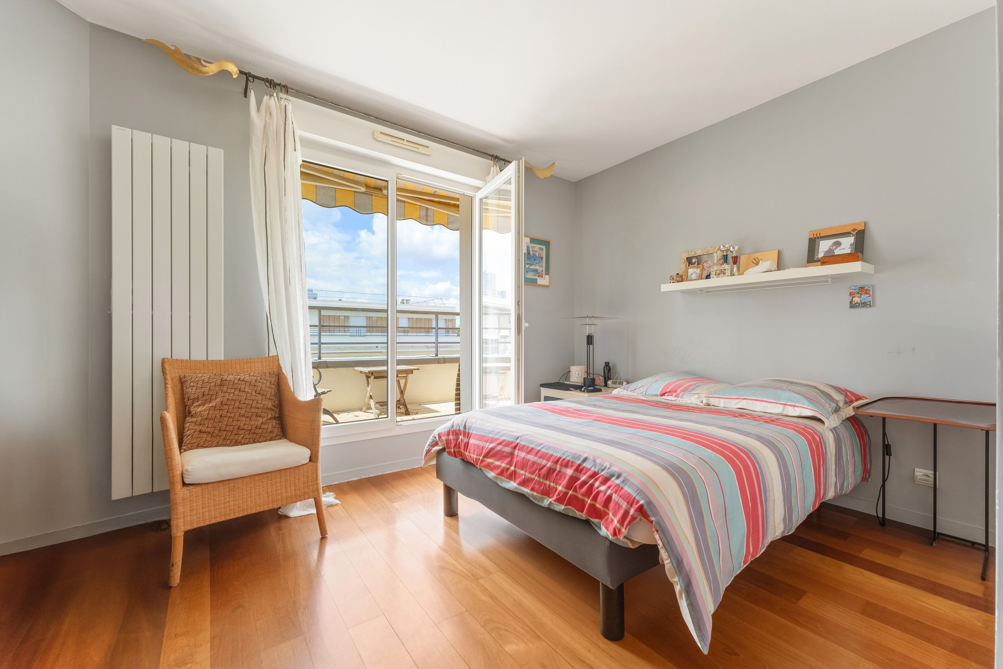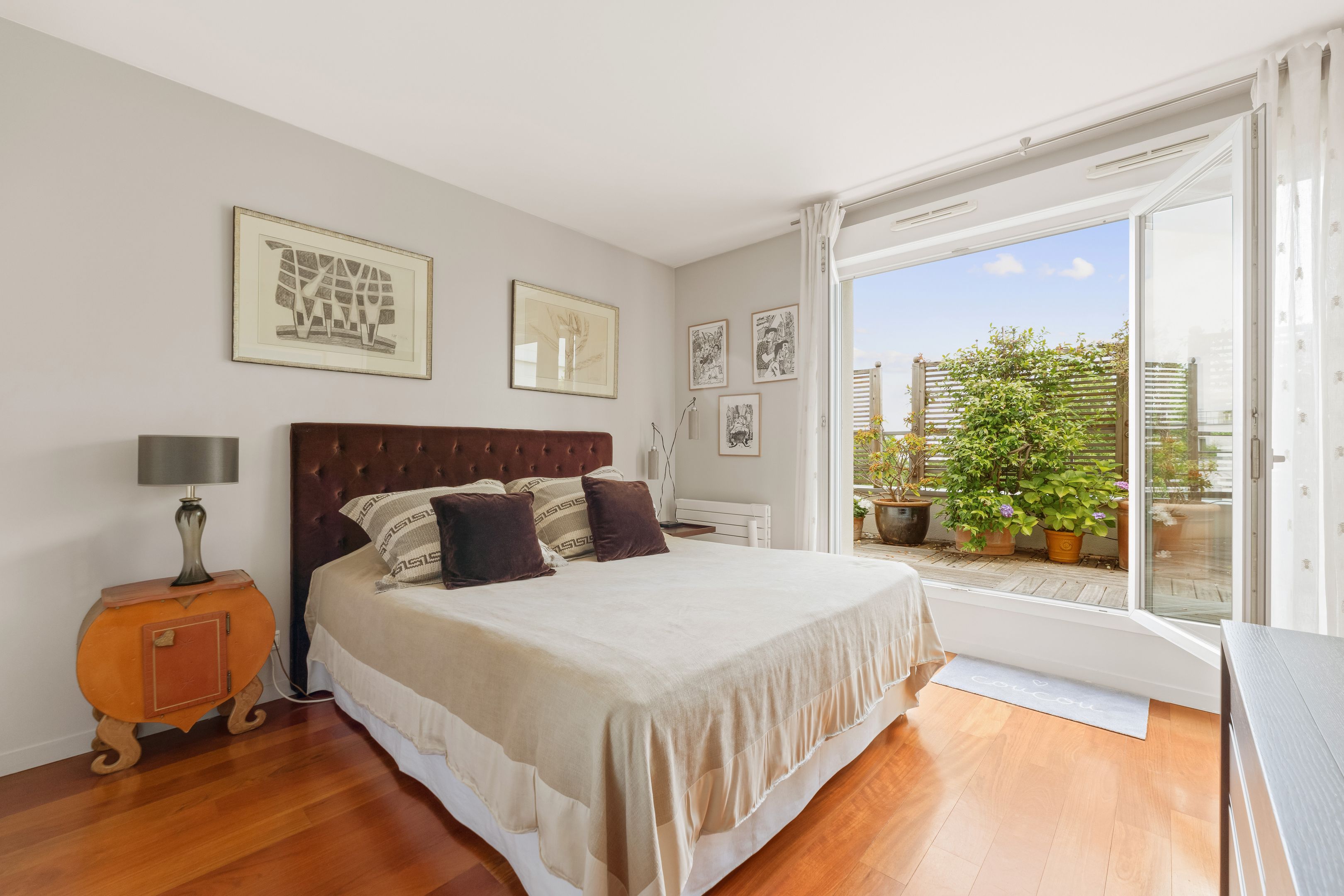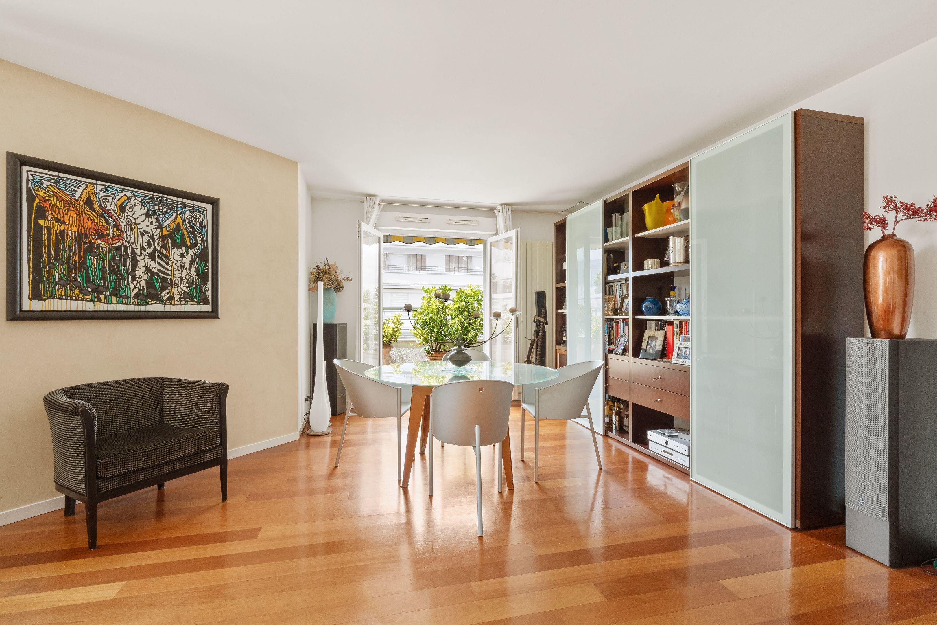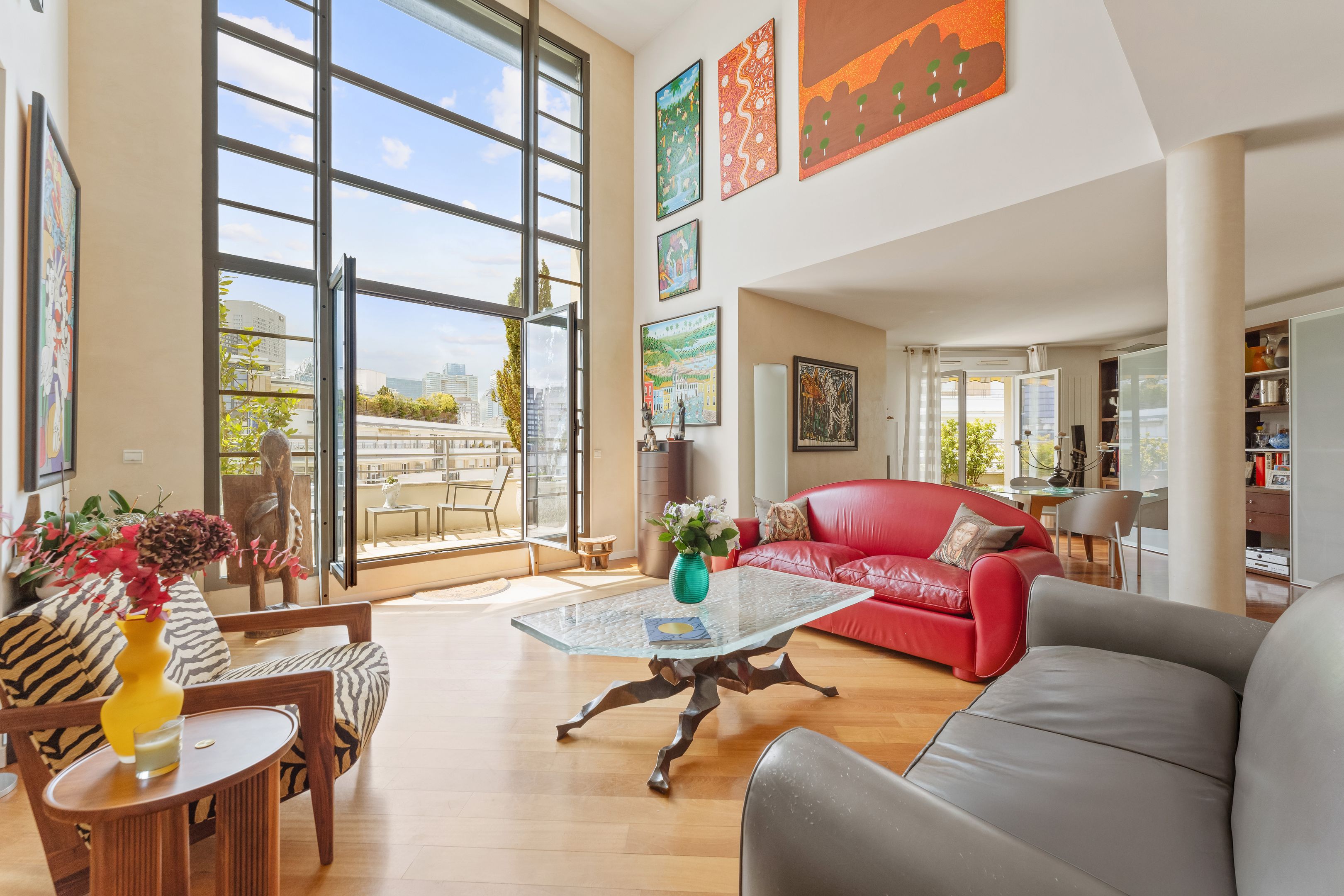 In a luxury building built in the 2000s, surrounded by greenery and with the services of a live-in janitor, renovated through duplex apartment with a surface area of 176 sq.m. located on the top floors (6th and 7th), surrounded by a 62.86 sq.m. terrace with an unobstructed view of La Défense: Entrance hall leading to a vast south-facing double living room with cathedral ceiling and terrace, bathed in light and with unobstructed views, fully fitted kitchen/dining room, master suite with bathroom and dressing room, separate toilet and plenty of storage space. First floor: 3 bedrooms, all with balcony, bathroom and shower room.
