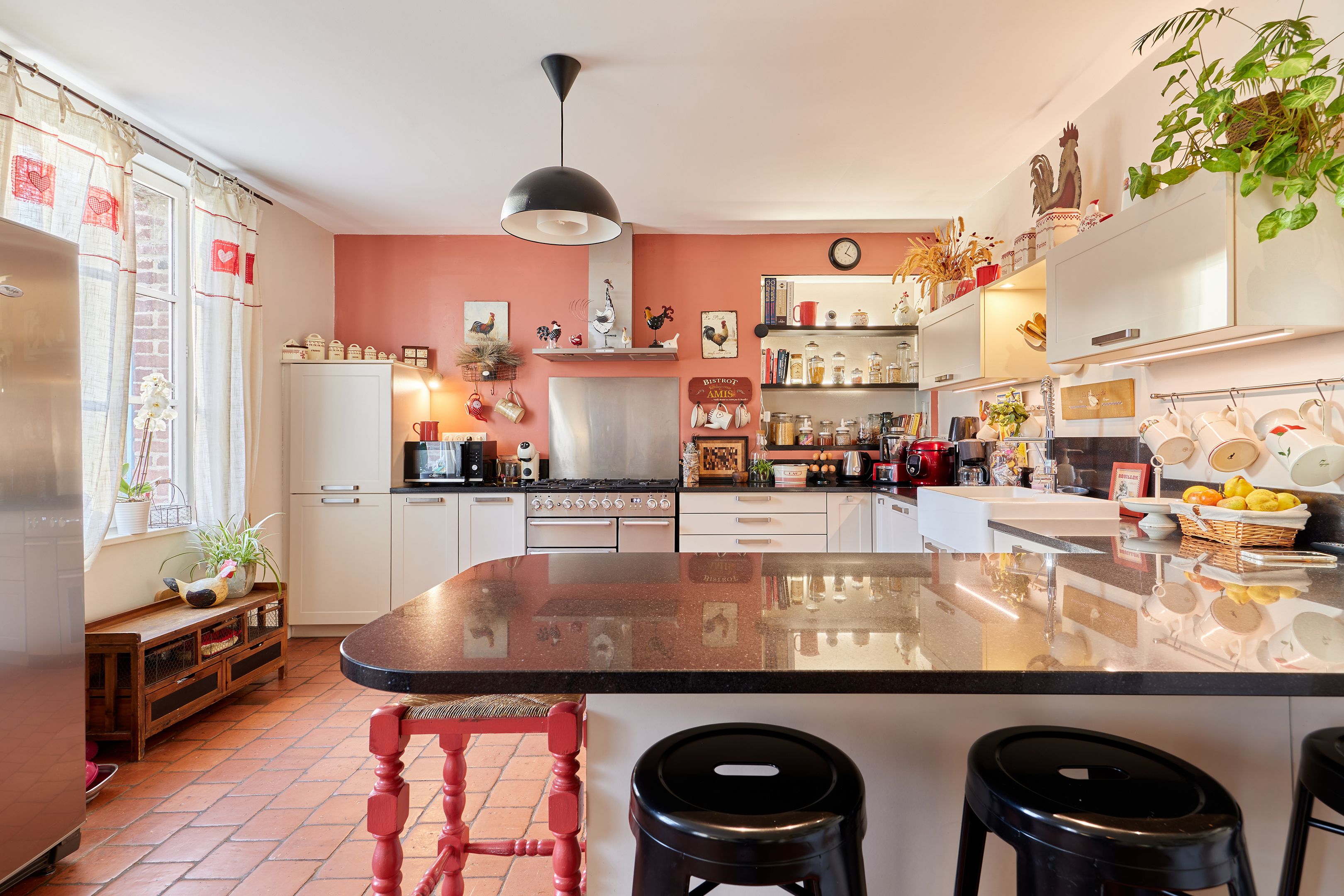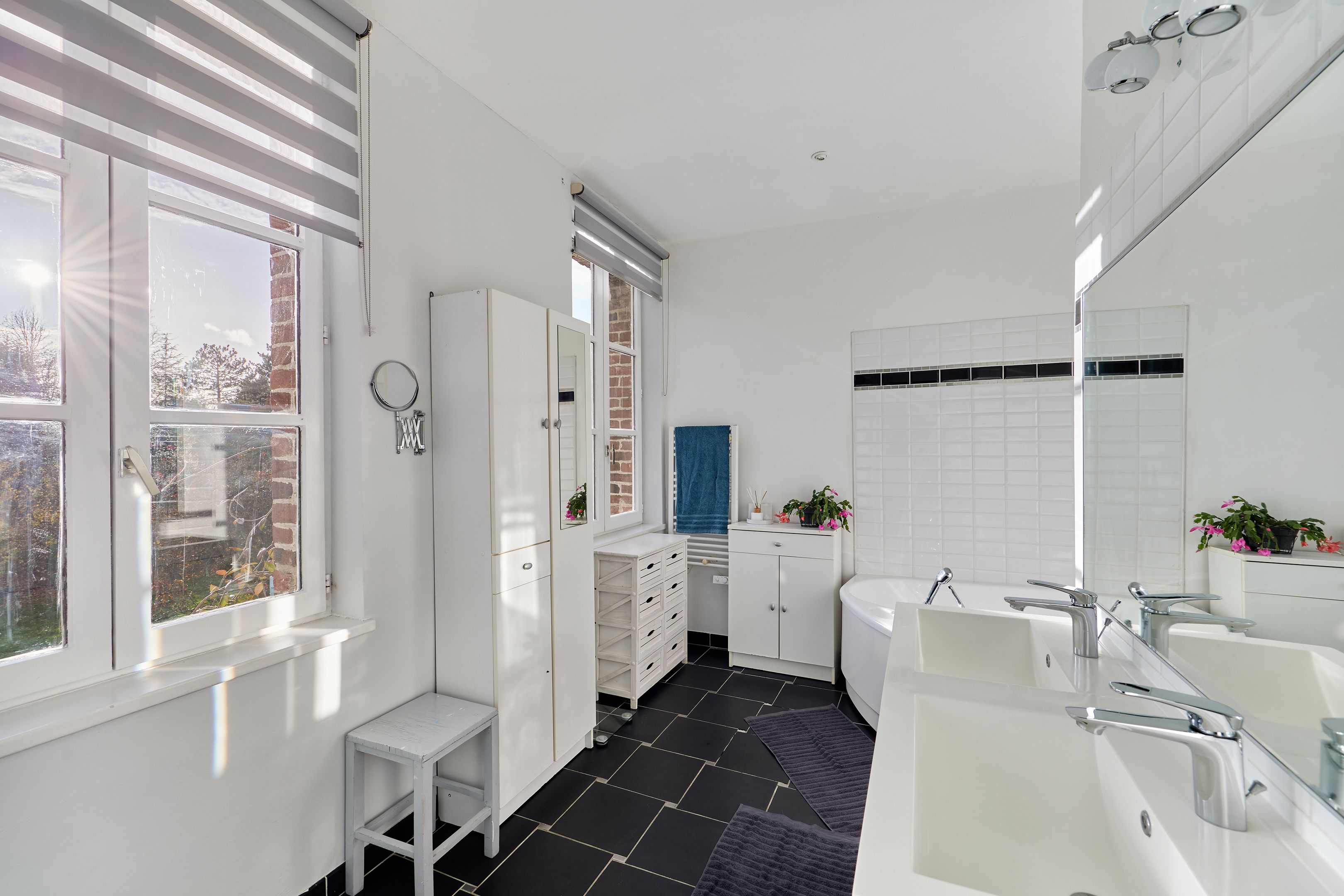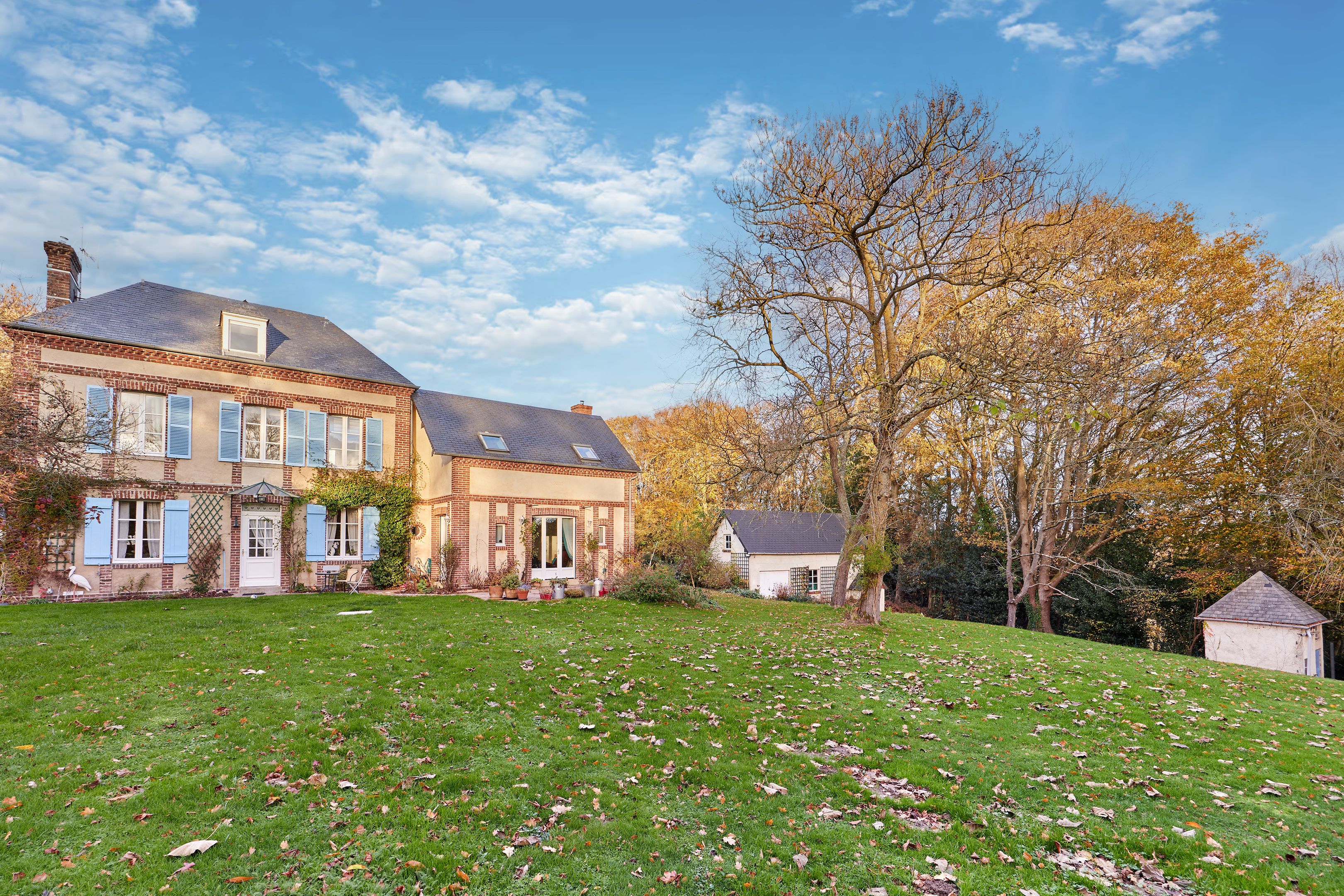 5 min from Honfleur, lovely 152 m² manor house set in 11,302 m² of enclosed grounds, including 5,000 m² of woodland. Entrance hall, fully-equipped kitchen, living room with pellet-burning insert opening onto south-west-facing terrace, master suite with shower room, separate toilet. 1st floor: two bedrooms, dressing room, bathroom, toilet. 2nd floor: two bedrooms. Storage space adjoining the house. Outbuildings: two-storey workshop (45 m² each) with basement cellar and dovecote. Approx. 2,000 m² of building land, which can be divided into two lots.