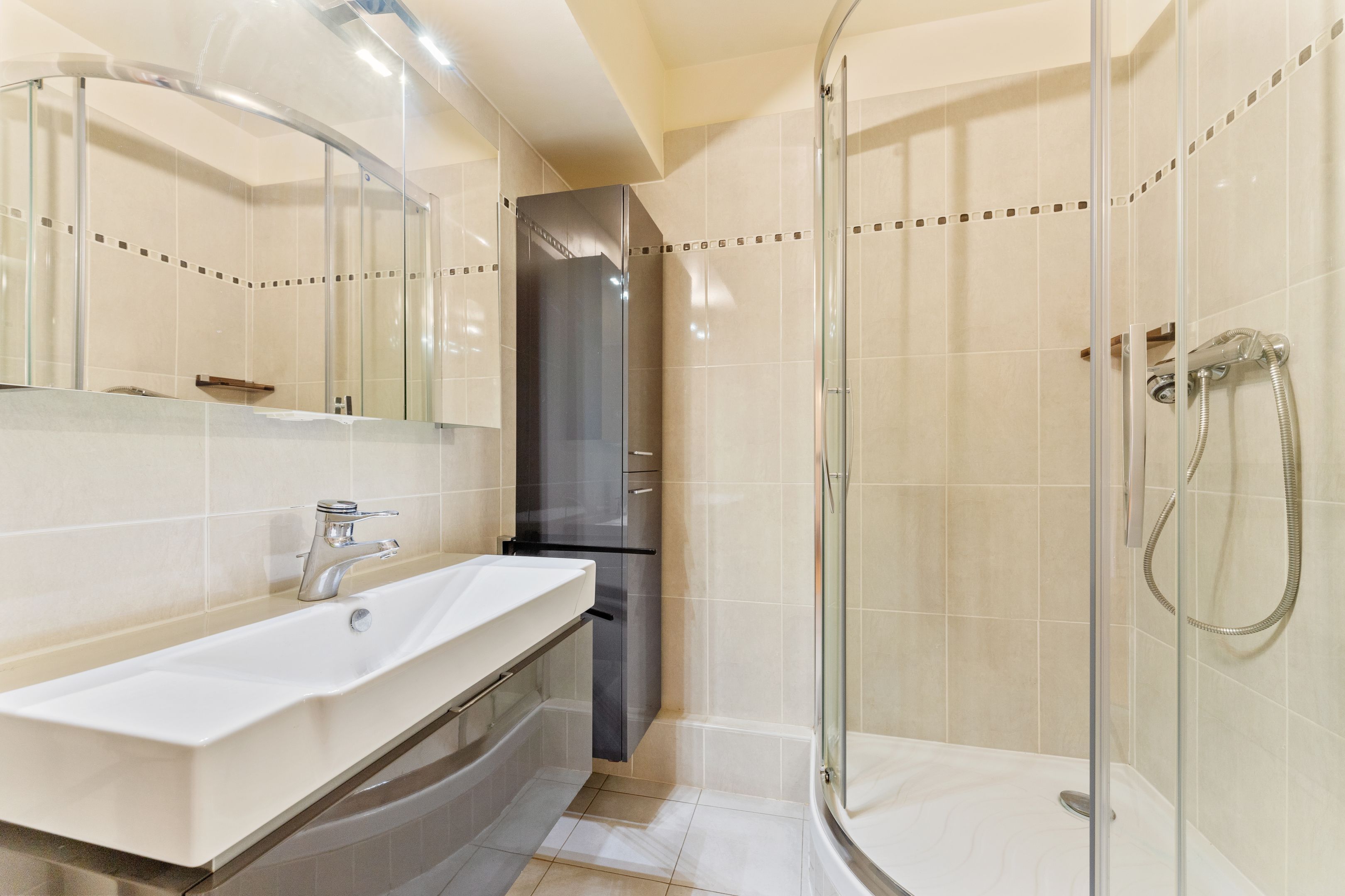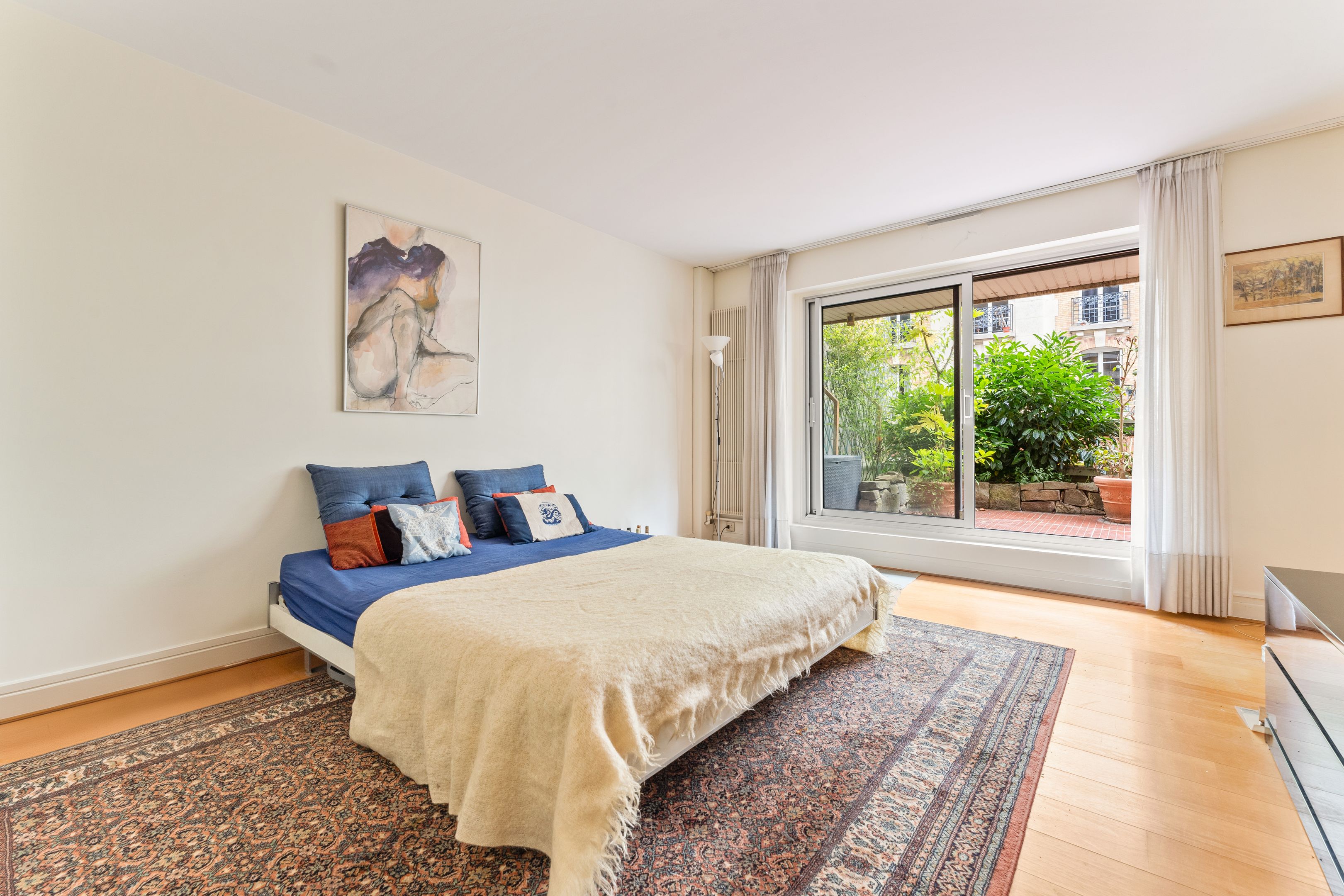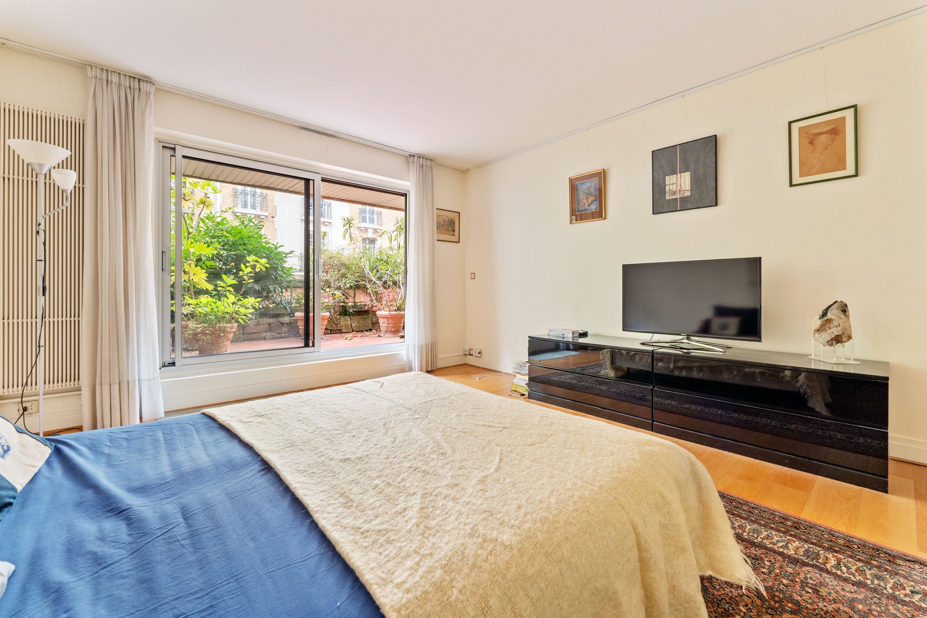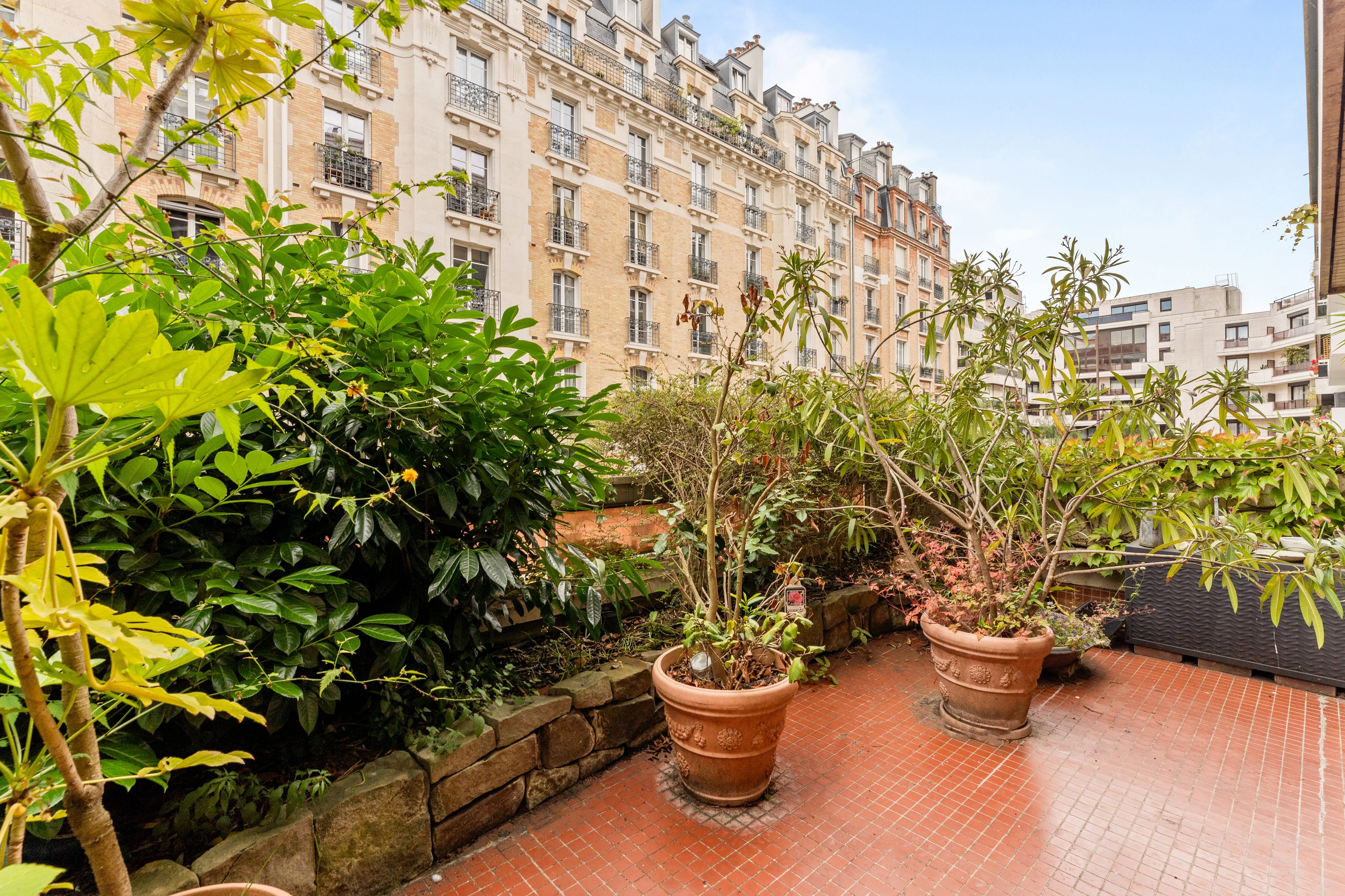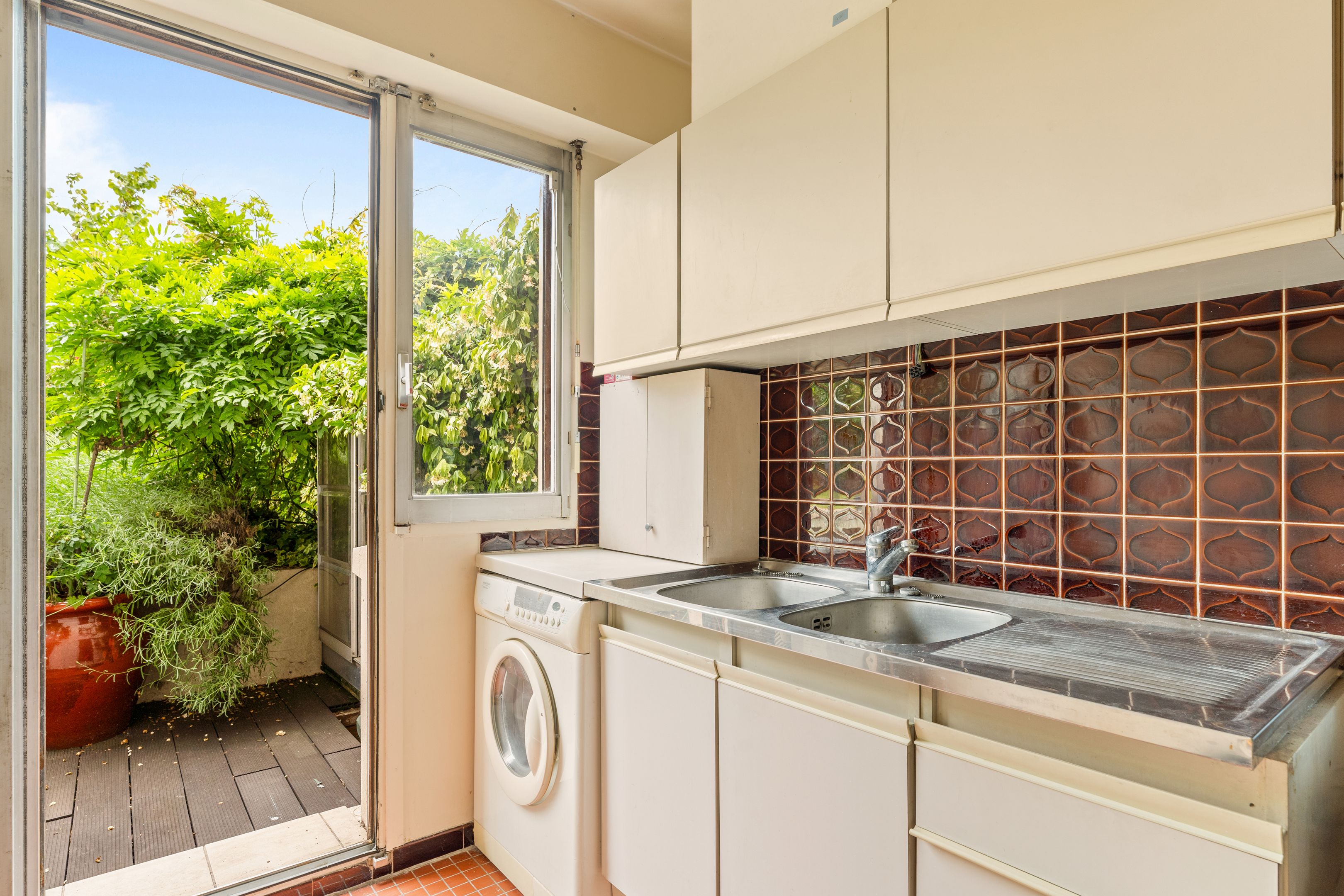Well-maintained, recently-built family apartment on 1st floor with elevator access to 118m² private garden and 2 terraces of 24m² and 26m². Entrance hall, sizeable living room, 2 bedrooms and former kitchen (convertible into laundry room) opening onto the terrace and garden, kitchen/dining room and 3rd bedroom opening onto the 24m2 terrace on the street side, bathroom, shower room with toilet, separate toilet, plenty of storage space, 2 cellars. Possibility of acquiring 2 parking spaces in the building.