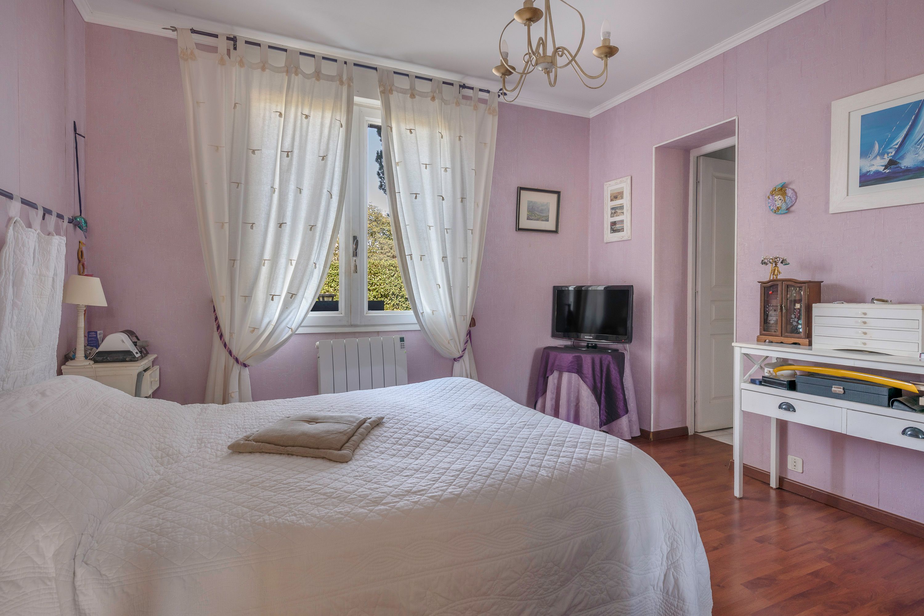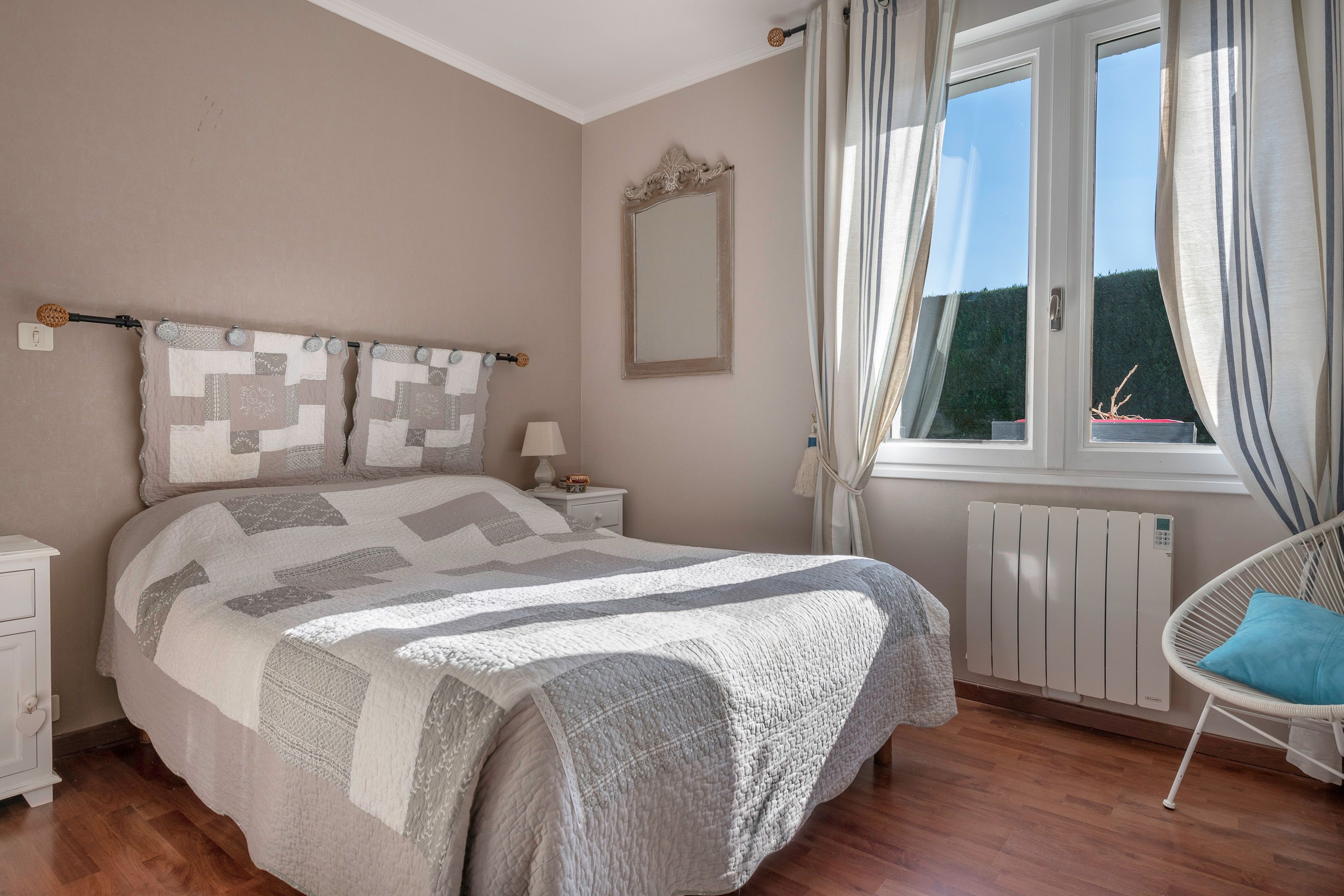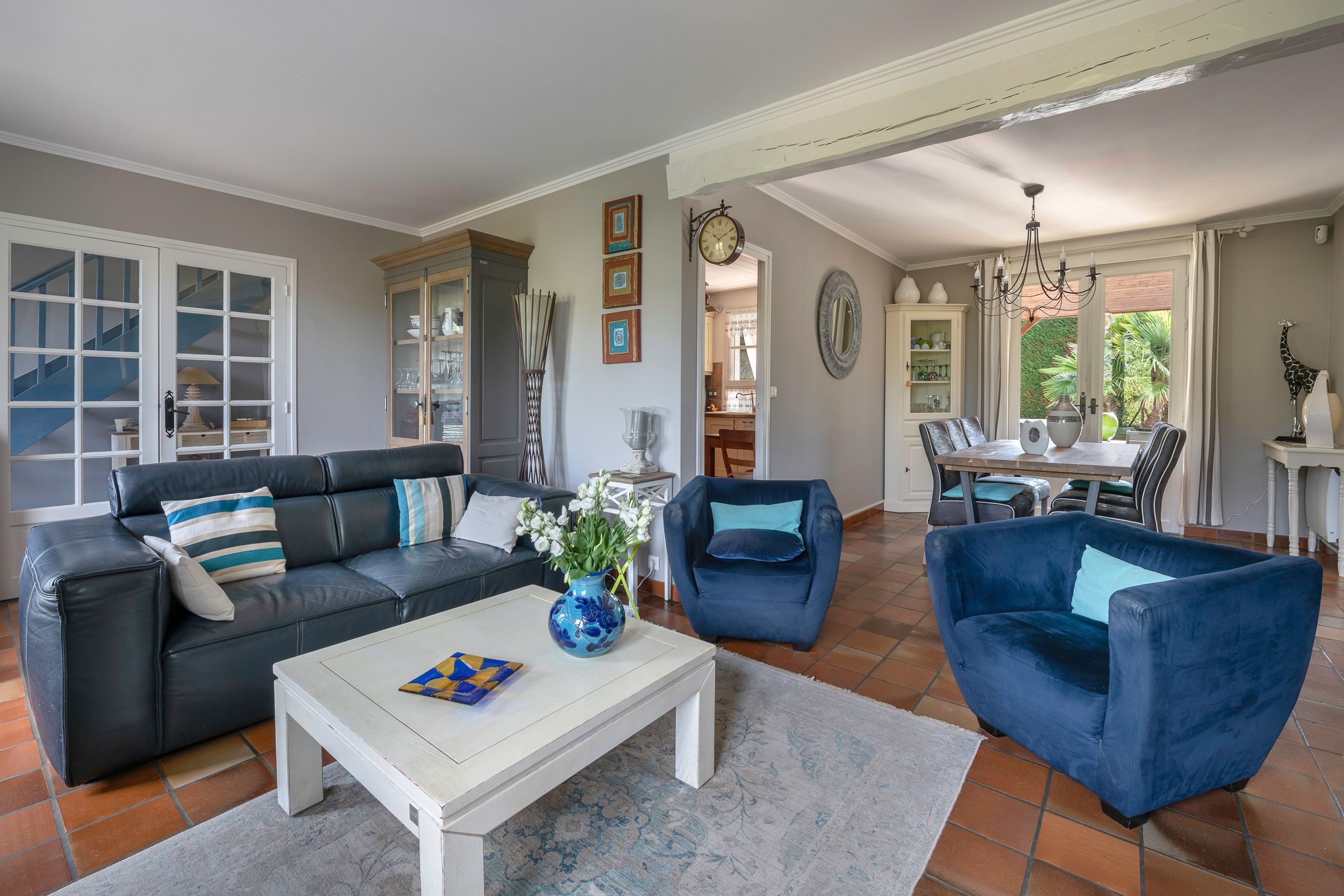 Situated 10 minutes from La Baule (near La Madeleine), charming thatched cottage of approx. 175m², in a peaceful setting, not overlooked, built on a wooded plot of approx. 1,300 m² with heated 9x4m swimming pool. Entrance hall, lovely bright living room (fireplace) opening onto a large west-facing covered terrace, independent fitted and equipped kitchen, master bedroom with en-suite bathroom (plus shower) and toilet, second bedroom (fitted closets), bathroom, separate toilet, laundry room. First floor: large mezzanine (office), 3 bedrooms, one with private shower room, dressing room, shower room and toilet. Small outbuilding adjoining the house.
