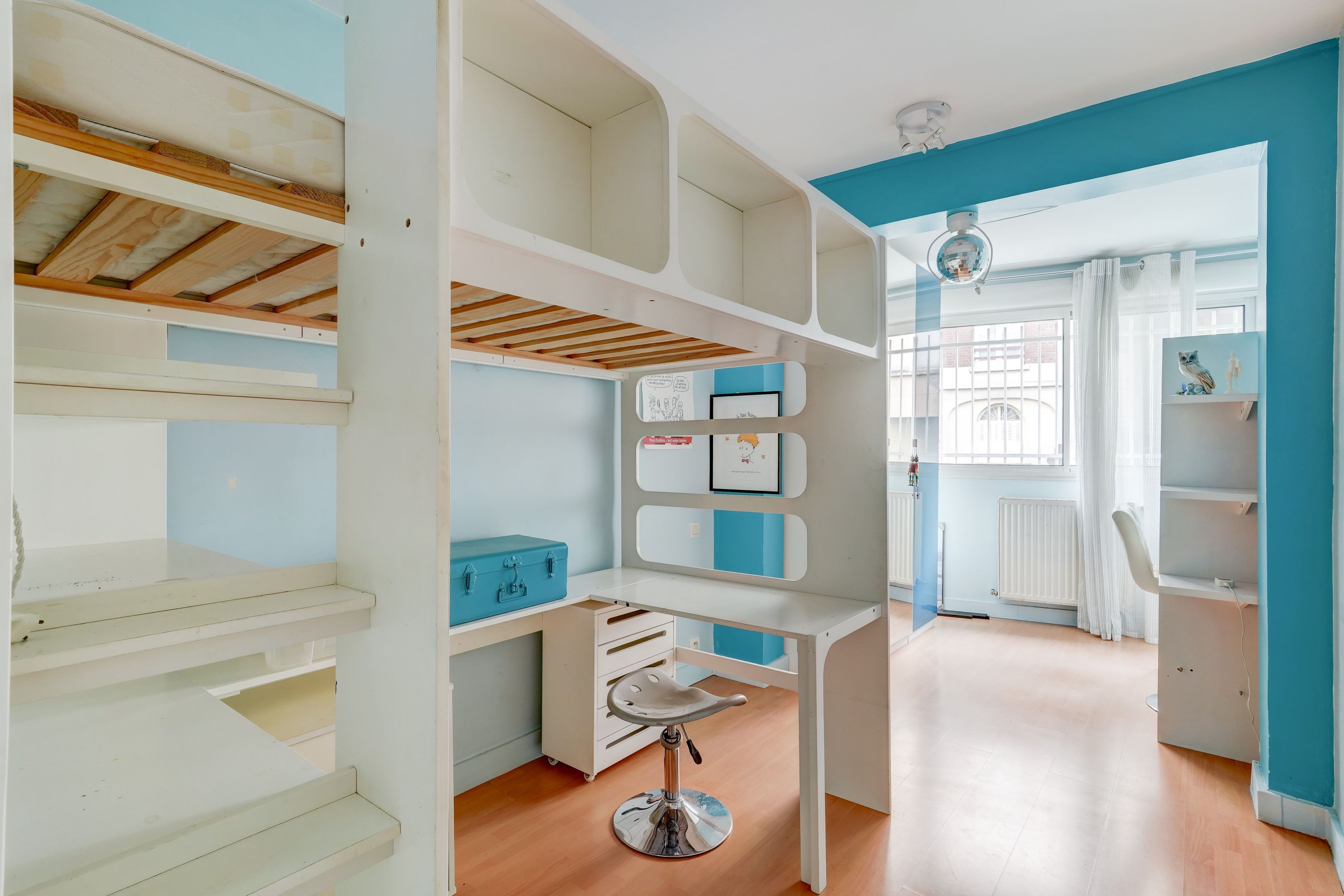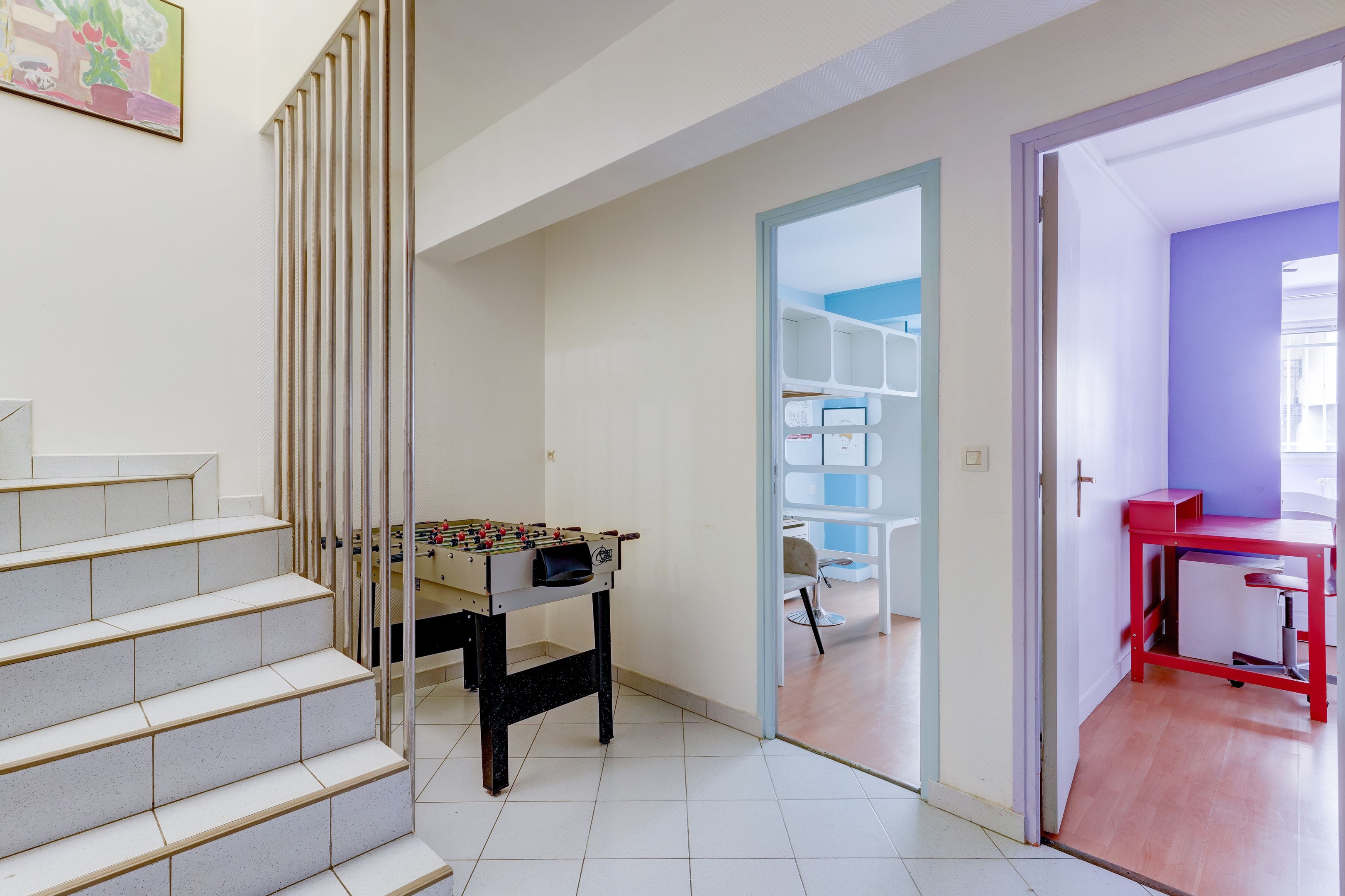 Jourdain, a stone's throw from the village and its shops, Belleville park, transport and schools. Recent building from the 70's, 138 m² duplex with good layout and spacious rooms. 1st floor: spacious double reception room, open-plan fitted and equipped kitchen, master bedroom with dressing room and study, bathroom, laundry room and separate toilet. First floor: two bedrooms with storage space, bathroom and toilet. Two cellars. Additional parking space close to the apartment for €25,000. Exclusive to Breteuil.