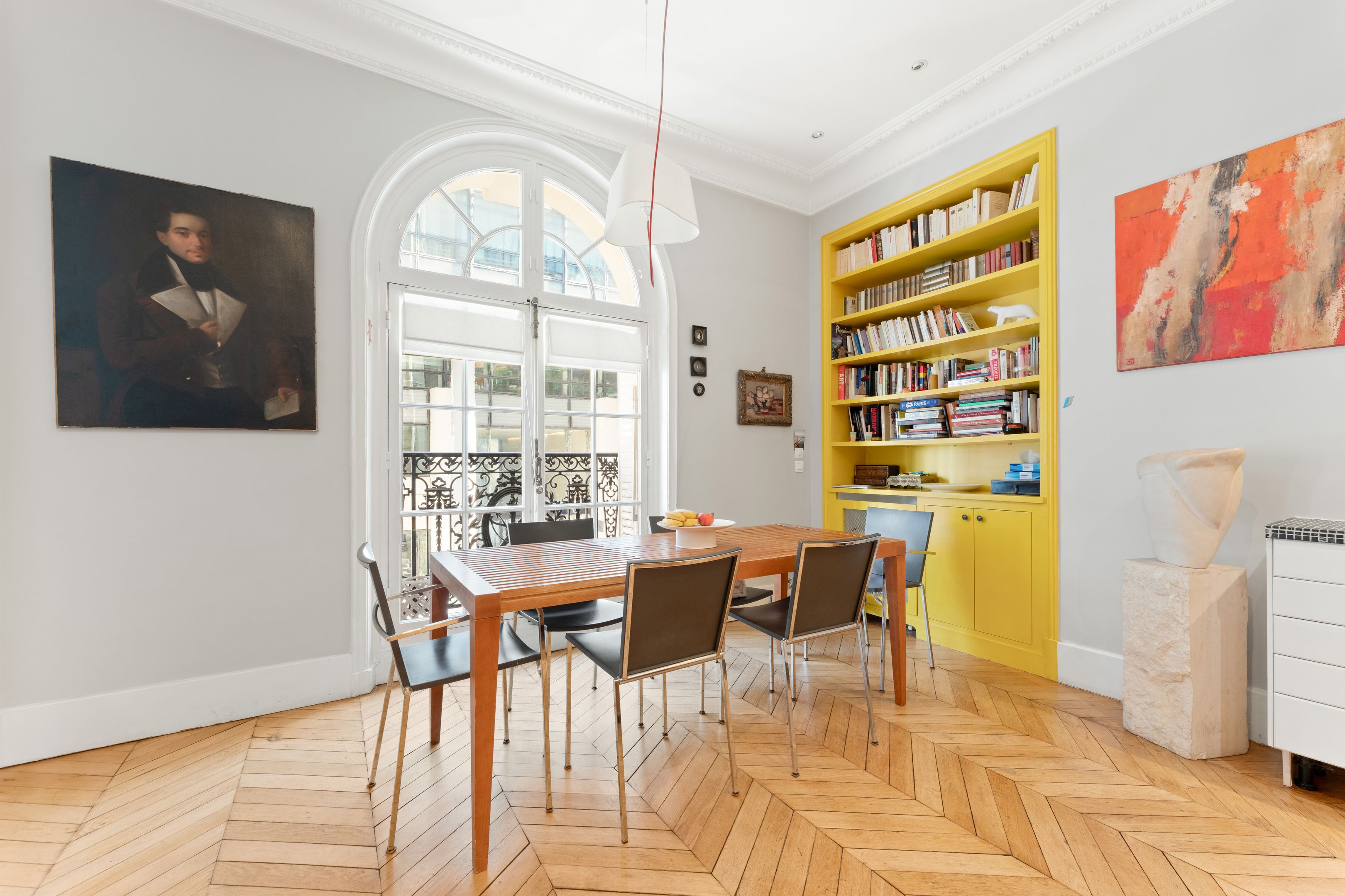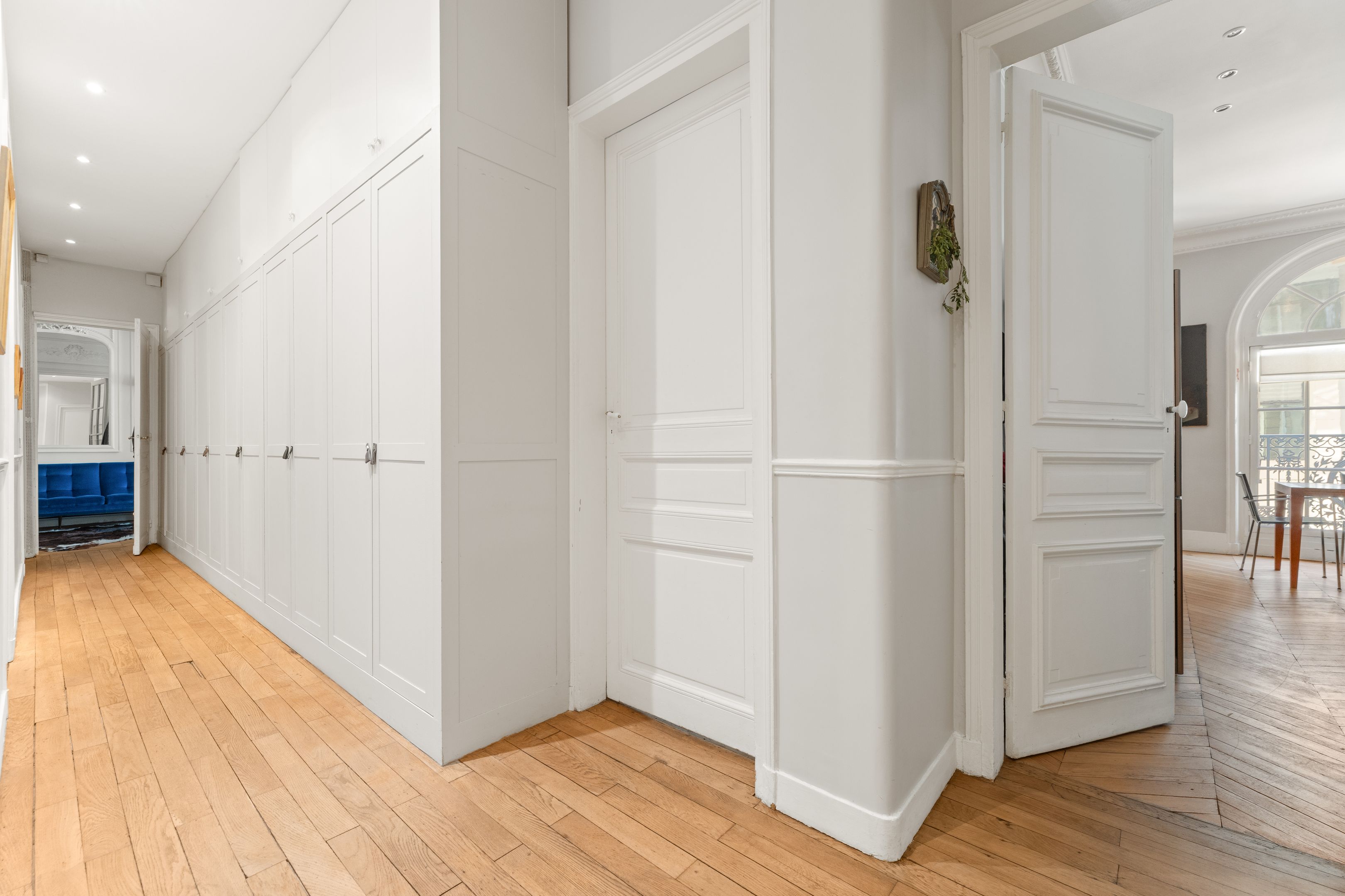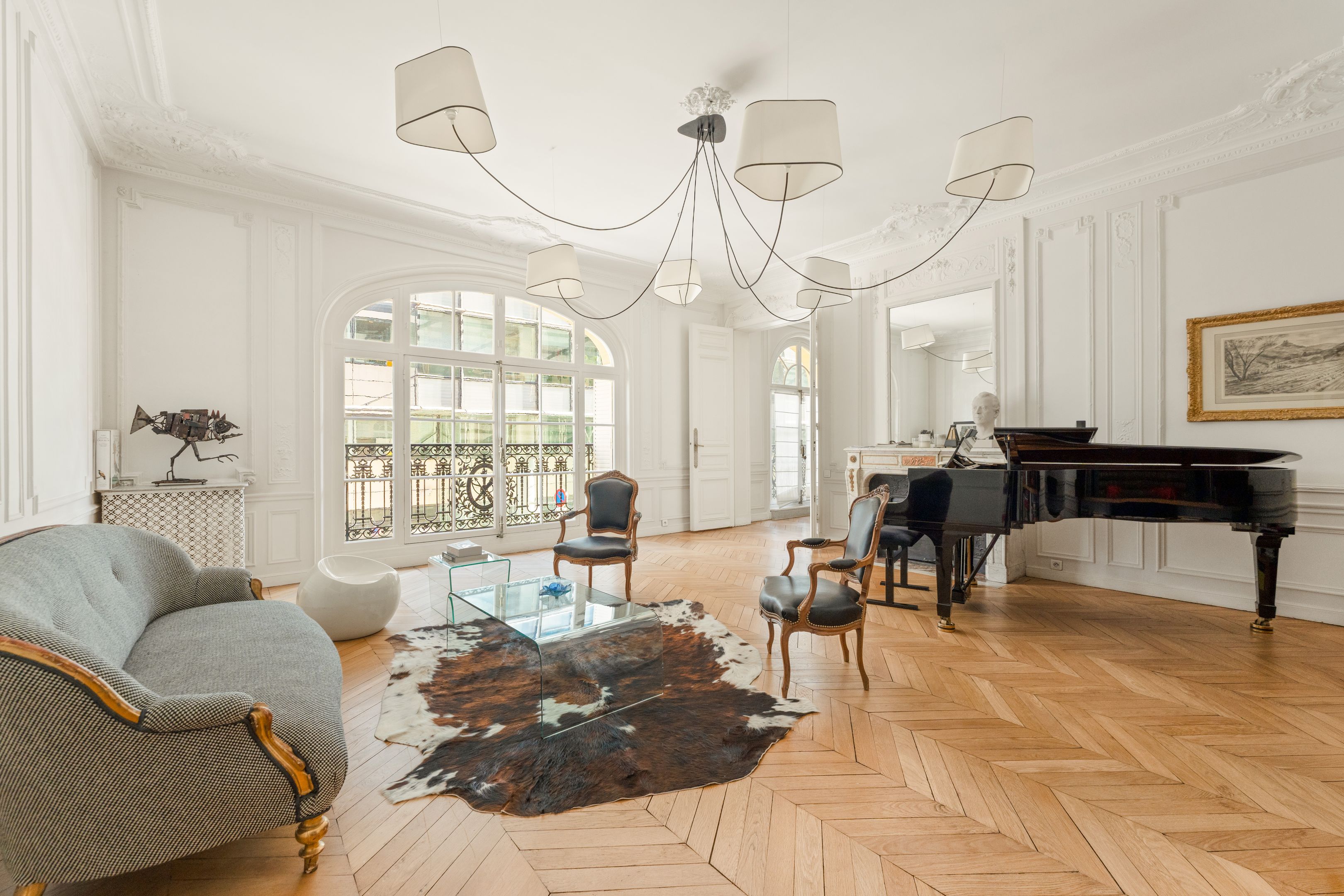 190 m² (Loi Carrez) family and reception apartment, combining classic elegance and generous volumes, in a very attractive, prestigious freestone building. Entrance opens onto a triple 85 m² reception room bathed in light, comprising a vast living room, a second living room or "family room" and a convivial kitchen/dining area bordered by large arched windows offering a rare through-illumination. Three quiet bedrooms overlooking the courtyard (4th possible), study, bathroom with shower and toilet, second guest toilet. Old world charm, herringbone parquet flooring, refined moldings, period fireplaces and majestic 3.25 m high ceilings. Plenty of storage space. Liberal profession possible. Two cellars.