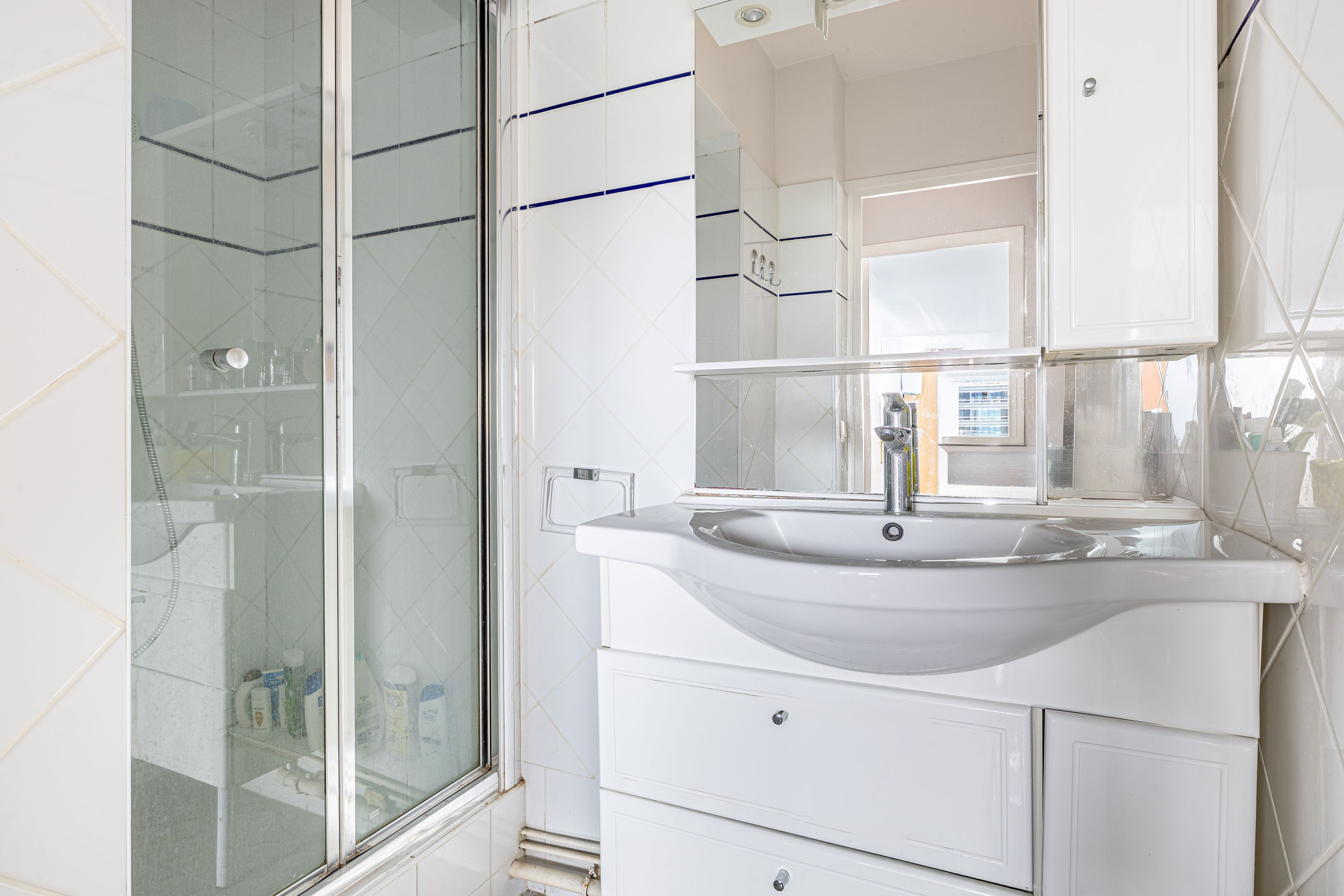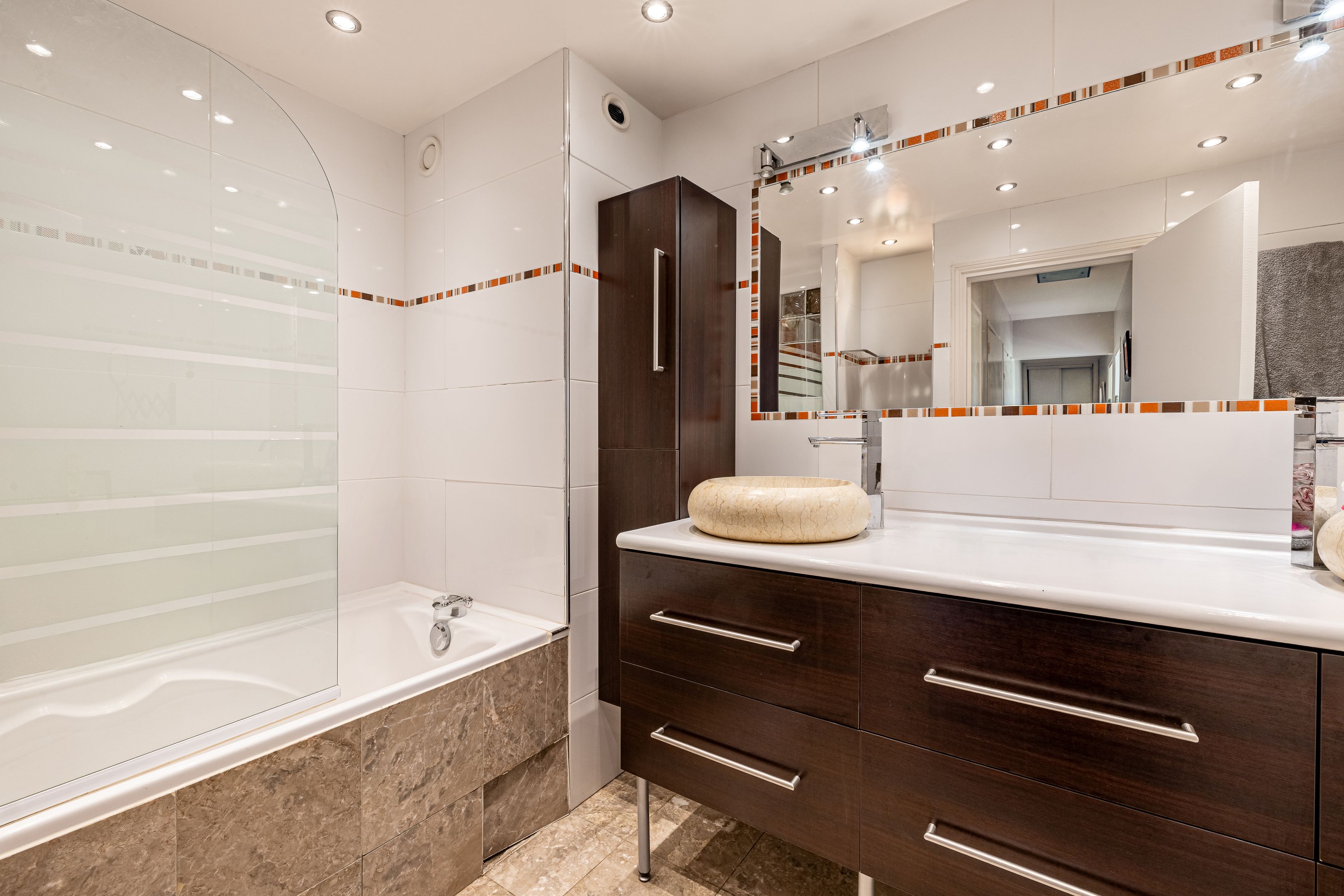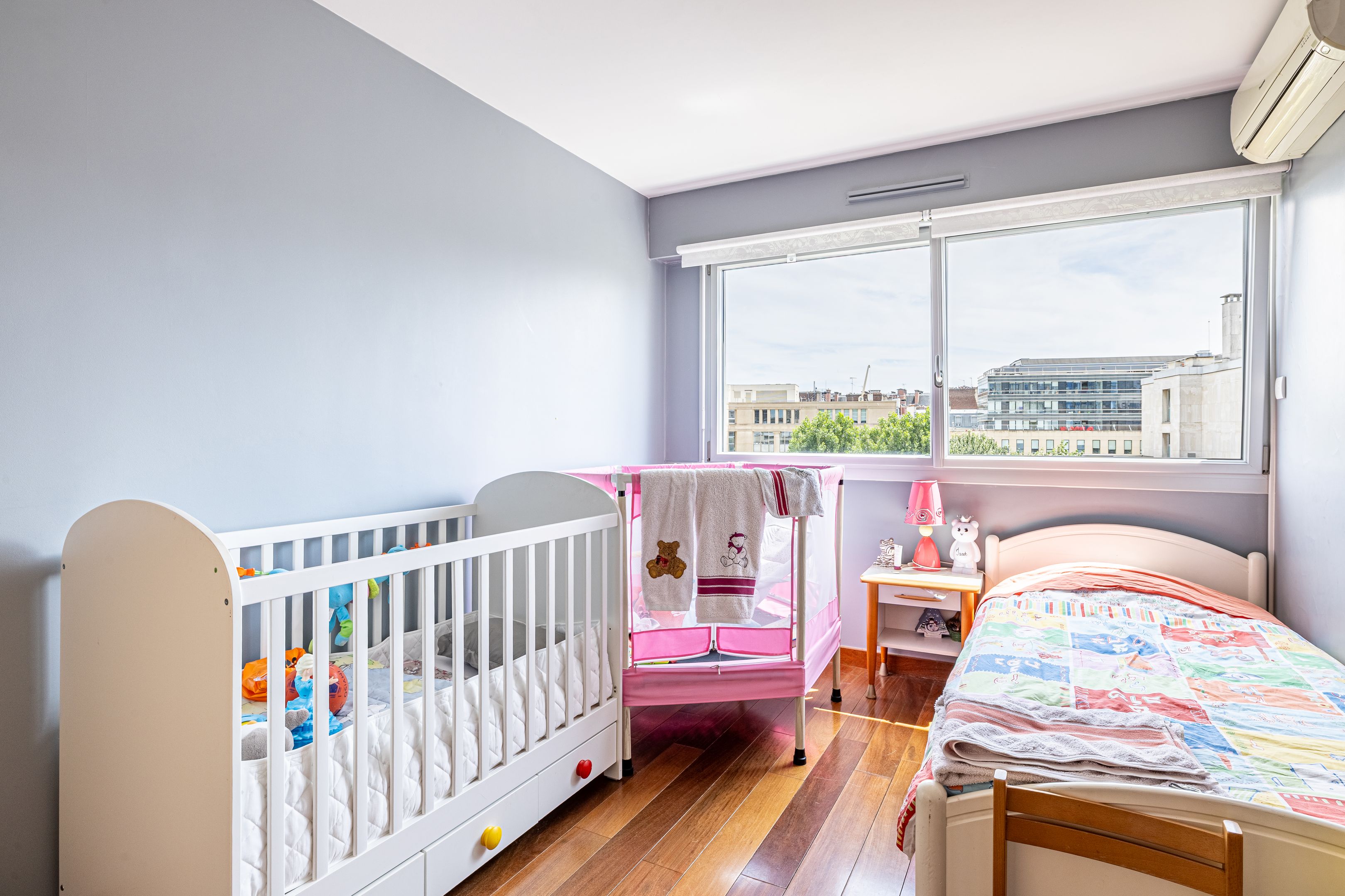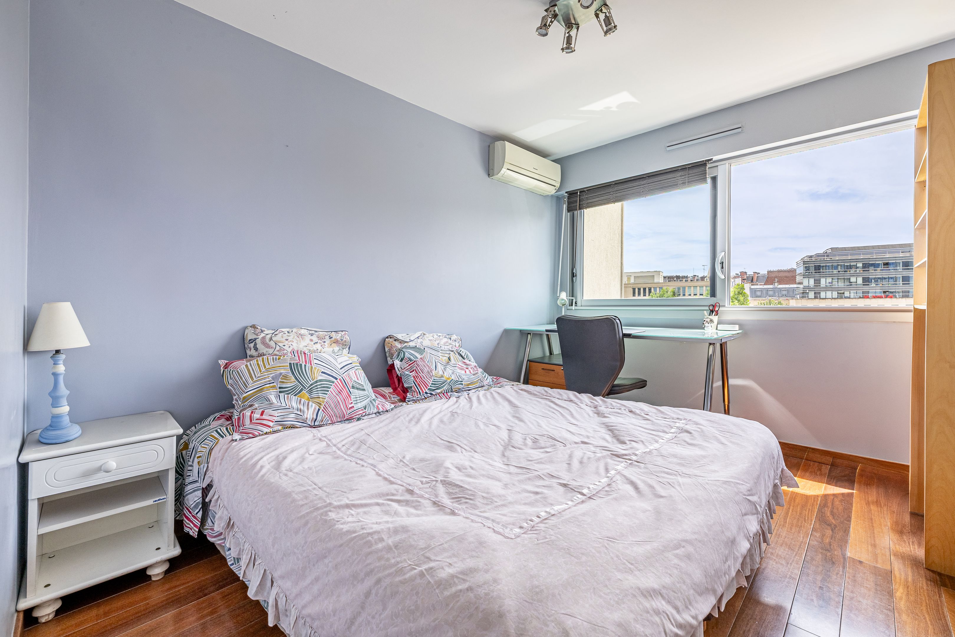 Pont de Neuilly - Close to shops and transport links, in a recent building of very high standing maintained by a janitor, 147 m² apartment, both family and reception, on the fifth and sixth floors served by elevator. Entrance hall, large living room opening onto balcony and 29 m² terrace overlooking garden, large kitchen/dining room, laundry room, guest toilet, storage space. First floor: four bedrooms, bathroom, shower room, dressing room, separate toilet and storage space. Cellar. Two additional parking spaces.