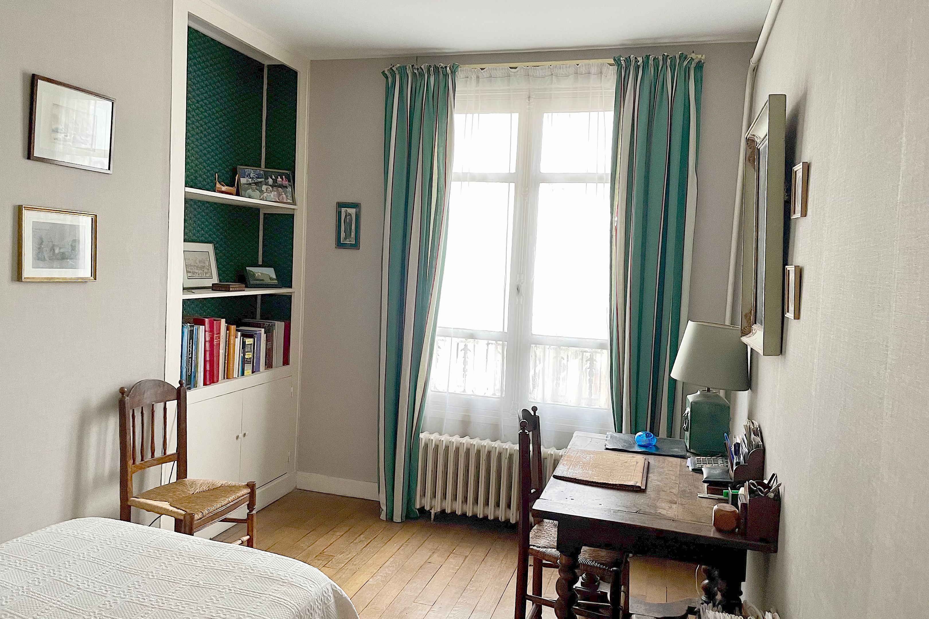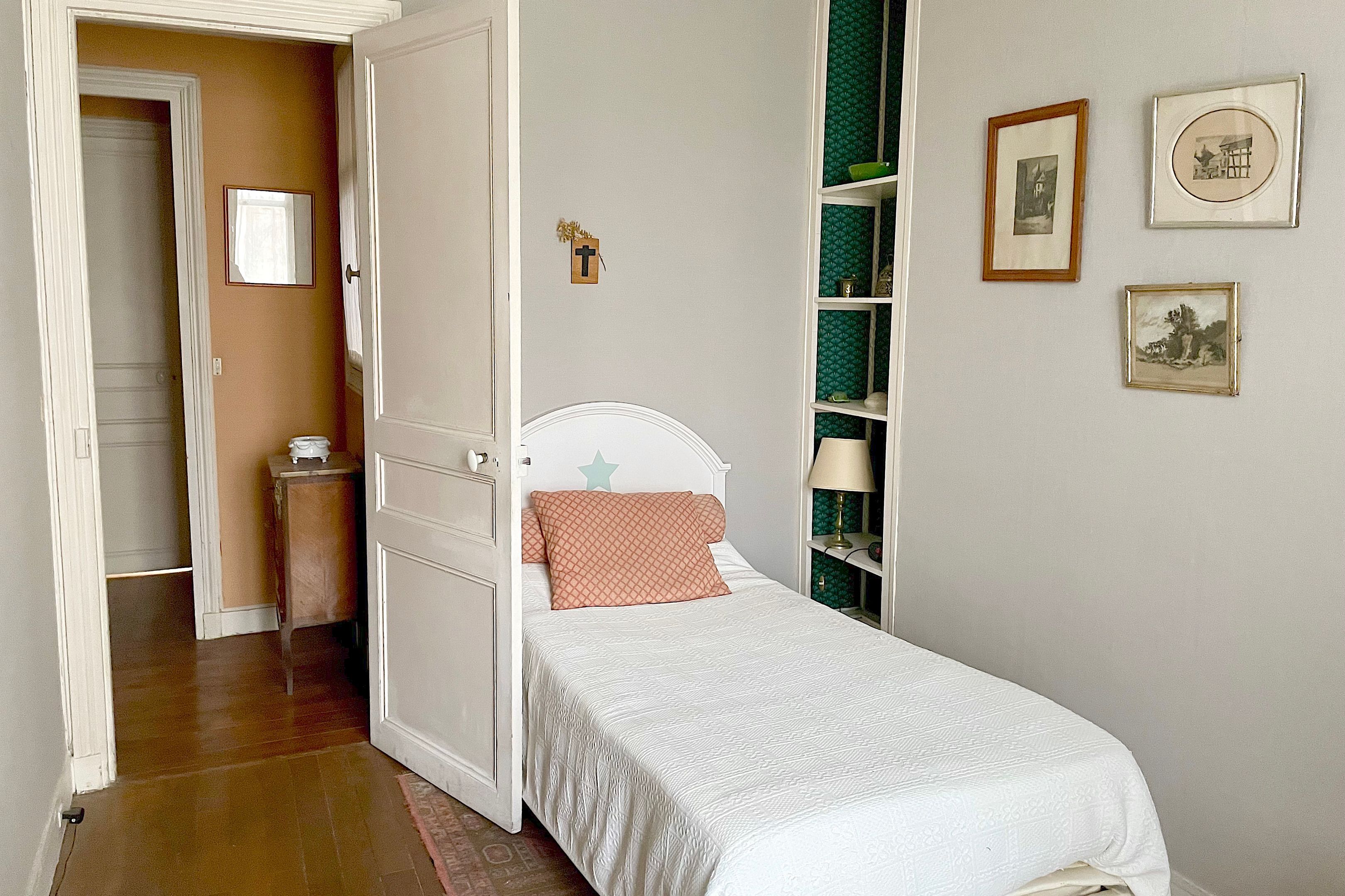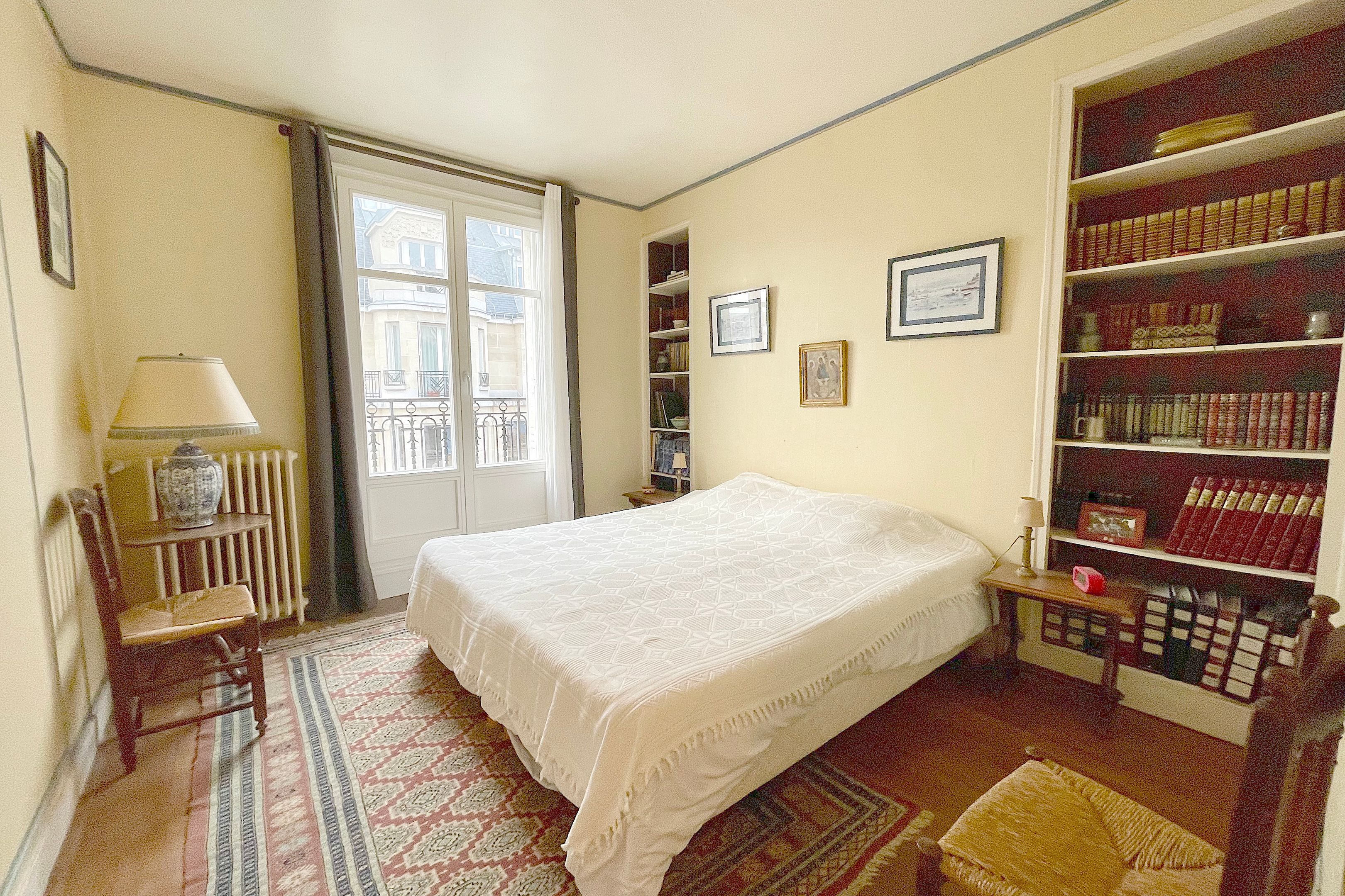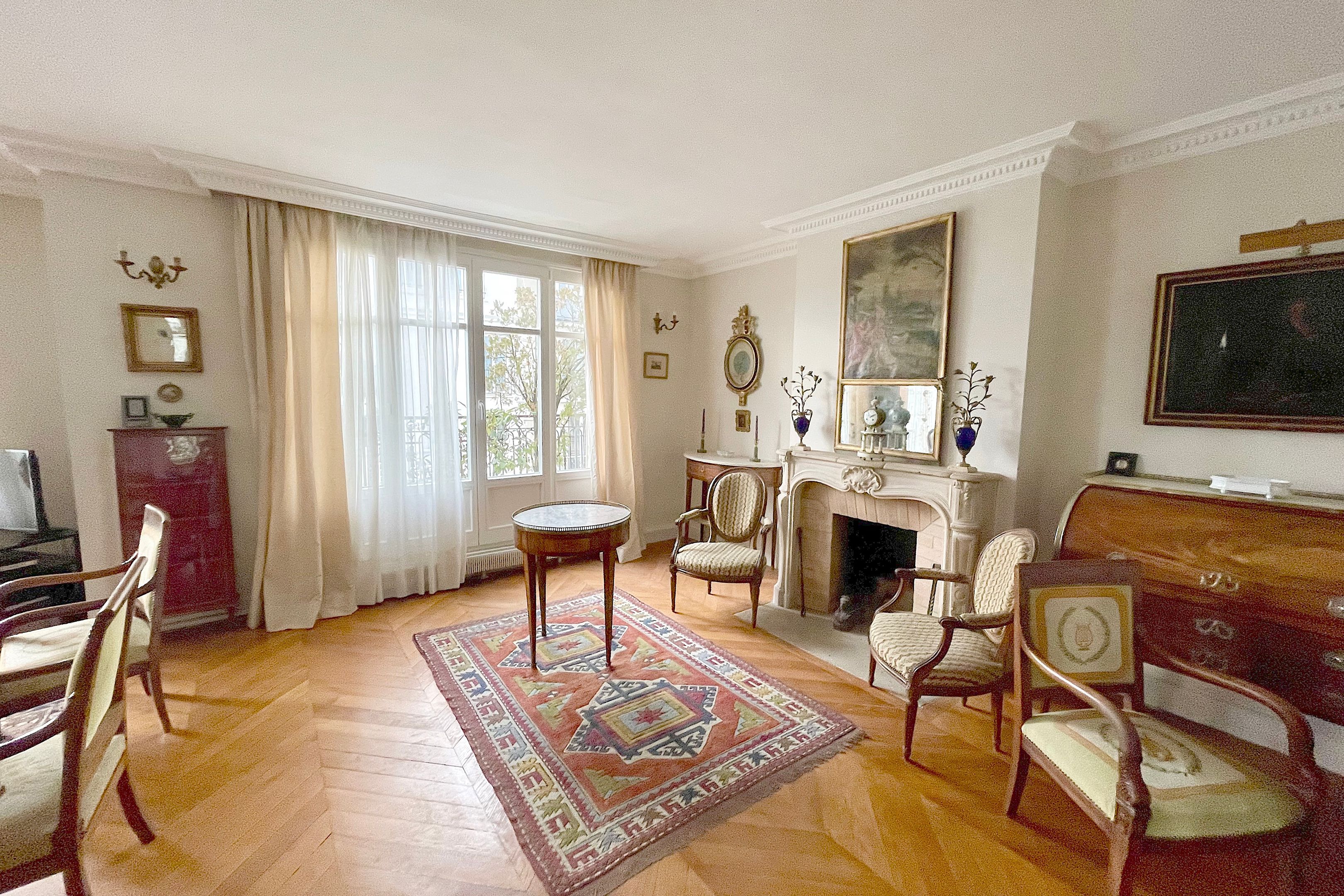 On the 6th and top floor of an old building ideally located at the foot of the Sablons metro station, very attractive, light-filled 6-room family apartment (146 sq.m.) with Eiffel Tower view. Entrance hall, beautiful west-facing 37m² double living room opening onto a 11m² balcony, separate kitchen, four bedrooms (18.44m2, 13m2, 12m2 and 10.4 m2), two bathrooms, two separate WCs and two storerooms.