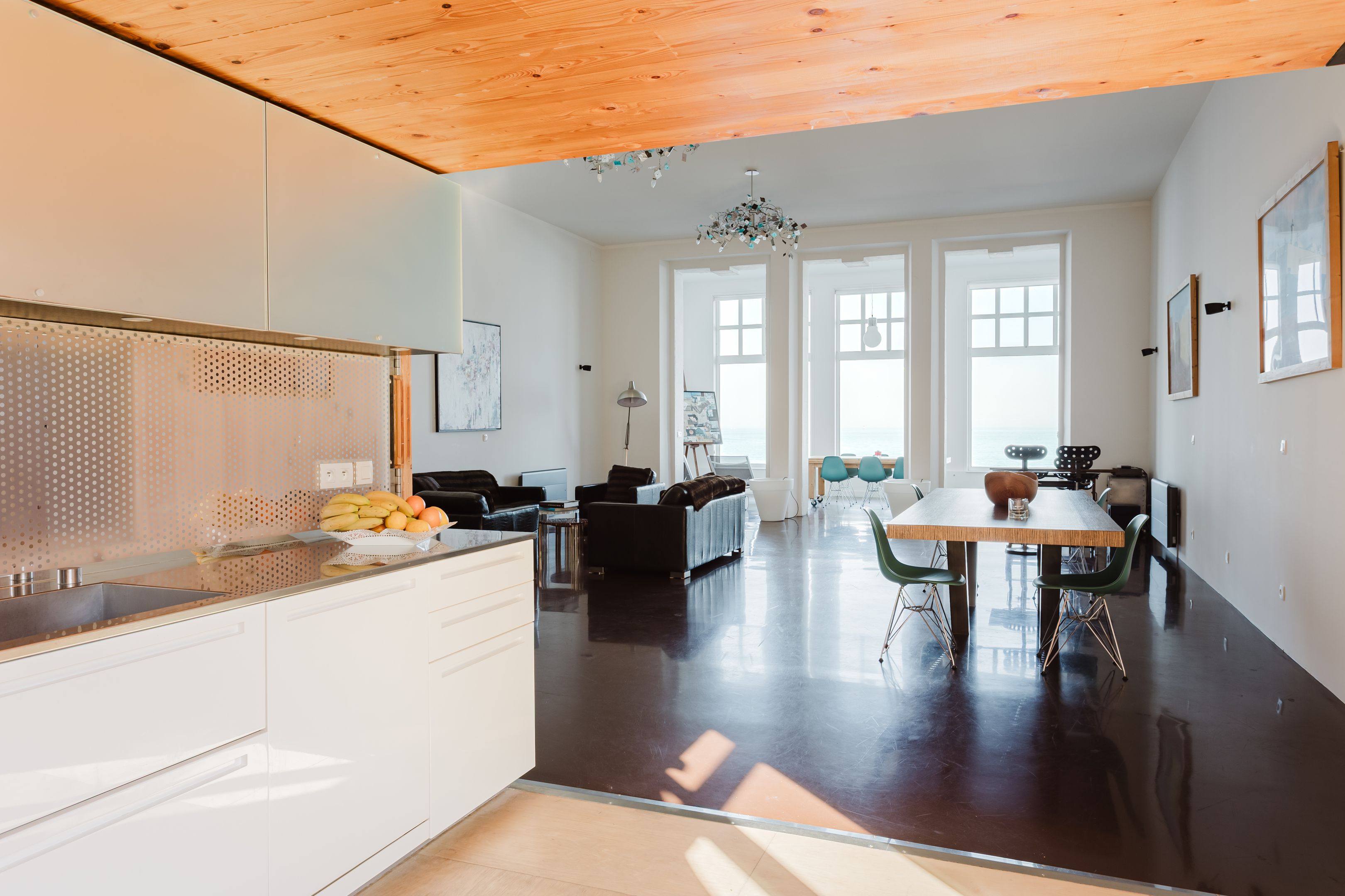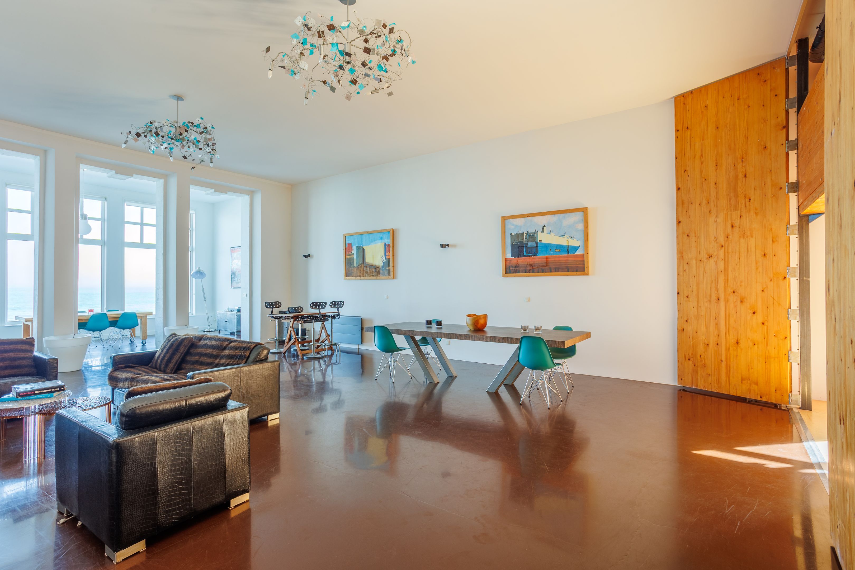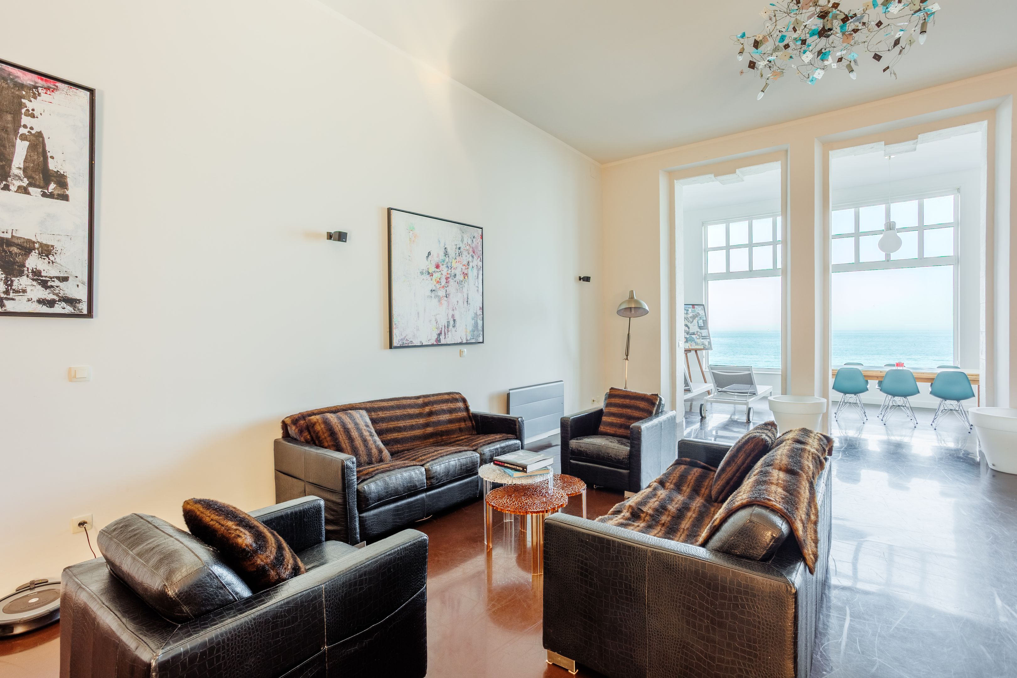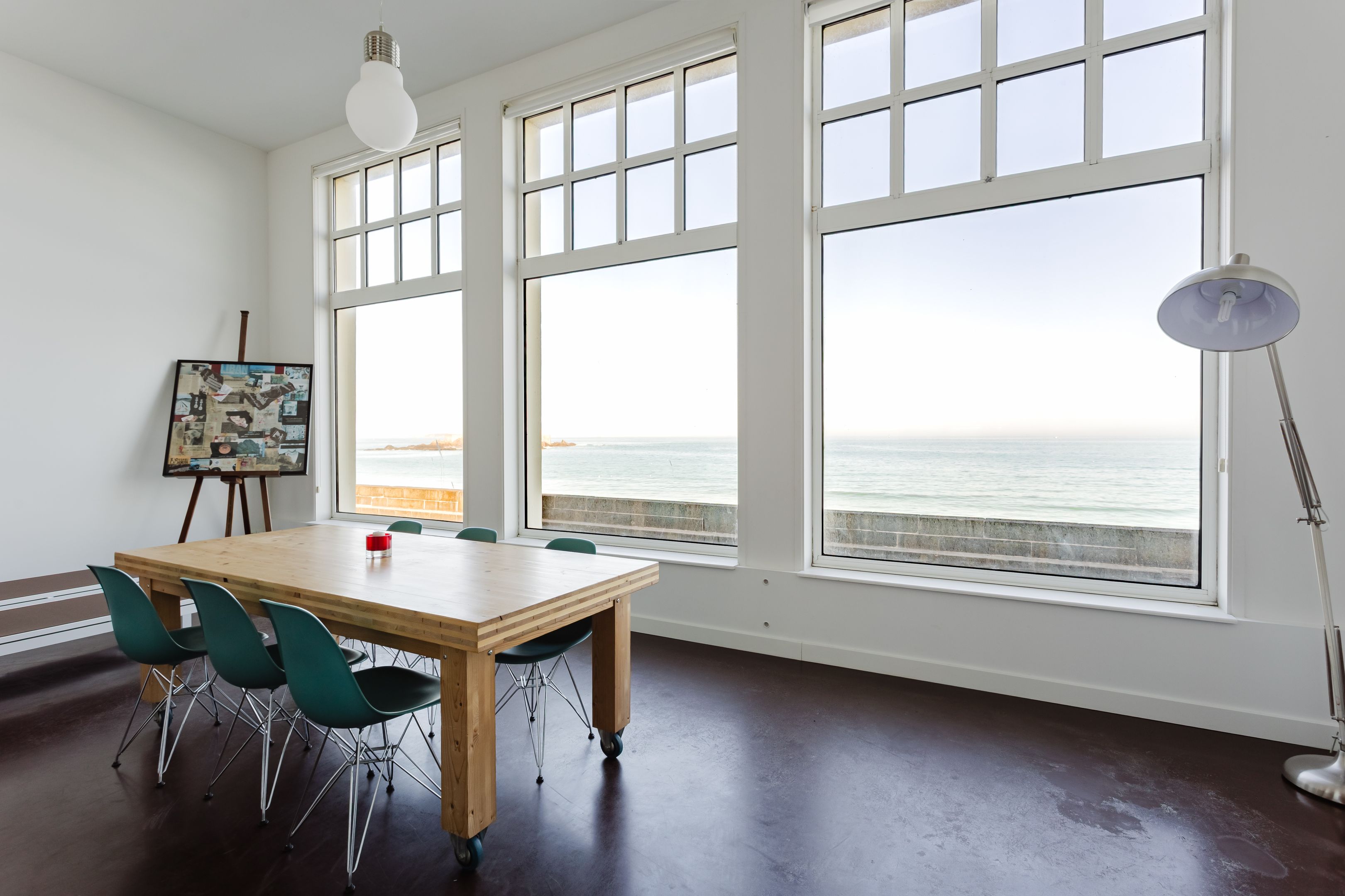 Facing the Sillon beach and just a few steps from Intra-Muros, in a recently renovated historic building. A rare 200m² loft-style apartment with an exclusive location, exceptional volume and valuable parking. Large living room of 100m² with remarkable ceiling height of over 5m and exceptional panoramic view of the sea and Fort National, luminous fully-equipped kitchen, second living room or study on mezzanine, four bedrooms, bathroom, shower room, storeroom/laundry room. Parking space under carport, large, easily accessible cellar. Direct access to the Sillon beach.